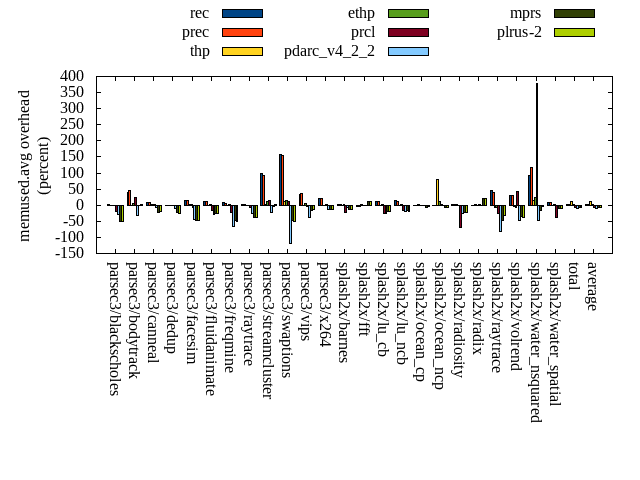======= Summary ======= runtime orig rec (overhead) prec (overhead) thp (overhead) ethp (overhead) prcl (overhead) pdarc_v4_2_2 (overhead) mprs (overhead) plrus-2 (overhead) parsec3/blackscholes 138.946 139.565 (0.45) 140.091 (0.82) 139.267 (0.23) 139.968 (0.74) 151.669 (9.16) 140.225 (0.92) 139.503 (0.40) 139.967 (0.73) parsec3/bodytrack 127.051 128.878 (1.44) 127.317 (0.21) 126.086 (-0.76) 127.627 (0.45) 146.622 (15.40) 127.222 (0.14) 126.755 (-0.23) 128.372 (1.04) parsec3/canneal 200.535 229.304 (14.35) 215.479 (7.45) 179.487 (-10.50) 196.643 (-1.94) 232.347 (15.86) 231.814 (15.60) 335.159 (67.13) 347.175 (73.12) parsec3/dedup 18.381 18.452 (0.39) 18.495 (0.62) 18.068 (-1.71) 18.466 (0.46) 20.988 (14.18) 18.939 (3.03) 19.099 (3.90) 19.543 (6.32) parsec3/facesim 349.464 341.467 (-2.29) 344.560 (-1.40) 342.323 (-2.04) 348.984 (-0.14) 365.556 (4.60) 353.187 (1.07) 348.171 (-0.37) 351.139 (0.48) parsec3/fluidanimate 334.831 336.533 (0.51) 334.423 (-0.12) 327.363 (-2.23) 329.632 (-1.55) 339.850 (1.50) 335.565 (0.22) 340.277 (1.63) 344.316 (2.83) parsec3/freqmine 435.509 436.990 (0.34) 435.925 (0.10) 433.903 (-0.37) 436.803 (0.30) 446.543 (2.53) 439.207 (0.85) 437.898 (0.55) 439.392 (0.89) parsec3/raytrace 184.218 182.055 (-1.17) 184.672 (0.25) 186.529 (1.25) 184.396 (0.10) 206.204 (11.94) 183.943 (-0.15) 184.849 (0.34) 186.602 (1.29) parsec3/streamcluster 650.709 684.408 (5.18) 650.431 (-0.04) 580.508 (-10.79) 592.076 (-9.01) 725.444 (11.49) 665.597 (2.29) 3181.738 (388.96) 2262.538 (247.70) parsec3/swaptions 221.658 222.324 (0.30) 222.961 (0.59) 221.518 (-0.06) 222.404 (0.34) 226.710 (2.28) 220.673 (-0.44) 220.929 (-0.33) 224.222 (1.16) parsec3/vips 100.898 102.204 (1.29) 100.794 (-0.10) 100.345 (-0.55) 97.651 (-3.22) 104.667 (3.74) 101.382 (0.48) 102.560 (1.65) 104.820 (3.89) parsec3/x264 119.622 123.079 (2.89) 119.644 (0.02) 116.459 (-2.64) 117.046 (-2.15) 128.595 (7.50) 123.284 (3.06) 125.981 (5.32) 125.120 (4.60) splash2x/barnes 129.607 130.936 (1.03) 130.620 (0.78) 119.662 (-7.67) 129.351 (-0.20) 147.822 (14.05) 132.434 (2.18) 137.082 (5.77) 137.604 (6.17) splash2x/fft 61.400 61.465 (0.11) 60.861 (-0.88) 47.356 (-22.87) 59.663 (-2.83) 65.800 (7.17) 63.544 (3.49) 102.715 (67.29) 100.748 (64.08) splash2x/lu_cb 132.449 132.638 (0.14) 133.199 (0.57) 133.416 (0.73) 133.013 (0.43) 138.796 (4.79) 133.566 (0.84) 135.084 (1.99) 135.778 (2.51) splash2x/lu_ncb 150.731 153.413 (1.78) 151.058 (0.22) 150.336 (-0.26) 152.533 (1.20) 154.816 (2.71) 152.556 (1.21) 153.933 (2.12) 155.570 (3.21) splash2x/ocean_cp 77.561 79.891 (3.00) 82.454 (6.31) 77.048 (-0.66) 83.079 (7.12) 81.724 (5.37) 82.768 (6.71) 105.019 (35.40) 111.127 (43.28) splash2x/ocean_ncp 160.506 161.348 (0.52) 155.938 (-2.85) 104.959 (-34.61) 140.051 (-12.74) 166.583 (3.79) 161.525 (0.64) 227.619 (41.81) 229.954 (43.27) splash2x/radiosity 143.090 142.977 (-0.08) 142.911 (-0.13) 142.042 (-0.73) 142.640 (-0.31) 155.988 (9.01) 143.788 (0.49) 143.428 (0.24) 143.672 (0.41) splash2x/radix 50.384 50.557 (0.34) 50.828 (0.88) 45.173 (-10.34) 49.460 (-1.83) 51.693 (2.60) 53.933 (7.04) 81.064 (60.89) 84.397 (67.51) splash2x/raytrace 134.952 133.950 (-0.74) 134.265 (-0.51) 133.629 (-0.98) 132.750 (-1.63) 147.049 (8.96) 134.620 (-0.25) 133.606 (-1.00) 135.204 (0.19) splash2x/volrend 120.496 121.405 (0.75) 120.769 (0.23) 119.616 (-0.73) 120.357 (-0.11) 134.198 (11.37) 120.298 (-0.16) 121.423 (0.77) 121.174 (0.56) splash2x/water_nsquared 369.989 370.670 (0.18) 373.197 (0.87) 351.668 (-4.95) 362.348 (-2.06) 426.362 (15.24) 373.500 (0.95) 395.217 (6.82) 397.837 (7.53) splash2x/water_spatial 132.620 133.502 (0.66) 133.643 (0.77) 133.782 (0.88) 134.787 (1.63) 153.729 (15.92) 135.785 (2.39) 143.655 (8.32) 143.444 (8.16) total 4545.620 4618.020 (1.59) 4564.520 (0.42) 4330.550 (-4.73) 4451.730 (-2.07) 4919.750 (8.23) 4629.360 (1.84) 7442.750 (63.73) 6569.700 (44.53) average 189.401 192.418 (1.31) 190.188 (0.61) 180.440 (-4.68) 185.489 (-1.12) 204.990 (8.38) 192.890 (2.19) 310.115 (29.14) 273.738 (24.62) kdamond_cpu_util orig rec (overhead) prec (overhead) thp (overhead) ethp (overhead) prcl (overhead) pdarc_v4_2_2 (overhead) mprs (overhead) plrus-2 (overhead) parsec3/blackscholes 0.000 0.000 (0.00) 0.835 (0.83) 0.000 (0.00) 1.522 (1.52) 10.246 (10.25) 3.079 (3.08) 0.000 (0.00) 2.444 (2.44) parsec3/bodytrack 0.000 1.620 (1.62) 0.728 (0.73) 0.000 (0.00) 1.448 (1.45) 17.429 (17.43) 4.513 (4.51) 0.000 (0.00) 2.337 (2.34) parsec3/canneal 0.000 2.241 (2.24) 6.002 (6.00) 0.000 (0.00) 1.982 (1.98) 2.790 (2.79) 13.889 (13.89) 0.000 (0.00) 3.419 (3.42) parsec3/dedup 0.000 1.333 (1.33) 0.692 (0.69) 0.000 (0.00) 1.259 (1.26) 16.884 (16.88) 5.191 (5.19) 0.000 (0.00) 1.336 (1.34) parsec3/facesim 0.000 1.800 (1.80) 0.817 (0.82) 0.000 (0.00) 2.209 (2.21) 5.631 (5.63) 5.262 (5.26) 0.000 (0.00) 2.639 (2.64) parsec3/fluidanimate 0.000 1.577 (1.58) 0.827 (0.83) 0.000 (0.00) 1.506 (1.51) 2.284 (2.28) 5.272 (5.27) 0.000 (0.00) 2.632 (2.63) parsec3/freqmine 0.000 1.613 (1.61) 0.819 (0.82) 0.000 (0.00) 1.478 (1.48) 5.771 (5.77) 4.833 (4.83) 0.000 (0.00) 2.664 (2.66) parsec3/raytrace 0.000 1.484 (1.48) 0.811 (0.81) 0.000 (0.00) 1.495 (1.49) 14.268 (14.27) 3.726 (3.73) 0.000 (0.00) 2.549 (2.55) parsec3/streamcluster 0.000 13.727 (13.73) 10.196 (10.20) 0.000 (0.00) 2.235 (2.23) 14.850 (14.85) 11.963 (11.96) 0.000 (0.00) 2.703 (2.70) parsec3/swaptions 0.000 2.730 (2.73) 0.783 (0.78) 0.000 (0.00) 2.835 (2.84) 3.274 (3.27) 5.209 (5.21) 0.000 (0.00) 2.583 (2.58) parsec3/vips 0.000 4.157 (4.16) 0.629 (0.63) 0.000 (0.00) 1.826 (1.83) 7.327 (7.33) 4.713 (4.71) 0.000 (0.00) 2.279 (2.28) parsec3/x264 0.000 3.296 (3.30) 0.710 (0.71) 0.000 (0.00) 1.629 (1.63) 3.225 (3.22) 4.890 (4.89) 0.000 (0.00) 2.434 (2.43) splash2x/barnes 0.000 1.345 (1.35) 0.887 (0.89) 0.000 (0.00) 1.341 (1.34) 13.082 (13.08) 6.649 (6.65) 0.000 (0.00) 2.674 (2.67) splash2x/fft 0.000 1.469 (1.47) 0.853 (0.85) 0.000 (0.00) 1.611 (1.61) 12.819 (12.82) 4.123 (4.12) 0.000 (0.00) 2.422 (2.42) splash2x/lu_cb 0.000 1.662 (1.66) 0.80