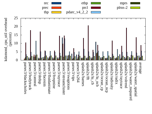 ======= Summary ======= runtime orig rec (overhead) prec (overhead) thp (overhead) ethp (overhead) prcl (overhead) pdarc_v4_2_2 (overhead) mprs (overhead) plrus-2 (overhead) parsec3/blackscholes 139.512 140.220 (0.51) 140.357 (0.61) 139.593 (0.06) 139.924 (0.30) 151.292 (8.44) 140.522 (0.72) 139.870 (0.26) 140.186 (0.48) parsec3/bodytrack 127.157 127.344 (0.15) 127.523 (0.29) 125.897 (-0.99) 126.465 (-0.54) 147.431 (15.94) 127.476 (0.25) 127.828 (0.53) 128.259 (0.87) parsec3/canneal 199.176 220.494 (10.70) 216.718 (8.81) 186.460 (-6.38) 207.039 (3.95) 236.521 (18.75) 238.641 (19.81) 341.719 (71.57) 347.140 (74.29) parsec3/dedup 18.467 18.465 (-0.01) 18.443 (-0.13) 18.158 (-1.68) 18.457 (-0.06) 20.838 (12.83) 18.866 (2.16) 18.954 (2.63) 19.360 (4.83) parsec3/facesim 348.179 349.015 (0.24) 341.502 (-1.92) 337.709 (-3.01) 343.302 (-1.40) 365.796 (5.06) 347.801 (-0.11) 345.079 (-0.89) 348.718 (0.15) parsec3/fluidanimate 335.710 330.967 (-1.41) 340.319 (1.37) 323.622 (-3.60) 332.748 (-0.88) 339.692 (1.19) 331.634 (-1.21) 337.676 (0.59) 343.593 (2.35) parsec3/freqmine 435.802 436.374 (0.13) 436.574 (0.18) 435.758 (-0.01) 436.013 (0.05) 447.622 (2.71) 438.304 (0.57) 438.524 (0.62) 437.086 (0.29) parsec3/raytrace 179.794 184.706 (2.73) 183.545 (2.09) 184.911 (2.85) 183.088 (1.83) 204.507 (13.74) 185.882 (3.39) 187.827 (4.47) 189.197 (5.23) parsec3/streamcluster 722.711 671.631 (-7.07) 670.631 (-7.21) 575.478 (-20.37) 611.918 (-15.33) 720.943 (-0.24) 660.711 (-8.58) 2851.762 (294.59) 2898.058 (301.00) parsec3/swaptions 220.258 222.285 (0.92) 221.410 (0.52) 221.367 (0.50) 221.953 (0.77) 225.850 (2.54) 221.490 (0.56) 223.785 (1.60) 222.127 (0.85) parsec3/vips 100.275 101.516 (1.24) 100.932 (0.66) 99.774 (-0.50) 97.430 (-2.84) 103.816 (3.53) 100.985 (0.71) 102.472 (2.19) 103.547 (3.26) parsec3/x264 121.876 119.498 (-1.95) 125.221 (2.74) 114.936 (-5.69) 116.281 (-4.59) 116.362 (-4.52) 124.338 (2.02) 128.752 (5.64) 126.128 (3.49) splash2x/barnes 130.376 131.848 (1.13) 130.634 (0.20) 118.472 (-9.13) 128.021 (-1.81) 148.101 (13.60) 132.446 (1.59) 138.272 (6.06) 138.912 (6.55) splash2x/fft 60.840 60.714 (-0.21) 61.798 (1.57) 47.745 (-21.52) 60.630 (-0.34) 67.363 (10.72) 63.432 (4.26) 99.570 (63.66) 100.276 (64.82) splash2x/lu_cb 132.492 132.244 (-0.19) 132.739 (0.19) 132.590 (0.07) 133.190 (0.53) 139.248 (5.10) 133.635 (0.86) 135.341 (2.15) 135.277 (2.10) splash2x/lu_ncb 151.092 151.813 (0.48) 150.704 (-0.26) 150.494 (-0.40) 151.147 (0.04) 153.636 (1.68) 151.660 (0.38) 154.834 (2.48) 153.778 (1.78) splash2x/ocean_cp 78.273 81.655 (4.32) 79.737 (1.87) 83.523 (6.71) 81.721 (4.40) 83.831 (7.10) 83.073 (6.13) 106.393 (35.93) 104.372 (33.34) splash2x/ocean_ncp 157.952 153.277 (-2.96) 163.094 (3.26) 105.641 (-33.12) 134.121 (-15.09) 165.159 (4.56) 165.029 (4.48) 229.902 (45.55) 238.934 (51.27) splash2x/radiosity 143.770 142.863 (-0.63) 143.114 (-0.46) 141.464 (-1.60) 143.223 (-0.38) 156.025 (8.52) 144.161 (0.27) 144.517 (0.52) 144.001 (0.16) splash2x/radix 51.414 51.721 (0.60) 51.531 (0.23) 45.448 (-11.61) 48.373 (-5.92) 50.670 (-1.45) 54.549 (6.10) 79.816 (55.24) 82.451 (60.37) splash2x/raytrace 135.366 136.369 (0.74) 134.172 (-0.88) 132.916 (-1.81) 134.070 (-0.96) 147.228 (8.76) 136.133 (0.57) 133.245 (-1.57) 137.115 (1.29) splash2x/volrend 121.200 120.809 (-0.32) 120.827 (-0.31) 119.561 (-1.35) 120.410 (-0.65) 132.990 (9.73) 121.401 (0.17) 121.024 (-0.14) 121.261 (0.05) splash2x/water_nsquared 370.333 371.885 (0.42) 373.977 (0.98) 351.009 (-5.22) 361.345 (-2.43) 420.031 (13.42) 374.972 (1.25) 392.920 (6.10) 398.995 (7.74) splash2x/water_spatial 132.833 133.812 (0.74) 133.742 (0.68) 134.496 (1.25) 133.935 (0.83) 153.004 (15.18) 135.742 (2.19) 144.272 (8.61) 141.503 (6.53) total 4614.850 4591.520 (-0.51) 4599.230 (-0.34) 4327.020 (-6.24) 4464.780 (-3.25) 4897.960 (6.13) 4632.870 (0.39) 7124.330 (54.38) 7200.290 (56.02) average 192.285 191.313 (0.43) 191.635 (0.63) 180.293 (-4.86) 186.032 (-1.69) 204.082 (7.37) 193.036 (2.02) 296.847 (25.35) 300.012 (26.38) kdamond_cpu_util orig rec (overhead) prec (overhead) thp (overhead) ethp (overhead) prcl (overhead) pdarc_v4_2_2 (overhead) mprs (overhead) plrus-2 (overhead) parsec3/blackscholes 0.000 0.000 (0.00) 0.811 (0.81) 0.000 (0.00) 1.504 (1.50) 10.504 (10.50) 3.421 (3.42) 0.000 (0.00) 2.462 (2.46) parsec3/bodytrack 0.000 1.606 (1.61) 0.709 (0.71) 0.000 (0.00) 1.343 (1.34) 17.743 (17.74) 4.755 (4.75) 0.000 (0.00) 2.367 (2.37) parsec3/canneal 0.000 2.137 (2.14) 3.178 (3.18) 0.000 (0.00) 1.940 (1.94) 2.802 (2.80) 11.500 (11.50) 0.000 (0.00) 3.306 (3.31) parsec3/dedup 0.000 1.365 (1.36) 0.675 (0.68) 0.000 (0.00) 1.299 (1.30) 16.985 (16.98) 5.136 (5.14) 0.000 (0.00) 1.402 (1.40) parsec3/facesim 0.000 1.800 (1.80) 0.826 (0.83) 0.000 (0.00) 2.064 (2.06) 5.669 (5.67) 5.234 (5.23) 0.000 (0.00) 2.640 (2.64) parsec3/fluidanimate 0.000 1.584 (1.58) 0.825 (0.83) 0.000 (0.00) 1.505 (1.50) 2.205 (2.21) 5.321 (5.32) 0.000 (0.00) 2.641 (2.64) parsec3/freqmine 0.000 1.598 (1.60) 0.826 (0.83) 0.000 (0.00) 1.440 (1.44) 5.627 (5.63) 4.823 (4.82) 0.000 (0.00) 2.652 (2.65) parsec3/raytrace 0.000 1.519 (1.52) 0.823 (0.82) 0.000 (0.00) 1.487 (1.49) 14.472 (14.47) 4.275 (4.28) 0.000 (0.00) 2.537 (2.54) parsec3/streamcluster 0.000 13.449 (13.45) 9.785 (9.79) 0.000 (0.00) 2.019 (2.02) 14.616 (14.62) 12.829 (12.83) 0.000 (0.00) 2.690 (2.69) parsec3/swaptions 0.000 2.656 (2.66) 0.787 (0.79) 0.000 (0.00) 2.751 (2.75) 3.172 (3.17) 5.085 (5.09) 0.000 (0.00) 2.557 (2.56) parsec3/vips 0.000 3.869 (3.87) 0.723 (0.72) 0.000 (0.00) 1.321 (1.32) 7.103 (7.10) 4.663 (4.66) 0.000 (0.00) 2.314 (2.31) parsec3/x264 0.000 3.189 (3.19) 0.748 (0.75) 0.000 (0.00) 1.590 (1.59) 3.179 (3.18) 5.043 (5.04) 0.000 (0.00) 2.489 (2.49) splash2x/barnes 0.000 1.450 (1.45) 0.937 (0.94) 0.000 (0.00) 1.364 (1.36) 13.076 (13.08) 6.589 (6.59) 0.000 (0.00) 2.601 (2.60) splash2x/fft 0.000 1.473 (1.47) 0.878 (0.88) 0.000 (0.00) 1.569 (1.57) 20.615 (20.61) 5.103 (5.10) 0.000 (0.00) 2.449 (2.45) splash2x/lu_cb 0.000 1.600 (1.60) 0.8