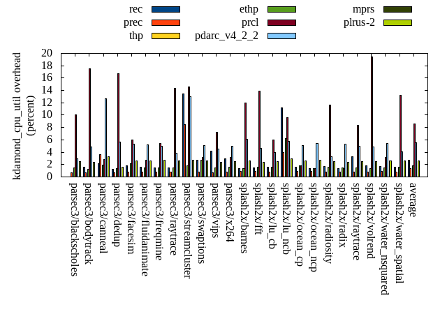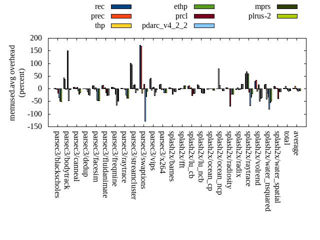 ======= Summary ======= runtime orig rec (overhead) prec (overhead) thp (overhead) ethp (overhead) prcl (overhead) pdarc_v4_2_2 (overhead) mprs (overhead) plrus-2 (overhead) parsec3/blackscholes 139.726 140.080 (0.25) 139.831 (0.08) 139.466 (-0.19) 139.736 (0.01) 151.102 (8.14) 140.378 (0.47) 139.506 (-0.16) 140.173 (0.32) parsec3/bodytrack 126.953 128.018 (0.84) 127.647 (0.55) 126.018 (-0.74) 126.828 (-0.10) 148.138 (16.69) 127.438 (0.38) 127.677 (0.57) 127.799 (0.67) parsec3/canneal 216.910 237.079 (9.30) 232.866 (7.36) 170.119 (-21.57) 200.810 (-7.42) 227.411 (4.84) 219.957 (1.40) 347.817 (60.35) 368.307 (69.80) parsec3/dedup 18.335 18.551 (1.18) 18.366 (0.17) 18.213 (-0.66) 18.365 (0.16) 20.730 (13.07) 19.009 (3.68) 18.959 (3.41) 19.258 (5.03) parsec3/facesim 347.920 350.670 (0.79) 344.945 (-0.86) 338.298 (-2.77) 339.538 (-2.41) 366.863 (5.44) 349.621 (0.49) 345.936 (-0.57) 349.017 (0.32) parsec3/fluidanimate 334.143 337.811 (1.10) 334.435 (0.09) 326.767 (-2.21) 330.052 (-1.22) 337.399 (0.97) 337.164 (0.90) 343.907 (2.92) 341.589 (2.23) parsec3/freqmine 434.988 438.314 (0.76) 438.097 (0.71) 436.281 (0.30) 440.128 (1.18) 449.013 (3.22) 438.428 (0.79) 437.010 (0.46) 438.141 (0.72) parsec3/raytrace 182.013 182.157 (0.08) 184.975 (1.63) 186.900 (2.69) 183.728 (0.94) 204.587 (12.40) 185.529 (1.93) 186.298 (2.35) 187.607 (3.07) parsec3/streamcluster 650.270 692.236 (6.45) 696.346 (7.09) 548.482 (-15.65) 616.933 (-5.13) 699.085 (7.51) 682.144 (4.90) 2557.410 (293.28) 2875.656 (342.23) parsec3/swaptions 222.587 222.802 (0.10) 221.997 (-0.27) 220.951 (-0.73) 222.606 (0.01) 227.565 (2.24) 221.901 (-0.31) 219.901 (-1.21) 221.541 (-0.47) parsec3/vips 100.284 101.346 (1.06) 101.132 (0.85) 99.733 (-0.55) 97.813 (-2.46) 104.197 (3.90) 100.881 (0.60) 102.752 (2.46) 104.185 (3.89) parsec3/x264 124.952 118.339 (-5.29) 123.934 (-0.81) 117.719 (-5.79) 117.332 (-6.10) 125.713 (0.61) 118.030 (-5.54) 125.072 (0.10) 128.737 (3.03) splash2x/barnes 129.799 131.058 (0.97) 131.100 (1.00) 119.449 (-7.97) 129.116 (-0.53) 146.304 (12.72) 133.360 (2.74) 137.280 (5.76) 140.027 (7.88) splash2x/fft 60.583 60.773 (0.31) 61.424 (1.39) 48.866 (-19.34) 60.716 (0.22) 65.544 (8.19) 63.449 (4.73) 100.101 (65.23) 101.242 (67.11) splash2x/lu_cb 132.905 133.397 (0.37) 132.796 (-0.08) 133.029 (0.09) 133.383 (0.36) 138.938 (4.54) 134.123 (0.92) 135.665 (2.08) 135.698 (2.10) splash2x/lu_ncb 149.493 153.352 (2.58) 150.577 (0.73) 150.757 (0.85) 151.366 (1.25) 154.749 (3.52) 153.784 (2.87) 154.089 (3.07) 154.968 (3.66) splash2x/ocean_cp 83.730 81.162 (-3.07) 79.399 (-5.17) 81.796 (-2.31) 80.636 (-3.70) 81.317 (-2.88) 82.992 (-0.88) 105.109 (25.53) 103.558 (23.68) splash2x/ocean_ncp 156.047 160.248 (2.69) 159.158 (1.99) 102.919 (-34.05) 136.557 (-12.49) 163.354 (4.68) 165.462 (6.03) 229.183 (46.87) 234.744 (50.43) splash2x/radiosity 142.204 143.385 (0.83) 142.478 (0.19) 141.475 (-0.51) 142.824 (0.44) 157.654 (10.86) 144.464 (1.59) 143.278 (0.76) 144.310 (1.48) splash2x/radix 50.786 51.060 (0.54) 51.348 (1.11) 47.644 (-6.19) 49.266 (-2.99) 51.550 (1.50) 53.892 (6.12) 78.948 (55.45) 84.320 (66.03) splash2x/raytrace 134.227 132.999 (-0.91) 134.500 (0.20) 131.988 (-1.67) 132.374 (-1.38) 148.832 (10.88) 134.397 (0.13) 134.339 (0.08) 137.561 (2.48) splash2x/volrend 120.409 120.665 (0.21) 120.300 (-0.09) 119.962 (-0.37) 119.745 (-0.55) 132.099 (9.71) 120.932 (0.43) 120.828 (0.35) 121.372 (0.80) splash2x/water_nsquared 370.082 373.781 (1.00) 371.341 (0.34) 351.851 (-4.93) 361.948 (-2.20) 410.593 (10.95) 374.999 (1.33) 390.133 (5.42) 393.338 (6.28) splash2x/water_spatial 133.846 133.372 (-0.35) 134.101 (0.19) 133.606 (-0.18) 134.673 (0.62) 153.074 (14.37) 136.357 (1.88) 144.635 (8.06) 144.623 (8.05) total 4563.190 4642.660 (1.74) 4633.100 (1.53) 4292.290 (-5.94) 4466.480 (-2.12) 4865.790 (6.63) 4638.680 (1.65) 6825.840 (49.58) 7197.780 (57.74) average 190.133 193.444 (0.91) 193.046 (0.77) 178.845 (-5.19) 186.103 (-1.81) 202.741 (7.00) 193.278 (1.57) 284.410 (24.28) 299.907 (27.95) kdamond_cpu_util orig rec (overhead) prec (overhead) thp (overhead) ethp (overhead) prcl (overhead) pdarc_v4_2_2 (overhead) mprs (overhead) plrus-2 (overhead) parsec3/blackscholes 0.000 0.000 (0.00) 0.709 (0.71) 0.000 (0.00) 1.518 (1.52) 10.039 (10.04) 2.949 (2.95) 0.000 (0.00) 2.438 (2.44) parsec3/bodytrack 0.000 1.626 (1.63) 0.700 (0.70) 0.000 (0.00) 1.275 (1.27) 17.459 (17.46) 4.855 (4.85) 0.000 (0.00) 2.391 (2.39) parsec3/canneal 0.000 2.155 (2.16) 3.600 (3.60) 0.000 (0.00) 1.930 (1.93) 2.771 (2.77) 12.617 (12.62) 0.000 (0.00) 3.315 (3.31) parsec3/dedup 0.000 1.285 (1.29) 0.684 (0.68) 0.000 (0.00) 1.310 (1.31) 16.726 (16.73) 5.680 (5.68) 0.000 (0.00) 1.552 (1.55) parsec3/facesim 0.000 1.768 (1.77) 0.812 (0.81) 0.000 (0.00) 2.102 (2.10) 6.031 (6.03) 5.325 (5.33) 0.000 (0.00) 2.641 (2.64) parsec3/fluidanimate 0.000 1.565 (1.57) 0.819 (0.82) 0.000 (0.00) 1.514 (1.51) 2.656 (2.66) 5.253 (5.25) 0.000 (0.00) 2.639 (2.64) parsec3/freqmine 0.000 1.433 (1.43) 0.828 (0.83) 0.000 (0.00) 1.444 (1.44) 5.462 (5.46) 5.016 (5.02) 0.000 (0.00) 2.703 (2.70) parsec3/raytrace 0.000 1.502 (1.50) 0.828 (0.83) 0.000 (0.00) 1.484 (1.48) 14.357 (14.36) 3.835 (3.83) 0.000 (0.00) 2.549 (2.55) parsec3/streamcluster 0.000 13.472 (13.47) 8.437 (8.44) 0.000 (0.00) 1.794 (1.79) 14.599 (14.60) 12.954 (12.95) 0.000 (0.00) 2.708 (2.71) parsec3/swaptions 0.000 2.708 (2.71) 0.807 (0.81) 0.000 (0.00) 2.748 (2.75) 3.164 (3.16) 5.110 (5.11) 0.000 (0.00) 2.567 (2.57) parsec3/vips 0.000 4.168 (4.17) 0.639 (0.64) 0.000 (0.00) 1.440 (1.44) 7.178 (7.18) 4.570 (4.57) 0.000 (0.00) 2.369 (2.37) parsec3/x264 0.000 2.962 (2.96) 0.765 (0.76) 0.000 (0.00) 1.627 (1.63) 3.152 (3.15) 4.988 (4.99) 0.000 (0.00) 2.454 (2.45) splash2x/barnes 0.000 1.343 (1.34) 0.901 (0.90) 0.000 (0.00) 1.360 (1.36) 11.972 (11.97) 6.062 (6.06) 0.000 (0.00) 2.601 (2.60) splash2x/fft 0.000 1.481 (1.48) 0.891 (0.89) 0.000 (0.00) 1.548 (1.55) 13.951 (13.95) 4.585 (4.58) 0.000 (0.00) 2.420 (2.42) splash2x/lu_cb 0.000 1.610 (1.61) 0.820 (0.82) 
