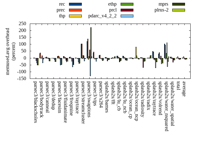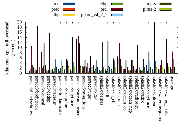 ======= Summary ======= runtime orig rec (overhead) prec (overhead) thp (overhead) ethp (overhead) prcl (overhead) pdarc_v4_2_2 (overhead) mprs (overhead) plrus-2 (overhead) parsec3/blackscholes 139.639 140.106 (0.33) 140.007 (0.26) 139.231 (-0.29) 139.825 (0.13) 151.774 (8.69) 140.699 (0.76) 139.945 (0.22) 139.988 (0.25) parsec3/bodytrack 126.738 127.145 (0.32) 128.071 (1.05) 125.709 (-0.81) 126.754 (0.01) 146.985 (15.98) 127.101 (0.29) 127.181 (0.35) 128.436 (1.34) parsec3/canneal 197.659 216.406 (9.48) 218.139 (10.36) 178.599 (-9.64) 202.600 (2.50) 226.931 (14.81) 219.349 (10.97) 335.016 (69.49) 344.678 (74.38) parsec3/dedup 18.448 18.371 (-0.41) 18.507 (0.32) 18.017 (-2.33) 18.361 (-0.47) 20.636 (11.86) 18.819 (2.01) 19.245 (4.32) 19.029 (3.15) parsec3/facesim 346.486 348.127 (0.47) 348.310 (0.53) 338.491 (-2.31) 339.917 (-1.90) 362.827 (4.72) 349.484 (0.87) 344.296 (-0.63) 346.982 (0.14) parsec3/fluidanimate 343.951 335.702 (-2.40) 335.908 (-2.34) 327.363 (-4.82) 330.267 (-3.98) 339.082 (-1.42) 334.895 (-2.63) 341.261 (-0.78) 344.937 (0.29) parsec3/freqmine 435.902 437.612 (0.39) 435.408 (-0.11) 435.969 (0.02) 437.446 (0.35) 446.943 (2.53) 439.226 (0.76) 437.461 (0.36) 439.167 (0.75) parsec3/raytrace 183.856 183.392 (-0.25) 183.576 (-0.15) 187.443 (1.95) 184.586 (0.40) 203.836 (10.87) 186.722 (1.56) 189.721 (3.19) 188.395 (2.47) parsec3/streamcluster 659.913 709.212 (7.47) 693.306 (5.06) 607.506 (-7.94) 609.194 (-7.69) 720.223 (9.14) 673.247 (2.02) 2711.575 (310.90) 2661.032 (303.24) parsec3/swaptions 221.045 221.680 (0.29) 221.485 (0.20) 221.647 (0.27) 221.700 (0.30) 225.442 (1.99) 223.010 (0.89) 220.451 (-0.27) 221.497 (0.20) parsec3/vips 100.948 101.876 (0.92) 100.987 (0.04) 100.704 (-0.24) 97.779 (-3.14) 103.816 (2.84) 101.476 (0.52) 102.781 (1.82) 103.085 (2.12) parsec3/x264 120.325 126.350 (5.01) 120.677 (0.29) 121.847 (1.26) 120.731 (0.34) 119.024 (-1.08) 126.570 (5.19) 125.851 (4.59) 129.727 (7.81) splash2x/barnes 128.982 133.024 (3.13) 130.662 (1.30) 118.474 (-8.15) 128.207 (-0.60) 146.247 (13.39) 132.709 (2.89) 136.919 (6.15) 138.150 (7.11) splash2x/fft 60.439 61.413 (1.61) 61.305 (1.43) 48.428 (-19.87) 60.892 (0.75) 65.350 (8.12) 62.351 (3.16) 98.971 (63.75) 99.185 (64.11) splash2x/lu_cb 133.655 133.119 (-0.40) 132.593 (-0.80) 132.943 (-0.53) 133.081 (-0.43) 138.832 (3.87) 132.896 (-0.57) 134.455 (0.60) 135.262 (1.20) splash2x/lu_ncb 150.074 152.744 (1.78) 152.256 (1.45) 149.986 (-0.06) 152.203 (1.42) 154.012 (2.62) 151.157 (0.72) 154.591 (3.01) 153.337 (2.17) splash2x/ocean_cp 78.831 84.463 (7.14) 82.105 (4.15) 75.997 (-3.59) 80.572 (2.21) 83.459 (5.87) 82.157 (4.22) 108.539 (37.69) 109.058 (38.34) splash2x/ocean_ncp 154.023 160.855 (4.44) 158.558 (2.94) 110.145 (-28.49) 137.851 (-10.50) 162.293 (5.37) 161.817 (5.06) 226.684 (47.18) 229.398 (48.94) splash2x/radiosity 142.956 142.980 (0.02) 143.214 (0.18) 141.009 (-1.36) 143.173 (0.15) 156.189 (9.26) 143.751 (0.56) 142.792 (-0.11) 142.988 (0.02) splash2x/radix 49.681 50.610 (1.87) 51.239 (3.14) 44.943 (-9.54) 49.068 (-1.23) 51.803 (4.27) 55.235 (11.18) 80.731 (62.50) 80.360 (61.75) splash2x/raytrace 133.575 136.571 (2.24) 135.913 (1.75) 131.277 (-1.72) 133.669 (0.07) 146.328 (9.55) 133.678 (0.08) 134.176 (0.45) 134.087 (0.38) splash2x/volrend 120.132 120.610 (0.40) 120.836 (0.59) 119.637 (-0.41) 119.780 (-0.29) 132.952 (10.67) 120.427 (0.25) 120.237 (0.09) 120.900 (0.64) splash2x/water_nsquared 370.419 370.837 (0.11) 373.543 (0.84) 350.588 (-5.35) 361.773 (-2.33) 418.671 (13.03) 371.403 (0.27) 394.940 (6.62) 392.465 (5.95) splash2x/water_spatial 133.219 133.474 (0.19) 133.154 (-0.05) 133.379 (0.12) 133.563 (0.26) 151.735 (13.90) 135.197 (1.48) 143.109 (7.42) 142.836 (7.22) total 4550.900 4646.670 (2.10) 4619.770 (1.51) 4359.350 (-4.21) 4462.980 (-1.93) 4875.390 (7.13) 4623.400 (1.59) 6970.920 (53.18) 6945.000 (52.61) average 189.621 193.611 (1.84) 192.490 (1.35) 181.640 (-4.33) 185.957 (-0.99) 203.141 (7.54) 192.642 (2.19) 290.455 (26.20) 289.375 (26.42) kdamond_cpu_util orig rec (overhead) prec (overhead) thp (overhead) ethp (overhead) prcl (overhead) pdarc_v4_2_2 (overhead) mprs (overhead) plrus-2 (overhead) parsec3/blackscholes 0.000 0.000 (0.00) 0.816 (0.82) 0.000 (0.00) 1.605 (1.61) 10.473 (10.47) 3.141 (3.14) 0.000 (0.00) 2.460 (2.46) parsec3/bodytrack 0.000 1.811 (1.81) 0.707 (0.71) 0.000 (0.00) 1.281 (1.28) 18.324 (18.32) 4.786 (4.79) 0.000 (0.00) 2.438 (2.44) parsec3/canneal 0.000 2.061 (2.06) 8.180 (8.18) 0.000 (0.00) 2.000 (2.00) 2.764 (2.76) 11.740 (11.74) 0.000 (0.00) 3.172 (3.17) parsec3/dedup 0.000 1.276 (1.28) 0.677 (0.68) 0.000 (0.00) 1.389 (1.39) 15.753 (15.75) 5.937 (5.94) 0.000 (0.00) 1.382 (1.38) parsec3/facesim 0.000 1.725 (1.73) 0.723 (0.72) 0.000 (0.00) 2.086 (2.09) 5.376 (5.38) 5.243 (5.24) 0.000 (0.00) 2.632 (2.63) parsec3/fluidanimate 0.000 1.552 (1.55) 0.812 (0.81) 0.000 (0.00) 1.519 (1.52) 2.170 (2.17) 5.212 (5.21) 0.000 (0.00) 2.685 (2.69) parsec3/freqmine 0.000 1.473 (1.47) 0.818 (0.82) 0.000 (0.00) 1.483 (1.48) 5.609 (5.61) 4.949 (4.95) 0.000 (0.00) 2.677 (2.68) parsec3/raytrace 0.000 1.518 (1.52) 0.821 (0.82) 0.000 (0.00) 1.442 (1.44) 14.230 (14.23) 4.417 (4.42) 0.000 (0.00) 2.546 (2.55) parsec3/streamcluster 0.000 13.423 (13.42) 8.638 (8.64) 0.000 (0.00) 2.542 (2.54) 14.542 (14.54) 11.646 (11.65) 0.000 (0.00) 2.699 (2.70) parsec3/swaptions 0.000 2.688 (2.69) 0.780 (0.78) 0.000 (0.00) 2.633 (2.63) 2.974 (2.97) 5.173 (5.17) 0.000 (0.00) 2.578 (2.58) parsec3/vips 0.000 4.101 (4.10) 0.705 (0.70) 0.000 (0.00) 1.914 (1.91) 6.664 (6.66) 4.606 (4.61) 0.000 (0.00) 2.414 (2.41) parsec3/x264 0.000 3.082 (3.08) 0.741 (0.74) 0.000 (0.00) 1.637 (1.64) 3.305 (3.31) 4.976 (4.98) 0.000 (0.00) 2.482 (2.48) splash2x/barnes 0.000 1.391 (1.39) 0.973 (0.97) 0.000 (0.00) 1.377 (1.38) 12.129 (12.13) 5.958 (5.96) 0.000 (0.00) 2.590 (2.59) splash2x/fft 0.000 1.468 (1.47) 0.867 (0.87) 0.000 (0.00) 1.610 (1.61) 12.584 (12.58) 2.768 (2.77) 0.000 (0.00) 2.458 (2.46) splash2x/lu_cb 0.000 1.554 (1.55) 0.794 (0.79) 0.000
