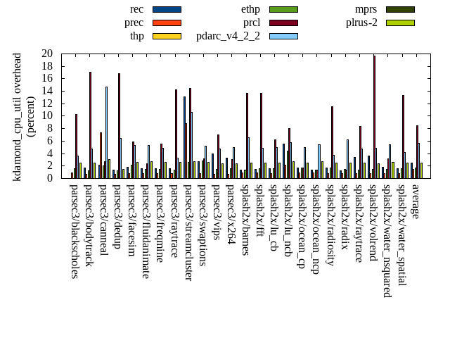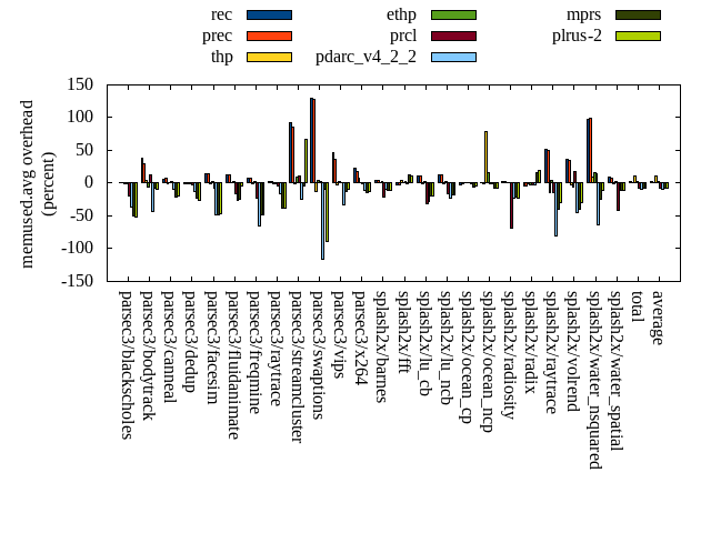 ======= Summary ======= runtime orig rec (overhead) prec (overhead) thp (overhead) ethp (overhead) prcl (overhead) pdarc_v4_2_2 (overhead) mprs (overhead) plrus-2 (overhead) parsec3/blackscholes 139.247 139.760 (0.37) 139.707 (0.33) 139.601 (0.25) 139.805 (0.40) 150.974 (8.42) 140.663 (1.02) 139.687 (0.32) 140.073 (0.59) parsec3/bodytrack 126.928 128.005 (0.85) 127.793 (0.68) 126.113 (-0.64) 127.298 (0.29) 145.506 (14.64) 127.390 (0.36) 127.384 (0.36) 128.289 (1.07) parsec3/canneal 199.551 205.302 (2.88) 233.654 (17.09) 174.433 (-12.59) 205.717 (3.09) 218.969 (9.73) 226.843 (13.68) 339.243 (70.00) 353.882 (77.34) parsec3/dedup 18.282 18.374 (0.50) 18.378 (0.52) 18.165 (-0.64) 18.392 (0.60) 20.887 (14.25) 18.858 (3.15) 19.001 (3.93) 19.243 (5.26) parsec3/facesim 349.364 343.638 (-1.64) 344.883 (-1.28) 335.149 (-4.07) 347.377 (-0.57) 364.580 (4.36) 345.662 (-1.06) 345.989 (-0.97) 351.766 (0.69) parsec3/fluidanimate 334.887 334.105 (-0.23) 335.709 (0.25) 330.627 (-1.27) 331.490 (-1.01) 337.628 (0.82) 335.185 (0.09) 340.859 (1.78) 341.748 (2.05) parsec3/freqmine 434.909 437.938 (0.70) 437.091 (0.50) 435.566 (0.15) 437.243 (0.54) 447.439 (2.88) 437.332 (0.56) 436.940 (0.47) 437.242 (0.54) parsec3/raytrace 182.557 184.739 (1.20) 184.777 (1.22) 188.268 (3.13) 185.224 (1.46) 206.110 (12.90) 183.818 (0.69) 185.352 (1.53) 187.073 (2.47) parsec3/streamcluster 645.134 757.181 (17.37) 659.811 (2.28) 559.470 (-13.28) 547.782 (-15.09) 713.737 (10.63) 657.356 (1.89) 2610.112 (304.58) 2694.762 (317.71) parsec3/swaptions 222.569 222.123 (-0.20) 221.843 (-0.33) 224.497 (0.87) 222.772 (0.09) 225.591 (1.36) 221.367 (-0.54) 221.155 (-0.64) 222.651 (0.04) parsec3/vips 100.905 102.094 (1.18) 100.734 (-0.17) 100.422 (-0.48) 97.750 (-3.13) 104.331 (3.40) 100.802 (-0.10) 102.835 (1.91) 103.515 (2.59) parsec3/x264 122.088 117.072 (-4.11) 122.628 (0.44) 120.679 (-1.15) 119.568 (-2.06) 116.050 (-4.95) 123.976 (1.55) 125.021 (2.40) 126.172 (3.35) splash2x/barnes 129.635 130.276 (0.49) 131.590 (1.51) 119.104 (-8.12) 128.140 (-1.15) 149.193 (15.09) 133.422 (2.92) 138.814 (7.08) 138.243 (6.64) splash2x/fft 59.904 61.429 (2.55) 60.412 (0.85) 47.381 (-20.90) 60.456 (0.92) 66.610 (11.19) 64.127 (7.05) 98.333 (64.15) 98.222 (63.97) splash2x/lu_cb 131.985 133.573 (1.20) 133.013 (0.78) 132.450 (0.35) 132.597 (0.46) 139.175 (5.45) 133.080 (0.83) 134.873 (2.19) 134.950 (2.25) splash2x/lu_ncb 149.552 151.745 (1.47) 150.908 (0.91) 150.232 (0.45) 152.017 (1.65) 152.802 (2.17) 151.822 (1.52) 154.365 (3.22) 154.621 (3.39) splash2x/ocean_cp 80.996 78.771 (-2.75) 80.173 (-1.02) 80.066 (-1.15) 81.617 (0.77) 80.739 (-0.32) 82.599 (1.98) 103.988 (28.39) 115.396 (42.47) splash2x/ocean_ncp 156.408 157.489 (0.69) 162.104 (3.64) 100.572 (-35.70) 146.891 (-6.08) 166.294 (6.32) 164.579 (5.22) 224.245 (43.37) 241.206 (54.22) splash2x/radiosity 142.793 143.268 (0.33) 143.317 (0.37) 141.689 (-0.77) 143.497 (0.49) 156.270 (9.44) 144.015 (0.86) 142.977 (0.13) 144.196 (0.98) splash2x/radix 52.002 50.816 (-2.28) 51.263 (-1.42) 44.650 (-14.14) 50.295 (-3.28) 51.407 (-1.15) 54.665 (5.12) 80.010 (53.86) 86.432 (66.21) splash2x/raytrace 136.397 134.498 (-1.39) 134.760 (-1.20) 133.278 (-2.29) 133.415 (-2.19) 148.964 (9.21) 134.910 (-1.09) 135.815 (-0.43) 135.347 (-0.77) splash2x/volrend 119.917 120.489 (0.48) 121.772 (1.55) 119.507 (-0.34) 119.651 (-0.22) 133.740 (11.53) 121.325 (1.17) 120.906 (0.83) 121.597 (1.40) splash2x/water_nsquared 371.576 373.869 (0.62) 372.220 (0.17) 350.681 (-5.62) 360.553 (-2.97) 410.217 (10.40) 374.744 (0.85) 393.277 (5.84) 394.866 (6.27) splash2x/water_spatial 132.472 133.415 (0.71) 132.993 (0.39) 135.239 (2.09) 134.135 (1.26) 152.296 (14.96) 135.328 (2.16) 142.301 (7.42) 143.033 (7.97) total 4540.070 4659.980 (2.64) 4601.510 (1.35) 4307.850 (-5.11) 4423.670 (-2.56) 4859.510 (7.04) 4613.870 (1.63) 6863.480 (51.18) 7014.520 (54.50) average 189.170 194.166 (0.87) 191.730 (1.17) 179.494 (-4.83) 184.320 (-1.07) 202.480 (7.20) 192.245 (2.08) 285.978 (25.07) 292.272 (27.86) kdamond_cpu_util orig rec (overhead) prec (overhead) thp (overhead) ethp (overhead) prcl (overhead) pdarc_v4_2_2 (overhead) mprs (overhead) plrus-2 (overhead) parsec3/blackscholes 0.000 0.000 (0.00) 0.926 (0.93) 0.000 (0.00) 1.570 (1.57) 10.263 (10.26) 3.623 (3.62) 0.000 (0.00) 2.447 (2.45) parsec3/bodytrack 0.000 1.680 (1.68) 0.728 (0.73) 0.000 (0.00) 1.253 (1.25) 17.053 (17.05) 4.764 (4.76) 0.000 (0.00) 2.449 (2.45) parsec3/canneal 0.000 2.143 (2.14) 7.350 (7.35) 0.000 (0.00) 2.014 (2.01) 2.713 (2.71) 14.673 (14.67) 0.000 (0.00) 3.069 (3.07) parsec3/dedup 0.000 1.300 (1.30) 0.639 (0.64) 0.000 (0.00) 1.234 (1.23) 16.824 (16.82) 6.452 (6.45) 0.000 (0.00) 1.481 (1.48) parsec3/facesim 0.000 1.829 (1.83) 0.807 (0.81) 0.000 (0.00) 2.123 (2.12) 5.881 (5.88) 5.307 (5.31) 0.000 (0.00) 2.640 (2.64) parsec3/fluidanimate 0.000 1.560 (1.56) 0.820 (0.82) 0.000 (0.00) 1.510 (1.51) 2.402 (2.40) 5.272 (5.27) 0.000 (0.00) 2.674 (2.67) parsec3/freqmine 0.000 1.594 (1.59) 0.813 (0.81) 0.000 (0.00) 1.498 (1.50) 5.554 (5.55) 4.879 (4.88) 0.000 (0.00) 2.636 (2.64) parsec3/raytrace 0.000 1.544 (1.54) 0.813 (0.81) 0.000 (0.00) 1.406 (1.41) 14.194 (14.19) 3.265 (3.26) 0.000 (0.00) 2.576 (2.58) parsec3/streamcluster 0.000 13.147 (13.15) 8.814 (8.81) 0.000 (0.00) 2.625 (2.62) 14.493 (14.49) 10.648 (10.65) 0.000 (0.00) 2.698 (2.70) parsec3/swaptions 0.000 2.687 (2.69) 0.779 (0.78) 0.000 (0.00) 2.804 (2.80) 3.183 (3.18) 5.168 (5.17) 0.000 (0.00) 2.564 (2.56) parsec3/vips 0.000 3.950 (3.95) 0.637 (0.64) 0.000 (0.00) 1.483 (1.48) 6.985 (6.99) 4.724 (4.72) 0.000 (0.00) 2.387 (2.39) parsec3/x264 0.000 3.238 (3.24) 0.728 (0.73) 0.000 (0.00) 1.543 (1.54) 3.088 (3.09) 4.964 (4.96) 0.000 (0.00) 2.417 (2.42) splash2x/barnes 0.000 1.382 (1.38) 0.945 (0.95) 0.000 (0.00) 1.342 (1.34) 13.672 (13.67) 6.601 (6.60) 0.000 (0.00) 2.531 (2.53) splash2x/fft 0.000 1.490 (1.49) 0.858 (0.86) 0.000 (0.00) 1.579 (1.58) 13.699 (13.70) 4.853 (4.85) 0.000 (0.00) 2.431 (2.43) splash2x/lu_cb 0.000 1.602 (1.60) 0.816 (0.
