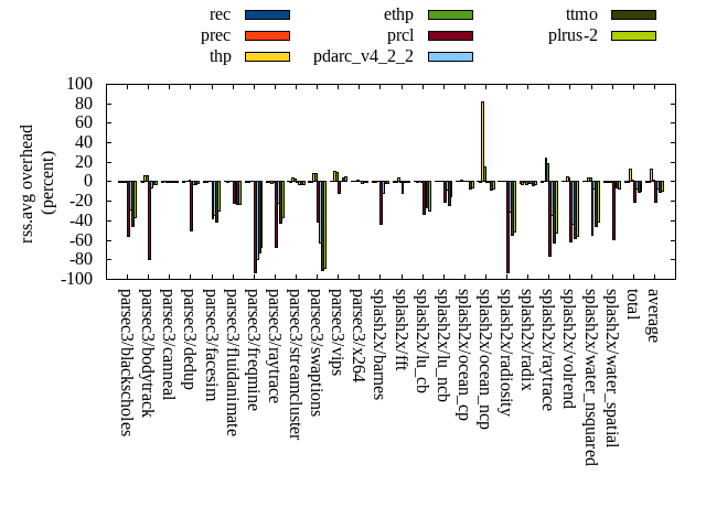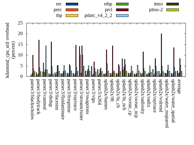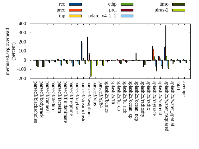 ======= Summary ======= runtime orig rec (overhead) prec (overhead) thp (overhead) ethp (overhead) prcl (overhead) pdarc_v4_2_2 (overhead) ttmo (overhead) plrus-2 (overhead) parsec3/blackscholes 139.851 140.552 (0.50) 139.963 (0.08) 139.175 (-0.48) 139.853 (0.00) 151.325 (8.21) 140.518 (0.48) 140.614 (0.55) 140.672 (0.59) parsec3/bodytrack 125.683 125.503 (-0.14) 126.012 (0.26) 124.094 (-1.26) 124.707 (-0.78) 144.086 (14.64) 126.492 (0.64) 125.646 (-0.03) 124.939 (-0.59) parsec3/canneal 208.383 213.156 (2.29) 220.265 (5.70) 180.860 (-13.21) 207.234 (-0.55) 224.821 (7.89) 225.113 (8.03) 234.780 (12.67) 232.863 (11.75) parsec3/dedup 18.375 18.839 (2.52) 18.753 (2.06) 18.394 (0.10) 18.675 (1.63) 20.949 (14.01) 18.781 (2.21) 18.358 (-0.09) 18.442 (0.36) parsec3/facesim 353.180 348.282 (-1.39) 350.356 (-0.80) 341.224 (-3.39) 342.427 (-3.04) 361.351 (2.31) 347.479 (-1.61) 350.158 (-0.86) 357.304 (1.17) parsec3/fluidanimate 339.953 336.089 (-1.14) 337.163 (-0.82) 325.464 (-4.26) 332.847 (-2.09) 344.034 (1.20) 334.565 (-1.59) 334.770 (-1.52) 337.175 (-0.82) parsec3/freqmine 437.816 436.986 (-0.19) 437.421 (-0.09) 437.073 (-0.17) 436.812 (-0.23) 446.363 (1.95) 438.483 (0.15) 440.320 (0.57) 438.363 (0.12) parsec3/raytrace 184.395 184.817 (0.23) 184.006 (-0.21) 184.021 (-0.20) 182.704 (-0.92) 206.397 (11.93) 188.555 (2.26) 189.421 (2.73) 187.584 (1.73) parsec3/streamcluster 643.569 710.679 (10.43) 692.141 (7.55) 569.868 (-11.45) 616.035 (-4.28) 704.634 (9.49) 692.361 (7.58) 742.362 (15.35) 692.640 (7.62) parsec3/swaptions 224.658 224.590 (-0.03) 222.444 (-0.99) 222.913 (-0.78) 222.793 (-0.83) 225.392 (0.33) 221.397 (-1.45) 221.757 (-1.29) 221.884 (-1.23) parsec3/vips 87.656 89.535 (2.14) 88.008 (0.40) 87.602 (-0.06) 87.731 (0.09) 90.974 (3.78) 94.477 (7.78) 98.105 (11.92) 97.665 (11.42) parsec3/x264 121.938 119.980 (-1.60) 117.572 (-3.58) 113.788 (-6.68) 111.834 (-8.29) 121.987 (0.04) 109.743 (-10.00) 117.068 (-3.99) 122.389 (0.37) splash2x/barnes 130.162 130.524 (0.28) 130.912 (0.58) 118.311 (-9.10) 129.177 (-0.76) 147.216 (13.10) 133.796 (2.79) 132.590 (1.87) 134.548 (3.37) splash2x/fft 62.608 61.950 (-1.05) 60.750 (-2.97) 47.034 (-24.88) 61.756 (-1.36) 65.228 (4.18) 63.411 (1.28) 72.642 (16.03) 76.367 (21.98) splash2x/lu_cb 132.807 133.777 (0.73) 133.685 (0.66) 132.594 (-0.16) 133.072 (0.20) 138.449 (4.25) 133.565 (0.57) 134.365 (1.17) 134.922 (1.59) splash2x/lu_ncb 151.519 154.170 (1.75) 150.023 (-0.99) 150.575 (-0.62) 152.221 (0.46) 152.571 (0.69) 150.142 (-0.91) 154.061 (1.68) 152.166 (0.43) splash2x/ocean_cp 82.471 80.971 (-1.82) 79.632 (-3.44) 76.076 (-7.75) 81.238 (-1.49) 88.834 (7.72) 81.741 (-0.88) 83.197 (0.88) 89.390 (8.39) splash2x/ocean_ncp 165.567 162.836 (-1.65) 164.711 (-0.52) 112.790 (-31.88) 141.425 (-14.58) 161.749 (-2.31) 165.849 (0.17) 186.114 (12.41) 184.838 (11.64) splash2x/radiosity 142.509 142.354 (-0.11) 143.338 (0.58) 141.306 (-0.84) 142.855 (0.24) 157.351 (10.41) 144.813 (1.62) 148.187 (3.98) 147.250 (3.33) splash2x/radix 52.671 51.065 (-3.05) 51.037 (-3.10) 45.285 (-14.02) 50.002 (-5.07) 51.127 (-2.93) 55.199 (4.80) 56.284 (6.86) 56.654 (7.56) splash2x/raytrace 133.485 135.791 (1.73) 133.103 (-0.29) 133.800 (0.24) 134.336 (0.64) 150.819 (12.99) 133.283 (-0.15) 139.289 (4.35) 138.486 (3.75) splash2x/volrend 120.093 121.615 (1.27) 120.808 (0.60) 120.083 (-0.01) 120.005 (-0.07) 132.947 (10.70) 120.906 (0.68) 121.277 (0.99) 121.431 (1.11) splash2x/water_nsquared 372.966 371.159 (-0.48) 370.856 (-0.57) 356.729 (-4.35) 362.588 (-2.78) 418.198 (12.13) 372.357 (-0.16) 395.060 (5.92) 398.370 (6.81) splash2x/water_spatial 134.354 134.860 (0.38) 133.541 (-0.61) 136.480 (1.58) 135.506 (0.86) 151.649 (12.87) 136.752 (1.79) 136.543 (1.63) 136.220 (1.39) total 4566.690 4630.080 (1.39) 4606.500 (0.87) 4315.520 (-5.50) 4467.830 (-2.16) 4858.460 (6.39) 4629.780 (1.38) 4772.960 (4.52) 4742.560 (3.85) average 190.279 192.920 (0.48) 191.938 (-0.02) 179.813 (-5.57) 186.160 (-1.79) 202.436 (6.65) 192.907 (1.09) 198.873 (3.91) 197.607 (4.33) kdamond_cpu_util orig rec (overhead) prec (overhead) thp (overhead) ethp (overhead) prcl (overhead) pdarc_v4_2_2 (overhead) ttmo (overhead) plrus-2 (overhead) parsec3/blackscholes 0.000 0.000 (0.00) 0.797 (0.80) 0.000 (0.00) 1.583 (1.58) 9.992 (9.99) 3.711 (3.71) 0.000 (0.00) 2.406 (2.41) parsec3/bodytrack 0.000 1.831 (1.83) 0.728 (0.73) 0.000 (0.00) 1.303 (1.30) 17.149 (17.15) 4.194 (4.19) 0.000 (0.00) 2.370 (2.37) parsec3/canneal 0.000 2.233 (2.23) 6.312 (6.31) 0.000 (0.00) 2.018 (2.02) 3.275 (3.28) 14.375 (14.37) 0.000 (0.00) 3.251 (3.25) parsec3/dedup 0.000 1.375 (1.37) 0.666 (0.67) 0.000 (0.00) 1.310 (1.31) 16.232 (16.23) 4.640 (4.64) 0.000 (0.00) 1.295 (1.29) parsec3/facesim 0.000 1.822 (1.82) 0.828 (0.83) 0.000 (0.00) 2.181 (2.18) 5.222 (5.22) 5.267 (5.27) 0.000 (0.00) 2.612 (2.61) parsec3/fluidanimate 0.000 1.579 (1.58) 0.844 (0.84) 0.000 (0.00) 1.558 (1.56) 2.554 (2.55) 5.268 (5.27) 0.000 (0.00) 2.651 (2.65) parsec3/freqmine 0.000 1.687 (1.69) 0.826 (0.83) 0.000 (0.00) 1.492 (1.49) 5.673 (5.67) 4.909 (4.91) 0.000 (0.00) 2.659 (2.66) parsec3/raytrace 0.000 1.527 (1.53) 0.834 (0.83) 0.000 (0.00) 1.515 (1.52) 14.722 (14.72) 4.304 (4.30) 0.000 (0.00) 2.543 (2.54) parsec3/streamcluster 0.000 14.101 (14.10) 10.188 (10.19) 0.000 (0.00) 1.639 (1.64) 14.473 (14.47) 10.097 (10.10) 0.000 (0.00) 4.904 (4.90) parsec3/swaptions 0.000 2.748 (2.75) 0.794 (0.79) 0.000 (0.00) 2.532 (2.53) 3.376 (3.38) 5.044 (5.04) 0.000 (0.00) 2.588 (2.59) parsec3/vips 0.000 4.871 (4.87) 0.768 (0.77) 0.000 (0.00) 1.243 (1.24) 6.904 (6.90) 3.858 (3.86) 0.000 (0.00) 2.270 (2.27) parsec3/x264 0.000 3.370 (3.37) 0.772 (0.77) 0.000 (0.00) 1.602 (1.60) 3.354 (3.35) 4.075 (4.07) 0.000 (0.00) 2.396 (2.40) splash2x/barnes 0.000 1.328 (1.33) 0.921 (0.92) 0.000 (0.00) 1.471 (1.47) 12.602 (12.60) 6.107 (6.11) 0.000 (0.00) 2.488 (2.49) splash2x/fft 0.000 1.515 (1.52) 0.857 (0.86) 0.000 (0.00) 1.641 (1.64) 14.418 (14.42) 2.725 (2.72) 0.000 (0.00) 2.421 (2.42) splash2x/lu_cb 0.000 1.579 (1.58) 