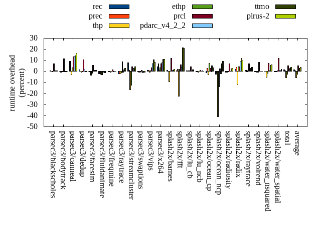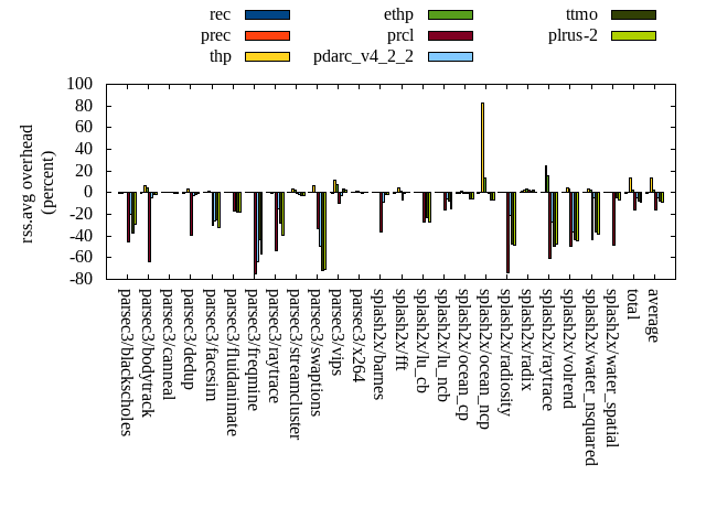 ======= Summary ======= runtime orig rec (overhead) prec (overhead) thp (overhead) ethp (overhead) prcl (overhead) pdarc_v4_2_2 (overhead) ttmo (overhead) plrus-2 (overhead) parsec3/blackscholes 139.473 140.226 (0.54) 139.728 (0.18) 139.212 (-0.19) 139.999 (0.38) 148.984 (6.82) 140.373 (0.65) 140.349 (0.63) 140.507 (0.74) parsec3/bodytrack 126.126 126.156 (0.02) 125.254 (-0.69) 125.537 (-0.47) 125.810 (-0.25) 140.675 (11.53) 125.783 (-0.27) 125.647 (-0.38) 126.091 (-0.03) parsec3/canneal 205.962 224.675 (9.09) 224.465 (8.98) 199.384 (-3.19) 213.006 (3.42) 233.739 (13.49) 233.211 (13.23) 234.712 (13.96) 240.020 (16.54) parsec3/dedup 18.538 18.826 (1.55) 18.530 (-0.04) 18.393 (-0.78) 18.491 (-0.25) 20.519 (10.68) 18.802 (1.42) 18.479 (-0.32) 18.445 (-0.50) parsec3/facesim 348.379 348.578 (0.06) 347.396 (-0.28) 336.661 (-3.36) 342.906 (-1.57) 367.784 (5.57) 349.366 (0.28) 352.895 (1.30) 351.593 (0.92) parsec3/fluidanimate 342.484 335.744 (-1.97) 334.673 (-2.28) 333.684 (-2.57) 332.204 (-3.00) 343.325 (0.25) 339.829 (-0.78) 338.312 (-1.22) 342.613 (0.04) parsec3/freqmine 439.082 438.531 (-0.13) 438.527 (-0.13) 435.067 (-0.91) 439.248 (0.04) 445.162 (1.38) 438.615 (-0.11) 439.521 (0.10) 439.011 (-0.02) parsec3/raytrace 186.357 182.845 (-1.88) 182.275 (-2.19) 183.481 (-1.54) 184.234 (-1.14) 202.882 (8.87) 185.256 (-0.59) 188.878 (1.35) 191.597 (2.81) parsec3/streamcluster 675.296 727.715 (7.76) 683.529 (1.22) 564.564 (-16.40) 589.702 (-12.68) 703.233 (4.14) 693.819 (2.74) 692.787 (2.59) 704.121 (4.27) parsec3/swaptions 223.611 223.330 (-0.13) 222.321 (-0.58) 222.611 (-0.45) 221.799 (-0.81) 226.118 (1.12) 221.456 (-0.96) 222.199 (-0.63) 221.912 (-0.76) parsec3/vips 87.573 88.564 (1.13) 88.631 (1.21) 87.115 (-0.52) 88.260 (0.78) 90.456 (3.29) 93.487 (6.75) 96.647 (10.36) 95.037 (8.52) parsec3/x264 112.527 117.483 (4.40) 120.573 (7.15) 113.602 (0.95) 116.161 (3.23) 120.152 (6.78) 121.217 (7.72) 124.706 (10.82) 125.170 (11.24) splash2x/barnes 130.881 132.218 (1.02) 131.138 (0.20) 118.629 (-9.36) 131.332 (0.34) 146.650 (12.05) 132.406 (1.17) 132.507 (1.24) 133.671 (2.13) splash2x/fft 60.836 61.260 (0.70) 61.983 (1.89) 47.145 (-22.50) 62.077 (2.04) 64.449 (5.94) 63.178 (3.85) 73.873 (21.43) 73.710 (21.16) splash2x/lu_cb 132.536 133.299 (0.58) 132.853 (0.24) 133.144 (0.46) 133.357 (0.62) 138.010 (4.13) 133.034 (0.38) 134.568 (1.53) 134.673 (1.61) splash2x/lu_ncb 152.025 151.825 (-0.13) 151.738 (-0.19) 150.756 (-0.83) 152.211 (0.12) 153.398 (0.90) 152.047 (0.01) 152.896 (0.57) 152.486 (0.30) splash2x/ocean_cp 81.820 80.973 (-1.03) 84.016 (2.68) 79.420 (-2.93) 87.779 (7.28) 84.319 (3.05) 81.672 (-0.18) 86.043 (5.16) 84.504 (3.28) splash2x/ocean_ncp 170.553 165.960 (-2.69) 168.167 (-1.40) 101.007 (-40.78) 146.874 (-13.88) 174.683 (2.42) 166.844 (-2.17) 182.061 (6.75) 185.943 (9.02) splash2x/radiosity 143.493 142.269 (-0.85) 142.731 (-0.53) 142.636 (-0.60) 143.176 (-0.22) 153.232 (6.79) 144.032 (0.38) 146.668 (2.21) 147.343 (2.68) splash2x/radix 50.304 51.244 (1.87) 52.099 (3.57) 44.301 (-11.93) 52.380 (4.13) 52.453 (4.27) 54.639 (8.62) 56.195 (11.71) 55.242 (9.82) splash2x/raytrace 134.467 135.058 (0.44) 135.808 (1.00) 134.102 (-0.27) 135.448 (0.73) 143.941 (7.05) 136.084 (1.20) 138.368 (2.90) 139.581 (3.80) splash2x/volrend 120.908 120.657 (-0.21) 121.131 (0.18) 120.047 (-0.71) 120.259 (-0.54) 130.741 (8.13) 121.197 (0.24) 120.920 (0.01) 121.079 (0.14) splash2x/water_nsquared 371.632 372.629 (0.27) 371.773 (0.04) 352.566 (-5.13) 365.026 (-1.78) 398.314 (7.18) 373.607 (0.53) 392.841 (5.71) 393.562 (5.90) splash2x/water_spatial 134.732 134.237 (-0.37) 134.297 (-0.32) 134.462 (-0.20) 135.692 (0.71) 150.736 (11.88) 136.379 (1.22) 135.776 (0.78) 137.257 (1.87) total 4589.600 4654.300 (1.41) 4613.640 (0.52) 4317.520 (-5.93) 4477.440 (-2.44) 4833.950 (5.32) 4656.350 (1.45) 4727.870 (3.01) 4755.160 (3.61) average 191.233 193.929 (0.83) 192.235 (0.83) 179.897 (-5.18) 186.560 (-0.51) 201.415 (6.15) 194.015 (1.89) 196.995 (4.11) 198.132 (4.40) kdamond_cpu_util orig rec (overhead) prec (overhead) thp (overhead) ethp (overhead) prcl (overhead) pdarc_v4_2_2 (overhead) ttmo (overhead) plrus-2 (overhead) parsec3/blackscholes 0.000 0.000 (0.00) 0.654 (0.65) 0.000 (0.00) 1.209 (1.21) 8.364 (8.36) 2.904 (2.90) 0.000 (0.00) 1.983 (1.98) parsec3/bodytrack 0.000 1.312 (1.31) 0.625 (0.63) 0.000 (0.00) 1.068 (1.07) 13.810 (13.81) 3.203 (3.20) 0.000 (0.00) 1.919 (1.92) parsec3/canneal 0.000 1.676 (1.68) 2.917 (2.92) 0.000 (0.00) 1.502 (1.50) 2.320 (2.32) 8.514 (8.51) 0.000 (0.00) 2.465 (2.47) parsec3/dedup 0.000 1.006 (1.01) 0.584 (0.58) 0.000 (0.00) 1.055 (1.05) 13.073 (13.07) 3.007 (3.01) 0.000 (0.00) 1.335 (1.34) parsec3/facesim 0.000 1.440 (1.44) 0.665 (0.66) 0.000 (0.00) 1.673 (1.67) 4.722 (4.72) 4.219 (4.22) 0.000 (0.00) 2.100 (2.10) parsec3/fluidanimate 0.000 1.269 (1.27) 0.667 (0.67) 0.000 (0.00) 1.195 (1.20) 1.531 (1.53) 4.285 (4.29) 0.000 (0.00) 2.106 (2.11) parsec3/freqmine 0.000 1.177 (1.18) 0.653 (0.65) 0.000 (0.00) 1.174 (1.17) 4.542 (4.54) 3.904 (3.90) 0.000 (0.00) 2.103 (2.10) parsec3/raytrace 0.000 1.193 (1.19) 0.665 (0.67) 0.000 (0.00) 1.164 (1.16) 11.493 (11.49) 3.158 (3.16) 0.000 (0.00) 2.015 (2.01) parsec3/streamcluster 0.000 11.348 (11.35) 9.067 (9.07) 0.000 (0.00) 1.341 (1.34) 11.562 (11.56) 8.064 (8.06) 0.000 (0.00) 2.924 (2.92) parsec3/swaptions 0.000 2.251 (2.25) 0.645 (0.64) 0.000 (0.00) 2.179 (2.18) 2.435 (2.43) 4.075 (4.08) 0.000 (0.00) 2.047 (2.05) parsec3/vips 0.000 3.678 (3.68) 0.611 (0.61) 0.000 (0.00) 1.239 (1.24) 5.377 (5.38) 3.054 (3.05) 0.000 (0.00) 1.866 (1.87) parsec3/x264 0.000 2.669 (2.67) 0.631 (0.63) 0.000 (0.00) 1.251 (1.25) 2.697 (2.70) 3.346 (3.35) 0.000 (0.00) 1.894 (1.89) splash2x/barnes 0.000 1.086 (1.09) 0.701 (0.70) 0.000 (0.00) 1.107 (1.11) 10.656 (10.66) 5.195 (5.19) 0.000 (0.00) 2.008 (2.01) splash2x/fft 0.000 1.177 (1.18) 0.704 (0.70) 0.000 (0.00) 1.263 (1.26) 10.010 (10.01) 3.933 (3.93) 0.000 (0.00) 1.950 (1.95) splash2x/lu_cb 0.000 1.277 (1.28) 0.641 (0.64) 0.000 (0.00) 