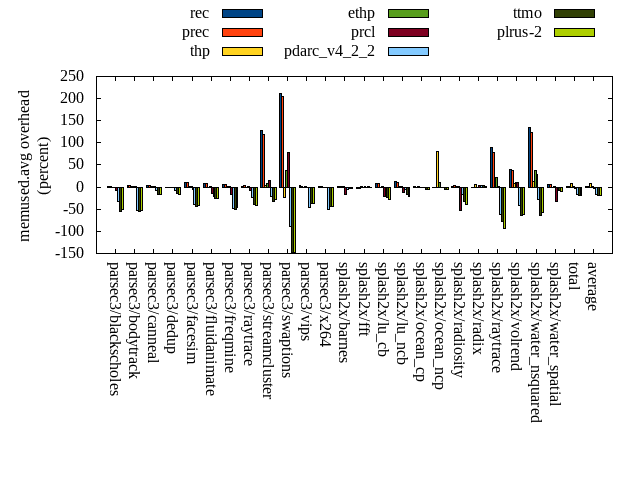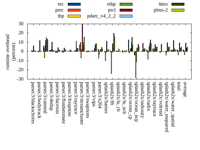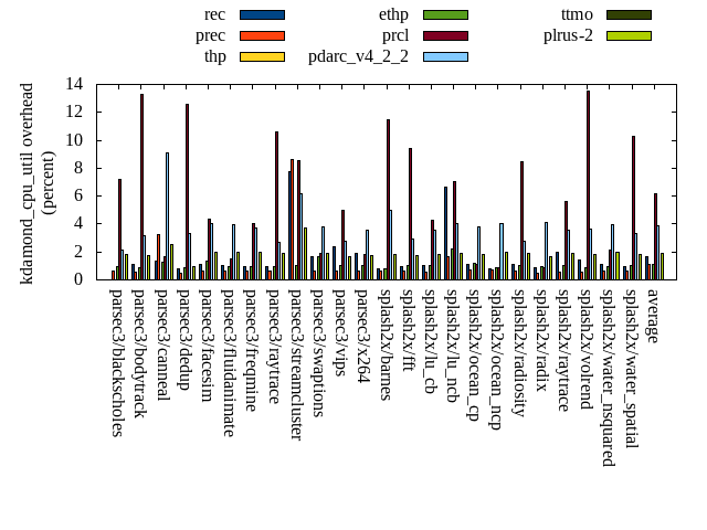======= Summary ======= runtime orig rec (overhead) prec (overhead) thp (overhead) ethp (overhead) prcl (overhead) pdarc_v4_2_2 (overhead) ttmo (overhead) plrus-2 (overhead) parsec3/blackscholes 139.299 140.152 (0.61) 140.942 (1.18) 139.126 (-0.12) 139.838 (0.39) 148.226 (6.41) 139.838 (0.39) 140.451 (0.83) 140.153 (0.61) parsec3/bodytrack 125.978 126.630 (0.52) 126.043 (0.05) 125.375 (-0.48) 126.989 (0.80) 141.027 (11.95) 126.546 (0.45) 126.020 (0.03) 126.257 (0.22) parsec3/canneal 205.796 217.806 (5.84) 213.070 (3.53) 191.188 (-7.10) 219.062 (6.45) 230.250 (11.88) 236.968 (15.15) 233.559 (13.49) 232.565 (13.01) parsec3/dedup 18.308 18.498 (1.03) 18.540 (1.26) 18.536 (1.24) 18.773 (2.54) 20.229 (10.49) 18.556 (1.36) 18.397 (0.49) 18.505 (1.08) parsec3/facesim 347.985 345.236 (-0.79) 350.965 (0.86) 343.760 (-1.21) 343.671 (-1.24) 362.992 (4.31) 350.608 (0.75) 353.968 (1.72) 351.295 (0.95) parsec3/fluidanimate 333.447 333.350 (-0.03) 337.294 (1.15) 330.469 (-0.89) 330.684 (-0.83) 346.778 (4.00) 341.068 (2.29) 333.479 (0.01) 340.069 (1.99) parsec3/freqmine 435.836 436.189 (0.08) 438.110 (0.52) 436.429 (0.14) 437.243 (0.32) 444.309 (1.94) 441.964 (1.41) 438.226 (0.55) 436.474 (0.15) parsec3/raytrace 182.712 183.584 (0.48) 182.916 (0.11) 184.880 (1.19) 184.397 (0.92) 203.264 (11.25) 185.943 (1.77) 189.059 (3.47) 189.367 (3.64) parsec3/streamcluster 620.040 665.790 (7.38) 681.444 (9.90) 576.776 (-6.98) 633.310 (2.14) 805.261 (29.87) 684.876 (10.46) 665.319 (7.30) 718.683 (15.91) parsec3/swaptions 222.479 222.874 (0.18) 221.407 (-0.48) 223.563 (0.49) 221.877 (-0.27) 224.705 (1.00) 222.039 (-0.20) 223.014 (0.24) 221.791 (-0.31) parsec3/vips 87.906 89.036 (1.29) 88.045 (0.16) 88.089 (0.21) 88.616 (0.81) 91.093 (3.63) 93.573 (6.45) 95.134 (8.22) 95.462 (8.60) parsec3/x264 114.770 117.591 (2.46) 106.467 (-7.23) 111.575 (-2.78) 115.830 (0.92) 117.231 (2.14) 116.371 (1.40) 120.111 (4.65) 117.899 (2.73) splash2x/barnes 131.552 131.892 (0.26) 130.726 (-0.63) 118.420 (-9.98) 129.773 (-1.35) 146.607 (11.44) 134.100 (1.94) 132.007 (0.35) 134.338 (2.12) splash2x/fft 60.891 61.497 (0.99) 60.741 (-0.25) 46.295 (-23.97) 60.429 (-0.76) 66.093 (8.54) 63.030 (3.51) 73.002 (19.89) 70.614 (15.97) splash2x/lu_cb 133.269 134.606 (1.00) 133.043 (-0.17) 133.188 (-0.06) 133.774 (0.38) 137.319 (3.04) 133.346 (0.06) 133.479 (0.16) 134.027 (0.57) splash2x/lu_ncb 152.099 154.027 (1.27) 150.993 (-0.73) 152.576 (0.31) 152.781 (0.45) 153.331 (0.81) 151.423 (-0.44) 152.106 (0.00) 153.971 (1.23) splash2x/ocean_cp 78.912 88.973 (12.75) 77.746 (-1.48) 79.042 (0.16) 81.195 (2.89) 81.853 (3.73) 86.680 (9.84) 91.018 (15.34) 84.356 (6.90) splash2x/ocean_ncp 168.151 161.739 (-3.81) 161.893 (-3.72) 120.713 (-28.21) 149.533 (-11.07) 174.527 (3.79) 169.562 (0.84) 181.827 (8.13) 177.752 (5.71) splash2x/radiosity 141.945 142.202 (0.18) 142.365 (0.30) 142.081 (0.10) 143.043 (0.77) 154.807 (9.06) 143.970 (1.43) 146.180 (2.98) 146.416 (3.15) splash2x/radix 50.876 51.826 (1.87) 51.475 (1.18) 46.582 (-8.44) 50.458 (-0.82) 53.751 (5.65) 55.311 (8.72) 57.387 (12.80) 55.297 (8.69) splash2x/raytrace 133.389 137.853 (3.35) 136.666 (2.46) 133.082 (-0.23) 137.564 (3.13) 143.522 (7.60) 135.975 (1.94) 139.657 (4.70) 140.384 (5.24) splash2x/volrend 120.847 120.962 (0.10) 121.127 (0.23) 119.498 (-1.12) 120.646 (-0.17) 130.375 (7.89) 121.228 (0.32) 120.872 (0.02) 121.176 (0.27) splash2x/water_nsquared 373.922 374.062 (0.04) 375.803 (0.50) 359.263 (-3.92) 371.104 (-0.75) 410.268 (9.72) 375.839 (0.51) 390.954 (4.56) 393.184 (5.15) splash2x/water_spatial 133.240 135.558 (1.74) 134.363 (0.84) 135.184 (1.46) 135.341 (1.58) 149.208 (11.98) 137.626 (3.29) 135.518 (1.71) 136.082 (2.13) total 4513.660 4591.930 (1.73) 4582.180 (1.52) 4355.670 (-3.50) 4525.930 (0.27) 4937.030 (9.38) 4666.440 (3.38) 4690.760 (3.92) 4736.110 (4.93) average 188.069 191.330 (1.62) 190.924 (0.40) 181.486 (-3.76) 188.580 (0.30) 205.710 (7.59) 194.435 (3.07) 195.448 (4.65) 197.338 (4.40) kdamond_cpu_util orig rec (overhead) prec (overhead) thp (overhead) ethp (overhead) prcl (overhead) pdarc_v4_2_2 (overhead) ttmo (overhead) plrus-2 (overhead) parsec3/blackscholes 0.000 0.000 (0.00) 0.595 (0.59) 0.000 (0.00) 0.946 (0.95) 7.187 (7.19) 2.170 (2.17) 0.000 (0.00) 1.827 (1.83) parsec3/bodytrack 0.000 1.106 (1.11) 0.575 (0.58) 0.000 (0.00) 0.853 (0.85) 13.267 (13.27) 3.186 (3.19) 0.000 (0.00) 1.745 (1.75) parsec3/canneal 0.000 1.313 (1.31) 3.281 (3.28) 0.000 (0.00) 1.266 (1.27) 1.636 (1.64) 9.070 (9.07) 0.000 (0.00) 2.553 (2.55) parsec3/dedup 0.000 0.811 (0.81) 0.503 (0.50) 0.000 (0.00) 0.834 (0.83) 12.574 (12.57) 3.293 (3.29) 0.000 (0.00) 0.984 (0.98) parsec3/facesim 0.000 1.118 (1.12) 0.607 (0.61) 0.000 (0.00) 1.315 (1.31) 4.328 (4.33) 4.008 (4.01) 0.000 (0.00) 1.972 (1.97) parsec3/fluidanimate 0.000 1.001 (1.00) 0.621 (0.62) 0.000 (0.00) 0.964 (0.96) 1.527 (1.53) 3.989 (3.99) 0.000 (0.00) 1.964 (1.96) parsec3/freqmine 0.000 0.962 (0.96) 0.610 (0.61) 0.000 (0.00) 0.943 (0.94) 4.004 (4.00) 3.708 (3.71) 0.000 (0.00) 1.992 (1.99) parsec3/raytrace 0.000 0.937 (0.94) 0.620 (0.62) 0.000 (0.00) 0.936 (0.94) 10.625 (10.63) 2.676 (2.68) 0.000 (0.00) 1.912 (1.91) parsec3/streamcluster 0.000 7.790 (7.79) 8.630 (8.63) 0.000 (0.00) 1.058 (1.06) 8.560 (8.56) 6.197 (6.20) 0.000 (0.00) 3.690 (3.69) parsec3/swaptions 0.000 1.623 (1.62) 0.594 (0.59) 0.000 (0.00) 1.629 (1.63) 1.860 (1.86) 3.789 (3.79) 0.000 (0.00) 1.911 (1.91) parsec3/vips 0.000 2.345 (2.34) 0.597 (0.60) 0.000 (0.00) 1.060 (1.06) 4.971 (4.97) 2.731 (2.73) 0.000 (0.00) 1.698 (1.70) parsec3/x264 0.000 1.876 (1.88) 0.598 (0.60) 0.000 (0.00) 0.997 (1.00) 1.825 (1.82) 3.596 (3.60) 0.000 (0.00) 1.743 (1.74) splash2x/barnes 0.000 0.820 (0.82) 0.651 (0.65) 0.000 (0.00) 0.808 (0.81) 11.504 (11.50) 4.986 (4.99) 0.000 (0.00) 1.799 (1.80) splash2x/fft 0.000 0.963 (0.96) 0.657 (0.66) 0.000 (0.00) 0.999 (1.00) 9.436 (9.44) 2.891 (2.89) 0.000 (0.00) 1.779 (1.78) splash2x/lu_cb 0.000 1.047 (1.05) 0.588 (0.59) 0.000 (0.00) 1.035 (1.04) 4.239 (4.24) 3.549 (3.55) 