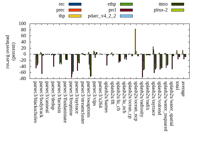 ======= Summary ======= runtime orig rec (overhead) prec (overhead) thp (overhead) ethp (overhead) prcl (overhead) pdarc_v4_2_2 (overhead) ttmo (overhead) plrus-2 (overhead) parsec3/blackscholes 139.483 140.364 (0.63) 140.268 (0.56) 139.203 (-0.20) 140.118 (0.46) 149.697 (7.32) 139.977 (0.35) 140.579 (0.79) 141.002 (1.09) parsec3/bodytrack 125.238 125.799 (0.45) 125.015 (-0.18) 125.830 (0.47) 125.211 (-0.02) 141.691 (13.14) 126.488 (1.00) 125.288 (0.04) 125.991 (0.60) parsec3/canneal 208.248 213.434 (2.49) 238.622 (14.59) 181.516 (-12.84) 210.753 (1.20) 222.281 (6.74) 245.875 (18.07) 236.067 (13.36) 225.542 (8.30) parsec3/dedup 18.448 18.449 (0.01) 18.571 (0.67) 18.276 (-0.93) 18.566 (0.64) 20.351 (10.32) 18.401 (-0.25) 18.637 (1.03) 18.355 (-0.50) parsec3/facesim 342.754 346.857 (1.20) 347.721 (1.45) 343.085 (0.10) 341.746 (-0.29) 370.836 (8.19) 350.449 (2.25) 353.089 (3.02) 352.024 (2.70) parsec3/fluidanimate 337.733 334.309 (-1.01) 336.923 (-0.24) 326.910 (-3.20) 330.556 (-2.13) 342.842 (1.51) 338.148 (0.12) 340.590 (0.85) 337.645 (-0.03) parsec3/freqmine 436.582 436.635 (0.01) 435.916 (-0.15) 436.286 (-0.07) 438.996 (0.55) 447.446 (2.49) 437.209 (0.14) 437.478 (0.21) 439.508 (0.67) parsec3/raytrace 184.556 184.453 (-0.06) 183.790 (-0.42) 183.687 (-0.47) 184.232 (-0.18) 203.744 (10.40) 186.465 (1.03) 186.454 (1.03) 188.649 (2.22) parsec3/streamcluster 635.990 734.255 (15.45) 694.347 (9.18) 586.668 (-7.76) 613.323 (-3.56) 761.525 (19.74) 664.601 (4.50) 681.116 (7.10) 720.245 (13.25) parsec3/swaptions 221.349 224.288 (1.33) 220.916 (-0.20) 221.803 (0.20) 223.144 (0.81) 225.493 (1.87) 223.489 (0.97) 222.117 (0.35) 222.041 (0.31) parsec3/vips 87.528 88.322 (0.91) 88.491 (1.10) 87.941 (0.47) 88.095 (0.65) 90.955 (3.92) 93.282 (6.57) 95.918 (9.59) 97.179 (11.03) parsec3/x264 110.136 112.959 (2.56) 121.110 (9.96) 117.019 (6.25) 115.456 (4.83) 107.384 (-2.50) 113.026 (2.62) 116.672 (5.93) 119.254 (8.28) splash2x/barnes 130.120 132.179 (1.58) 131.437 (1.01) 119.077 (-8.49) 129.162 (-0.74) 146.078 (12.26) 132.736 (2.01) 132.846 (2.10) 133.914 (2.92) splash2x/fft 60.847 62.894 (3.36) 61.690 (1.39) 46.890 (-22.94) 60.651 (-0.32) 63.947 (5.10) 63.260 (3.97) 72.443 (19.06) 74.060 (21.72) splash2x/lu_cb 133.387 132.761 (-0.47) 133.323 (-0.05) 132.437 (-0.71) 133.111 (-0.21) 137.733 (3.26) 133.572 (0.14) 134.046 (0.49) 134.051 (0.50) splash2x/lu_ncb 152.466 151.552 (-0.60) 151.714 (-0.49) 151.163 (-0.85) 150.818 (-1.08) 152.925 (0.30) 152.087 (-0.25) 152.244 (-0.15) 153.214 (0.49) splash2x/ocean_cp 81.956 81.008 (-1.16) 80.175 (-2.17) 78.476 (-4.25) 80.273 (-2.05) 82.247 (0.36) 84.943 (3.64) 83.361 (1.71) 87.716 (7.03) splash2x/ocean_ncp 165.805 168.623 (1.70) 163.643 (-1.30) 102.586 (-38.13) 154.035 (-7.10) 170.033 (2.55) 168.783 (1.80) 182.816 (10.26) 182.644 (10.16) splash2x/radiosity 143.250 142.826 (-0.30) 142.733 (-0.36) 142.087 (-0.81) 143.833 (0.41) 152.284 (6.31) 144.619 (0.96) 147.366 (2.87) 146.957 (2.59) splash2x/radix 52.914 52.071 (-1.59) 51.605 (-2.47) 45.094 (-14.78) 50.862 (-3.88) 52.406 (-0.96) 55.262 (4.44) 57.131 (7.97) 54.703 (3.38) splash2x/raytrace 134.595 134.358 (-0.18) 134.142 (-0.34) 134.105 (-0.36) 134.935 (0.25) 145.364 (8.00) 134.867 (0.20) 137.122 (1.88) 138.296 (2.75) splash2x/volrend 120.672 120.810 (0.11) 120.934 (0.22) 119.567 (-0.92) 120.797 (0.10) 130.368 (8.03) 120.735 (0.05) 120.605 (-0.06) 121.856 (0.98) splash2x/water_nsquared 372.390 373.094 (0.19) 372.040 (-0.09) 355.811 (-4.45) 368.026 (-1.17) 404.284 (8.56) 373.446 (0.28) 387.342 (4.02) 391.510 (5.13) splash2x/water_spatial 133.953 134.694 (0.55) 134.978 (0.77) 134.805 (0.64) 135.076 (0.84) 148.931 (11.18) 135.832 (1.40) 136.333 (1.78) 135.806 (1.38) total 4530.400 4646.980 (2.57) 4630.100 (2.20) 4330.340 (-4.42) 4491.790 (-0.85) 4870.840 (7.51) 4637.550 (2.37) 4697.660 (3.69) 4742.160 (4.67) average 188.767 193.624 (1.13) 192.921 (1.35) 180.431 (-4.75) 187.158 (-0.50) 202.952 (6.17) 193.231 (2.33) 195.736 (3.97) 197.590 (4.46) kdamond_cpu_util orig rec (overhead) prec (overhead) thp (overhead) ethp (overhead) prcl (overhead) pdarc_v4_2_2 (overhead) ttmo (overhead) plrus-2 (overhead) parsec3/blackscholes 0.000 0.000 (0.00) 0.646 (0.65) 0.000 (0.00) 1.017 (1.02) 8.033 (8.03) 2.429 (2.43) 0.000 (0.00) 1.947 (1.95) parsec3/bodytrack 0.000 1.153 (1.15) 0.570 (0.57) 0.000 (0.00) 0.900 (0.90) 13.622 (13.62) 3.287 (3.29) 0.000 (0.00) 1.899 (1.90) parsec3/canneal 0.000 1.428 (1.43) 6.402 (6.40) 0.000 (0.00) 1.417 (1.42) 2.041 (2.04) 10.208 (10.21) 0.000 (0.00) 2.576 (2.58) parsec3/dedup 0.000 0.785 (0.78) 0.486 (0.49) 0.000 (0.00) 0.833 (0.83) 13.221 (13.22) 3.538 (3.54) 0.000 (0.00) 1.134 (1.13) parsec3/facesim 0.000 1.161 (1.16) 0.639 (0.64) 0.000 (0.00) 1.378 (1.38) 4.612 (4.61) 4.197 (4.20) 0.000 (0.00) 2.116 (2.12) parsec3/fluidanimate 0.000 1.058 (1.06) 0.679 (0.68) 0.000 (0.00) 1.019 (1.02) 1.262 (1.26) 4.244 (4.24) 0.000 (0.00) 2.093 (2.09) parsec3/freqmine 0.000 1.055 (1.05) 0.669 (0.67) 0.000 (0.00) 0.993 (0.99) 4.468 (4.47) 4.012 (4.01) 0.000 (0.00) 2.131 (2.13) parsec3/raytrace 0.000 0.982 (0.98) 0.641 (0.64) 0.000 (0.00) 0.991 (0.99) 11.466 (11.47) 3.452 (3.45) 0.000 (0.00) 2.048 (2.05) parsec3/streamcluster 0.000 8.875 (8.87) 8.808 (8.81) 0.000 (0.00) 1.339 (1.34) 8.663 (8.66) 6.450 (6.45) 0.000 (0.00) 3.193 (3.19) parsec3/swaptions 0.000 1.795 (1.80) 0.631 (0.63) 0.000 (0.00) 1.454 (1.45) 2.121 (2.12) 4.065 (4.07) 0.000 (0.00) 1.972 (1.97) parsec3/vips 0.000 2.474 (2.47) 0.613 (0.61) 0.000 (0.00) 1.145 (1.14) 4.801 (4.80) 2.983 (2.98) 0.000 (0.00) 1.788 (1.79) parsec3/x264 0.000 2.005 (2.00) 0.627 (0.63) 0.000 (0.00) 1.105 (1.11) 1.984 (1.98) 3.518 (3.52) 0.000 (0.00) 1.915 (1.92) splash2x/barnes 0.000 0.925 (0.92) 0.731 (0.73) 0.000 (0.00) 0.899 (0.90) 11.294 (11.29) 4.558 (4.56) 0.000 (0.00) 2.027 (2.03) splash2x/fft 0.000 1.022 (1.02) 0.701 (0.70) 0.000 (0.00) 1.073 (1.07) 9.278 (9.28) 4.694 (4.69) 0.000 (0.00) 1.931 (1.93) splash2x/lu_cb 0.000 1.139 (1.14) 0.650 (0.65) 0.000 (0.00) 1.068 (1.07) 