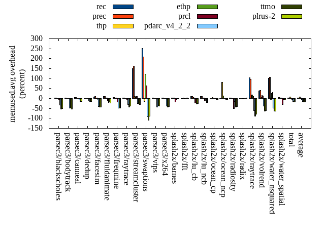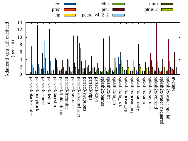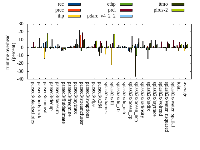 ======= Summary ======= runtime orig rec (overhead) prec (overhead) thp (overhead) ethp (overhead) prcl (overhead) pdarc_v4_2_2 (overhead) ttmo (overhead) plrus-2 (overhead) parsec3/blackscholes 139.372 140.322 (0.68) 139.704 (0.24) 139.037 (-0.24) 140.148 (0.56) 148.534 (6.57) 140.247 (0.63) 140.244 (0.63) 140.901 (1.10) parsec3/bodytrack 125.484 125.594 (0.09) 125.789 (0.24) 125.053 (-0.34) 126.873 (1.11) 140.329 (11.83) 126.558 (0.86) 125.932 (0.36) 126.802 (1.05) parsec3/canneal 212.435 223.794 (5.35) 214.492 (0.97) 182.563 (-14.06) 202.264 (-4.79) 227.700 (7.19) 229.986 (8.26) 226.174 (6.47) 250.044 (17.70) parsec3/dedup 18.368 18.524 (0.85) 18.572 (1.11) 18.117 (-1.37) 18.493 (0.68) 20.232 (10.14) 18.516 (0.80) 18.508 (0.76) 18.227 (-0.77) parsec3/facesim 345.203 353.313 (2.35) 343.459 (-0.51) 344.093 (-0.32) 342.790 (-0.70) 358.309 (3.80) 346.746 (0.45) 353.051 (2.27) 348.491 (0.95) parsec3/fluidanimate 342.873 330.489 (-3.61) 334.693 (-2.39) 327.888 (-4.37) 335.704 (-2.09) 340.477 (-0.70) 337.343 (-1.61) 333.327 (-2.78) 337.761 (-1.49) parsec3/freqmine 434.682 437.941 (0.75) 436.516 (0.42) 433.696 (-0.23) 435.761 (0.25) 444.003 (2.14) 438.281 (0.83) 439.634 (1.14) 436.243 (0.36) parsec3/raytrace 181.834 186.222 (2.41) 184.688 (1.57) 183.385 (0.85) 188.916 (3.89) 200.158 (10.08) 185.226 (1.87) 189.441 (4.18) 187.921 (3.35) parsec3/streamcluster 616.736 751.561 (21.86) 717.449 (16.33) 593.170 (-3.82) 590.052 (-4.33) 734.180 (19.04) 648.227 (5.11) 674.626 (9.39) 682.073 (10.59) parsec3/swaptions 222.362 222.573 (0.10) 220.895 (-0.66) 223.193 (0.37) 221.738 (-0.28) 224.749 (1.07) 223.066 (0.32) 222.523 (0.07) 221.377 (-0.44) parsec3/vips 87.481 88.650 (1.34) 88.054 (0.65) 87.958 (0.55) 88.246 (0.87) 90.883 (3.89) 93.458 (6.83) 94.706 (8.26) 94.991 (8.59) parsec3/x264 117.764 113.671 (-3.48) 111.625 (-5.21) 106.031 (-9.96) 118.974 (1.03) 127.492 (8.26) 110.435 (-6.22) 124.332 (5.58) 120.508 (2.33) splash2x/barnes 130.806 130.948 (0.11) 131.225 (0.32) 119.885 (-8.35) 129.449 (-1.04) 141.965 (8.53) 131.756 (0.73) 132.524 (1.31) 133.459 (2.03) splash2x/fft 61.006 63.302 (3.76) 61.602 (0.98) 47.769 (-21.70) 61.103 (0.16) 64.681 (6.02) 64.585 (5.87) 71.628 (17.41) 71.456 (17.13) splash2x/lu_cb 133.162 132.966 (-0.15) 133.028 (-0.10) 133.457 (0.22) 133.149 (-0.01) 137.477 (3.24) 133.959 (0.60) 134.924 (1.32) 134.601 (1.08) splash2x/lu_ncb 151.532 153.829 (1.52) 152.585 (0.69) 151.161 (-0.25) 152.820 (0.85) 154.177 (1.75) 153.006 (0.97) 151.810 (0.18) 151.782 (0.16) splash2x/ocean_cp 84.809 81.400 (-4.02) 79.951 (-5.73) 80.933 (-4.57) 83.544 (-1.49) 79.759 (-5.96) 82.421 (-2.82) 96.823 (14.17) 87.049 (2.64) splash2x/ocean_ncp 164.461 168.508 (2.46) 172.226 (4.72) 104.486 (-36.47) 148.089 (-9.96) 168.565 (2.50) 172.264 (4.74) 174.608 (6.17) 183.119 (11.34) splash2x/radiosity 142.310 143.190 (0.62) 142.156 (-0.11) 141.033 (-0.90) 143.100 (0.56) 153.322 (7.74) 143.866 (1.09) 147.039 (3.32) 145.824 (2.47) splash2x/radix 52.420 51.232 (-2.27) 53.453 (1.97) 44.968 (-14.22) 50.808 (-3.08) 51.212 (-2.31) 55.050 (5.02) 55.362 (5.61) 57.193 (9.11) splash2x/raytrace 134.261 135.167 (0.67) 136.633 (1.77) 134.782 (0.39) 133.978 (-0.21) 146.502 (9.12) 135.517 (0.94) 138.190 (2.93) 139.945 (4.23) splash2x/volrend 120.872 120.302 (-0.47) 120.606 (-0.22) 120.310 (-0.47) 120.479 (-0.33) 129.776 (7.37) 120.211 (-0.55) 120.589 (-0.23) 121.596 (0.60) splash2x/water_nsquared 371.694 372.271 (0.16) 372.280 (0.16) 356.802 (-4.01) 365.478 (-1.67) 399.423 (7.46) 376.400 (1.27) 390.107 (4.95) 388.760 (4.59) splash2x/water_spatial 134.666 133.921 (-0.55) 133.809 (-0.64) 135.480 (0.60) 134.759 (0.07) 147.707 (9.68) 136.523 (1.38) 135.305 (0.47) 136.255 (1.18) total 4526.580 4679.690 (3.38) 4625.500 (2.19) 4335.250 (-4.23) 4466.720 (-1.32) 4831.600 (6.74) 4603.670 (1.70) 4691.400 (3.64) 4716.390 (4.19) average 188.607 194.987 (1.27) 192.729 (0.69) 180.635 (-5.11) 186.113 (-0.83) 201.317 (5.77) 191.820 (1.56) 195.475 (3.91) 196.516 (4.16) kdamond_cpu_util orig rec (overhead) prec (overhead) thp (overhead) ethp (overhead) prcl (overhead) pdarc_v4_2_2 (overhead) ttmo (overhead) plrus-2 (overhead) parsec3/blackscholes 0.000 0.000 (0.00) 0.613 (0.61) 0.000 (0.00) 0.975 (0.98) 7.540 (7.54) 2.622 (2.62) 0.000 (0.00) 1.840 (1.84) parsec3/bodytrack 0.000 0.978 (0.98) 0.560 (0.56) 0.000 (0.00) 0.884 (0.88) 13.329 (13.33) 2.854 (2.85) 0.000 (0.00) 1.849 (1.85) parsec3/canneal 0.000 1.334 (1.33) 5.881 (5.88) 0.000 (0.00) 1.262 (1.26) 1.857 (1.86) 8.981 (8.98) 0.000 (0.00) 4.350 (4.35) parsec3/dedup 0.000 0.770 (0.77) 0.465 (0.47) 0.000 (0.00) 0.874 (0.87) 12.231 (12.23) 3.573 (3.57) 0.000 (0.00) 0.900 (0.90) parsec3/facesim 0.000 1.119 (1.12) 0.602 (0.60) 0.000 (0.00) 1.303 (1.30) 4.452 (4.45) 3.961 (3.96) 0.000 (0.00) 1.971 (1.97) parsec3/fluidanimate 0.000 1.010 (1.01) 0.606 (0.61) 0.000 (0.00) 0.961 (0.96) 1.417 (1.42) 3.947 (3.95) 0.000 (0.00) 1.963 (1.96) parsec3/freqmine 0.000 1.031 (1.03) 0.613 (0.61) 0.000 (0.00) 0.938 (0.94) 4.047 (4.05) 3.759 (3.76) 0.000 (0.00) 1.987 (1.99) parsec3/raytrace 0.000 0.987 (0.99) 0.630 (0.63) 0.000 (0.00) 0.942 (0.94) 10.480 (10.48) 3.174 (3.17) 0.000 (0.00) 1.911 (1.91) parsec3/streamcluster 0.000 8.382 (8.38) 10.261 (10.26) 0.000 (0.00) 1.388 (1.39) 8.442 (8.44) 7.153 (7.15) 0.000 (0.00) 3.489 (3.49) parsec3/swaptions 0.000 1.556 (1.56) 0.596 (0.60) 0.000 (0.00) 1.571 (1.57) 1.814 (1.81) 3.825 (3.82) 0.000 (0.00) 1.920 (1.92) parsec3/vips 0.000 2.575 (2.57) 0.580 (0.58) 0.000 (0.00) 0.850 (0.85) 4.792 (4.79) 2.806 (2.81) 0.000 (0.00) 1.752 (1.75) parsec3/x264 0.000 1.958 (1.96) 0.584 (0.58) 0.000 (0.00) 1.062 (1.06) 1.818 (1.82) 3.058 (3.06) 0.000 (0.00) 1.758 (1.76) splash2x/barnes 0.000 0.814 (0.81) 0.673 (0.67) 0.000 (0.00) 0.854 (0.85) 9.667 (9.67) 4.705 (4.71) 0.000 (0.00) 1.880 (1.88) splash2x/fft 0.000 0.971 (0.97) 0.664 (0.66) 0.000 (0.00) 0.995 (1.00) 10.176 (10.18) 3.865 (3.86) 0.000 (0.00) 1.816 (1.82) splash2x/lu_cb 0.000 1.003 (1.00) 0.576 (0.58) 0.000 (0.00) 1.007 (1.01) 4.478