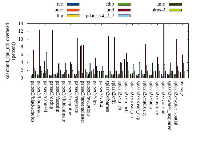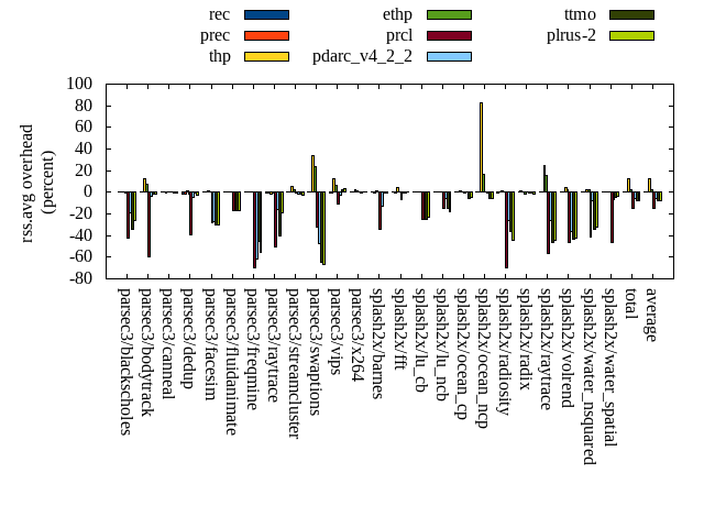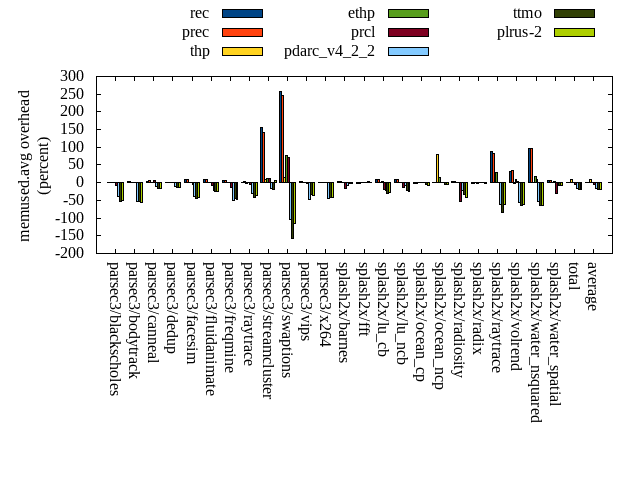 ======= Summary ======= runtime orig rec (overhead) prec (overhead) thp (overhead) ethp (overhead) prcl (overhead) pdarc_v4_2_2 (overhead) ttmo (overhead) plrus-2 (overhead) parsec3/blackscholes 140.001 139.957 (-0.03) 140.236 (0.17) 139.331 (-0.48) 139.701 (-0.21) 147.851 (5.61) 140.277 (0.20) 139.894 (-0.08) 140.026 (0.02) parsec3/bodytrack 127.115 127.619 (0.40) 127.232 (0.09) 125.874 (-0.98) 126.101 (-0.80) 140.219 (10.31) 127.181 (0.05) 126.398 (-0.56) 127.327 (0.17) parsec3/canneal 213.752 216.900 (1.47) 227.228 (6.30) 190.484 (-10.89) 220.938 (3.36) 224.386 (4.98) 223.865 (4.73) 232.471 (8.76) 217.055 (1.55) parsec3/dedup 18.478 18.494 (0.09) 18.505 (0.15) 18.414 (-0.35) 18.529 (0.28) 20.325 (10.00) 18.670 (1.04) 18.306 (-0.93) 18.367 (-0.60) parsec3/facesim 355.806 347.564 (-2.32) 346.956 (-2.49) 342.185 (-3.83) 346.715 (-2.56) 356.294 (0.14) 351.126 (-1.32) 350.984 (-1.36) 351.129 (-1.31) parsec3/fluidanimate 338.792 336.215 (-0.76) 336.228 (-0.76) 331.958 (-2.02) 335.617 (-0.94) 350.522 (3.46) 337.202 (-0.47) 342.588 (1.12) 334.298 (-1.33) parsec3/freqmine 436.830 437.939 (0.25) 435.301 (-0.35) 435.778 (-0.24) 437.176 (0.08) 447.182 (2.37) 437.052 (0.05) 437.699 (0.20) 438.287 (0.33) parsec3/raytrace 184.200 183.757 (-0.24) 182.706 (-0.81) 186.577 (1.29) 186.942 (1.49) 201.898 (9.61) 186.188 (1.08) 186.243 (1.11) 183.987 (-0.12) parsec3/streamcluster 686.916 700.996 (2.05) 709.595 (3.30) 570.823 (-16.90) 624.095 (-9.15) 716.054 (4.24) 706.319 (2.82) 663.322 (-3.43) 661.073 (-3.76) parsec3/swaptions 220.868 225.165 (1.95) 221.817 (0.43) 222.627 (0.80) 221.276 (0.18) 224.639 (1.71) 219.613 (-0.57) 222.050 (0.54) 221.643 (0.35) parsec3/vips 87.609 88.302 (0.79) 88.144 (0.61) 87.961 (0.40) 87.444 (-0.19) 90.899 (3.75) 93.529 (6.76) 94.662 (8.05) 95.688 (9.22) parsec3/x264 114.886 123.511 (7.51) 120.201 (4.63) 117.611 (2.37) 124.808 (8.64) 107.427 (-6.49) 110.169 (-4.11) 125.300 (9.07) 115.822 (0.82) splash2x/barnes 130.397 130.959 (0.43) 131.493 (0.84) 119.220 (-8.57) 128.413 (-1.52) 145.680 (11.72) 133.358 (2.27) 131.600 (0.92) 132.312 (1.47) splash2x/fft 60.954 60.942 (-0.02) 61.674 (1.18) 47.190 (-22.58) 61.092 (0.23) 64.585 (5.96) 62.283 (2.18) 71.480 (17.27) 72.763 (19.37) splash2x/lu_cb 133.011 133.244 (0.17) 133.458 (0.34) 133.526 (0.39) 134.362 (1.02) 137.906 (3.68) 133.143 (0.10) 134.167 (0.87) 133.826 (0.61) splash2x/lu_ncb 152.614 152.331 (-0.19) 151.899 (-0.47) 151.985 (-0.41) 152.121 (-0.32) 152.809 (0.13) 150.803 (-1.19) 151.815 (-0.52) 154.642 (1.33) splash2x/ocean_cp 81.370 83.007 (2.01) 82.951 (1.94) 93.716 (15.17) 83.013 (2.02) 85.432 (4.99) 80.783 (-0.72) 85.242 (4.76) 89.903 (10.49) splash2x/ocean_ncp 164.380 160.053 (-2.63) 166.675 (1.40) 102.836 (-37.44) 142.274 (-13.45) 164.938 (0.34) 175.101 (6.52) 173.148 (5.33) 177.677 (8.09) splash2x/radiosity 144.684 142.585 (-1.45) 142.610 (-1.43) 143.254 (-0.99) 143.541 (-0.79) 153.063 (5.79) 143.690 (-0.69) 146.829 (1.48) 146.448 (1.22) splash2x/radix 51.095 51.978 (1.73) 51.858 (1.49) 43.969 (-13.95) 49.949 (-2.24) 52.240 (2.24) 54.930 (7.51) 55.209 (8.05) 54.986 (7.61) splash2x/raytrace 134.187 136.502 (1.73) 135.184 (0.74) 131.573 (-1.95) 136.037 (1.38) 144.477 (7.67) 133.688 (-0.37) 138.871 (3.49) 138.092 (2.91) splash2x/volrend 120.304 120.577 (0.23) 121.134 (0.69) 120.388 (0.07) 120.894 (0.49) 130.115 (8.15) 121.393 (0.90) 120.940 (0.53) 120.888 (0.49) splash2x/water_nsquared 374.142 372.753 (-0.37) 373.540 (-0.16) 354.273 (-5.31) 370.028 (-1.10) 404.375 (8.08) 379.942 (1.55) 388.674 (3.88) 392.102 (4.80) splash2x/water_spatial 133.977 134.131 (0.11) 134.762 (0.59) 134.602 (0.47) 135.174 (0.89) 149.052 (11.25) 136.777 (2.09) 136.470 (1.86) 136.631 (1.98) total 4606.370 4625.490 (0.42) 4641.380 (0.76) 4346.160 (-5.65) 4526.220 (-1.74) 4812.380 (4.47) 4657.070 (1.10) 4674.350 (1.48) 4654.970 (1.06) average 191.932 192.729 (0.54) 193.391 (0.77) 181.090 (-4.41) 188.593 (-0.55) 200.516 (4.99) 194.045 (1.27) 194.765 (2.93) 193.957 (2.74) kdamond_cpu_util orig rec (overhead) prec (overhead) thp (overhead) ethp (overhead) prcl (overhead) pdarc_v4_2_2 (overhead) ttmo (overhead) plrus-2 (overhead) parsec3/blackscholes 0.000 0.000 (0.00) 0.606 (0.61) 0.000 (0.00) 0.967 (0.97) 7.312 (7.31) 2.635 (2.63) 0.000 (0.00) 1.785 (1.78) parsec3/bodytrack 0.000 1.037 (1.04) 0.572 (0.57) 0.000 (0.00) 0.794 (0.79) 12.400 (12.40) 3.196 (3.20) 0.000 (0.00) 1.715 (1.71) parsec3/canneal 0.000 1.361 (1.36) 4.342 (4.34) 0.000 (0.00) 1.238 (1.24) 1.795 (1.79) 6.679 (6.68) 0.000 (0.00) 2.203 (2.20) parsec3/dedup 0.000 0.794 (0.79) 0.621 (0.62) 0.000 (0.00) 0.798 (0.80) 12.372 (12.37) 3.383 (3.38) 0.000 (0.00) 1.059 (1.06) parsec3/facesim 0.000 1.123 (1.12) 0.617 (0.62) 0.000 (0.00) 1.327 (1.33) 3.653 (3.65) 3.851 (3.85) 0.000 (0.00) 1.945 (1.95) parsec3/fluidanimate 0.000 0.975 (0.97) 0.620 (0.62) 0.000 (0.00) 0.975 (0.98) 1.435 (1.43) 3.814 (3.81) 0.000 (0.00) 1.958 (1.96) parsec3/freqmine 0.000 1.045 (1.04) 0.614 (0.61) 0.000 (0.00) 0.891 (0.89) 4.171 (4.17) 3.613 (3.61) 0.000 (0.00) 1.976 (1.98) parsec3/raytrace 0.000 0.956 (0.96) 0.603 (0.60) 0.000 (0.00) 0.950 (0.95) 10.360 (10.36) 3.327 (3.33) 0.000 (0.00) 1.892 (1.89) parsec3/streamcluster 0.000 8.198 (8.20) 8.438 (8.44) 0.000 (0.00) 1.228 (1.23) 8.365 (8.36) 7.544 (7.54) 0.000 (0.00) 2.214 (2.21) parsec3/swaptions 0.000 1.564 (1.56) 0.581 (0.58) 0.000 (0.00) 1.105 (1.10) 1.593 (1.59) 3.827 (3.83) 0.000 (0.00) 1.903 (1.90) parsec3/vips 0.000 2.395 (2.39) 0.581 (0.58) 0.000 (0.00) 1.051 (1.05) 5.104 (5.10) 3.040 (3.04) 0.000 (0.00) 1.707 (1.71) parsec3/x264 0.000 1.778 (1.78) 0.594 (0.59) 0.000 (0.00) 1.070 (1.07) 1.859 (1.86) 3.065 (3.06) 0.000 (0.00) 1.748 (1.75) splash2x/barnes 0.000 0.815 (0.82) 0.699 (0.70) 0.000 (0.00) 0.836 (0.84) 10.680 (10.68) 4.677 (4.68) 0.000 (0.00) 1.828 (1.83) splash2x/fft 0.000 0.918 (0.92) 0.660 (0.66) 0.000 (0.00) 1.015 (1.01) 10.481 (10.48) 2.050 (2.05) 0.000 (0.00) 1.772 (1.77) splash2x/lu_cb 0.000 0.993 (0.99) 0.592 (0.59) 0.000 (0.00) 1.013 (1.01) 4.