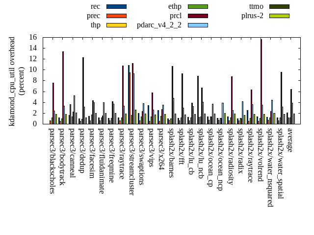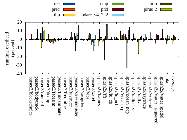 ======= Summary ======= runtime orig rec (overhead) prec (overhead) thp (overhead) ethp (overhead) prcl (overhead) pdarc_v4_2_2 (overhead) ttmo (overhead) plrus-2 (overhead) parsec3/blackscholes 139.363 139.963 (0.43) 139.411 (0.03) 139.558 (0.14) 139.657 (0.21) 148.330 (6.43) 140.136 (0.56) 140.442 (0.77) 140.464 (0.79) parsec3/bodytrack 126.032 126.299 (0.21) 126.151 (0.09) 126.559 (0.42) 127.744 (1.36) 141.393 (12.19) 126.220 (0.15) 126.791 (0.60) 127.203 (0.93) parsec3/canneal 212.118 227.241 (7.13) 227.435 (7.22) 191.924 (-9.52) 207.214 (-2.31) 241.727 (13.96) 231.373 (9.08) 228.101 (7.54) 235.046 (10.81) parsec3/dedup 19.079 18.840 (-1.26) 18.802 (-1.46) 18.570 (-2.67) 18.890 (-0.99) 20.214 (5.95) 18.881 (-1.04) 18.504 (-3.02) 18.457 (-3.26) parsec3/facesim 357.037 346.633 (-2.91) 347.756 (-2.60) 339.811 (-4.82) 343.842 (-3.70) 362.238 (1.46) 353.515 (-0.99) 349.375 (-2.15) 347.532 (-2.66) parsec3/fluidanimate 334.775 337.218 (0.73) 340.385 (1.68) 329.494 (-1.58) 337.609 (0.85) 338.231 (1.03) 336.801 (0.61) 340.215 (1.62) 339.788 (1.50) parsec3/freqmine 437.013 437.054 (0.01) 437.334 (0.07) 435.288 (-0.39) 436.211 (-0.18) 446.456 (2.16) 437.441 (0.10) 438.424 (0.32) 437.329 (0.07) parsec3/raytrace 183.706 184.408 (0.38) 184.402 (0.38) 186.808 (1.69) 188.374 (2.54) 200.135 (8.94) 187.228 (1.92) 187.160 (1.88) 188.403 (2.56) parsec3/streamcluster 647.246 693.190 (7.10) 673.438 (4.05) 560.367 (-13.42) 632.004 (-2.35) 698.801 (7.97) 677.681 (4.70) 752.889 (16.32) 692.226 (6.95) parsec3/swaptions 221.951 221.274 (-0.30) 223.880 (0.87) 221.404 (-0.25) 222.900 (0.43) 223.505 (0.70) 221.841 (-0.05) 219.855 (-0.94) 222.949 (0.45) parsec3/vips 89.092 89.078 (-0.02) 88.499 (-0.67) 87.754 (-1.50) 88.286 (-0.90) 90.768 (1.88) 93.407 (4.84) 95.301 (6.97) 94.602 (6.18) parsec3/x264 121.468 114.351 (-5.86) 118.494 (-2.45) 121.645 (0.15) 116.770 (-3.87) 105.954 (-12.77) 113.400 (-6.64) 127.925 (5.32) 121.553 (0.07) splash2x/barnes 130.761 131.058 (0.23) 131.423 (0.51) 120.509 (-7.84) 128.015 (-2.10) 146.268 (11.86) 133.751 (2.29) 133.149 (1.83) 133.771 (2.30) splash2x/fft 62.234 60.814 (-2.28) 61.275 (-1.54) 47.444 (-23.77) 62.899 (1.07) 64.589 (3.78) 63.415 (1.90) 73.234 (17.68) 73.106 (17.47) splash2x/lu_cb 133.054 133.483 (0.32) 133.083 (0.02) 132.719 (-0.25) 133.604 (0.41) 137.336 (3.22) 133.518 (0.35) 133.546 (0.37) 133.523 (0.35) splash2x/lu_ncb 151.033 154.876 (2.54) 153.165 (1.41) 151.300 (0.18) 152.707 (1.11) 154.935 (2.58) 152.160 (0.75) 153.401 (1.57) 151.527 (0.33) splash2x/ocean_cp 80.949 89.306 (10.32) 82.606 (2.05) 85.235 (5.30) 84.419 (4.29) 85.414 (5.52) 90.036 (11.23) 86.346 (6.67) 84.517 (4.41) splash2x/ocean_ncp 158.690 167.869 (5.78) 163.626 (3.11) 106.831 (-32.68) 152.673 (-3.79) 176.001 (10.91) 166.098 (4.67) 181.932 (14.65) 177.414 (11.80) splash2x/radiosity 143.883 142.814 (-0.74) 143.155 (-0.51) 142.065 (-1.26) 143.057 (-0.57) 153.687 (6.81) 143.846 (-0.03) 146.655 (1.93) 145.539 (1.15) splash2x/radix 53.312 52.193 (-2.10) 51.757 (-2.92) 44.553 (-16.43) 51.344 (-3.69) 53.073 (-0.45) 53.556 (0.46) 54.756 (2.71) 55.746 (4.56) splash2x/raytrace 135.578 136.264 (0.51) 137.331 (1.29) 132.182 (-2.51) 134.140 (-1.06) 144.311 (6.44) 136.003 (0.31) 137.746 (1.60) 139.647 (3.00) splash2x/volrend 120.329 120.947 (0.51) 120.937 (0.51) 120.072 (-0.21) 120.185 (-0.12) 129.945 (7.99) 121.695 (1.14) 120.906 (0.48) 121.116 (0.65) splash2x/water_nsquared 373.310 372.865 (-0.12) 371.384 (-0.52) 356.497 (-4.50) 368.311 (-1.34) 397.922 (6.59) 375.737 (0.65) 390.868 (4.70) 393.008 (5.28) splash2x/water_spatial 133.619 134.608 (0.74) 135.818 (1.65) 135.885 (1.70) 135.392 (1.33) 149.880 (12.17) 136.125 (1.88) 136.225 (1.95) 136.347 (2.04) total 4565.630 4632.630 (1.47) 4611.540 (1.01) 4334.470 (-5.06) 4526.240 (-0.86) 4811.100 (5.38) 4643.890 (1.71) 4773.760 (4.56) 4710.830 (3.18) average 190.235 193.026 (0.89) 192.148 (0.51) 180.603 (-4.75) 188.593 (-0.56) 200.463 (5.31) 193.495 (1.62) 198.907 (3.81) 196.285 (3.24) kdamond_cpu_util orig rec (overhead) prec (overhead) thp (overhead) ethp (overhead) prcl (overhead) pdarc_v4_2_2 (overhead) ttmo (overhead) plrus-2 (overhead) parsec3/blackscholes 0.000 0.000 (0.00) 0.594 (0.59) 0.000 (0.00) 1.150 (1.15) 7.618 (7.62) 2.455 (2.46) 0.000 (0.00) 1.847 (1.85) parsec3/bodytrack 0.000 1.195 (1.20) 0.528 (0.53) 0.000 (0.00) 0.960 (0.96) 13.390 (13.39) 3.338 (3.34) 0.000 (0.00) 1.805 (1.80) parsec3/canneal 0.000 1.630 (1.63) 3.603 (3.60) 0.000 (0.00) 1.383 (1.38) 2.228 (2.23) 5.269 (5.27) 0.000 (0.00) 2.124 (2.12) parsec3/dedup 0.000 0.993 (0.99) 0.553 (0.55) 0.000 (0.00) 0.911 (0.91) 12.264 (12.26) 3.120 (3.12) 0.000 (0.00) 1.190 (1.19) parsec3/facesim 0.000 1.425 (1.43) 0.615 (0.61) 0.000 (0.00) 1.680 (1.68) 4.324 (4.32) 3.986 (3.99) 0.000 (0.00) 1.973 (1.97) parsec3/fluidanimate 0.000 1.206 (1.21) 0.625 (0.63) 0.000 (0.00) 1.168 (1.17) 1.505 (1.51) 3.962 (3.96) 0.000 (0.00) 1.954 (1.95) parsec3/freqmine 0.000 1.092 (1.09) 0.610 (0.61) 0.000 (0.00) 1.042 (1.04) 4.193 (4.19) 3.663 (3.66) 0.000 (0.00) 1.973 (1.97) parsec3/raytrace 0.000 1.148 (1.15) 0.607 (0.61) 0.000 (0.00) 1.148 (1.15) 10.745 (10.75) 3.343 (3.34) 0.000 (0.00) 1.905 (1.91) parsec3/streamcluster 0.000 10.869 (10.87) 9.460 (9.46) 0.000 (0.00) 1.666 (1.67) 11.239 (11.24) 9.292 (9.29) 0.000 (0.00) 2.642 (2.64) parsec3/swaptions 0.000 1.997 (2.00) 0.602 (0.60) 0.000 (0.00) 1.319 (1.32) 2.318 (2.32) 3.806 (3.81) 0.000 (0.00) 1.895 (1.90) parsec3/vips 0.000 3.467 (3.47) 0.575 (0.58) 0.000 (0.00) 1.370 (1.37) 5.760 (5.76) 2.642 (2.64) 0.000 (0.00) 1.708 (1.71) parsec3/x264 0.000 2.509 (2.51) 0.574 (0.57) 0.000 (0.00) 1.442 (1.44) 2.669 (2.67) 3.527 (3.53) 0.000 (0.00) 1.772 (1.77) splash2x/barnes 0.000 1.024 (1.02) 0.701 (0.70) 0.000 (0.00) 1.014 (1.01) 10.711 (10.71) 4.765 (4.77) 0.000 (0.00) 1.903 (1.90) splash2x/fft 0.000 1.103 (1.10) 0.646 (0.65) 0.000 (0.00) 1.178 (1.18) 9.270 (9.27) 2.938 (2.94) 0.000 (0.00) 1.757 (1.76) splash2x/lu_cb 0.000 1.235 (1.24) 0.601 (0.60) 0.000 (0.00) 1.205 (1.21) 