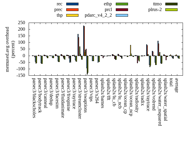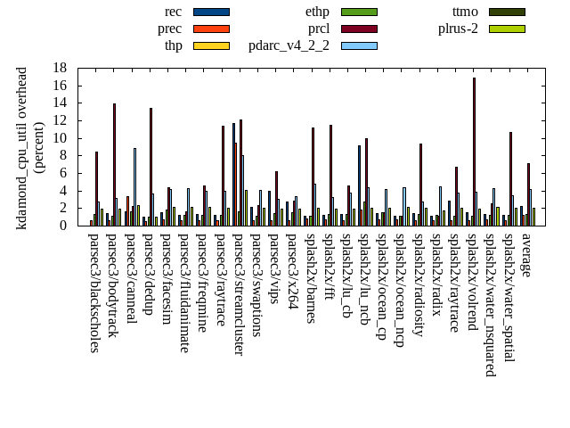======= Summary ======= runtime orig rec (overhead) prec (overhead) thp (overhead) ethp (overhead) prcl (overhead) pdarc_v4_2_2 (overhead) ttmo (overhead) plrus-2 (overhead) parsec3/blackscholes 139.248 139.900 (0.47) 139.438 (0.14) 139.047 (-0.14) 139.358 (0.08) 149.722 (7.52) 139.514 (0.19) 140.665 (1.02) 140.544 (0.93) parsec3/bodytrack 126.006 126.095 (0.07) 125.485 (-0.41) 125.585 (-0.33) 126.288 (0.22) 141.231 (12.08) 127.293 (1.02) 125.975 (-0.02) 126.612 (0.48) parsec3/canneal 218.774 214.715 (-1.86) 222.695 (1.79) 176.101 (-19.51) 208.900 (-4.51) 228.712 (4.54) 228.248 (4.33) 231.062 (5.62) 234.120 (7.01) parsec3/dedup 18.612 18.833 (1.19) 18.505 (-0.57) 18.285 (-1.76) 18.643 (0.17) 20.396 (9.58) 18.790 (0.96) 18.593 (-0.10) 18.566 (-0.25) parsec3/facesim 343.949 348.922 (1.45) 346.067 (0.62) 341.715 (-0.65) 347.950 (1.16) 358.645 (4.27) 350.382 (1.87) 348.213 (1.24) 352.655 (2.53) parsec3/fluidanimate 340.726 336.534 (-1.23) 337.766 (-0.87) 329.050 (-3.43) 335.774 (-1.45) 338.677 (-0.60) 338.429 (-0.67) 335.021 (-1.67) 337.716 (-0.88) parsec3/freqmine 436.013 436.926 (0.21) 439.094 (0.71) 436.161 (0.03) 436.401 (0.09) 444.928 (2.04) 437.339 (0.30) 437.678 (0.38) 438.222 (0.51) parsec3/raytrace 183.272 184.911 (0.89) 183.389 (0.06) 185.986 (1.48) 183.542 (0.15) 201.179 (9.77) 186.777 (1.91) 187.093 (2.08) 187.150 (2.12) parsec3/streamcluster 673.674 711.279 (5.58) 679.264 (0.83) 557.278 (-17.28) 621.516 (-7.74) 757.849 (12.49) 679.001 (0.79) 713.293 (5.88) 718.648 (6.68) parsec3/swaptions 221.714 222.484 (0.35) 220.976 (-0.33) 223.600 (0.85) 224.003 (1.03) 226.180 (2.01) 223.049 (0.60) 220.808 (-0.41) 222.256 (0.24) parsec3/vips 88.258 88.548 (0.33) 88.326 (0.08) 87.933 (-0.37) 87.964 (-0.33) 90.708 (2.78) 92.685 (5.02) 95.318 (8.00) 95.193 (7.86) parsec3/x264 121.929 118.179 (-3.08) 118.657 (-2.68) 111.289 (-8.73) 114.484 (-6.11) 115.387 (-5.37) 120.497 (-1.17) 114.959 (-5.72) 119.144 (-2.28) splash2x/barnes 129.589 131.227 (1.26) 130.807 (0.94) 120.186 (-7.26) 128.919 (-0.52) 145.158 (12.01) 133.207 (2.79) 133.247 (2.82) 132.943 (2.59) splash2x/fft 60.482 62.007 (2.52) 61.602 (1.85) 47.545 (-21.39) 61.091 (1.01) 65.120 (7.67) 63.860 (5.58) 74.010 (22.37) 73.147 (20.94) splash2x/lu_cb 132.852 133.247 (0.30) 132.571 (-0.21) 133.112 (0.20) 133.589 (0.55) 138.200 (4.03) 133.486 (0.48) 134.330 (1.11) 134.069 (0.92) splash2x/lu_ncb 150.972 153.267 (1.52) 152.032 (0.70) 152.221 (0.83) 151.031 (0.04) 154.139 (2.10) 152.122 (0.76) 152.999 (1.34) 154.122 (2.09) splash2x/ocean_cp 81.629 88.689 (8.65) 81.994 (0.45) 85.580 (4.84) 81.612 (-0.02) 82.082 (0.55) 82.891 (1.55) 84.954 (4.07) 89.068 (9.11) splash2x/ocean_ncp 157.543 165.295 (4.92) 168.172 (6.75) 116.796 (-25.86) 147.504 (-6.37) 171.798 (9.05) 169.350 (7.49) 184.461 (17.09) 180.950 (14.86) splash2x/radiosity 143.771 142.736 (-0.72) 143.076 (-0.48) 142.381 (-0.97) 143.292 (-0.33) 154.014 (7.12) 144.650 (0.61) 145.198 (0.99) 147.672 (2.71) splash2x/radix 51.432 51.703 (0.53) 51.525 (0.18) 45.740 (-11.07) 49.371 (-4.01) 51.974 (1.05) 53.566 (4.15) 55.659 (8.22) 57.376 (11.56) splash2x/raytrace 134.494 136.721 (1.66) 135.514 (0.76) 132.259 (-1.66) 134.251 (-0.18) 148.357 (10.31) 136.242 (1.30) 139.908 (4.03) 138.345 (2.86) splash2x/volrend 120.742 121.151 (0.34) 120.835 (0.08) 119.265 (-1.22) 120.049 (-0.57) 132.127 (9.43) 120.733 (-0.01) 121.492 (0.62) 121.194 (0.37) splash2x/water_nsquared 370.775 372.563 (0.48) 372.988 (0.60) 355.421 (-4.14) 369.207 (-0.42) 409.970 (10.57) 372.542 (0.48) 390.919 (5.43) 388.780 (4.86) splash2x/water_spatial 135.137 134.466 (-0.50) 134.277 (-0.64) 135.456 (0.24) 134.891 (-0.18) 150.880 (11.65) 135.691 (0.41) 135.245 (0.08) 135.340 (0.15) total 4581.570 4640.410 (1.28) 4605.050 (0.51) 4318.000 (-5.75) 4499.610 (-1.79) 4877.440 (6.46) 4640.350 (1.28) 4721.100 (3.05) 4743.830 (3.54) average 190.899 193.350 (1.06) 191.877 (0.43) 179.917 (-4.89) 187.484 (-1.18) 203.227 (6.11) 193.348 (1.70) 196.713 (3.52) 197.660 (4.08) kdamond_cpu_util orig rec (overhead) prec (overhead) thp (overhead) ethp (overhead) prcl (overhead) pdarc_v4_2_2 (overhead) ttmo (overhead) plrus-2 (overhead) parsec3/blackscholes 0.000 0.000 (0.00) 0.638 (0.64) 0.000 (0.00) 1.290 (1.29) 8.482 (8.48) 2.718 (2.72) 0.000 (0.00) 1.968 (1.97) parsec3/bodytrack 0.000 1.446 (1.45) 0.611 (0.61) 0.000 (0.00) 1.148 (1.15) 13.955 (13.96) 3.190 (3.19) 0.000 (0.00) 1.904 (1.90) parsec3/canneal 0.000 1.671 (1.67) 3.388 (3.39) 0.000 (0.00) 1.631 (1.63) 2.202 (2.20) 8.849 (8.85) 0.000 (0.00) 2.308 (2.31) parsec3/dedup 0.000 0.969 (0.97) 0.504 (0.50) 0.000 (0.00) 1.032 (1.03) 13.435 (13.43) 3.614 (3.61) 0.000 (0.00) 1.034 (1.03) parsec3/facesim 0.000 1.488 (1.49) 0.663 (0.66) 0.000 (0.00) 1.836 (1.84) 4.415 (4.41) 4.201 (4.20) 0.000 (0.00) 2.105 (2.11) parsec3/fluidanimate 0.000 1.224 (1.22) 0.651 (0.65) 0.000 (0.00) 1.220 (1.22) 1.630 (1.63) 4.282 (4.28) 0.000 (0.00) 2.096 (2.10) parsec3/freqmine 0.000 1.295 (1.30) 0.651 (0.65) 0.000 (0.00) 1.189 (1.19) 4.623 (4.62) 3.997 (4.00) 0.000 (0.00) 2.132 (2.13) parsec3/raytrace 0.000 1.238 (1.24) 0.660 (0.66) 0.000 (0.00) 1.223 (1.22) 11.359 (11.36) 3.999 (4.00) 0.000 (0.00) 2.042 (2.04) parsec3/streamcluster 0.000 11.677 (11.68) 9.450 (9.45) 0.000 (0.00) 1.621 (1.62) 12.085 (12.08) 8.074 (8.07) 0.000 (0.00) 4.071 (4.07) parsec3/swaptions 0.000 2.123 (2.12) 0.652 (0.65) 0.000 (0.00) 1.150 (1.15) 2.338 (2.34) 4.030 (4.03) 0.000 (0.00) 2.040 (2.04) parsec3/vips 0.000 3.982 (3.98) 0.610 (0.61) 0.000 (0.00) 1.385 (1.38) 6.187 (6.19) 3.020 (3.02) 0.000 (0.00) 1.932 (1.93) parsec3/x264 0.000 2.756 (2.76) 0.622 (0.62) 0.000 (0.00) 1.481 (1.48) 2.801 (2.80) 3.364 (3.36) 0.000 (0.00) 1.888 (1.89) splash2x/barnes 0.000 1.096 (1.10) 0.764 (0.76) 0.000 (0.00) 1.111 (1.11) 11.184 (11.18) 4.732 (4.73) 0.000 (0.00) 2.009 (2.01) splash2x/fft 0.000 1.235 (1.23) 0.705 (0.70) 0.000 (0.00) 1.350 (1.35) 11.504 (11.50) 3.257 (3.26) 0.000 (0.00) 1.933 (1.93) splash2x/lu_cb 0.000 1.317 (1.32) 0.589 (0.59) 0.000 (0.00) 1.280 (1.28) 4.5