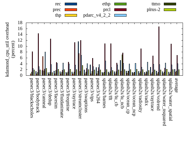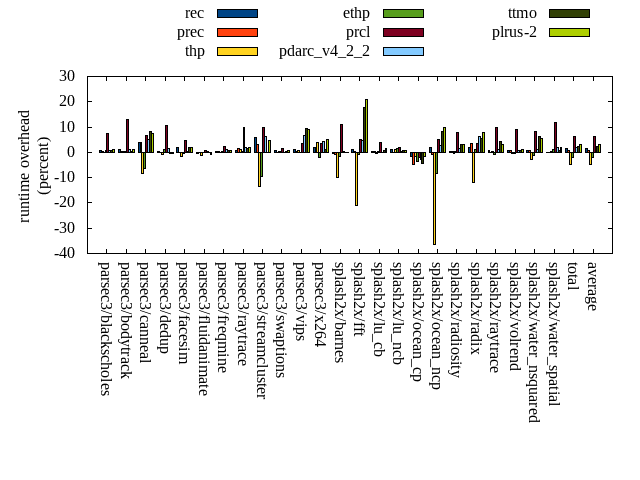 ======= Summary ======= runtime orig rec (overhead) prec (overhead) thp (overhead) ethp (overhead) prcl (overhead) pdarc_v4_2_2 (overhead) ttmo (overhead) plrus-2 (overhead) parsec3/blackscholes 138.895 140.035 (0.82) 139.168 (0.20) 139.044 (0.11) 139.910 (0.73) 149.105 (7.35) 139.897 (0.72) 139.956 (0.76) 140.446 (1.12) parsec3/bodytrack 125.893 127.156 (1.00) 126.281 (0.31) 126.303 (0.33) 126.129 (0.19) 142.466 (13.16) 127.343 (1.15) 126.111 (0.17) 127.152 (1.00) parsec3/canneal 210.753 219.022 (3.92) 218.836 (3.84) 193.419 (-8.22) 197.376 (-6.35) 225.073 (6.79) 221.590 (5.14) 227.967 (8.17) 226.744 (7.59) parsec3/dedup 18.601 18.677 (0.41) 18.555 (-0.25) 18.446 (-0.83) 18.811 (1.13) 20.567 (10.57) 18.850 (1.34) 18.497 (-0.56) 18.545 (-0.30) parsec3/facesim 346.056 352.196 (1.77) 345.880 (-0.05) 340.061 (-1.73) 345.039 (-0.29) 361.871 (4.57) 347.217 (0.34) 353.219 (2.07) 352.781 (1.94) parsec3/fluidanimate 336.710 334.931 (-0.53) 337.125 (0.12) 332.168 (-1.35) 335.905 (-0.24) 339.784 (0.91) 338.326 (0.48) 336.311 (-0.12) 333.664 (-0.90) parsec3/freqmine 436.092 437.643 (0.36) 436.942 (0.20) 436.042 (-0.01) 437.490 (0.32) 445.608 (2.18) 440.319 (0.97) 438.827 (0.63) 439.322 (0.74) parsec3/raytrace 182.386 183.459 (0.59) 185.164 (1.52) 184.698 (1.27) 182.843 (0.25) 200.423 (9.89) 186.062 (2.02) 185.120 (1.50) 185.966 (1.96) parsec3/streamcluster 648.939 688.038 (6.03) 668.344 (2.99) 561.551 (-13.47) 587.344 (-9.49) 713.556 (9.96) 688.990 (6.17) 647.471 (-0.23) 680.237 (4.82) parsec3/swaptions 221.921 223.936 (0.91) 221.833 (-0.04) 222.652 (0.33) 221.503 (-0.19) 224.935 (1.36) 221.430 (-0.22) 222.525 (0.27) 223.175 (0.57) parsec3/vips 87.671 88.646 (1.11) 88.017 (0.39) 88.189 (0.59) 87.477 (-0.22) 90.731 (3.49) 93.478 (6.62) 96.006 (9.51) 95.735 (9.20) parsec3/x264 116.301 118.359 (1.77) 116.504 (0.17) 120.992 (4.03) 113.756 (-2.19) 120.557 (3.66) 121.323 (4.32) 117.660 (1.17) 122.429 (5.27) splash2x/barnes 131.676 131.142 (-0.41) 130.359 (-1.00) 118.367 (-10.11) 129.600 (-1.58) 146.198 (11.03) 132.239 (0.43) 131.691 (0.01) 131.751 (0.06) splash2x/fft 61.164 61.882 (1.17) 61.299 (0.22) 48.405 (-20.86) 60.666 (-0.81) 64.175 (4.92) 64.090 (4.78) 71.981 (17.69) 73.944 (20.90) splash2x/lu_cb 132.805 133.261 (0.34) 133.302 (0.37) 132.175 (-0.47) 133.174 (0.28) 138.070 (3.96) 132.931 (0.09) 133.567 (0.57) 134.813 (1.51) splash2x/lu_ncb 150.869 152.787 (1.27) 151.083 (0.14) 152.702 (1.21) 153.268 (1.59) 153.787 (1.93) 151.640 (0.51) 152.205 (0.89) 152.117 (0.83) splash2x/ocean_cp 85.900 84.621 (-1.49) 81.845 (-4.72) 84.408 (-1.74) 82.801 (-3.61) 84.153 (-2.03) 83.306 (-3.02) 82.205 (-4.30) 84.485 (-1.65) splash2x/ocean_ncp 166.032 168.926 (1.74) 164.902 (-0.68) 105.325 (-36.56) 152.382 (-8.22) 174.521 (5.11) 170.519 (2.70) 179.400 (8.05) 182.267 (9.78) splash2x/radiosity 142.375 142.808 (0.30) 142.798 (0.30) 141.710 (-0.47) 142.750 (0.26) 153.468 (7.79) 144.365 (1.40) 146.639 (3.00) 146.528 (2.92) splash2x/radix 51.106 52.184 (2.11) 52.882 (3.47) 44.918 (-12.11) 51.611 (0.99) 52.877 (3.46) 54.397 (6.44) 53.948 (5.56) 55.095 (7.80) splash2x/raytrace 134.034 134.852 (0.61) 133.956 (-0.06) 134.229 (0.15) 133.163 (-0.65) 146.983 (9.66) 135.726 (1.26) 139.680 (4.21) 138.175 (3.09) splash2x/volrend 120.180 121.051 (0.73) 120.915 (0.61) 119.847 (-0.28) 119.827 (-0.29) 131.059 (9.05) 120.979 (0.67) 120.946 (0.64) 121.507 (1.10) splash2x/water_nsquared 369.275 371.383 (0.57) 372.678 (0.92) 358.871 (-2.82) 365.166 (-1.11) 399.933 (8.30) 373.881 (1.25) 392.928 (6.41) 389.506 (5.48) splash2x/water_spatial 133.903 133.811 (-0.07) 134.064 (0.12) 134.274 (0.28) 135.499 (1.19) 149.893 (11.94) 136.262 (1.76) 134.640 (0.55) 136.301 (1.79) total 4549.530 4620.810 (1.57) 4582.720 (0.73) 4338.790 (-4.63) 4453.490 (-2.11) 4829.790 (6.16) 4645.160 (2.10) 4649.510 (2.20) 4692.700 (3.15) average 189.564 192.534 (1.04) 190.947 (0.38) 180.783 (-4.28) 185.562 (-1.18) 201.241 (6.21) 193.548 (1.97) 193.730 (2.78) 195.529 (3.61) kdamond_cpu_util orig rec (overhead) prec (overhead) thp (overhead) ethp (overhead) prcl (overhead) pdarc_v4_2_2 (overhead) ttmo (overhead) plrus-2 (overhead) parsec3/blackscholes 0.000 0.000 (0.00) 0.638 (0.64) 0.000 (0.00) 1.225 (1.22) 8.157 (8.16) 2.458 (2.46) 0.000 (0.00) 1.921 (1.92) parsec3/bodytrack 0.000 1.468 (1.47) 0.586 (0.59) 0.000 (0.00) 1.121 (1.12) 14.345 (14.35) 3.019 (3.02) 0.000 (0.00) 1.902 (1.90) parsec3/canneal 0.000 1.749 (1.75) 6.539 (6.54) 0.000 (0.00) 1.596 (1.60) 2.201 (2.20) 8.015 (8.01) 0.000 (0.00) 2.405 (2.40) parsec3/dedup 0.000 1.011 (1.01) 0.493 (0.49) 0.000 (0.00) 1.081 (1.08) 12.526 (12.53) 3.803 (3.80) 0.000 (0.00) 0.989 (0.99) parsec3/facesim 0.000 1.514 (1.51) 0.653 (0.65) 0.000 (0.00) 1.756 (1.76) 4.425 (4.42) 4.210 (4.21) 0.000 (0.00) 2.130 (2.13) parsec3/fluidanimate 0.000 1.279 (1.28) 0.652 (0.65) 0.000 (0.00) 1.204 (1.20) 1.830 (1.83) 4.274 (4.27) 0.000 (0.00) 2.074 (2.07) parsec3/freqmine 0.000 1.156 (1.16) 0.662 (0.66) 0.000 (0.00) 1.173 (1.17) 4.587 (4.59) 3.937 (3.94) 0.000 (0.00) 2.098 (2.10) parsec3/raytrace 0.000 1.243 (1.24) 0.658 (0.66) 0.000 (0.00) 1.194 (1.19) 11.335 (11.33) 3.604 (3.60) 0.000 (0.00) 2.048 (2.05) parsec3/streamcluster 0.000 11.621 (11.62) 7.543 (7.54) 0.000 (0.00) 1.399 (1.40) 11.983 (11.98) 6.904 (6.90) 0.000 (0.00) 3.451 (3.45) parsec3/swaptions 0.000 1.938 (1.94) 0.651 (0.65) 0.000 (0.00) 1.181 (1.18) 2.464 (2.46) 4.105 (4.10) 0.000 (0.00) 2.017 (2.02) parsec3/vips 0.000 3.656 (3.66) 0.629 (0.63) 0.000 (0.00) 1.377 (1.38) 5.884 (5.88) 3.058 (3.06) 0.000 (0.00) 1.885 (1.88) parsec3/x264 0.000 2.706 (2.71) 0.640 (0.64) 0.000 (0.00) 1.512 (1.51) 2.722 (2.72) 3.719 (3.72) 0.000 (0.00) 1.908 (1.91) splash2x/barnes 0.000 1.138 (1.14) 0.730 (0.73) 0.000 (0.00) 1.093 (1.09) 10.924 (10.92) 5.004 (5.00) 0.000 (0.00) 2.005 (2.01) splash2x/fft 0.000 1.216 (1.22) 0.704 (0.70) 0.000 (0.00) 1.296 (1.30) 10.922 (10.92) 2.784 (2.78) 0.000 (0.00) 1.762 (1.76) splash2x/lu_cb 0.000 1.338 (1.34) 0.652 (0.65) 0.000 (0.00) 1.293 (1.29) 4.317 (4.32) 3.