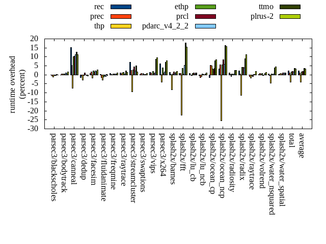======= Summary ======= runtime orig rec (overhead) prec (overhead) thp (overhead) ethp (overhead) prcl (overhead) pdarc_v4_2_2 (overhead) ttmo (overhead) plrus-2 (overhead) parsec3/blackscholes 140.228 139.959 (-0.19) 139.458 (-0.55) 138.552 (-1.19) 139.601 (-0.45) 139.626 (-0.43) 139.911 (-0.23) 140.498 (0.19) 139.986 (-0.17) parsec3/bodytrack 125.304 125.241 (-0.05) 126.068 (0.61) 125.816 (0.41) 125.921 (0.49) 126.023 (0.57) 126.509 (0.96) 126.392 (0.87) 127.390 (1.66) parsec3/canneal 201.931 232.527 (15.15) 212.722 (5.34) 186.826 (-7.48) 222.482 (10.18) 223.115 (10.49) 224.497 (11.18) 227.502 (12.66) 224.853 (11.35) parsec3/dedup 18.590 18.308 (-1.51) 18.495 (-0.51) 18.034 (-2.99) 18.518 (-0.39) 18.806 (1.16) 18.593 (0.02) 18.506 (-0.45) 18.454 (-0.73) parsec3/facesim 342.702 345.131 (0.71) 348.046 (1.56) 337.083 (-1.64) 350.047 (2.14) 348.394 (1.66) 349.866 (2.09) 349.347 (1.94) 352.195 (2.77) parsec3/fluidanimate 338.325 339.066 (0.22) 333.702 (-1.37) 328.155 (-3.01) 334.779 (-1.05) 336.368 (-0.58) 335.183 (-0.93) 339.489 (0.34) 337.651 (-0.20) parsec3/freqmine 435.506 438.713 (0.74) 436.912 (0.32) 435.332 (-0.04) 437.434 (0.44) 437.375 (0.43) 438.091 (0.59) 438.007 (0.57) 439.660 (0.95) parsec3/raytrace 183.192 184.975 (0.97) 183.914 (0.39) 185.291 (1.15) 185.671 (1.35) 183.892 (0.38) 184.313 (0.61) 187.015 (2.09) 185.922 (1.49) parsec3/streamcluster 669.513 716.616 (7.04) 685.358 (2.37) 605.980 (-9.49) 688.981 (2.91) 699.143 (4.43) 684.504 (2.24) 703.520 (5.08) 680.670 (1.67) parsec3/swaptions 220.523 220.867 (0.16) 222.377 (0.84) 220.276 (-0.11) 222.278 (0.80) 221.197 (0.31) 220.897 (0.17) 221.274 (0.34) 221.985 (0.66) parsec3/vips 87.590 88.835 (1.42) 88.418 (0.95) 87.510 (-0.09) 89.238 (1.88) 88.601 (1.15) 88.417 (0.94) 95.143 (8.62) 95.953 (9.55) parsec3/x264 111.070 117.952 (6.20) 111.463 (0.35) 106.631 (-4.00) 115.335 (3.84) 112.106 (0.93) 112.773 (1.53) 118.837 (6.99) 119.808 (7.87) splash2x/barnes 129.903 131.486 (1.22) 130.195 (0.22) 119.327 (-8.14) 130.732 (0.64) 131.919 (1.55) 130.943 (0.80) 131.483 (1.22) 132.305 (1.85) splash2x/fft 60.369 60.770 (0.66) 60.925 (0.92) 46.815 (-22.45) 62.576 (3.66) 60.737 (0.61) 63.657 (5.45) 71.091 (17.76) 69.710 (15.47) splash2x/lu_cb 132.464 133.475 (0.76) 132.528 (0.05) 132.067 (-0.30) 133.617 (0.87) 133.976 (1.14) 133.176 (0.54) 134.057 (1.20) 134.000 (1.16) splash2x/lu_ncb 152.108 151.528 (-0.38) 149.879 (-1.47) 150.927 (-0.78) 152.941 (0.55) 152.590 (0.32) 151.896 (-0.14) 152.817 (0.47) 153.809 (1.12) splash2x/ocean_cp 80.609 79.423 (-1.47) 84.938 (5.37) 84.755 (5.14) 83.287 (3.32) 83.130 (3.13) 83.557 (3.66) 86.995 (7.92) 87.288 (8.29) splash2x/ocean_ncp 156.616 161.848 (3.34) 165.478 (5.66) 116.848 (-25.39) 165.517 (5.68) 169.817 (8.43) 165.624 (5.75) 182.107 (16.28) 181.394 (15.82) splash2x/radiosity 142.690 144.124 (1.01) 142.951 (0.18) 141.226 (-1.03) 143.368 (0.48) 142.848 (0.11) 143.591 (0.63) 146.385 (2.59) 146.127 (2.41) splash2x/radix 49.989 51.062 (2.15) 50.247 (0.52) 44.287 (-11.41) 52.013 (4.05) 52.064 (4.15) 51.924 (3.87) 54.443 (8.91) 55.549 (11.12) splash2x/raytrace 135.337 135.370 (0.02) 134.181 (-0.85) 132.882 (-1.81) 134.641 (-0.51) 134.113 (-0.90) 135.495 (0.12) 135.738 (0.30) 138.074 (2.02) splash2x/volrend 120.218 120.615 (0.33) 121.014 (0.66) 120.428 (0.17) 121.032 (0.68) 119.968 (-0.21) 120.170 (-0.04) 121.298 (0.90) 121.951 (1.44) splash2x/water_nsquared 371.336 373.318 (0.53) 369.716 (-0.44) 354.237 (-4.60) 373.375 (0.55) 371.952 (0.17) 373.054 (0.46) 386.294 (4.03) 387.534 (4.36) splash2x/water_spatial 133.390 133.839 (0.34) 134.058 (0.50) 134.346 (0.72) 133.776 (0.29) 134.957 (1.17) 134.989 (1.20) 134.960 (1.18) 134.997 (1.20) total 4539.510 4645.050 (2.32) 4583.050 (0.96) 4353.660 (-4.09) 4617.170 (1.71) 4622.720 (1.83) 4611.630 (1.59) 4703.200 (3.61) 4687.250 (3.25) average 189.146 193.544 (1.64) 190.960 (0.90) 181.403 (-4.10) 192.382 (1.77) 192.613 (1.67) 192.151 (1.73) 195.967 (4.25) 195.302 (4.30) kdamond_cpu_util orig rec (overhead) prec (overhead) thp (overhead) ethp (overhead) prcl (overhead) pdarc_v4_2_2 (overhead) ttmo (overhead) plrus-2 (overhead) parsec3/blackscholes 0.000 0.000 (0.00) 0.606 (0.61) 0.000 (0.00) 1.033 (1.03) 1.160 (1.16) 0.619 (0.62) 0.000 (0.00) 0.608 (0.61) parsec3/bodytrack 0.000 1.365 (1.37) 0.534 (0.53) 0.000 (0.00) 1.237 (1.24) 1.404 (1.40) 0.582 (0.58) 0.000 (0.00) 0.526 (0.53) parsec3/canneal 0.000 1.823 (1.82) 6.507 (6.51) 0.000 (0.00) 1.970 (1.97) 1.661 (1.66) 4.008 (4.01) 0.000 (0.00) 0.992 (0.99) parsec3/dedup 0.000 0.915 (0.91) 0.493 (0.49) 0.000 (0.00) 1.062 (1.06) 1.087 (1.09) 0.506 (0.51) 0.000 (0.00) 0.498 (0.50) parsec3/facesim 0.000 1.412 (1.41) 0.609 (0.61) 0.000 (0.00) 1.397 (1.40) 1.402 (1.40) 0.614 (0.61) 0.000 (0.00) 0.604 (0.60) parsec3/fluidanimate 0.000 1.199 (1.20) 0.639 (0.64) 0.000 (0.00) 1.213 (1.21) 1.201 (1.20) 0.631 (0.63) 0.000 (0.00) 0.607 (0.61) parsec3/freqmine 0.000 1.125 (1.13) 0.608 (0.61) 0.000 (0.00) 1.148 (1.15) 1.294 (1.29) 0.614 (0.61) 0.000 (0.00) 0.604 (0.60) parsec3/raytrace 0.000 1.172 (1.17) 0.614 (0.61) 0.000 (0.00) 1.196 (1.20) 1.210 (1.21) 0.612 (0.61) 0.000 (0.00) 0.624 (0.62) parsec3/streamcluster 0.000 10.737 (10.74) 8.858 (8.86) 0.000 (0.00) 11.046 (11.05) 11.058 (11.06) 9.093 (9.09) 0.000 (0.00) 2.033 (2.03) parsec3/swaptions 0.000 1.945 (1.94) 0.600 (0.60) 0.000 (0.00) 1.882 (1.88) 1.811 (1.81) 0.598 (0.60) 0.000 (0.00) 0.607 (0.61) parsec3/vips 0.000 3.511 (3.51) 0.573 (0.57) 0.000 (0.00) 3.471 (3.47) 3.225 (3.23) 0.549 (0.55) 0.000 (0.00) 0.545 (0.54) parsec3/x264 0.000 2.429 (2.43) 0.593 (0.59) 0.000 (0.00) 2.489 (2.49) 2.506 (2.51) 0.603 (0.60) 0.000 (0.00) 0.578 (0.58) splash2x/barnes 0.000 1.031 (1.03) 0.618 (0.62) 0.000 (0.00) 1.019 (1.02) 1.037 (1.04) 0.662 (0.66) 0.000 (0.00) 0.632 (0.63) splash2x/fft 0.000 1.158 (1.16) 0.660 (0.66) 0.000 (0.00) 1.191 (1.19) 1.192 (1.19) 0.664 (0.66) 0.000 (0.00) 0.655 (0.65) splash2x/lu_cb 0.000 1.257 (1.26) 0.617 (0.62) 0.000 (0.00) 1.196 (1.20) 1.227 (1.23) 0.615 (0.62) 