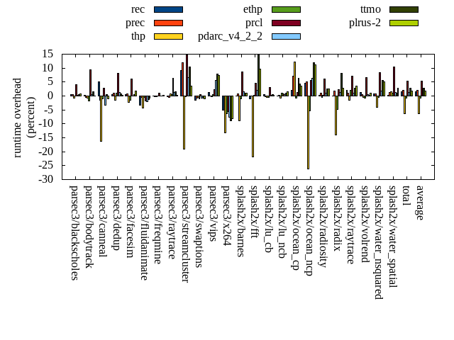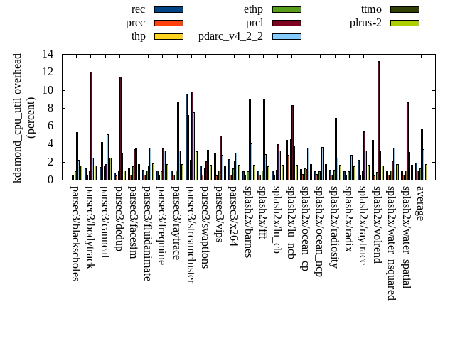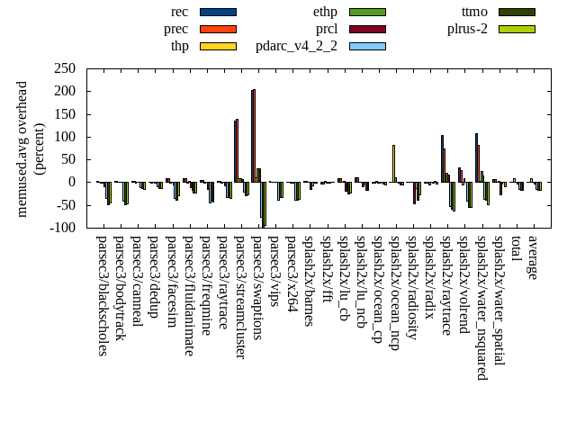 ======= Summary ======= runtime orig rec (overhead) prec (overhead) thp (overhead) ethp (overhead) prcl (overhead) pdarc_v4_2_2 (overhead) ttmo (overhead) plrus-2 (overhead) parsec3/blackscholes 139.272 139.950 (0.49) 139.889 (0.44) 138.382 (-0.64) 139.184 (-0.06) 144.810 (3.98) 139.646 (0.27) 140.154 (0.63) 140.493 (0.88) parsec3/bodytrack 126.956 127.232 (0.22) 126.409 (-0.43) 125.843 (-0.88) 124.811 (-1.69) 138.840 (9.36) 127.544 (0.46) 128.830 (1.48) 126.941 (-0.01) parsec3/canneal 229.143 240.876 (5.12) 225.786 (-1.46) 191.726 (-16.33) 227.062 (-0.91) 235.273 (2.68) 221.688 (-3.25) 230.570 (0.62) 226.812 (-1.02) parsec3/dedup 18.396 18.481 (0.46) 18.568 (0.93) 18.093 (-1.65) 18.570 (0.95) 19.875 (8.04) 18.630 (1.27) 18.557 (0.87) 18.434 (0.20) parsec3/facesim 346.389 347.854 (0.42) 348.753 (0.68) 338.070 (-2.40) 341.237 (-1.49) 367.627 (6.13) 346.582 (0.06) 347.787 (0.40) 352.450 (1.75) parsec3/fluidanimate 344.184 332.886 (-3.28) 342.704 (-0.43) 329.193 (-4.36) 342.561 (-0.47) 337.735 (-1.87) 337.220 (-2.02) 340.214 (-1.15) 341.199 (-0.87) parsec3/freqmine 437.130 436.826 (-0.07) 436.452 (-0.16) 436.030 (-0.25) 436.875 (-0.06) 441.466 (0.99) 436.756 (-0.09) 436.785 (-0.08) 438.517 (0.32) parsec3/raytrace 184.844 184.545 (-0.16) 184.073 (-0.42) 186.062 (0.66) 185.873 (0.56) 196.699 (6.41) 187.065 (1.20) 187.475 (1.42) 185.206 (0.20) parsec3/streamcluster 639.025 697.668 (9.18) 714.702 (11.84) 517.050 (-19.09) 637.920 (-0.17) 733.498 (14.78) 681.796 (6.69) 704.842 (10.30) 661.464 (3.51) parsec3/swaptions 223.661 220.325 (-1.49) 222.111 (-0.69) 222.509 (-0.52) 221.667 (-0.89) 224.576 (0.41) 222.090 (-0.70) 222.201 (-0.65) 221.154 (-1.12) parsec3/vips 87.671 88.702 (1.18) 87.560 (-0.13) 87.365 (-0.35) 88.060 (0.44) 89.761 (2.38) 92.642 (5.67) 94.682 (8.00) 94.044 (7.27) parsec3/x264 125.857 119.369 (-5.15) 120.771 (-4.04) 109.237 (-13.21) 117.779 (-6.42) 118.931 (-5.50) 116.102 (-7.75) 114.498 (-9.03) 115.766 (-8.02) splash2x/barnes 130.875 130.865 (-0.01) 131.808 (0.71) 119.209 (-8.91) 129.481 (-1.07) 142.226 (8.67) 132.802 (1.47) 132.198 (1.01) 132.072 (0.91) splash2x/fft 61.824 61.122 (-1.14) 61.830 (0.01) 48.266 (-21.93) 61.969 (0.23) 64.630 (4.54) 63.041 (1.97) 71.000 (14.84) 67.836 (9.72) splash2x/lu_cb 133.164 133.773 (0.46) 132.879 (-0.21) 132.634 (-0.40) 132.645 (-0.39) 137.183 (3.02) 133.608 (0.33) 133.922 (0.57) 133.405 (0.18) splash2x/lu_ncb 151.816 151.727 (-0.06) 152.148 (0.22) 150.846 (-0.64) 153.550 (1.14) 153.000 (0.78) 152.556 (0.49) 153.507 (1.11) 154.014 (1.45) splash2x/ocean_cp 80.888 82.506 (2.00) 86.595 (7.06) 90.730 (12.17) 80.318 (-0.70) 81.950 (1.31) 86.001 (6.32) 84.397 (4.34) 83.854 (3.67) splash2x/ocean_ncp 160.271 167.773 (4.68) 168.608 (5.20) 118.402 (-26.12) 151.694 (-5.35) 169.183 (5.56) 170.507 (6.39) 179.298 (11.87) 178.328 (11.27) splash2x/radiosity 142.091 142.451 (0.25) 143.690 (1.13) 141.226 (-0.61) 142.367 (0.19) 150.827 (6.15) 143.609 (1.07) 145.631 (2.49) 145.713 (2.55) splash2x/radix 51.729 51.745 (0.03) 52.634 (1.75) 44.560 (-13.86) 49.263 (-4.77) 52.888 (2.24) 52.403 (1.30) 55.937 (8.13) 53.215 (2.87) splash2x/raytrace 133.436 136.018 (1.94) 134.935 (1.12) 131.467 (-1.48) 136.106 (2.00) 143.043 (7.20) 134.676 (0.93) 137.040 (2.70) 138.245 (3.60) splash2x/volrend 120.047 121.463 (1.18) 120.596 (0.46) 119.494 (-0.46) 119.279 (-0.64) 128.011 (6.63) 120.766 (0.60) 120.474 (0.36) 121.210 (0.97) splash2x/water_nsquared 369.616 372.683 (0.83) 371.967 (0.64) 354.396 (-4.12) 367.731 (-0.51) 400.607 (8.38) 376.326 (1.82) 390.160 (5.56) 388.057 (4.99) splash2x/water_spatial 132.950 133.450 (0.38) 134.678 (1.30) 134.892 (1.46) 134.240 (0.97) 146.731 (10.37) 134.604 (1.24) 134.341 (1.05) 136.793 (2.89) total 4571.230 4640.280 (1.51) 4660.150 (1.95) 4285.690 (-6.25) 4540.230 (-0.68) 4819.380 (5.43) 4628.670 (1.26) 4704.490 (2.92) 4655.200 (1.84) average 190.468 193.345 (0.73) 194.173 (1.06) 178.570 (-5.16) 189.176 (-0.80) 200.808 (4.69) 192.861 (1.07) 196.020 (2.79) 193.967 (2.01) kdamond_cpu_util orig rec (overhead) prec (overhead) thp (overhead) ethp (overhead) prcl (overhead) pdarc_v4_2_2 (overhead) ttmo (overhead) plrus-2 (overhead) parsec3/blackscholes 0.000 0.000 (0.00) 0.528 (0.53) 0.000 (0.00) 0.986 (0.99) 5.286 (5.29) 2.182 (2.18) 0.000 (0.00) 1.610 (1.61) parsec3/bodytrack 0.000 1.251 (1.25) 0.487 (0.49) 0.000 (0.00) 0.954 (0.95) 12.003 (12.00) 2.414 (2.41) 0.000 (0.00) 1.559 (1.56) parsec3/canneal 0.000 1.391 (1.39) 4.222 (4.22) 0.000 (0.00) 1.466 (1.47) 1.704 (1.70) 5.026 (5.03) 0.000 (0.00) 2.420 (2.42) parsec3/dedup 0.000 0.814 (0.81) 0.456 (0.46) 0.000 (0.00) 0.940 (0.94) 11.488 (11.49) 2.945 (2.95) 0.000 (0.00) 0.998 (1.00) parsec3/facesim 0.000 1.286 (1.29) 0.561 (0.56) 0.000 (0.00) 1.527 (1.53) 3.410 (3.41) 3.504 (3.50) 0.000 (0.00) 1.749 (1.75) parsec3/fluidanimate 0.000 1.080 (1.08) 0.547 (0.55) 0.000 (0.00) 1.032 (1.03) 1.522 (1.52) 3.531 (3.53) 0.000 (0.00) 1.854 (1.85) parsec3/freqmine 0.000 1.043 (1.04) 0.542 (0.54) 0.000 (0.00) 0.983 (0.98) 3.471 (3.47) 3.217 (3.22) 0.000 (0.00) 1.738 (1.74) parsec3/raytrace 0.000 1.051 (1.05) 0.529 (0.53) 0.000 (0.00) 1.042 (1.04) 8.647 (8.65) 3.269 (3.27) 0.000 (0.00) 1.715 (1.71) parsec3/streamcluster 0.000 9.604 (9.60) 7.187 (7.19) 0.000 (0.00) 2.187 (2.19) 9.836 (9.84) 7.541 (7.54) 0.000 (0.00) 3.184 (3.18) parsec3/swaptions 0.000 1.561 (1.56) 0.522 (0.52) 0.000 (0.00) 1.373 (1.37) 2.087 (2.09) 3.322 (3.32) 0.000 (0.00) 1.684 (1.68) parsec3/vips 0.000 3.027 (3.03) 0.512 (0.51) 0.000 (0.00) 1.064 (1.06) 4.923 (4.92) 2.798 (2.80) 0.000 (0.00) 1.559 (1.56) parsec3/x264 0.000 2.275 (2.27) 0.532 (0.53) 0.000 (0.00) 1.262 (1.26) 2.165 (2.17) 3.017 (3.02) 0.000 (0.00) 1.636 (1.64) splash2x/barnes 0.000 0.924 (0.92) 0.562 (0.56) 0.000 (0.00) 0.948 (0.95) 9.001 (9.00) 4.133 (4.13) 0.000 (0.00) 1.644 (1.64) splash2x/fft 0.000 1.048 (1.05) 0.583 (0.58) 0.000 (0.00) 1.018 (1.02) 8.900 (8.90) 2.830 (2.83) 0.000 (0.00) 1.538 (1.54) splash2x/lu_cb 0.000 1.061 (1.06) 0.537 (0.54) 0.000 (0.00) 1.088 (1.09) 3.
