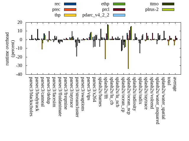 ======= Summary ======= runtime orig rec (overhead) prec (overhead) thp (overhead) ethp (overhead) prcl (overhead) pdarc_v4_2_2 (overhead) ttmo (overhead) plrus-2 (overhead) parsec3/blackscholes 138.559 139.589 (0.74) 139.121 (0.41) 138.517 (-0.03) 139.539 (0.71) 146.182 (5.50) 139.795 (0.89) 139.659 (0.79) 140.120 (1.13) parsec3/bodytrack 125.793 127.920 (1.69) 126.271 (0.38) 124.839 (-0.76) 126.915 (0.89) 141.023 (12.11) 127.311 (1.21) 127.039 (0.99) 126.490 (0.55) parsec3/canneal 219.054 219.375 (0.15) 222.369 (1.51) 194.925 (-11.01) 211.099 (-3.63) 221.995 (1.34) 234.528 (7.06) 234.450 (7.03) 230.301 (5.13) parsec3/dedup 18.614 18.579 (-0.19) 18.572 (-0.23) 18.155 (-2.47) 18.515 (-0.53) 20.415 (9.68) 18.730 (0.62) 18.540 (-0.40) 18.474 (-0.75) parsec3/facesim 347.474 346.969 (-0.15) 349.883 (0.69) 339.441 (-2.31) 345.637 (-0.53) 363.249 (4.54) 348.890 (0.41) 354.891 (2.13) 360.461 (3.74) parsec3/fluidanimate 343.263 334.309 (-2.61) 332.410 (-3.16) 328.659 (-4.25) 333.763 (-2.77) 339.709 (-1.04) 338.663 (-1.34) 335.721 (-2.20) 333.703 (-2.79) parsec3/freqmine 434.382 438.660 (0.98) 436.232 (0.43) 434.768 (0.09) 436.396 (0.46) 442.935 (1.97) 438.277 (0.90) 436.954 (0.59) 437.085 (0.62) parsec3/raytrace 181.384 186.069 (2.58) 183.352 (1.09) 185.227 (2.12) 186.192 (2.65) 199.322 (9.89) 186.919 (3.05) 188.338 (3.83) 184.309 (1.61) parsec3/streamcluster 709.098 690.852 (-2.57) 650.055 (-8.33) 573.964 (-19.06) 661.629 (-6.69) 726.659 (2.48) 700.379 (-1.23) 685.747 (-3.29) 683.970 (-3.54) parsec3/swaptions 222.109 221.185 (-0.42) 221.018 (-0.49) 221.659 (-0.20) 222.307 (0.09) 226.076 (1.79) 221.468 (-0.29) 223.770 (0.75) 223.886 (0.80) parsec3/vips 87.676 89.264 (1.81) 88.425 (0.85) 87.750 (0.08) 87.757 (0.09) 90.346 (3.05) 93.026 (6.10) 94.859 (8.19) 95.322 (8.72) parsec3/x264 117.933 121.623 (3.13) 107.937 (-8.48) 116.351 (-1.34) 122.256 (3.67) 108.669 (-7.86) 124.447 (5.52) 122.665 (4.01) 124.490 (5.56) splash2x/barnes 130.149 130.330 (0.14) 131.535 (1.06) 119.953 (-7.83) 129.283 (-0.67) 146.503 (12.57) 132.793 (2.03) 133.591 (2.64) 131.699 (1.19) splash2x/fft 61.254 62.702 (2.36) 61.955 (1.14) 47.689 (-22.15) 61.902 (1.06) 65.612 (7.11) 63.768 (4.10) 72.025 (17.58) 71.541 (16.79) splash2x/lu_cb 132.673 134.052 (1.04) 132.892 (0.17) 133.475 (0.61) 134.058 (1.04) 137.677 (3.77) 133.310 (0.48) 134.013 (1.01) 134.264 (1.20) splash2x/lu_ncb 150.437 154.009 (2.37) 152.250 (1.21) 151.897 (0.97) 151.445 (0.67) 155.609 (3.44) 151.559 (0.75) 152.023 (1.05) 152.972 (1.69) splash2x/ocean_cp 92.801 80.936 (-12.78) 81.699 (-11.96) 96.853 (4.37) 87.569 (-5.64) 90.538 (-2.44) 84.317 (-9.14) 91.058 (-1.88) 85.319 (-8.06) splash2x/ocean_ncp 158.261 170.685 (7.85) 166.854 (5.43) 105.787 (-33.16) 160.298 (1.29) 175.539 (10.92) 169.572 (7.15) 181.609 (14.75) 182.791 (15.50) splash2x/radiosity 142.323 142.284 (-0.03) 142.776 (0.32) 141.886 (-0.31) 142.463 (0.10) 152.361 (7.05) 143.599 (0.90) 146.605 (3.01) 145.431 (2.18) splash2x/radix 53.443 53.135 (-0.58) 51.676 (-3.31) 45.354 (-15.14) 51.263 (-4.08) 53.371 (-0.13) 54.011 (1.06) 55.916 (4.63) 56.622 (5.95) splash2x/raytrace 135.360 135.472 (0.08) 135.175 (-0.14) 133.541 (-1.34) 134.513 (-0.63) 145.915 (7.80) 135.307 (-0.04) 141.269 (4.37) 137.070 (1.26) splash2x/volrend 120.187 120.748 (0.47) 120.799 (0.51) 119.924 (-0.22) 120.308 (0.10) 129.378 (7.65) 121.050 (0.72) 120.910 (0.60) 121.389 (1.00) splash2x/water_nsquared 370.602 371.900 (0.35) 372.312 (0.46) 353.233 (-4.69) 366.935 (-0.99) 398.307 (7.48) 376.444 (1.58) 387.804 (4.64) 391.175 (5.55) splash2x/water_spatial 134.314 134.754 (0.33) 134.064 (-0.19) 135.348 (0.77) 135.088 (0.58) 147.751 (10.00) 136.741 (1.81) 134.419 (0.08) 136.803 (1.85) total 4627.130 4625.390 (-0.04) 4559.620 (-1.46) 4349.190 (-6.01) 4567.150 (-1.30) 4825.150 (4.28) 4674.920 (1.03) 4713.860 (1.87) 4705.690 (1.70) average 192.797 192.725 (0.28) 189.984 (-0.86) 181.216 (-4.89) 190.298 (-0.53) 201.048 (4.94) 194.788 (1.43) 196.411 (3.12) 196.070 (2.79) kdamond_cpu_util orig rec (overhead) prec (overhead) thp (overhead) ethp (overhead) prcl (overhead) pdarc_v4_2_2 (overhead) ttmo (overhead) plrus-2 (overhead) parsec3/blackscholes 0.000 0.000 (0.00) 0.596 (0.60) 0.000 (0.00) 1.133 (1.13) 5.891 (5.89) 2.797 (2.80) 0.000 (0.00) 1.773 (1.77) parsec3/bodytrack 0.000 1.314 (1.31) 0.537 (0.54) 0.000 (0.00) 1.037 (1.04) 13.150 (13.15) 3.166 (3.17) 0.000 (0.00) 1.818 (1.82) parsec3/canneal 0.000 1.632 (1.63) 5.581 (5.58) 0.000 (0.00) 1.554 (1.55) 1.961 (1.96) 9.732 (9.73) 0.000 (0.00) 2.566 (2.57) parsec3/dedup 0.000 0.945 (0.94) 0.482 (0.48) 0.000 (0.00) 0.826 (0.83) 12.493 (12.49) 3.135 (3.14) 0.000 (0.00) 1.063 (1.06) parsec3/facesim 0.000 1.425 (1.43) 0.532 (0.53) 0.000 (0.00) 1.621 (1.62) 3.946 (3.95) 3.828 (3.83) 0.000 (0.00) 1.984 (1.98) parsec3/fluidanimate 0.000 1.183 (1.18) 0.619 (0.62) 0.000 (0.00) 1.151 (1.15) 1.446 (1.45) 3.949 (3.95) 0.000 (0.00) 1.953 (1.95) parsec3/freqmine 0.000 1.318 (1.32) 0.611 (0.61) 0.000 (0.00) 1.099 (1.10) 3.926 (3.93) 3.746 (3.75) 0.000 (0.00) 1.961 (1.96) parsec3/raytrace 0.000 1.149 (1.15) 0.609 (0.61) 0.000 (0.00) 1.108 (1.11) 9.752 (9.75) 2.503 (2.50) 0.000 (0.00) 1.925 (1.93) parsec3/streamcluster 0.000 10.840 (10.84) 8.662 (8.66) 0.000 (0.00) 1.355 (1.35) 11.256 (11.26) 8.609 (8.61) 0.000 (0.00) 3.020 (3.02) parsec3/swaptions 0.000 1.827 (1.83) 0.595 (0.60) 0.000 (0.00) 1.390 (1.39) 2.297 (2.30) 3.768 (3.77) 0.000 (0.00) 1.888 (1.89) parsec3/vips 0.000 3.462 (3.46) 0.585 (0.59) 0.000 (0.00) 1.449 (1.45) 5.694 (5.69) 2.824 (2.82) 0.000 (0.00) 1.714 (1.71) parsec3/x264 0.000 2.488 (2.49) 0.592 (0.59) 0.000 (0.00) 1.343 (1.34) 2.514 (2.51) 3.217 (3.22) 0.000 (0.00) 1.766 (1.77) splash2x/barnes 0.000 1.012 (1.01) 0.870 (0.87) 0.000 (0.00) 1.089 (1.09) 11.293 (11.29) 4.731 (4.73) 0.000 (0.00) 1.909 (1.91) splash2x/fft 0.000 1.163 (1.16) 0.661 (0.66) 0.000 (0.00) 1.207 (1.21) 10.684 (10.68) 3.038 (3.04) 0.000 (0.00) 1.804 (1.80) splash2x/lu_cb 0.000 1.184 (1.18) 0.614 (0.61) 0.000 (0.00) 1.228 (1.23)