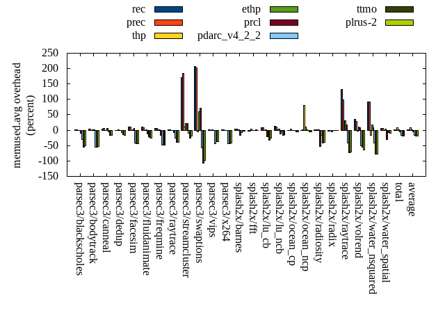 ======= Summary ======= runtime orig rec (overhead) prec (overhead) thp (overhead) ethp (overhead) prcl (overhead) pdarc_v4_2_2 (overhead) ttmo (overhead) plrus-2 (overhead) parsec3/blackscholes 139.059 139.926 (0.62) 140.187 (0.81) 139.222 (0.12) 139.860 (0.58) 146.202 (5.14) 140.153 (0.79) 140.129 (0.77) 140.180 (0.81) parsec3/bodytrack 125.721 127.637 (1.52) 126.354 (0.50) 125.823 (0.08) 126.087 (0.29) 138.688 (10.31) 126.880 (0.92) 125.894 (0.14) 127.936 (1.76) parsec3/canneal 214.810 220.991 (2.88) 217.605 (1.30) 186.681 (-13.09) 208.744 (-2.82) 219.716 (2.28) 218.106 (1.53) 215.896 (0.51) 227.999 (6.14) parsec3/dedup 18.724 18.435 (-1.54) 18.494 (-1.23) 18.093 (-3.37) 18.378 (-1.85) 20.213 (7.95) 18.803 (0.42) 18.578 (-0.78) 18.456 (-1.43) parsec3/facesim 353.414 349.166 (-1.20) 346.998 (-1.82) 341.898 (-3.26) 341.686 (-3.32) 361.051 (2.16) 348.591 (-1.36) 352.974 (-0.12) 348.344 (-1.43) parsec3/fluidanimate 341.704 336.734 (-1.45) 337.102 (-1.35) 328.815 (-3.77) 335.015 (-1.96) 344.829 (0.91) 341.559 (-0.04) 337.178 (-1.32) 337.624 (-1.19) parsec3/freqmine 435.655 436.024 (0.08) 435.609 (-0.01) 438.547 (0.66) 436.903 (0.29) 443.081 (1.70) 438.592 (0.67) 438.201 (0.58) 437.528 (0.43) parsec3/raytrace 184.237 184.908 (0.36) 185.303 (0.58) 186.110 (1.02) 185.800 (0.85) 198.814 (7.91) 186.136 (1.03) 187.896 (1.99) 188.338 (2.23) parsec3/streamcluster 652.897 724.783 (11.01) 665.745 (1.97) 522.783 (-19.93) 718.963 (10.12) 699.709 (7.17) 642.175 (-1.64) 654.781 (0.29) 684.496 (4.84) parsec3/swaptions 220.064 220.966 (0.41) 221.510 (0.66) 220.902 (0.38) 221.868 (0.82) 226.472 (2.91) 221.807 (0.79) 222.677 (1.19) 222.147 (0.95) parsec3/vips 87.301 88.937 (1.87) 88.300 (1.14) 87.894 (0.68) 87.749 (0.51) 90.504 (3.67) 93.337 (6.91) 95.313 (9.18) 95.346 (9.21) parsec3/x264 119.200 118.144 (-0.89) 112.625 (-5.52) 113.476 (-4.80) 116.470 (-2.29) 114.291 (-4.12) 116.842 (-1.98) 121.534 (1.96) 120.996 (1.51) splash2x/barnes 129.602 131.224 (1.25) 131.791 (1.69) 119.340 (-7.92) 129.832 (0.18) 143.969 (11.09) 132.695 (2.39) 131.865 (1.75) 133.013 (2.63) splash2x/fft 61.028 61.583 (0.91) 60.478 (-0.90) 48.542 (-20.46) 59.558 (-2.41) 62.638 (2.64) 63.865 (4.65) 69.426 (13.76) 70.791 (16.00) splash2x/lu_cb 132.573 132.878 (0.23) 132.500 (-0.05) 132.733 (0.12) 132.960 (0.29) 137.120 (3.43) 133.184 (0.46) 134.824 (1.70) 134.055 (1.12) splash2x/lu_ncb 149.342 154.493 (3.45) 151.831 (1.67) 151.039 (1.14) 149.690 (0.23) 153.062 (2.49) 150.009 (0.45) 153.472 (2.76) 153.158 (2.56) splash2x/ocean_cp 81.976 81.520 (-0.56) 83.218 (1.51) 91.402 (11.50) 84.686 (3.31) 84.420 (2.98) 82.525 (0.67) 89.064 (8.65) 83.654 (2.05) splash2x/ocean_ncp 160.930 163.725 (1.74) 167.056 (3.81) 105.245 (-34.60) 152.499 (-5.24) 164.478 (2.21) 166.617 (3.53) 175.725 (9.19) 178.227 (10.75) splash2x/radiosity 142.269 143.936 (1.17) 142.438 (0.12) 141.989 (-0.20) 143.084 (0.57) 149.435 (5.04) 143.752 (1.04) 146.107 (2.70) 147.048 (3.36) splash2x/radix 51.383 50.925 (-0.89) 51.255 (-0.25) 45.347 (-11.75) 49.447 (-3.77) 52.072 (1.34) 53.717 (4.54) 53.963 (5.02) 54.355 (5.78) splash2x/raytrace 133.830 135.779 (1.46) 135.972 (1.60) 133.863 (0.02) 135.082 (0.94) 144.244 (7.78) 134.392 (0.42) 137.637 (2.84) 138.122 (3.21) splash2x/volrend 121.076 121.057 (-0.02) 120.525 (-0.46) 119.415 (-1.37) 120.088 (-0.82) 128.426 (6.07) 121.299 (0.18) 120.737 (-0.28) 120.867 (-0.17) splash2x/water_nsquared 371.725 371.552 (-0.05) 372.996 (0.34) 355.026 (-4.49) 366.188 (-1.49) 396.203 (6.58) 375.274 (0.95) 386.025 (3.85) 387.118 (4.14) splash2x/water_spatial 132.839 134.332 (1.12) 133.774 (0.70) 133.787 (0.71) 135.951 (2.34) 146.330 (10.16) 136.496 (2.75) 134.769 (1.45) 135.799 (2.23) total 4561.370 4649.650 (1.94) 4579.670 (0.40) 4287.970 (-5.99) 4596.590 (0.77) 4765.950 (4.49) 4586.820 (0.56) 4644.670 (1.83) 4685.630 (2.72) average 190.057 193.735 (0.98) 190.820 (0.28) 178.665 (-4.69) 191.525 (-0.19) 198.581 (4.58) 191.117 (1.25) 193.528 (2.82) 195.235 (3.23) kdamond_cpu_util orig rec (overhead) prec (overhead) thp (overhead) ethp (overhead) prcl (overhead) pdarc_v4_2_2 (overhead) ttmo (overhead) plrus-2 (overhead) parsec3/blackscholes 0.000 0.000 (0.00) 0.615 (0.61) 0.000 (0.00) 1.182 (1.18) 5.974 (5.97) 2.497 (2.50) 0.000 (0.00) 1.825 (1.83) parsec3/bodytrack 0.000 1.379 (1.38) 0.572 (0.57) 0.000 (0.00) 0.854 (0.85) 12.992 (12.99) 3.273 (3.27) 0.000 (0.00) 1.797 (1.80) parsec3/canneal 0.000 1.663 (1.66) 7.558 (7.56) 0.000 (0.00) 1.453 (1.45) 1.980 (1.98) 6.952 (6.95) 0.000 (0.00) 2.830 (2.83) parsec3/dedup 0.000 0.911 (0.91) 0.488 (0.49) 0.000 (0.00) 1.003 (1.00) 12.310 (12.31) 3.093 (3.09) 0.000 (0.00) 1.079 (1.08) parsec3/facesim 0.000 1.387 (1.39) 0.617 (0.62) 0.000 (0.00) 1.661 (1.66) 3.893 (3.89) 3.885 (3.89) 0.000 (0.00) 1.975 (1.97) parsec3/fluidanimate 0.000 1.203 (1.20) 0.626 (0.63) 0.000 (0.00) 1.170 (1.17) 1.739 (1.74) 3.883 (3.88) 0.000 (0.00) 1.993 (1.99) parsec3/freqmine 0.000 1.166 (1.17) 0.622 (0.62) 0.000 (0.00) 1.086 (1.09) 3.955 (3.96) 3.619 (3.62) 0.000 (0.00) 1.963 (1.96) parsec3/raytrace 0.000 1.133 (1.13) 0.615 (0.62) 0.000 (0.00) 1.106 (1.11) 9.376 (9.38) 3.262 (3.26) 0.000 (0.00) 1.911 (1.91) parsec3/streamcluster 0.000 10.683 (10.68) 8.985 (8.98) 0.000 (0.00) 1.300 (1.30) 11.002 (11.00) 8.071 (8.07) 0.000 (0.00) 2.918 (2.92) parsec3/swaptions 0.000 1.956 (1.96) 0.606 (0.61) 0.000 (0.00) 1.053 (1.05) 2.421 (2.42) 3.767 (3.77) 0.000 (0.00) 1.931 (1.93) parsec3/vips 0.000 3.323 (3.32) 0.575 (0.57) 0.000 (0.00) 1.237 (1.24) 5.553 (5.55) 3.079 (3.08) 0.000 (0.00) 1.787 (1.79) parsec3/x264 0.000 2.447 (2.45) 0.589 (0.59) 0.000 (0.00) 1.292 (1.29) 2.492 (2.49) 2.964 (2.96) 0.000 (0.00) 1.791 (1.79) splash2x/barnes 0.000 1.016 (1.02) 0.705 (0.70) 0.000 (0.00) 1.008 (1.01) 10.024 (10.02) 5.526 (5.53) 0.000 (0.00) 1.905 (1.91) splash2x/fft 0.000 1.139 (1.14) 0.659 (0.66) 0.000 (0.00) 1.192 (1.19) 8.455 (8.45) 4.868 (4.87) 0.000 (0.00) 1.775 (1.78) splash2x/lu_cb 0.000 1.235 (1.23) 0.611 (0.61) 0.000 (0.00) 1.196 (1.20) 4.139 (4.14) 3