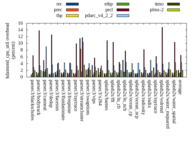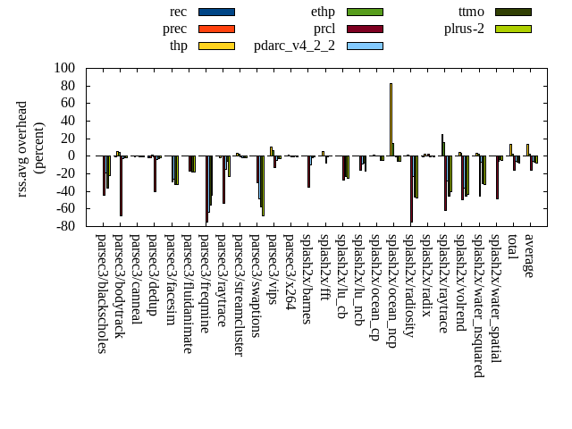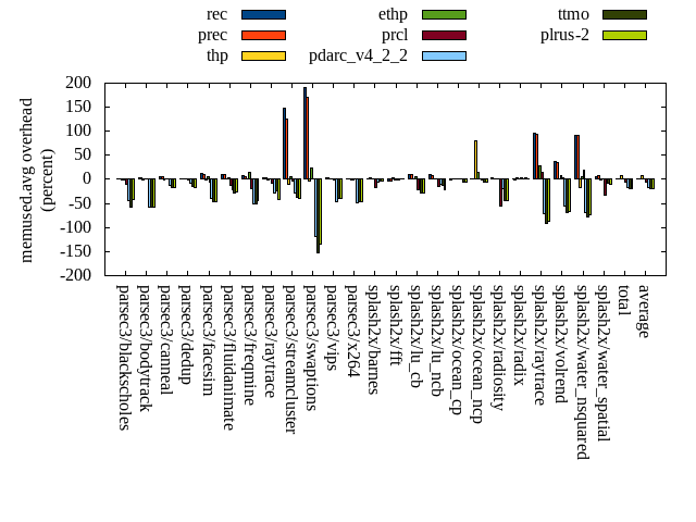 ======= Summary ======= runtime orig rec (overhead) prec (overhead) thp (overhead) ethp (overhead) prcl (overhead) pdarc_v4_2_2 (overhead) ttmo (overhead) plrus-2 (overhead) parsec3/blackscholes 140.081 139.972 (-0.08) 139.868 (-0.15) 138.345 (-1.24) 140.030 (-0.04) 147.189 (5.07) 140.169 (0.06) 140.222 (0.10) 140.359 (0.20) parsec3/bodytrack 124.823 125.866 (0.84) 125.455 (0.51) 125.888 (0.85) 127.221 (1.92) 141.263 (13.17) 126.059 (0.99) 125.662 (0.67) 126.134 (1.05) parsec3/canneal 215.332 226.748 (5.30) 227.477 (5.64) 182.257 (-15.36) 214.282 (-0.49) 234.542 (8.92) 227.090 (5.46) 233.397 (8.39) 237.990 (10.52) parsec3/dedup 18.627 18.650 (0.12) 18.612 (-0.08) 18.328 (-1.60) 18.702 (0.40) 20.415 (9.60) 18.611 (-0.09) 18.546 (-0.44) 18.448 (-0.96) parsec3/facesim 348.563 350.074 (0.43) 349.391 (0.24) 340.135 (-2.42) 343.392 (-1.48) 362.516 (4.00) 352.498 (1.13) 353.408 (1.39) 349.532 (0.28) parsec3/fluidanimate 337.153 339.106 (0.58) 340.428 (0.97) 331.840 (-1.58) 333.686 (-1.03) 342.899 (1.70) 340.457 (0.98) 336.543 (-0.18) 340.039 (0.86) parsec3/freqmine 434.977 436.732 (0.40) 437.370 (0.55) 434.672 (-0.07) 437.807 (0.65) 443.514 (1.96) 438.887 (0.90) 437.328 (0.54) 439.623 (1.07) parsec3/raytrace 184.313 184.609 (0.16) 184.523 (0.11) 186.314 (1.09) 185.689 (0.75) 201.287 (9.21) 187.381 (1.66) 186.397 (1.13) 187.721 (1.85) parsec3/streamcluster 703.742 743.966 (5.72) 708.009 (0.61) 591.646 (-15.93) 604.705 (-14.07) 735.701 (4.54) 721.188 (2.48) 700.043 (-0.53) 692.526 (-1.59) parsec3/swaptions 219.840 222.547 (1.23) 220.404 (0.26) 221.330 (0.68) 222.140 (1.05) 225.285 (2.48) 223.911 (1.85) 221.953 (0.96) 221.189 (0.61) parsec3/vips 88.020 88.186 (0.19) 87.983 (-0.04) 87.967 (-0.06) 87.796 (-0.25) 90.584 (2.91) 93.938 (6.72) 95.227 (8.19) 95.728 (8.76) parsec3/x264 117.677 119.128 (1.23) 113.515 (-3.54) 111.234 (-5.48) 113.590 (-3.47) 116.194 (-1.26) 128.357 (9.08) 122.506 (4.10) 122.076 (3.74) splash2x/barnes 131.695 131.351 (-0.26) 131.730 (0.03) 120.133 (-8.78) 129.047 (-2.01) 144.091 (9.41) 131.959 (0.20) 132.511 (0.62) 132.709 (0.77) splash2x/fft 62.206 62.037 (-0.27) 61.656 (-0.88) 48.493 (-22.04) 61.973 (-0.37) 65.848 (5.86) 63.349 (1.84) 74.628 (19.97) 70.801 (13.82) splash2x/lu_cb 132.965 133.300 (0.25) 133.401 (0.33) 133.114 (0.11) 133.488 (0.39) 137.464 (3.38) 133.693 (0.55) 134.768 (1.36) 134.492 (1.15) splash2x/lu_ncb 150.740 152.476 (1.15) 151.527 (0.52) 150.814 (0.05) 151.013 (0.18) 152.817 (1.38) 151.871 (0.75) 152.057 (0.87) 153.718 (1.98) splash2x/ocean_cp 83.660 84.419 (0.91) 83.725 (0.08) 81.055 (-3.11) 86.133 (2.96) 84.915 (1.50) 87.889 (5.06) 84.390 (0.87) 86.180 (3.01) splash2x/ocean_ncp 161.512 169.840 (5.16) 165.185 (2.27) 102.521 (-36.52) 154.927 (-4.08) 172.208 (6.62) 165.793 (2.65) 181.800 (12.56) 179.417 (11.09) splash2x/radiosity 142.568 142.813 (0.17) 142.608 (0.03) 142.729 (0.11) 143.253 (0.48) 153.224 (7.47) 143.422 (0.60) 146.259 (2.59) 146.713 (2.91) splash2x/radix 50.952 52.158 (2.37) 52.418 (2.88) 45.393 (-10.91) 51.201 (0.49) 54.012 (6.01) 55.777 (9.47) 56.356 (10.61) 56.473 (10.84) splash2x/raytrace 133.715 135.686 (1.47) 133.974 (0.19) 134.567 (0.64) 133.934 (0.16) 144.383 (7.98) 134.877 (0.87) 136.067 (1.76) 139.588 (4.39) splash2x/volrend 120.464 120.654 (0.16) 121.177 (0.59) 120.014 (-0.37) 120.575 (0.09) 128.923 (7.02) 121.166 (0.58) 120.872 (0.34) 121.220 (0.63) splash2x/water_nsquared 372.146 373.780 (0.44) 372.564 (0.11) 356.071 (-4.32) 364.502 (-2.05) 401.455 (7.88) 378.493 (1.71) 390.935 (5.05) 390.192 (4.85) splash2x/water_spatial 133.969 134.266 (0.22) 134.296 (0.24) 134.677 (0.53) 134.433 (0.35) 148.433 (10.80) 136.418 (1.83) 134.765 (0.59) 135.456 (1.11) total 4609.760 4688.390 (1.71) 4637.310 (0.60) 4339.510 (-5.86) 4493.510 (-2.52) 4849.150 (5.19) 4703.260 (2.03) 4716.660 (2.32) 4718.330 (2.36) average 192.073 195.350 (1.16) 193.221 (0.48) 180.813 (-5.24) 187.230 (-0.81) 202.048 (5.73) 195.969 (2.39) 196.528 (3.40) 196.597 (3.45) kdamond_cpu_util orig rec (overhead) prec (overhead) thp (overhead) ethp (overhead) prcl (overhead) pdarc_v4_2_2 (overhead) ttmo (overhead) plrus-2 (overhead) parsec3/blackscholes 0.000 0.000 (0.00) 0.683 (0.68) 0.000 (0.00) 1.181 (1.18) 6.405 (6.41) 2.905 (2.91) 0.000 (0.00) 2.009 (2.01) parsec3/bodytrack 0.000 1.469 (1.47) 0.599 (0.60) 0.000 (0.00) 1.135 (1.13) 13.833 (13.83) 3.407 (3.41) 0.000 (0.00) 1.948 (1.95) parsec3/canneal 0.000 1.750 (1.75) 4.968 (4.97) 0.000 (0.00) 1.555 (1.56) 2.231 (2.23) 9.048 (9.05) 0.000 (0.00) 2.629 (2.63) parsec3/dedup 0.000 0.943 (0.94) 0.565 (0.56) 0.000 (0.00) 0.968 (0.97) 12.553 (12.55) 3.643 (3.64) 0.000 (0.00) 1.124 (1.12) parsec3/facesim 0.000 1.413 (1.41) 0.690 (0.69) 0.000 (0.00) 1.707 (1.71) 4.011 (4.01) 4.221 (4.22) 0.000 (0.00) 2.132 (2.13) parsec3/fluidanimate 0.000 1.268 (1.27) 0.696 (0.70) 0.000 (0.00) 1.208 (1.21) 1.441 (1.44) 4.261 (4.26) 0.000 (0.00) 2.146 (2.15) parsec3/freqmine 0.000 1.264 (1.26) 0.691 (0.69) 0.000 (0.00) 1.188 (1.19) 4.222 (4.22) 3.937 (3.94) 0.000 (0.00) 2.146 (2.15) parsec3/raytrace 0.000 1.216 (1.22) 0.686 (0.69) 0.000 (0.00) 1.182 (1.18) 9.978 (9.98) 3.324 (3.32) 0.000 (0.00) 2.034 (2.03) parsec3/streamcluster 0.000 11.461 (11.46) 8.419 (8.42) 0.000 (0.00) 1.601 (1.60) 11.733 (11.73) 10.355 (10.35) 0.000 (0.00) 3.655 (3.65) parsec3/swaptions 0.000 2.172 (2.17) 0.664 (0.66) 0.000 (0.00) 2.228 (2.23) 2.675 (2.68) 4.098 (4.10) 0.000 (0.00) 2.079 (2.08) parsec3/vips 0.000 3.556 (3.56) 0.659 (0.66) 0.000 (0.00) 1.302 (1.30) 5.735 (5.74) 2.970 (2.97) 0.000 (0.00) 1.900 (1.90) parsec3/x264 0.000 2.640 (2.64) 0.661 (0.66) 0.000 (0.00) 1.485 (1.48) 2.573 (2.57) 3.376 (3.38) 0.000 (0.00) 1.921 (1.92) splash2x/barnes 0.000 1.092 (1.09) 0.729 (0.73) 0.000 (0.00) 1.102 (1.10) 10.849 (10.85) 5.012 (5.01) 0.000 (0.00) 2.027 (2.03) splash2x/fft 0.000 1.250 (1.25) 0.575 (0.57) 0.000 (0.00) 1.295 (1.29) 10.439 (10.44) 3.456 (3.46) 0.000 (0.00) 1.939 (1.94) splash2x/lu_cb 0.000 1.329 (1.33) 0.664 (0.66) 0.000 (0.00) 1.276 (1.28) 4.427 (4.43) 3.910 