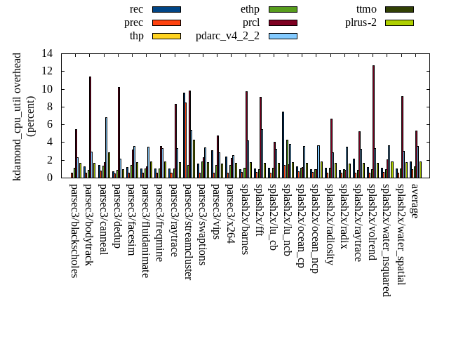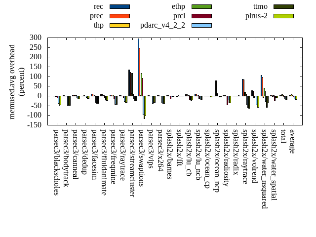 ======= Summary ======= runtime orig rec (overhead) prec (overhead) thp (overhead) ethp (overhead) prcl (overhead) pdarc_v4_2_2 (overhead) ttmo (overhead) plrus-2 (overhead) parsec3/blackscholes 139.466 139.682 (0.15) 139.827 (0.26) 138.950 (-0.37) 139.901 (0.31) 146.176 (4.81) 140.289 (0.59) 139.800 (0.24) 140.285 (0.59) parsec3/bodytrack 125.809 126.004 (0.16) 125.496 (-0.25) 125.584 (-0.18) 126.997 (0.94) 137.194 (9.05) 127.505 (1.35) 126.221 (0.33) 126.328 (0.41) parsec3/canneal 214.963 223.860 (4.14) 231.805 (7.83) 186.258 (-13.35) 218.973 (1.87) 235.097 (9.37) 230.476 (7.22) 239.332 (11.34) 229.133 (6.59) parsec3/dedup 18.388 18.575 (1.02) 18.673 (1.55) 18.645 (1.40) 18.963 (3.13) 20.587 (11.96) 18.876 (2.65) 18.510 (0.67) 18.404 (0.09) parsec3/facesim 346.975 347.501 (0.15) 346.586 (-0.11) 338.084 (-2.56) 343.362 (-1.04) 360.952 (4.03) 353.859 (1.98) 350.728 (1.08) 352.601 (1.62) parsec3/fluidanimate 334.867 343.460 (2.57) 335.153 (0.09) 331.667 (-0.96) 337.984 (0.93) 342.447 (2.26) 339.385 (1.35) 340.332 (1.63) 337.850 (0.89) parsec3/freqmine 435.495 436.904 (0.32) 438.210 (0.62) 436.462 (0.22) 435.642 (0.03) 445.631 (2.33) 437.912 (0.55) 437.102 (0.37) 437.043 (0.36) parsec3/raytrace 182.600 184.173 (0.86) 185.682 (1.69) 185.270 (1.46) 183.289 (0.38) 198.264 (8.58) 187.627 (2.75) 185.566 (1.62) 187.096 (2.46) parsec3/streamcluster 657.351 776.780 (18.17) 745.399 (13.39) 565.006 (-14.05) 654.370 (-0.45) 724.285 (10.18) 714.436 (8.68) 703.271 (6.99) 750.018 (14.10) parsec3/swaptions 219.530 221.319 (0.81) 221.654 (0.97) 220.901 (0.62) 220.779 (0.57) 224.688 (2.35) 221.591 (0.94) 220.513 (0.45) 223.819 (1.95) parsec3/vips 87.881 89.399 (1.73) 88.783 (1.03) 88.029 (0.17) 87.580 (-0.34) 90.287 (2.74) 93.033 (5.86) 95.318 (8.46) 94.422 (7.44) parsec3/x264 120.675 111.891 (-7.28) 119.577 (-0.91) 107.312 (-11.07) 116.076 (-3.81) 122.956 (1.89) 119.543 (-0.94) 115.187 (-4.55) 111.253 (-7.81) splash2x/barnes 130.265 131.592 (1.02) 130.820 (0.43) 118.751 (-8.84) 129.565 (-0.54) 141.372 (8.53) 133.206 (2.26) 132.051 (1.37) 131.377 (0.85) splash2x/fft 61.658 61.399 (-0.42) 61.632 (-0.04) 47.063 (-23.67) 62.402 (1.21) 64.503 (4.62) 63.617 (3.18) 69.924 (13.41) 70.197 (13.85) splash2x/lu_cb 133.094 132.927 (-0.13) 133.079 (-0.01) 133.247 (0.12) 133.733 (0.48) 136.998 (2.93) 133.568 (0.36) 133.483 (0.29) 133.535 (0.33) splash2x/lu_ncb 152.971 152.355 (-0.40) 151.763 (-0.79) 152.789 (-0.12) 150.737 (-1.46) 152.387 (-0.38) 152.739 (-0.15) 151.885 (-0.71) 152.861 (-0.07) splash2x/ocean_cp 89.087 82.564 (-7.32) 83.653 (-6.10) 77.598 (-12.90) 84.150 (-5.54) 89.145 (0.06) 86.568 (-2.83) 86.814 (-2.55) 84.616 (-5.02) splash2x/ocean_ncp 160.710 166.655 (3.70) 168.825 (5.05) 110.462 (-31.27) 154.416 (-3.92) 175.965 (9.49) 175.636 (9.29) 180.051 (12.03) 185.543 (15.45) splash2x/radiosity 141.872 143.496 (1.14) 142.842 (0.68) 141.887 (0.01) 142.900 (0.72) 152.361 (7.39) 144.468 (1.83) 146.674 (3.39) 145.355 (2.46) splash2x/radix 50.434 51.682 (2.47) 52.090 (3.28) 44.236 (-12.29) 52.175 (3.45) 52.189 (3.48) 54.352 (7.77) 55.489 (10.02) 55.110 (9.27) splash2x/raytrace 134.472 135.923 (1.08) 135.567 (0.81) 134.114 (-0.27) 133.087 (-1.03) 141.582 (5.29) 133.025 (-1.08) 140.005 (4.11) 139.968 (4.09) splash2x/volrend 120.743 120.808 (0.05) 120.925 (0.15) 119.591 (-0.95) 120.542 (-0.17) 127.109 (5.27) 121.161 (0.35) 121.415 (0.56) 121.129 (0.32) splash2x/water_nsquared 367.554 371.971 (1.20) 374.165 (1.80) 357.528 (-2.73) 364.113 (-0.94) 397.078 (8.03) 373.788 (1.70) 385.040 (4.76) 387.620 (5.46) splash2x/water_spatial 133.143 134.259 (0.84) 134.133 (0.74) 133.552 (0.31) 134.629 (1.12) 144.518 (8.54) 135.426 (1.71) 135.959 (2.12) 135.859 (2.04) total 4559.980 4705.170 (3.18) 4686.320 (2.77) 4312.990 (-5.42) 4546.380 (-0.30) 4823.760 (5.78) 4692.100 (2.90) 4710.650 (3.30) 4751.430 (4.20) average 189.999 196.049 (1.08) 195.263 (1.34) 179.708 (-5.47) 189.433 (-0.17) 200.990 (5.53) 195.504 (2.39) 196.277 (3.23) 197.976 (3.24) kdamond_cpu_util orig rec (overhead) prec (overhead) thp (overhead) ethp (overhead) prcl (overhead) pdarc_v4_2_2 (overhead) ttmo (overhead) plrus-2 (overhead) parsec3/blackscholes 0.000 0.000 (0.00) 0.562 (0.56) 0.000 (0.00) 1.094 (1.09) 5.477 (5.48) 2.295 (2.29) 0.000 (0.00) 1.663 (1.66) parsec3/bodytrack 0.000 1.290 (1.29) 0.540 (0.54) 0.000 (0.00) 0.898 (0.90) 11.372 (11.37) 2.924 (2.92) 0.000 (0.00) 1.660 (1.66) parsec3/canneal 0.000 1.401 (1.40) 0.796 (0.80) 0.000 (0.00) 1.317 (1.32) 1.748 (1.75) 6.765 (6.77) 0.000 (0.00) 2.887 (2.89) parsec3/dedup 0.000 0.708 (0.71) 0.456 (0.46) 0.000 (0.00) 0.907 (0.91) 10.224 (10.22) 2.108 (2.11) 0.000 (0.00) 0.977 (0.98) parsec3/facesim 0.000 1.171 (1.17) 0.591 (0.59) 0.000 (0.00) 1.446 (1.45) 3.135 (3.13) 3.526 (3.53) 0.000 (0.00) 1.774 (1.77) parsec3/fluidanimate 0.000 1.049 (1.05) 0.590 (0.59) 0.000 (0.00) 1.015 (1.01) 1.280 (1.28) 3.517 (3.52) 0.000 (0.00) 1.795 (1.80) parsec3/freqmine 0.000 1.017 (1.02) 0.584 (0.58) 0.000 (0.00) 0.991 (0.99) 3.576 (3.58) 3.346 (3.35) 0.000 (0.00) 1.818 (1.82) parsec3/raytrace 0.000 1.039 (1.04) 0.583 (0.58) 0.000 (0.00) 0.996 (1.00) 8.343 (8.34) 3.329 (3.33) 0.000 (0.00) 1.744 (1.74) parsec3/streamcluster 0.000 9.572 (9.57) 8.478 (8.48) 0.000 (0.00) 1.423 (1.42) 9.812 (9.81) 5.373 (5.37) 0.000 (0.00) 4.302 (4.30) parsec3/swaptions 0.000 1.591 (1.59) 0.592 (0.59) 0.000 (0.00) 1.856 (1.86) 2.294 (2.29) 3.434 (3.43) 0.000 (0.00) 1.722 (1.72) parsec3/vips 0.000 3.113 (3.11) 0.557 (0.56) 0.000 (0.00) 1.430 (1.43) 4.709 (4.71) 2.834 (2.83) 0.000 (0.00) 1.566 (1.57) parsec3/x264 0.000 2.344 (2.34) 0.587 (0.59) 0.000 (0.00) 1.443 (1.44) 2.202 (2.20) 2.562 (2.56) 0.000 (0.00) 1.622 (1.62) splash2x/barnes 0.000 0.924 (0.92) 0.604 (0.60) 0.000 (0.00) 1.102 (1.10) 9.729 (9.73) 4.229 (4.23) 0.000 (0.00) 1.758 (1.76) splash2x/fft 0.000 1.031 (1.03) 0.631 (0.63) 0.000 (0.00) 0.987 (0.99) 9.103 (9.10) 5.422 (5.42) 0.000 (0.00) 1.631 (1.63) splash2x/lu_cb 0.000 1.101 (1.10) 0.589 (0.59) 0.000 (0.00) 1.088 (1.09) 4.061 (4.06) 3.255
