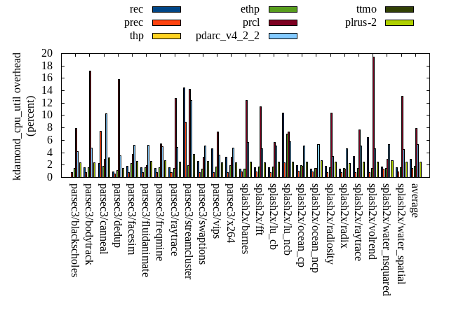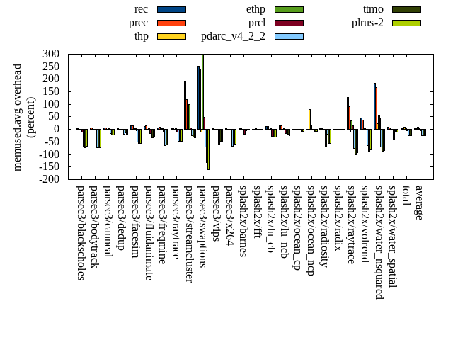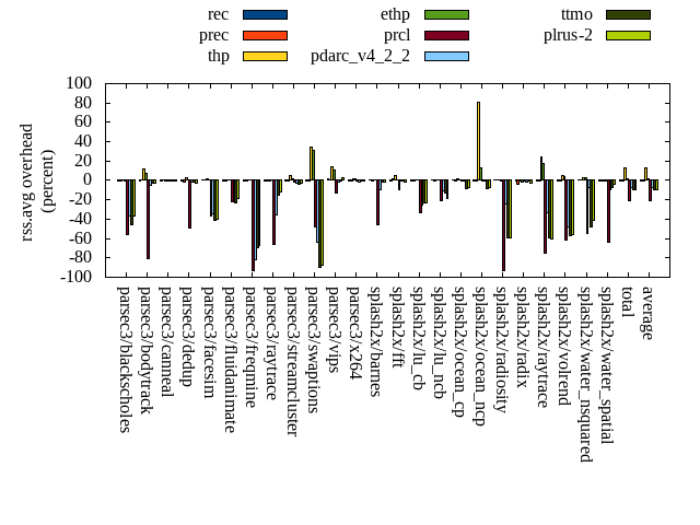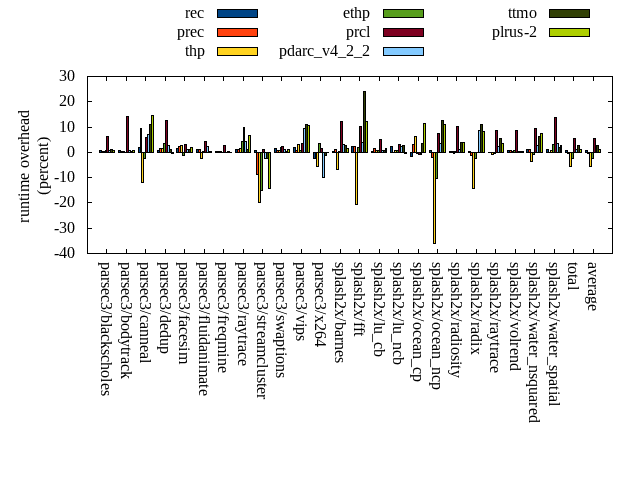 ======= Summary ======= runtime orig rec (overhead) prec (overhead) thp (overhead) ethp (overhead) prcl (overhead) pdarc_v4_2_2 (overhead) ttmo (overhead) plrus-2 (overhead) parsec3/blackscholes 139.471 140.457 (0.71) 139.942 (0.34) 140.129 (0.47) 140.589 (0.80) 147.947 (6.08) 140.401 (0.67) 141.082 (1.16) 140.582 (0.80) parsec3/bodytrack 125.088 125.808 (0.58) 125.556 (0.37) 125.500 (0.33) 125.120 (0.03) 142.652 (14.04) 126.071 (0.79) 125.624 (0.43) 125.776 (0.55) parsec3/canneal 210.228 214.128 (1.85) 230.139 (9.47) 185.451 (-11.79) 205.320 (-2.34) 222.653 (5.91) 225.378 (7.21) 233.108 (10.88) 241.257 (14.76) parsec3/dedup 18.489 18.659 (0.92) 18.806 (1.71) 18.766 (1.50) 19.142 (3.53) 20.801 (12.51) 18.965 (2.58) 18.727 (1.29) 18.403 (-0.46) parsec3/facesim 346.797 352.753 (1.72) 355.090 (2.39) 356.011 (2.66) 342.991 (-1.10) 357.881 (3.20) 350.846 (1.17) 350.144 (0.97) 353.187 (1.84) parsec3/fluidanimate 332.164 335.435 (0.98) 335.586 (1.03) 324.506 (-2.31) 333.742 (0.48) 347.066 (4.49) 340.213 (2.42) 333.738 (0.47) 332.871 (0.21) parsec3/freqmine 436.248 437.683 (0.33) 437.208 (0.22) 437.484 (0.28) 436.640 (0.09) 448.413 (2.79) 435.881 (-0.08) 438.573 (0.53) 435.875 (-0.09) parsec3/raytrace 181.708 183.539 (1.01) 184.106 (1.32) 184.623 (1.60) 189.785 (4.45) 199.517 (9.80) 189.765 (4.43) 183.726 (1.11) 193.526 (6.50) parsec3/streamcluster 712.379 717.149 (0.67) 650.285 (-8.72) 572.474 (-19.64) 604.189 (-15.19) 719.448 (0.99) 694.259 (-2.54) 696.408 (-2.24) 611.681 (-14.14) parsec3/swaptions 221.110 224.316 (1.45) 222.796 (0.76) 222.804 (0.77) 225.199 (1.85) 226.480 (2.43) 223.427 (1.05) 222.295 (0.54) 223.395 (1.03) parsec3/vips 87.957 89.474 (1.72) 88.588 (0.72) 90.717 (3.14) 88.598 (0.73) 90.916 (3.36) 96.205 (9.38) 97.599 (10.96) 97.317 (10.64) parsec3/x264 122.365 119.398 (-2.43) 119.502 (-2.34) 115.349 (-5.73) 126.732 (3.57) 124.259 (1.55) 110.016 (-10.09) 120.729 (-1.34) 122.278 (-0.07) splash2x/barnes 130.409 131.005 (0.46) 131.719 (1.00) 121.589 (-6.76) 130.607 (0.15) 146.289 (12.18) 134.219 (2.92) 133.825 (2.62) 132.324 (1.47) splash2x/fft 59.750 61.070 (2.21) 61.150 (2.34) 47.506 (-20.49) 60.945 (2.00) 65.948 (10.37) 62.052 (3.85) 74.041 (23.92) 67.135 (12.36) splash2x/lu_cb 132.593 133.060 (0.35) 134.478 (1.42) 133.459 (0.65) 133.589 (0.75) 139.096 (4.90) 133.307 (0.54) 133.584 (0.75) 134.711 (1.60) splash2x/lu_ncb 151.336 154.674 (2.21) 151.365 (0.02) 152.391 (0.70) 152.399 (0.70) 156.255 (3.25) 154.610 (2.16) 155.214 (2.56) 150.533 (-0.53) splash2x/ocean_cp 81.633 80.341 (-1.58) 84.057 (2.97) 86.861 (6.40) 81.340 (-0.36) 80.799 (-1.02) 80.787 (-1.04) 84.638 (3.68) 91.057 (11.54) splash2x/ocean_ncp 164.399 165.368 (0.59) 161.030 (-2.05) 104.996 (-36.13) 147.087 (-10.53) 176.729 (7.50) 170.380 (3.64) 184.973 (12.51) 182.758 (11.17) splash2x/radiosity 142.370 143.111 (0.52) 142.978 (0.43) 141.659 (-0.50) 142.628 (0.18) 156.977 (10.26) 144.095 (1.21) 147.999 (3.95) 148.072 (4.01) splash2x/radix 52.015 52.212 (0.38) 51.467 (-1.05) 44.661 (-14.14) 50.744 (-2.44) 52.085 (0.13) 56.545 (8.71) 57.833 (11.18) 56.239 (8.12) splash2x/raytrace 134.051 133.773 (-0.21) 133.740 (-0.23) 133.057 (-0.74) 133.191 (-0.64) 145.562 (8.59) 137.023 (2.22) 141.274 (5.39) 138.702 (3.47) splash2x/volrend 120.976 121.645 (0.55) 121.751 (0.64) 121.166 (0.16) 121.699 (0.60) 131.553 (8.74) 121.447 (0.39) 121.283 (0.25) 121.543 (0.47) splash2x/water_nsquared 370.318 374.984 (1.26) 374.378 (1.10) 357.217 (-3.54) 366.785 (-0.95) 404.556 (9.25) 380.649 (2.79) 393.567 (6.28) 397.244 (7.27) splash2x/water_spatial 134.256 135.789 (1.14) 134.218 (-0.03) 135.123 (0.65) 138.264 (2.99) 152.520 (13.60) 139.043 (3.57) 136.840 (1.92) 137.866 (2.69) total 4608.140 4645.830 (0.82) 4589.950 (-0.39) 4353.500 (-5.53) 4497.320 (-2.40) 4856.420 (5.39) 4665.590 (1.25) 4726.820 (2.58) 4654.310 (1.00) average 192.006 193.576 (0.72) 191.248 (0.58) 181.396 (-4.27) 187.388 (-0.44) 202.351 (6.45) 194.400 (2.00) 196.951 (4.16) 193.930 (3.55) kdamond_cpu_util orig rec (overhead) prec (overhead) thp (overhead) ethp (overhead) prcl (overhead) pdarc_v4_2_2 (overhead) ttmo (overhead) plrus-2 (overhead) parsec3/blackscholes 0.000 0.000 (0.00) 0.811 (0.81) 0.000 (0.00) 1.479 (1.48) 7.857 (7.86) 4.155 (4.15) 0.000 (0.00) 2.416 (2.42) parsec3/bodytrack 0.000 1.592 (1.59) 0.794 (0.79) 0.000 (0.00) 1.538 (1.54) 17.226 (17.23) 4.740 (4.74) 0.000 (0.00) 2.361 (2.36) parsec3/canneal 0.000 2.220 (2.22) 7.436 (7.44) 0.000 (0.00) 1.763 (1.76) 2.924 (2.92) 10.251 (10.25) 0.000 (0.00) 3.188 (3.19) parsec3/dedup 0.000 0.851 (0.85) 0.610 (0.61) 0.000 (0.00) 1.183 (1.18) 15.863 (15.86) 3.497 (3.50) 0.000 (0.00) 1.448 (1.45) parsec3/facesim 0.000 1.826 (1.83) 0.812 (0.81) 0.000 (0.00) 2.269 (2.27) 3.765 (3.77) 5.242 (5.24) 0.000 (0.00) 2.632 (2.63) parsec3/fluidanimate 0.000 1.596 (1.60) 0.832 (0.83) 0.000 (0.00) 1.546 (1.55) 1.888 (1.89) 5.232 (5.23) 0.000 (0.00) 2.645 (2.65) parsec3/freqmine 0.000 1.493 (1.49) 0.834 (0.83) 0.000 (0.00) 1.545 (1.54) 5.384 (5.38) 4.981 (4.98) 0.000 (0.00) 2.672 (2.67) parsec3/raytrace 0.000 1.549 (1.55) 0.813 (0.81) 0.000 (0.00) 1.506 (1.51) 12.766 (12.77) 4.897 (4.90) 0.000 (0.00) 2.518 (2.52) parsec3/streamcluster 0.000 14.482 (14.48) 8.877 (8.88) 0.000 (0.00) 1.889 (1.89) 14.207 (14.21) 12.403 (12.40) 0.000 (0.00) 3.746 (3.75) parsec3/swaptions 0.000 2.589 (2.59) 0.828 (0.83) 0.000 (0.00) 1.356 (1.36) 3.285 (3.29) 5.080 (5.08) 0.000 (0.00) 2.576 (2.58) parsec3/vips 0.000 4.685 (4.69) 0.763 (0.76) 0.000 (0.00) 1.659 (1.66) 7.386 (7.39) 3.647 (3.65) 0.000 (0.00) 2.363 (2.36) parsec3/x264 0.000 3.279 (3.28) 0.791 (0.79) 0.000 (0.00) 1.941 (1.94) 3.324 (3.32) 4.766 (4.77) 0.000 (0.00) 2.374 (2.37) splash2x/barnes 0.000 1.378 (1.38) 0.920 (0.92) 0.000 (0.00) 1.364 (1.36) 12.429 (12.43) 5.622 (5.62) 0.000 (0.00) 2.518 (2.52) splash2x/fft 0.000 1.566 (1.57) 0.886 (0.89) 0.000 (0.00) 1.653 (1.65) 11.368 (11.37) 4.593 (4.59) 0.000 (0.00) 2.377 (2.38) splash2x/lu_cb 0.000 1.617 (1.62) 0.811 (0.81) 0.000 (0.00) 1.658 (1.66) 5.686 