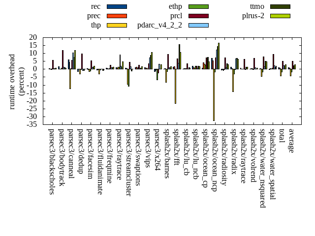 ======= Summary ======= runtime orig rec (overhead) prec (overhead) thp (overhead) ethp (overhead) prcl (overhead) pdarc_v4_2_2 (overhead) ttmo (overhead) plrus-2 (overhead) parsec3/blackscholes 139.372 139.907 (0.38) 139.635 (0.19) 139.118 (-0.18) 139.776 (0.29) 147.263 (5.66) 139.819 (0.32) 140.108 (0.53) 140.501 (0.81) parsec3/bodytrack 125.302 127.401 (1.67) 125.633 (0.26) 125.479 (0.14) 126.312 (0.81) 140.311 (11.98) 126.812 (1.21) 126.591 (1.03) 126.371 (0.85) parsec3/canneal 214.453 227.096 (5.90) 224.291 (4.59) 187.714 (-12.47) 215.635 (0.55) 226.782 (5.75) 236.692 (10.37) 230.719 (7.58) 240.154 (11.98) parsec3/dedup 18.736 18.444 (-1.56) 18.780 (0.23) 18.196 (-2.88) 18.695 (-0.22) 20.560 (9.74) 18.604 (-0.71) 18.584 (-0.81) 18.757 (0.11) parsec3/facesim 348.452 349.945 (0.43) 348.166 (-0.08) 343.689 (-1.37) 344.633 (-1.10) 367.493 (5.46) 353.668 (1.50) 352.812 (1.25) 354.886 (1.85) parsec3/fluidanimate 341.315 339.822 (-0.44) 340.559 (-0.22) 330.772 (-3.09) 339.123 (-0.64) 341.460 (0.04) 341.299 (-0.00) 338.236 (-0.90) 339.348 (-0.58) parsec3/freqmine 434.719 437.813 (0.71) 436.841 (0.49) 435.403 (0.16) 436.449 (0.40) 445.807 (2.55) 438.803 (0.94) 439.042 (0.99) 440.117 (1.24) parsec3/raytrace 183.708 185.411 (0.93) 184.865 (0.63) 186.078 (1.29) 185.962 (1.23) 200.351 (9.06) 187.443 (2.03) 185.958 (1.22) 192.358 (4.71) parsec3/streamcluster 707.287 711.875 (0.65) 711.252 (0.56) 639.534 (-9.58) 630.147 (-10.91) 738.508 (4.41) 719.504 (1.73) 699.203 (-1.14) 707.421 (0.02) parsec3/swaptions 219.850 222.059 (1.00) 223.117 (1.49) 221.084 (0.56) 222.724 (1.31) 225.228 (2.45) 221.458 (0.73) 221.614 (0.80) 223.239 (1.54) parsec3/vips 87.663 88.546 (1.01) 88.209 (0.62) 88.230 (0.65) 87.776 (0.13) 90.856 (3.64) 94.111 (7.35) 95.488 (8.93) 97.061 (10.72) parsec3/x264 119.682 118.090 (-1.33) 118.228 (-1.21) 119.357 (-0.27) 111.755 (-6.62) 116.761 (-2.44) 123.622 (3.29) 119.712 (0.02) 123.133 (2.88) splash2x/barnes 131.429 131.584 (0.12) 131.993 (0.43) 120.379 (-8.41) 129.354 (-1.58) 143.949 (9.53) 132.940 (1.15) 132.629 (0.91) 133.526 (1.60) splash2x/fft 61.463 62.325 (1.40) 62.475 (1.65) 48.203 (-21.57) 61.442 (-0.03) 65.559 (6.66) 63.735 (3.70) 71.075 (15.64) 68.050 (10.72) splash2x/lu_cb 133.123 133.304 (0.14) 133.752 (0.47) 133.574 (0.34) 133.734 (0.46) 137.712 (3.45) 133.400 (0.21) 134.406 (0.96) 133.962 (0.63) splash2x/lu_ncb 150.529 153.604 (2.04) 152.250 (1.14) 151.512 (0.65) 153.353 (1.88) 153.675 (2.09) 151.542 (0.67) 153.724 (2.12) 153.253 (1.81) splash2x/ocean_cp 82.997 83.536 (0.65) 86.437 (4.15) 85.779 (3.35) 85.190 (2.64) 88.917 (7.13) 83.413 (0.50) 89.163 (7.43) 86.864 (4.66) splash2x/ocean_ncp 158.486 169.342 (6.85) 167.075 (5.42) 107.095 (-32.43) 155.821 (-1.68) 170.064 (7.31) 177.626 (12.08) 181.272 (14.38) 185.002 (16.73) splash2x/radiosity 142.767 142.096 (-0.47) 142.648 (-0.08) 141.417 (-0.95) 142.673 (-0.07) 153.277 (7.36) 144.130 (0.95) 147.739 (3.48) 146.966 (2.94) splash2x/radix 52.402 53.118 (1.37) 52.588 (0.35) 45.006 (-14.11) 50.879 (-2.91) 52.339 (-0.12) 55.917 (6.71) 56.030 (6.92) 55.723 (6.34) splash2x/raytrace 134.811 135.624 (0.60) 135.108 (0.22) 134.833 (0.02) 135.080 (0.20) 143.291 (6.29) 134.623 (-0.14) 136.557 (1.30) 136.780 (1.46) splash2x/volrend 120.425 120.741 (0.26) 120.909 (0.40) 120.801 (0.31) 120.022 (-0.33) 128.867 (7.01) 121.737 (1.09) 120.657 (0.19) 121.462 (0.86) splash2x/water_nsquared 371.629 371.809 (0.05) 372.804 (0.32) 354.825 (-4.52) 365.422 (-1.67) 401.051 (7.92) 377.715 (1.64) 390.283 (5.02) 389.661 (4.85) splash2x/water_spatial 134.220 133.917 (-0.23) 134.706 (0.36) 134.335 (0.09) 135.412 (0.89) 146.936 (9.47) 137.377 (2.35) 136.119 (1.42) 136.788 (1.91) total 4614.830 4657.410 (0.92) 4652.320 (0.81) 4412.410 (-4.39) 4527.340 (-1.90) 4847.030 (5.03) 4715.980 (2.19) 4717.720 (2.23) 4751.380 (2.96) average 192.285 194.059 (0.92) 193.847 (0.93) 183.850 (-4.34) 188.639 (-0.71) 201.960 (5.52) 196.499 (2.49) 196.572 (3.30) 197.974 (3.78) kdamond_cpu_util orig rec (overhead) prec (overhead) thp (overhead) ethp (overhead) prcl (overhead) pdarc_v4_2_2 (overhead) ttmo (overhead) plrus-2 (overhead) parsec3/blackscholes 0.000 0.000 (0.00) 0.646 (0.65) 0.000 (0.00) 1.285 (1.28) 6.581 (6.58) 2.624 (2.62) 0.000 (0.00) 1.936 (1.94) parsec3/bodytrack 0.000 1.498 (1.50) 0.615 (0.62) 0.000 (0.00) 1.186 (1.19) 13.687 (13.69) 3.218 (3.22) 0.000 (0.00) 1.896 (1.90) parsec3/canneal 0.000 4.152 (4.15) 3.800 (3.80) 0.000 (0.00) 1.543 (1.54) 2.185 (2.19) 10.298 (10.30) 0.000 (0.00) 2.393 (2.39) parsec3/dedup 0.000 0.997 (1.00) 0.507 (0.51) 0.000 (0.00) 1.109 (1.11) 12.867 (12.87) 3.273 (3.27) 0.000 (0.00) 1.004 (1.00) parsec3/facesim 0.000 1.453 (1.45) 0.653 (0.65) 0.000 (0.00) 1.750 (1.75) 4.285 (4.28) 4.285 (4.29) 0.000 (0.00) 2.106 (2.11) parsec3/fluidanimate 0.000 1.284 (1.28) 0.657 (0.66) 0.000 (0.00) 1.252 (1.25) 1.818 (1.82) 4.217 (4.22) 0.000 (0.00) 2.106 (2.11) parsec3/freqmine 0.000 1.412 (1.41) 0.658 (0.66) 0.000 (0.00) 1.184 (1.18) 4.219 (4.22) 3.879 (3.88) 0.000 (0.00) 2.114 (2.11) parsec3/raytrace 0.000 1.228 (1.23) 0.660 (0.66) 0.000 (0.00) 1.195 (1.19) 10.153 (10.15) 3.108 (3.11) 0.000 (0.00) 2.010 (2.01) parsec3/streamcluster 0.000 11.728 (11.73) 9.673 (9.67) 0.000 (0.00) 1.858 (1.86) 12.131 (12.13) 6.661 (6.66) 0.000 (0.00) 3.207 (3.21) parsec3/swaptions 0.000 1.987 (1.99) 0.621 (0.62) 0.000 (0.00) 1.687 (1.69) 2.517 (2.52) 4.129 (4.13) 0.000 (0.00) 1.967 (1.97) parsec3/vips 0.000 3.790 (3.79) 0.587 (0.59) 0.000 (0.00) 1.411 (1.41) 6.064 (6.06) 3.190 (3.19) 0.000 (0.00) 1.730 (1.73) parsec3/x264 0.000 2.747 (2.75) 0.634 (0.63) 0.000 (0.00) 1.574 (1.57) 2.691 (2.69) 3.536 (3.54) 0.000 (0.00) 1.952 (1.95) splash2x/barnes 0.000 1.155 (1.15) 0.752 (0.75) 0.000 (0.00) 1.191 (1.19) 10.219 (10.22) 5.032 (5.03) 0.000 (0.00) 2.005 (2.00) splash2x/fft 0.000 1.241 (1.24) 0.697 (0.70) 0.000 (0.00) 1.286 (1.29) 10.705 (10.70) 2.487 (2.49) 0.000 (0.00) 1.536 (1.54) splash2x/lu_cb 0.000 1.355 (1.35) 0.651 (0.65) 0.000 (0.00) 1.341 (1.34) 4.797 (4.80) 3.62
