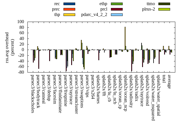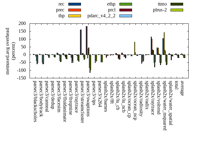 ======= Summary ======= runtime orig rec (overhead) prec (overhead) thp (overhead) ethp (overhead) prcl (overhead) pdarc_v4_2_2 (overhead) ttmo (overhead) plrus-2 (overhead) parsec3/blackscholes 139.364 139.475 (0.08) 139.629 (0.19) 139.150 (-0.15) 139.879 (0.37) 145.988 (4.75) 140.397 (0.74) 140.242 (0.63) 140.564 (0.86) parsec3/bodytrack 125.763 126.456 (0.55) 125.441 (-0.26) 125.062 (-0.56) 126.164 (0.32) 141.401 (12.43) 126.696 (0.74) 125.944 (0.14) 126.568 (0.64) parsec3/canneal 207.087 223.302 (7.83) 229.967 (11.05) 187.802 (-9.31) 206.228 (-0.41) 225.303 (8.80) 228.933 (10.55) 230.382 (11.25) 238.157 (15.00) parsec3/dedup 18.515 18.727 (1.14) 18.867 (1.90) 18.542 (0.14) 18.673 (0.85) 20.298 (9.63) 18.870 (1.92) 18.492 (-0.13) 18.741 (1.22) parsec3/facesim 350.365 347.189 (-0.91) 346.309 (-1.16) 346.228 (-1.18) 345.797 (-1.30) 358.052 (2.19) 351.853 (0.42) 351.347 (0.28) 354.379 (1.15) parsec3/fluidanimate 335.746 341.446 (1.70) 337.081 (0.40) 331.966 (-1.13) 334.254 (-0.44) 341.265 (1.64) 338.673 (0.87) 335.958 (0.06) 337.334 (0.47) parsec3/freqmine 437.091 437.666 (0.13) 435.499 (-0.36) 435.693 (-0.32) 437.182 (0.02) 446.545 (2.16) 437.981 (0.20) 437.563 (0.11) 439.312 (0.51) parsec3/raytrace 183.390 185.165 (0.97) 183.988 (0.33) 186.502 (1.70) 185.338 (1.06) 202.161 (10.24) 186.258 (1.56) 187.057 (2.00) 188.269 (2.66) parsec3/streamcluster 677.250 722.815 (6.73) 721.133 (6.48) 596.336 (-11.95) 640.215 (-5.47) 706.350 (4.30) 678.537 (0.19) 700.877 (3.49) 686.358 (1.34) parsec3/swaptions 221.573 221.926 (0.16) 222.704 (0.51) 221.600 (0.01) 222.406 (0.38) 225.781 (1.90) 222.553 (0.44) 222.848 (0.58) 222.607 (0.47) parsec3/vips 88.093 88.572 (0.54) 88.363 (0.31) 87.103 (-1.12) 87.972 (-0.14) 91.012 (3.31) 93.672 (6.33) 96.129 (9.12) 97.284 (10.43) parsec3/x264 113.750 118.492 (4.17) 116.876 (2.75) 115.137 (1.22) 113.527 (-0.20) 119.097 (4.70) 114.499 (0.66) 117.794 (3.56) 120.963 (6.34) splash2x/barnes 131.108 132.426 (1.00) 130.920 (-0.14) 120.088 (-8.40) 129.631 (-1.13) 146.892 (12.04) 132.365 (0.96) 133.000 (1.44) 133.080 (1.50) splash2x/fft 61.659 62.410 (1.22) 62.306 (1.05) 47.871 (-22.36) 61.068 (-0.96) 64.271 (4.24) 63.095 (2.33) 72.407 (17.43) 70.896 (14.98) splash2x/lu_cb 133.155 133.840 (0.51) 132.816 (-0.25) 133.378 (0.17) 133.802 (0.49) 137.653 (3.38) 133.475 (0.24) 134.094 (0.71) 134.339 (0.89) splash2x/lu_ncb 152.364 152.915 (0.36) 151.850 (-0.34) 150.536 (-1.20) 153.321 (0.63) 155.267 (1.91) 152.428 (0.04) 153.901 (1.01) 153.484 (0.74) splash2x/ocean_cp 84.132 82.166 (-2.34) 85.075 (1.12) 86.964 (3.37) 83.872 (-0.31) 86.374 (2.66) 84.282 (0.18) 85.372 (1.47) 90.137 (7.14) splash2x/ocean_ncp 166.290 172.363 (3.65) 169.837 (2.13) 111.825 (-32.75) 151.130 (-9.12) 168.455 (1.30) 169.998 (2.23) 182.331 (9.65) 185.047 (11.28) splash2x/radiosity 142.888 142.733 (-0.11) 142.615 (-0.19) 142.267 (-0.43) 142.739 (-0.10) 153.574 (7.48) 145.130 (1.57) 147.054 (2.92) 145.986 (2.17) splash2x/radix 51.698 50.837 (-1.67) 51.529 (-0.33) 46.416 (-10.22) 51.211 (-0.94) 52.751 (2.04) 56.091 (8.50) 55.537 (7.42) 56.911 (10.08) splash2x/raytrace 133.675 136.656 (2.23) 135.490 (1.36) 134.694 (0.76) 132.813 (-0.64) 143.136 (7.08) 135.205 (1.15) 137.384 (2.78) 135.621 (1.46) splash2x/volrend 120.026 120.960 (0.78) 120.296 (0.22) 120.232 (0.17) 120.294 (0.22) 129.409 (7.82) 121.137 (0.93) 120.857 (0.69) 121.501 (1.23) splash2x/water_nsquared 369.670 373.394 (1.01) 373.099 (0.93) 355.908 (-3.72) 367.601 (-0.56) 409.715 (10.83) 374.621 (1.34) 393.024 (6.32) 390.802 (5.72) splash2x/water_spatial 134.633 134.885 (0.19) 135.749 (0.83) 134.685 (0.04) 133.740 (-0.66) 147.599 (9.63) 136.734 (1.56) 136.838 (1.64) 137.361 (2.03) total 4579.270 4666.830 (1.91) 4657.450 (1.71) 4375.980 (-4.44) 4518.850 (-1.32) 4818.360 (5.22) 4643.480 (1.40) 4716.430 (3.00) 4725.700 (3.20) average 190.803 194.451 (1.25) 194.060 (1.19) 182.332 (-4.05) 188.285 (-0.75) 200.765 (5.69) 193.478 (1.90) 196.518 (3.52) 196.904 (4.18) kdamond_cpu_util orig rec (overhead) prec (overhead) thp (overhead) ethp (overhead) prcl (overhead) pdarc_v4_2_2 (overhead) ttmo (overhead) plrus-2 (overhead) parsec3/blackscholes 0.000 0.000 (0.00) 0.653 (0.65) 0.000 (0.00) 1.306 (1.31) 6.190 (6.19) 2.649 (2.65) 0.000 (0.00) 1.911 (1.91) parsec3/bodytrack 0.000 1.271 (1.27) 0.603 (0.60) 0.000 (0.00) 1.004 (1.00) 13.972 (13.97) 3.051 (3.05) 0.000 (0.00) 1.890 (1.89) parsec3/canneal 0.000 1.829 (1.83) 4.739 (4.74) 0.000 (0.00) 1.601 (1.60) 2.156 (2.16) 9.579 (9.58) 0.000 (0.00) 2.779 (2.78) parsec3/dedup 0.000 0.977 (0.98) 0.514 (0.51) 0.000 (0.00) 1.159 (1.16) 12.319 (12.32) 3.558 (3.56) 0.000 (0.00) 1.160 (1.16) parsec3/facesim 0.000 1.437 (1.44) 0.666 (0.67) 0.000 (0.00) 1.787 (1.79) 4.139 (4.14) 4.223 (4.22) 0.000 (0.00) 2.099 (2.10) parsec3/fluidanimate 0.000 1.283 (1.28) 0.666 (0.67) 0.000 (0.00) 1.272 (1.27) 2.057 (2.06) 4.253 (4.25) 0.000 (0.00) 2.109 (2.11) parsec3/freqmine 0.000 1.248 (1.25) 0.664 (0.66) 0.000 (0.00) 1.204 (1.20) 4.393 (4.39) 3.888 (3.89) 0.000 (0.00) 2.134 (2.13) parsec3/raytrace 0.000 1.240 (1.24) 0.664 (0.66) 0.000 (0.00) 1.193 (1.19) 10.025 (10.03) 3.471 (3.47) 0.000 (0.00) 2.029 (2.03) parsec3/streamcluster 0.000 11.645 (11.65) 8.700 (8.70) 0.000 (0.00) 2.201 (2.20) 11.983 (11.98) 8.460 (8.46) 0.000 (0.00) 2.539 (2.54) parsec3/swaptions 0.000 2.063 (2.06) 0.584 (0.58) 0.000 (0.00) 1.358 (1.36) 2.556 (2.56) 4.069 (4.07) 0.000 (0.00) 2.026 (2.03) parsec3/vips 0.000 3.622 (3.62) 0.618 (0.62) 0.000 (0.00) 1.549 (1.55) 5.809 (5.81) 3.060 (3.06) 0.000 (0.00) 1.831 (1.83) parsec3/x264 0.000 2.730 (2.73) 0.646 (0.65) 0.000 (0.00) 1.831 (1.83) 2.616 (2.62) 3.239 (3.24) 0.000 (0.00) 1.930 (1.93) splash2x/barnes 0.000 1.119 (1.12) 0.801 (0.80) 0.000 (0.00) 1.119 (1.12) 10.536 (10.54) 4.720 (4.72) 0.000 (0.00) 2.047 (2.05) splash2x/fft 0.000 1.227 (1.23) 0.705 (0.70) 0.000 (0.00) 1.289 (1.29) 10.090 (10.09) 3.548 (3.55) 0.000 (0.00) 1.908 (1.91) splash2x/lu_cb 0.000 1.312 (1.31) 0.649 (0.65) 0.000 (0.00) 1.293 (1.29) 4.474 (4.47) 3.7