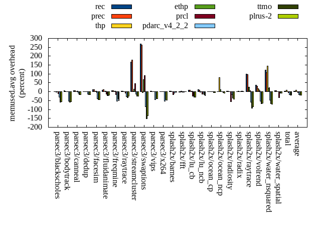 ======= Summary ======= runtime orig rec (overhead) prec (overhead) thp (overhead) ethp (overhead) prcl (overhead) pdarc_v4_2_2 (overhead) ttmo (overhead) plrus-2 (overhead) parsec3/blackscholes 139.516 140.249 (0.53) 139.845 (0.24) 139.267 (-0.18) 139.553 (0.03) 145.922 (4.59) 140.126 (0.44) 140.521 (0.72) 140.359 (0.60) parsec3/bodytrack 125.609 126.489 (0.70) 126.160 (0.44) 125.635 (0.02) 125.812 (0.16) 141.744 (12.85) 126.527 (0.73) 126.152 (0.43) 126.935 (1.06) parsec3/canneal 220.911 218.705 (-1.00) 228.336 (3.36) 187.427 (-15.16) 208.376 (-5.67) 233.922 (5.89) 226.039 (2.32) 233.719 (5.80) 235.378 (6.55) parsec3/dedup 18.471 18.580 (0.59) 18.600 (0.70) 18.547 (0.41) 18.566 (0.51) 20.271 (9.74) 18.803 (1.80) 18.522 (0.28) 18.554 (0.45) parsec3/facesim 347.292 351.156 (1.11) 348.004 (0.20) 341.968 (-1.53) 346.111 (-0.34) 365.460 (5.23) 352.691 (1.55) 352.004 (1.36) 353.646 (1.83) parsec3/fluidanimate 335.282 340.530 (1.57) 339.120 (1.14) 333.774 (-0.45) 334.778 (-0.15) 347.307 (3.59) 341.323 (1.80) 337.086 (0.54) 337.739 (0.73) parsec3/freqmine 437.081 436.451 (-0.14) 436.050 (-0.24) 436.646 (-0.10) 437.733 (0.15) 444.285 (1.65) 437.619 (0.12) 437.264 (0.04) 437.791 (0.16) parsec3/raytrace 182.637 184.935 (1.26) 184.611 (1.08) 185.533 (1.59) 185.594 (1.62) 201.121 (10.12) 186.698 (2.22) 185.393 (1.51) 185.961 (1.82) parsec3/streamcluster 715.280 707.223 (-1.13) 686.492 (-4.02) 592.189 (-17.21) 594.112 (-16.94) 715.776 (0.07) 689.329 (-3.63) 672.424 (-5.99) 726.234 (1.53) parsec3/swaptions 221.951 221.193 (-0.34) 222.597 (0.29) 222.126 (0.08) 223.080 (0.51) 224.807 (1.29) 221.056 (-0.40) 220.732 (-0.55) 223.033 (0.49) parsec3/vips 87.814 89.012 (1.36) 88.614 (0.91) 87.163 (-0.74) 87.731 (-0.09) 90.835 (3.44) 93.635 (6.63) 95.095 (8.29) 94.916 (8.09) parsec3/x264 117.424 114.402 (-2.57) 118.408 (0.84) 110.858 (-5.59) 112.536 (-4.16) 118.041 (0.53) 120.919 (2.98) 116.802 (-0.53) 121.740 (3.68) splash2x/barnes 131.297 131.427 (0.10) 131.712 (0.32) 119.666 (-8.86) 129.554 (-1.33) 142.592 (8.60) 133.882 (1.97) 133.146 (1.41) 133.117 (1.39) splash2x/fft 61.829 62.535 (1.14) 63.049 (1.97) 48.160 (-22.11) 61.825 (-0.01) 66.059 (6.84) 61.804 (-0.04) 71.776 (16.09) 71.884 (16.26) splash2x/lu_cb 132.713 133.372 (0.50) 133.616 (0.68) 133.185 (0.36) 133.748 (0.78) 137.575 (3.66) 133.662 (0.72) 134.806 (1.58) 134.491 (1.34) splash2x/lu_ncb 151.391 152.797 (0.93) 152.314 (0.61) 151.346 (-0.03) 153.647 (1.49) 155.450 (2.68) 153.253 (1.23) 152.917 (1.01) 152.911 (1.00) splash2x/ocean_cp 83.808 86.563 (3.29) 86.080 (2.71) 90.340 (7.79) 85.883 (2.48) 83.310 (-0.59) 83.956 (0.18) 86.926 (3.72) 87.103 (3.93) splash2x/ocean_ncp 162.384 163.139 (0.46) 169.767 (4.55) 106.201 (-34.60) 150.294 (-7.45) 173.067 (6.58) 169.884 (4.62) 187.904 (15.72) 179.434 (10.50) splash2x/radiosity 142.588 143.025 (0.31) 143.286 (0.49) 141.739 (-0.60) 142.945 (0.25) 152.288 (6.80) 143.963 (0.96) 145.485 (2.03) 147.181 (3.22) splash2x/radix 51.002 53.593 (5.08) 52.489 (2.92) 45.489 (-10.81) 51.851 (1.67) 52.907 (3.74) 55.891 (9.59) 56.457 (10.70) 55.808 (9.42) splash2x/raytrace 135.449 134.478 (-0.72) 134.472 (-0.72) 134.126 (-0.98) 133.816 (-1.21) 146.100 (7.86) 135.147 (-0.22) 138.770 (2.45) 137.842 (1.77) splash2x/volrend 120.834 120.220 (-0.51) 120.715 (-0.10) 120.095 (-0.61) 120.162 (-0.56) 130.123 (7.69) 121.216 (0.32) 120.861 (0.02) 120.853 (0.02) splash2x/water_nsquared 371.694 376.266 (1.23) 371.620 (-0.02) 356.714 (-4.03) 366.735 (-1.33) 406.202 (9.28) 374.662 (0.80) 387.773 (4.33) 390.425 (5.04) splash2x/water_spatial 134.299 134.672 (0.28) 134.686 (0.29) 134.555 (0.19) 134.178 (-0.09) 148.444 (10.53) 136.015 (1.28) 136.779 (1.85) 134.959 (0.49) total 4628.540 4640.990 (0.27) 4630.660 (0.05) 4362.760 (-5.74) 4478.620 (-3.24) 4843.620 (4.65) 4658.110 (0.64) 4689.300 (1.31) 4748.270 (2.59) average 192.856 193.375 (0.58) 192.944 (0.78) 181.782 (-4.71) 186.609 (-1.24) 201.817 (5.53) 194.088 (1.58) 195.388 (3.03) 197.845 (3.39) kdamond_cpu_util orig rec (overhead) prec (overhead) thp (overhead) ethp (overhead) prcl (overhead) pdarc_v4_2_2 (overhead) ttmo (overhead) plrus-2 (overhead) parsec3/blackscholes 0.000 0.000 (0.00) 0.655 (0.66) 0.000 (0.00) 1.276 (1.28) 6.321 (6.32) 2.550 (2.55) 0.000 (0.00) 1.983 (1.98) parsec3/bodytrack 0.000 1.403 (1.40) 0.589 (0.59) 0.000 (0.00) 1.124 (1.12) 14.103 (14.10) 3.076 (3.08) 0.000 (0.00) 1.849 (1.85) parsec3/canneal 0.000 1.671 (1.67) 3.331 (3.33) 0.000 (0.00) 1.655 (1.65) 2.392 (2.39) 8.606 (8.61) 0.000 (0.00) 2.668 (2.67) parsec3/dedup 0.000 1.030 (1.03) 0.518 (0.52) 0.000 (0.00) 0.966 (0.97) 13.168 (13.17) 3.702 (3.70) 0.000 (0.00) 0.964 (0.96) parsec3/facesim 0.000 1.499 (1.50) 0.648 (0.65) 0.000 (0.00) 1.761 (1.76) 4.236 (4.24) 4.232 (4.23) 0.000 (0.00) 2.089 (2.09) parsec3/fluidanimate 0.000 1.318 (1.32) 0.675 (0.67) 0.000 (0.00) 1.275 (1.28) 1.853 (1.85) 4.141 (4.14) 0.000 (0.00) 2.090 (2.09) parsec3/freqmine 0.000 1.278 (1.28) 0.713 (0.71) 0.000 (0.00) 1.196 (1.20) 4.243 (4.24) 3.921 (3.92) 0.000 (0.00) 2.124 (2.12) parsec3/raytrace 0.000 1.235 (1.23) 0.652 (0.65) 0.000 (0.00) 1.230 (1.23) 10.393 (10.39) 3.273 (3.27) 0.000 (0.00) 2.045 (2.04) parsec3/streamcluster 0.000 11.640 (11.64) 9.550 (9.55) 0.000 (0.00) 2.397 (2.40) 11.996 (12.00) 11.421 (11.42) 0.000 (0.00) 4.296 (4.30) parsec3/swaptions 0.000 1.830 (1.83) 0.630 (0.63) 0.000 (0.00) 1.387 (1.39) 2.293 (2.29) 4.099 (4.10) 0.000 (0.00) 2.032 (2.03) parsec3/vips 0.000 3.634 (3.63) 0.657 (0.66) 0.000 (0.00) 1.261 (1.26) 5.863 (5.86) 2.829 (2.83) 0.000 (0.00) 1.889 (1.89) parsec3/x264 0.000 2.681 (2.68) 0.632 (0.63) 0.000 (0.00) 1.565 (1.56) 2.717 (2.72) 3.560 (3.56) 0.000 (0.00) 1.918 (1.92) splash2x/barnes 0.000 1.091 (1.09) 0.720 (0.72) 0.000 (0.00) 1.106 (1.11) 9.833 (9.83) 4.570 (4.57) 0.000 (0.00) 2.011 (2.01) splash2x/fft 0.000 1.262 (1.26) 0.720 (0.72) 0.000 (0.00) 1.328 (1.33) 10.387 (10.39) 2.164 (2.16) 0.000 (0.00) 1.887 (1.89) splash2x/lu_cb 0.000 1.306 (1.31) 0.662 (0.66) 0.000 (0.00) 1.328 (1.33) 4.522 (4.52)