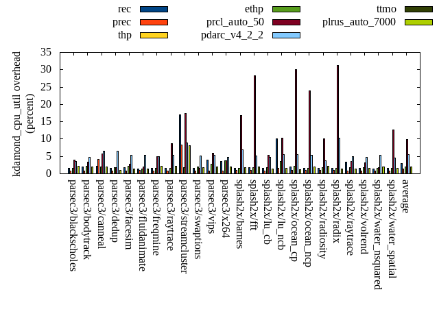 ======= Summary ======= runtime orig rec (overhead) prec (overhead) thp (overhead) ethp (overhead) prcl_auto_50 (overhead) pdarc_v4_2_2 (overhead) ttmo (overhead) plrus_auto_7000 (overhead) parsec3/blackscholes 139.632 140.380 (0.54) 141.738 (1.51) 139.841 (0.15) 139.846 (0.15) 143.463 (2.74) 141.441 (1.30) 140.194 (0.40) 141.187 (1.11) parsec3/bodytrack 125.774 126.604 (0.66) 127.681 (1.52) 125.586 (-0.15) 126.906 (0.90) 127.831 (1.64) 127.537 (1.40) 125.170 (-0.48) 127.117 (1.07) parsec3/canneal 207.686 222.432 (7.10) 227.771 (9.67) 176.186 (-15.17) 218.349 (5.13) 232.637 (12.01) 224.667 (8.18) 236.090 (13.68) 228.920 (10.22) parsec3/dedup 18.163 18.644 (2.65) 18.435 (1.50) 18.006 (-0.87) 18.100 (-0.35) 18.713 (3.03) 19.022 (4.73) 18.426 (1.44) 18.419 (1.40) parsec3/facesim 344.257 350.398 (1.78) 353.557 (2.70) 344.283 (0.01) 350.055 (1.68) 364.435 (5.86) 352.422 (2.37) 352.896 (2.51) 359.593 (4.45) parsec3/fluidanimate 334.907 335.840 (0.28) 336.503 (0.48) 328.386 (-1.95) 333.479 (-0.43) 344.420 (2.84) 339.378 (1.33) 334.884 (-0.01) 337.716 (0.84) parsec3/freqmine 435.570 437.726 (0.49) 440.086 (1.04) 435.141 (-0.10) 438.259 (0.62) 449.572 (3.21) 440.351 (1.10) 439.319 (0.86) 441.142 (1.28) parsec3/raytrace 182.555 186.342 (2.07) 187.170 (2.53) 187.392 (2.65) 185.610 (1.67) 197.125 (7.98) 189.349 (3.72) 186.680 (2.26) 184.141 (0.87) parsec3/streamcluster 651.050 709.115 (8.92) 701.094 (7.69) 555.238 (-14.72) 594.352 (-8.71) 726.818 (11.64) 683.403 (4.97) 664.235 (2.03) 699.616 (7.46) parsec3/swaptions 222.665 224.014 (0.61) 222.835 (0.08) 222.453 (-0.10) 222.129 (-0.24) 224.694 (0.91) 222.506 (-0.07) 222.985 (0.14) 223.691 (0.46) parsec3/vips 87.789 89.223 (1.63) 88.474 (0.78) 88.160 (0.42) 88.119 (0.38) 90.217 (2.77) 89.000 (1.38) 96.010 (9.36) 96.499 (9.92) parsec3/x264 112.666 124.157 (10.20) 120.412 (6.88) 118.174 (4.89) 108.363 (-3.82) 117.740 (4.50) 121.949 (8.24) 117.883 (4.63) 126.073 (11.90) splash2x/barnes 131.038 132.320 (0.98) 132.636 (1.22) 118.974 (-9.21) 128.556 (-1.89) 154.371 (17.81) 135.130 (3.12) 131.072 (0.03) 133.157 (1.62) splash2x/fft 61.120 62.152 (1.69) 63.420 (3.76) 47.485 (-22.31) 61.578 (0.75) 69.034 (12.95) 65.366 (6.95) 70.418 (15.21) 69.730 (14.09) splash2x/lu_cb 133.240 133.803 (0.42) 133.960 (0.54) 133.073 (-0.13) 133.685 (0.33) 139.796 (4.92) 134.283 (0.78) 133.832 (0.44) 135.563 (1.74) splash2x/lu_ncb 151.572 151.641 (0.05) 150.898 (-0.44) 151.515 (-0.04) 152.080 (0.34) 155.358 (2.50) 154.744 (2.09) 152.457 (0.58) 154.700 (2.06) splash2x/ocean_cp 80.957 82.793 (2.27) 84.673 (4.59) 87.411 (7.97) 83.631 (3.30) 104.247 (28.77) 86.107 (6.36) 82.107 (1.42) 84.350 (4.19) splash2x/ocean_ncp 158.318 164.742 (4.06) 169.693 (7.19) 105.782 (-33.18) 148.356 (-6.29) 247.508 (56.34) 176.022 (11.18) 176.541 (11.51) 180.038 (13.72) splash2x/radiosity 143.426 143.769 (0.24) 144.088 (0.46) 142.198 (-0.86) 142.947 (-0.33) 155.608 (8.49) 145.148 (1.20) 143.798 (0.26) 146.996 (2.49) splash2x/radix 51.000 52.404 (2.75) 52.402 (2.75) 44.538 (-12.67) 50.954 (-0.09) 68.392 (34.10) 57.296 (12.35) 54.557 (6.97) 54.672 (7.20) splash2x/raytrace 134.874 136.344 (1.09) 135.560 (0.51) 133.266 (-1.19) 135.973 (0.81) 144.280 (6.97) 135.152 (0.21) 137.626 (2.04) 138.469 (2.67) splash2x/volrend 121.354 121.683 (0.27) 121.154 (-0.16) 120.049 (-1.08) 121.324 (-0.02) 121.839 (0.40) 121.380 (0.02) 121.256 (-0.08) 121.575 (0.18) splash2x/water_nsquared 375.318 386.975 (3.11) 379.457 (1.10) 355.815 (-5.20) 361.208 (-3.76) 403.583 (7.53) 384.942 (2.56) 387.953 (3.37) 391.572 (4.33) splash2x/water_spatial 134.040 135.721 (1.25) 136.623 (1.93) 134.424 (0.29) 135.839 (1.34) 149.719 (11.70) 139.184 (3.84) 135.495 (1.09) 137.107 (2.29) total 4538.970 4669.200 (2.87) 4670.320 (2.89) 4313.350 (-4.97) 4479.690 (-1.31) 4951.410 (9.09) 4685.780 (3.23) 4661.890 (2.71) 4732.040 (4.25) average 189.124 194.550 (2.30) 194.597 (2.49) 179.723 (-4.27) 186.654 (-0.36) 206.309 (10.48) 195.241 (3.72) 194.245 (3.32) 197.168 (4.48) kdamond_cpu_util orig rec (overhead) prec (overhead) thp (overhead) ethp (overhead) prcl_auto_50 (overhead) pdarc_v4_2_2 (overhead) ttmo (overhead) plrus_auto_7000 (overhead) parsec3/blackscholes 0.000 1.670 (1.67) 0.878 (0.88) 0.000 (0.00) 1.586 (1.59) 3.907 (3.91) 3.493 (3.49) 0.000 (0.00) 2.124 (2.12) parsec3/bodytrack 0.000 2.002 (2.00) 0.838 (0.84) 0.000 (0.00) 2.152 (2.15) 3.356 (3.36) 4.808 (4.81) 0.000 (0.00) 2.064 (2.06) parsec3/canneal 0.000 2.242 (2.24) 4.189 (4.19) 0.000 (0.00) 2.065 (2.06) 5.716 (5.72) 6.518 (6.52) 0.000 (0.00) 2.045 (2.04) parsec3/dedup 0.000 1.556 (1.56) 0.879 (0.88) 0.000 (0.00) 1.804 (1.80) 1.743 (1.74) 6.464 (6.46) 0.000 (0.00) 0.994 (0.99) parsec3/facesim 0.000 1.713 (1.71) 0.870 (0.87) 0.000 (0.00) 2.241 (2.24) 2.755 (2.75) 5.269 (5.27) 0.000 (0.00) 1.465 (1.47) parsec3/fluidanimate 0.000 1.428 (1.43) 0.939 (0.94) 0.000 (0.00) 1.434 (1.43) 1.909 (1.91) 5.260 (5.26) 0.000 (0.00) 1.401 (1.40) parsec3/freqmine 0.000 1.576 (1.58) 0.884 (0.88) 0.000 (0.00) 1.659 (1.66) 4.993 (4.99) 4.845 (4.85) 0.000 (0.00) 2.230 (2.23) parsec3/raytrace 0.000 1.641 (1.64) 0.868 (0.87) 0.000 (0.00) 1.535 (1.54) 8.629 (8.63) 5.242 (5.24) 0.000 (0.00) 2.210 (2.21) parsec3/streamcluster 0.000 17.030 (17.03) 8.225 (8.23) 0.000 (0.00) 1.740 (1.74) 17.486 (17.49) 8.836 (8.84) 0.000 (0.00) 8.128 (8.13) parsec3/swaptions 0.000 1.671 (1.67) 0.867 (0.87) 0.000 (0.00) 1.907 (1.91) 1.545 (1.54) 5.140 (5.14) 0.000 (0.00) 1.808 (1.81) parsec3/vips 0.000 3.930 (3.93) 0.852 (0.85) 0.000 (0.00) 2.827 (2.83) 5.856 (5.86) 5.341 (5.34) 0.000 (0.00) 1.946 (1.95) parsec3/x264 0.000 3.554 (3.55) 0.857 (0.86) 0.000 (0.00) 3.788 (3.79) 3.663 (3.66) 4.821 (4.82) 0.000 (0.00) 2.056 (2.06) splash2x/barnes 0.000 1.486 (1.49) 0.929 (0.93) 0.000 (0.00) 1.646 (1.65) 16.869 (16.87) 6.999 (7.00) 0.000 (0.00) 1.808 (1.81) splash2x/fft 0.000 1.710 (1.71) 0.991 (0.99) 0.000 (0.00) 1.763 (1.76) 28.277 (28.28) 5.190 (5.19) 0.000 (0.00) 1.883 (1.88) splash2x/lu_cb 0.000 1.652 (1.65) 0.879 (0.88) 0.000 (0.00) 1.69