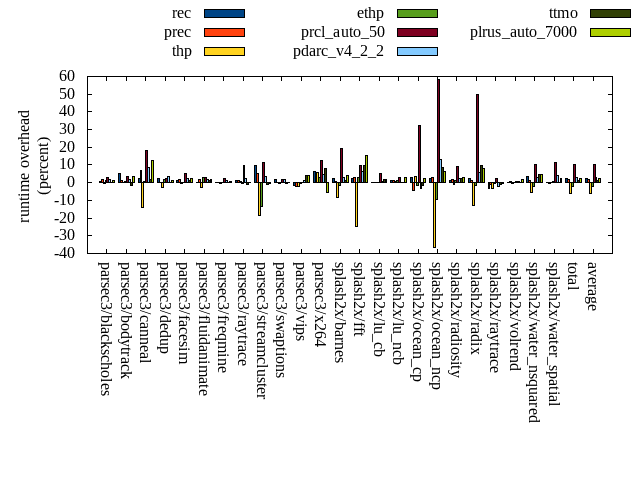 ======= Summary ======= runtime orig rec (overhead) prec (overhead) thp (overhead) ethp (overhead) prcl_auto_50 (overhead) pdarc_v4_2_2 (overhead) ttmo (overhead) plrus_auto_7000 (overhead) parsec3/blackscholes 139.268 140.335 (0.77) 142.092 (2.03) 138.474 (-0.57) 140.620 (0.97) 143.465 (3.01) 141.642 (1.71) 139.585 (0.23) 141.039 (1.27) parsec3/bodytrack 126.598 133.039 (5.09) 127.846 (0.99) 126.723 (0.10) 127.716 (0.88) 130.907 (3.40) 128.659 (1.63) 124.731 (-1.47) 130.901 (3.40) parsec3/canneal 211.755 216.251 (2.12) 226.572 (7.00) 182.358 (-13.88) 213.590 (0.87) 250.415 (18.26) 229.667 (8.46) 215.483 (1.76) 238.811 (12.78) parsec3/dedup 18.224 18.702 (2.63) 18.268 (0.24) 17.698 (-2.89) 18.565 (1.87) 18.612 (2.13) 18.874 (3.57) 18.242 (0.10) 18.466 (1.33) parsec3/facesim 346.073 349.838 (1.09) 351.373 (1.53) 345.381 (-0.20) 345.595 (-0.14) 365.018 (5.47) 353.972 (2.28) 350.729 (1.35) 354.787 (2.52) parsec3/fluidanimate 332.470 333.680 (0.36) 338.865 (1.92) 322.640 (-2.96) 341.451 (2.70) 342.791 (3.10) 339.078 (1.99) 335.858 (1.02) 337.957 (1.65) parsec3/freqmine 435.752 435.429 (-0.07) 435.985 (0.05) 433.461 (-0.53) 435.409 (-0.08) 447.064 (2.60) 440.266 (1.04) 437.234 (0.34) 437.765 (0.46) parsec3/raytrace 184.945 187.330 (1.29) 187.615 (1.44) 186.433 (0.80) 184.407 (-0.29) 203.095 (9.81) 189.545 (2.49) 182.958 (-1.07) 185.276 (0.18) parsec3/streamcluster 657.992 720.354 (9.48) 691.596 (5.11) 535.461 (-18.62) 569.231 (-13.49) 733.846 (11.53) 680.304 (3.39) 650.132 (-1.19) 655.396 (-0.39) parsec3/swaptions 221.256 225.424 (1.88) 220.950 (-0.14) 220.610 (-0.29) 221.060 (-0.09) 225.670 (2.00) 224.673 (1.54) 220.384 (-0.39) 221.895 (0.29) parsec3/vips 90.279 88.763 (-1.68) 88.535 (-1.93) 88.515 (-1.95) 89.714 (-0.63) 90.450 (0.19) 91.338 (1.17) 93.860 (3.97) 94.089 (4.22) parsec3/x264 112.532 119.715 (6.38) 117.207 (4.15) 119.125 (5.86) 115.631 (2.75) 126.895 (12.76) 117.735 (4.62) 121.471 (7.94) 106.614 (-5.26) splash2x/barnes 129.825 132.723 (2.23) 130.723 (0.69) 118.827 (-8.47) 127.803 (-1.56) 154.633 (19.11) 133.675 (2.97) 131.505 (1.29) 135.130 (4.09) splash2x/fft 61.244 62.641 (2.28) 63.198 (3.19) 45.995 (-24.90) 62.926 (2.75) 67.213 (9.75) 65.107 (6.31) 67.247 (9.80) 70.692 (15.43) splash2x/lu_cb 132.765 133.174 (0.31) 133.208 (0.33) 132.601 (-0.12) 133.133 (0.28) 139.482 (5.06) 133.884 (0.84) 135.216 (1.85) 135.363 (1.96) splash2x/lu_ncb 151.205 153.163 (1.29) 153.154 (1.29) 152.197 (0.66) 153.230 (1.34) 155.548 (2.87) 151.403 (0.13) 151.549 (0.23) 155.844 (3.07) splash2x/ocean_cp 82.408 84.664 (2.74) 78.843 (-4.32) 85.488 (3.74) 81.145 (-1.53) 108.936 (32.19) 79.650 (-3.35) 81.282 (-1.37) 84.181 (2.15) splash2x/ocean_ncp 163.754 167.535 (2.31) 168.870 (3.12) 103.994 (-36.49) 148.290 (-9.44) 259.355 (58.38) 185.514 (13.29) 178.034 (8.72) 174.022 (6.27) splash2x/radiosity 141.623 143.199 (1.11) 144.356 (1.93) 140.298 (-0.94) 143.233 (1.14) 154.442 (9.05) 145.341 (2.62) 145.092 (2.45) 145.895 (3.02) splash2x/radix 51.145 52.458 (2.57) 51.640 (0.97) 44.690 (-12.62) 50.332 (-1.59) 76.724 (50.01) 54.076 (5.73) 55.972 (9.44) 55.117 (7.77) splash2x/raytrace 139.459 134.762 (-3.37) 138.326 (-0.81) 134.713 (-3.40) 138.818 (-0.46) 143.088 (2.60) 136.541 (-2.09) 138.338 (-0.80) 138.598 (-0.62) splash2x/volrend 120.235 120.516 (0.23) 121.100 (0.72) 119.712 (-0.43) 120.095 (-0.12) 120.970 (0.61) 121.117 (0.73) 120.135 (-0.08) 122.130 (1.58) splash2x/water_nsquared 374.510 387.115 (3.37) 379.191 (1.25) 354.673 (-5.30) 365.959 (-2.28) 413.771 (10.48) 386.037 (3.08) 392.440 (4.79) 391.879 (4.64) splash2x/water_spatial 135.552 135.367 (-0.14) 134.904 (-0.48) 135.967 (0.31) 136.230 (0.50) 151.255 (11.58) 141.401 (4.32) 136.059 (0.37) 138.988 (2.53) total 4560.860 4676.150 (2.53) 4644.420 (1.83) 4286.020 (-6.03) 4464.180 (-2.12) 5023.650 (10.15) 4689.510 (2.82) 4623.520 (1.37) 4670.820 (2.41) average 190.036 194.840 (1.84) 193.518 (1.26) 178.584 (-5.13) 186.008 (-0.65) 209.319 (11.92) 195.396 (2.85) 192.647 (2.05) 194.617 (3.10) kdamond_cpu_util orig rec (overhead) prec (overhead) thp (overhead) ethp (overhead) prcl_auto_50 (overhead) pdarc_v4_2_2 (overhead) ttmo (overhead) plrus_auto_7000 (overhead) parsec3/blackscholes 0.000 1.742 (1.74) 0.880 (0.88) 0.000 (0.00) 1.516 (1.52) 3.911 (3.91) 3.116 (3.12) 0.000 (0.00) 2.055 (2.05) parsec3/bodytrack 0.000 1.974 (1.97) 0.831 (0.83) 0.000 (0.00) 2.082 (2.08) 3.279 (3.28) 4.758 (4.76) 0.000 (0.00) 2.005 (2.00) parsec3/canneal 0.000 2.073 (2.07) 2.204 (2.20) 0.000 (0.00) 2.235 (2.24) 5.823 (5.82) 13.032 (13.03) 0.000 (0.00) 3.952 (3.95) parsec3/dedup 0.000 1.564 (1.56) 0.859 (0.86) 0.000 (0.00) 1.624 (1.62) 1.638 (1.64) 6.115 (6.11) 0.000 (0.00) 0.871 (0.87) parsec3/facesim 0.000 1.609 (1.61) 0.870 (0.87) 0.000 (0.00) 2.426 (2.43) 3.248 (3.25) 5.048 (5.05) 0.000 (0.00) 1.941 (1.94) parsec3/fluidanimate 0.000 1.534 (1.53) 0.893 (0.89) 0.000 (0.00) 1.530 (1.53) 1.663 (1.66) 5.017 (5.02) 0.000 (0.00) 1.919 (1.92) parsec3/freqmine 0.000 1.501 (1.50) 0.873 (0.87) 0.000 (0.00) 1.500 (1.50) 5.005 (5.00) 4.784 (4.78) 0.000 (0.00) 2.462 (2.46) parsec3/raytrace 0.000 1.592 (1.59) 0.916 (0.92) 0.000 (0.00) 1.603 (1.60) 8.592 (8.59) 4.206 (4.21) 0.000 (0.00) 2.158 (2.16) parsec3/streamcluster 0.000 17.169 (17.17) 6.928 (6.93) 0.000 (0.00) 1.538 (1.54) 16.936 (16.94) 10.112 (10.11) 0.000 (0.00) 3.934 (3.93) parsec3/swaptions 0.000 1.332 (1.33) 0.874 (0.87) 0.000 (0.00) 1.547 (1.55) 1.452 (1.45) 5.055 (5.05) 0.000 (0.00) 1.925 (1.93) parsec3/vips 0.000 4.535 (4.53) 0.829 (0.83) 0.000 (0.00) 2.726 (2.73) 6.048 (6.05) 5.713 (5.71) 0.000 (0.00) 1.770 (1.77) parsec3/x264 0.000 3.072 (3.07) 0.866 (0.87) 0.000 (0.00) 3.259 (3.26) 3.507 (3.51) 4.438 (4.44) 0.000 (0.00) 1.835 (1.84) splash2x/barnes 0.000 1.391 (1.39) 0.948 (0.95) 0.000 (0.00) 1.717 (1.72) 16.328 (16.33) 7.204 (7.20) 0.000 (0.00) 1.917 (1.92) splash2x/fft 0.000 1.764 (1.76) 0.987 (0.99) 0.000 (0.00) 1.702 (1.70) 32.568 (32.57) 4.527 (4.53) 0.000 (0.00) 1.873 (1.87) splash2x/lu_cb 0.000 1.584 (1.58) 0.857 (0.86)