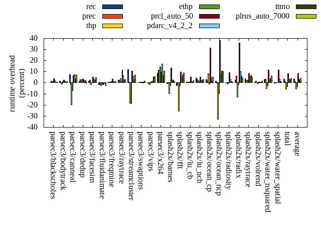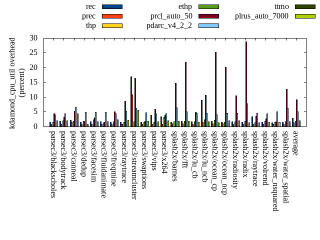 ======= Summary ======= runtime orig rec (overhead) prec (overhead) thp (overhead) ethp (overhead) prcl_auto_50 (overhead) pdarc_v4_2_2 (overhead) ttmo (overhead) plrus_auto_7000 (overhead) parsec3/blackscholes 139.296 139.710 (0.30) 141.536 (1.61) 140.955 (1.19) 139.484 (0.13) 144.749 (3.91) 141.829 (1.82) 139.648 (0.25) 140.295 (0.72) parsec3/bodytrack 126.814 128.893 (1.64) 126.400 (-0.33) 125.455 (-1.07) 128.090 (1.01) 130.093 (2.59) 128.538 (1.36) 127.358 (0.43) 128.471 (1.31) parsec3/canneal 224.551 241.717 (7.64) 220.836 (-1.65) 180.694 (-19.53) 208.376 (-7.20) 239.240 (6.54) 240.971 (7.31) 231.874 (3.26) 240.560 (7.13) parsec3/dedup 18.120 18.344 (1.24) 18.673 (3.06) 18.413 (1.62) 18.757 (3.52) 18.632 (2.83) 18.522 (2.22) 18.517 (2.20) 18.091 (-0.15) parsec3/facesim 345.116 350.035 (1.43) 353.361 (2.39) 340.260 (-1.41) 345.151 (0.01) 362.288 (4.98) 354.636 (2.76) 354.216 (2.64) 361.148 (4.65) parsec3/fluidanimate 341.345 336.706 (-1.36) 335.731 (-1.64) 333.451 (-2.31) 336.861 (-1.31) 335.336 (-1.76) 337.093 (-1.25) 342.482 (0.33) 333.267 (-2.37) parsec3/freqmine 434.157 436.962 (0.65) 436.697 (0.59) 437.370 (0.74) 439.122 (1.14) 449.234 (3.47) 439.211 (1.16) 436.551 (0.55) 439.682 (1.27) parsec3/raytrace 180.961 185.713 (2.63) 184.616 (2.02) 188.139 (3.97) 182.831 (1.03) 201.797 (11.51) 192.743 (6.51) 185.499 (2.51) 186.065 (2.82) parsec3/streamcluster 672.821 752.060 (11.78) 678.698 (0.87) 552.550 (-17.88) 547.250 (-18.66) 744.696 (10.68) 713.979 (6.12) 691.171 (2.73) 719.860 (6.99) parsec3/swaptions 221.971 222.650 (0.31) 221.973 (0.00) 223.061 (0.49) 222.485 (0.23) 223.014 (0.47) 221.612 (-0.16) 223.962 (0.90) 225.338 (1.52) parsec3/vips 89.218 89.441 (0.25) 88.721 (-0.56) 87.721 (-1.68) 89.206 (-0.01) 90.127 (1.02) 90.587 (1.53) 93.690 (5.01) 94.260 (5.65) parsec3/x264 110.842 120.496 (8.71) 123.723 (11.62) 123.291 (11.23) 126.861 (14.45) 121.440 (9.56) 129.386 (16.73) 118.342 (6.77) 122.487 (10.51) splash2x/barnes 131.545 130.587 (-0.73) 131.468 (-0.06) 118.648 (-9.80) 128.418 (-2.38) 149.362 (13.54) 134.921 (2.57) 135.017 (2.64) 132.961 (1.08) splash2x/fft 63.288 61.594 (-2.68) 62.671 (-0.98) 47.038 (-25.68) 61.353 (-3.06) 69.316 (9.53) 65.795 (3.96) 67.599 (6.81) 68.725 (8.59) splash2x/lu_cb 132.675 133.651 (0.74) 133.553 (0.66) 133.367 (0.52) 133.774 (0.83) 139.823 (5.39) 134.359 (1.27) 133.559 (0.67) 135.107 (1.83) splash2x/lu_ncb 150.640 157.009 (4.23) 154.732 (2.72) 153.869 (2.14) 151.988 (0.89) 158.440 (5.18) 152.697 (1.37) 154.613 (2.64) 154.868 (2.81) splash2x/ocean_cp 80.557 82.749 (2.72) 81.761 (1.49) 87.369 (8.46) 79.635 (-1.14) 105.741 (31.26) 84.272 (4.61) 81.765 (1.50) 84.903 (5.40) splash2x/ocean_ncp 164.317 166.559 (1.37) 164.147 (-0.10) 110.268 (-32.89) 148.313 (-9.74) 226.867 (38.07) 175.789 (6.98) 181.593 (10.51) 181.289 (10.33) splash2x/radiosity 142.511 142.676 (0.12) 141.924 (-0.41) 140.962 (-1.09) 142.343 (-0.12) 155.404 (9.05) 147.225 (3.31) 144.168 (1.16) 143.791 (0.90) splash2x/radix 50.951 52.196 (2.44) 54.017 (6.02) 44.440 (-12.78) 50.036 (-1.80) 69.146 (35.71) 56.189 (10.28) 54.002 (5.99) 53.057 (4.13) splash2x/raytrace 133.645 138.513 (3.64) 136.509 (2.14) 136.895 (2.43) 137.103 (2.59) 144.686 (8.26) 139.791 (4.60) 142.220 (6.42) 140.481 (5.12) splash2x/volrend 119.922 120.792 (0.73) 122.030 (1.76) 120.200 (0.23) 119.090 (-0.69) 120.945 (0.85) 120.860 (0.78) 120.975 (0.88) 121.551 (1.36) splash2x/water_nsquared 373.753 385.300 (3.09) 386.689 (3.46) 353.866 (-5.32) 364.431 (-2.49) 416.442 (11.42) 383.409 (2.58) 387.648 (3.72) 396.570 (6.10) splash2x/water_spatial 136.467 136.449 (-0.01) 136.281 (-0.14) 136.695 (0.17) 136.730 (0.19) 152.371 (11.65) 140.951 (3.29) 137.717 (0.92) 137.669 (0.88) total 4585.480 4730.800 (3.17) 4636.750 (1.12) 4334.990 (-5.46) 4437.670 (-3.22) 4969.190 (8.37) 4745.370 (3.49) 4704.190 (2.59) 4760.490 (3.82) average 191.062 197.117 (2.12) 193.198 (1.44) 180.625 (-4.09) 184.903 (-0.94) 207.050 (9.82) 197.724 (3.82) 196.008 (2.98) 198.354 (3.69) kdamond_cpu_util orig rec (overhead) prec (overhead) thp (overhead) ethp (overhead) prcl_auto_50 (overhead) pdarc_v4_2_2 (overhead) ttmo (overhead) plrus_auto_7000 (overhead) parsec3/blackscholes 0.000 1.501 (1.50) 0.886 (0.89) 0.000 (0.00) 1.575 (1.58) 4.479 (4.48) 4.102 (4.10) 0.000 (0.00) 2.048 (2.05) parsec3/bodytrack 0.000 1.928 (1.93) 0.818 (0.82) 0.000 (0.00) 2.031 (2.03) 3.141 (3.14) 4.380 (4.38) 0.000 (0.00) 1.981 (1.98) parsec3/canneal 0.000 2.164 (2.16) 1.498 (1.50) 0.000 (0.00) 1.844 (1.84) 5.252 (5.25) 6.543 (6.54) 0.000 (0.00) 4.332 (4.33) parsec3/dedup 0.000 1.538 (1.54) 0.854 (0.85) 0.000 (0.00) 1.808 (1.81) 1.727 (1.73) 4.883 (4.88) 0.000 (0.00) 0.846 (0.85) parsec3/facesim 0.000 1.762 (1.76) 0.879 (0.88) 0.000 (0.00) 2.301 (2.30) 3.001 (3.00) 4.919 (4.92) 0.000 (0.00) 1.772 (1.77) parsec3/fluidanimate 0.000 1.771 (1.77) 0.905 (0.91) 0.000 (0.00) 1.377 (1.38) 1.525 (1.52) 4.924 (4.92) 0.000 (0.00) 1.725 (1.72) parsec3/freqmine 0.000 1.538 (1.54) 0.879 (0.88) 0.000 (0.00) 1.639 (1.64) 5.013 (5.01) 4.347 (4.35) 0.000 (0.00) 2.445 (2.45) parsec3/raytrace 0.000 1.519 (1.52) 0.886 (0.89) 0.000 (0.00) 1.550 (1.55) 8.621 (8.62) 5.180 (5.18) 0.000 (0.00) 2.123 (2.12) parsec3/streamcluster 0.000 17.000 (17.00) 10.829 (10.83) 0.000 (0.00) 1.722 (1.72) 16.401 (16.40) 6.318 (6.32) 0.000 (0.00) 5.613 (5.61) parsec3/swaptions 0.000 1.536 (1.54) 0.916 (0.92) 0.000 (0.00) 1.588 (1.59) 1.802 (1.80) 4.702 (4.70) 0.000 (0.00) 1.800 (1.80) parsec3/vips 0.000 3.825 (3.82) 0.856 (0.86) 0.000 (0.00) 1.484 (1.48) 5.884 (5.88) 4.395 (4.39) 0.000 (0.00) 1.751 (1.75) parsec3/x264 0.000 3.388 (3.39) 0.875 (0.88) 0.000 (0.00) 3.268 (3.27) 3.834 (3.83) 4.388 (4.39) 0.000 (0.00) 2.006 (2.01) splash2x/barnes 0.000 1.458 (1.46) 0.941 (0.94) 0.000 (0.00) 1.636 (1.64) 14.707 (14.71) 6.423 (6.42) 0.000 (0.00) 1.838 (1.84) splash2x/fft 0.000 1.819 (1.82) 0.998 (1.00) 0.000 (0.00) 1.795 (1.80) 21.821 (21.82) 5.008 (5.01) 0.000 (0.00) 1.783 (1.78) splash2x/lu_cb 0.000 1.684 (1.68) 0.813 (0.81) 0.000 (0
