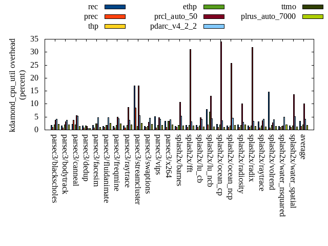 ======= Summary ======= runtime orig rec (overhead) prec (overhead) thp (overhead) ethp (overhead) prcl_auto_50 (overhead) pdarc_v4_2_2 (overhead) ttmo (overhead) plrus_auto_7000 (overhead) parsec3/blackscholes 138.649 143.280 (3.34) 145.029 (4.60) 140.710 (1.49) 142.476 (2.76) 144.373 (4.13) 142.281 (2.62) 140.718 (1.49) 140.195 (1.12) parsec3/bodytrack 125.134 125.008 (-0.10) 126.353 (0.97) 126.295 (0.93) 124.396 (-0.59) 126.143 (0.81) 125.726 (0.47) 123.815 (-1.05) 126.153 (0.81) parsec3/canneal 217.356 252.211 (16.04) 211.917 (-2.50) 181.315 (-16.58) 216.777 (-0.27) 235.556 (8.37) 225.407 (3.70) 262.354 (20.70) 238.158 (9.57) parsec3/dedup 18.183 18.671 (2.68) 19.139 (5.26) 18.261 (0.43) 19.052 (4.78) 18.395 (1.17) 19.075 (4.91) 19.139 (5.26) 18.630 (2.46) parsec3/facesim 344.303 351.253 (2.02) 354.585 (2.99) 345.905 (0.47) 344.613 (0.09) 367.297 (6.68) 352.824 (2.47) 356.693 (3.60) 356.801 (3.63) parsec3/fluidanimate 338.611 333.860 (-1.40) 335.643 (-0.88) 327.384 (-3.32) 339.168 (0.16) 343.769 (1.52) 332.774 (-1.72) 332.286 (-1.87) 338.561 (-0.01) parsec3/freqmine 439.745 436.962 (-0.63) 438.054 (-0.38) 442.957 (0.73) 438.955 (-0.18) 447.943 (1.86) 441.098 (0.31) 436.610 (-0.71) 442.056 (0.53) parsec3/raytrace 184.856 183.879 (-0.53) 184.626 (-0.12) 193.545 (4.70) 183.994 (-0.47) 199.222 (7.77) 187.098 (1.21) 189.487 (2.51) 182.186 (-1.44) parsec3/streamcluster 693.283 714.402 (3.05) 669.820 (-3.38) 625.381 (-9.79) 618.028 (-10.85) 748.668 (7.99) 715.086 (3.14) 660.499 (-4.73) 653.381 (-5.76) parsec3/swaptions 220.385 220.592 (0.09) 222.676 (1.04) 223.714 (1.51) 225.521 (2.33) 235.870 (7.03) 223.215 (1.28) 220.951 (0.26) 225.543 (2.34) parsec3/vips 94.641 89.792 (-5.12) 88.774 (-6.20) 89.597 (-5.33) 88.650 (-6.33) 89.725 (-5.19) 90.348 (-4.54) 99.653 (5.30) 100.203 (5.88) parsec3/x264 123.982 118.219 (-4.65) 108.463 (-12.52) 131.525 (6.08) 108.141 (-12.78) 123.105 (-0.71) 113.585 (-8.39) 134.428 (8.43) 112.789 (-9.03) splash2x/barnes 130.695 135.503 (3.68) 132.018 (1.01) 119.076 (-8.89) 131.028 (0.25) 141.816 (8.51) 137.500 (5.21) 134.457 (2.88) 133.150 (1.88) splash2x/fft 62.179 61.110 (-1.72) 63.500 (2.12) 47.750 (-23.21) 62.442 (0.42) 79.502 (27.86) 62.954 (1.25) 64.804 (4.22) 74.800 (20.30) splash2x/lu_cb 132.229 132.298 (0.05) 132.307 (0.06) 133.114 (0.67) 132.541 (0.24) 138.170 (4.49) 133.683 (1.10) 135.334 (2.35) 134.967 (2.07) splash2x/lu_ncb 152.326 150.051 (-1.49) 150.990 (-0.88) 151.700 (-0.41) 160.867 (5.61) 154.385 (1.35) 153.348 (0.67) 153.146 (0.54) 154.685 (1.55) splash2x/ocean_cp 80.733 77.979 (-3.41) 83.581 (3.53) 85.603 (6.03) 86.962 (7.72) 109.457 (35.58) 81.186 (0.56) 86.821 (7.54) 98.196 (21.63) splash2x/ocean_ncp 157.085 167.523 (6.64) 171.277 (9.03) 113.869 (-27.51) 156.460 (-0.40) 255.024 (62.35) 174.307 (10.96) 184.576 (17.50) 191.118 (21.67) splash2x/radiosity 142.632 144.096 (1.03) 141.724 (-0.64) 141.994 (-0.45) 141.275 (-0.95) 156.380 (9.64) 146.248 (2.54) 147.122 (3.15) 145.202 (1.80) splash2x/radix 50.682 51.716 (2.04) 53.913 (6.38) 49.868 (-1.61) 49.994 (-1.36) 70.635 (39.37) 56.591 (11.66) 54.878 (8.28) 54.557 (7.65) splash2x/raytrace 140.937 135.254 (-4.03) 137.828 (-2.21) 134.799 (-4.36) 139.513 (-1.01) 146.393 (3.87) 139.889 (-0.74) 144.037 (2.20) 142.644 (1.21) splash2x/volrend 119.515 123.529 (3.36) 121.559 (1.71) 120.296 (0.65) 120.203 (0.58) 122.102 (2.16) 120.847 (1.11) 120.763 (1.04) 121.943 (2.03) splash2x/water_nsquared 378.318 384.708 (1.69) 377.874 (-0.12) 357.492 (-5.50) 365.671 (-3.34) 426.853 (12.83) 389.785 (3.03) 404.815 (7.00) 391.573 (3.50) splash2x/water_spatial 136.385 136.458 (0.05) 135.604 (-0.57) 135.876 (-0.37) 137.388 (0.74) 154.294 (13.13) 144.201 (5.73) 137.158 (0.57) 137.716 (0.98) total 4622.860 4688.350 (1.42) 4607.250 (-0.34) 4438.040 (-4.00) 4534.100 (-1.92) 5035.060 (8.92) 4709.080 (1.87) 4744.550 (2.63) 4715.210 (2.00) average 192.619 195.348 (0.94) 191.969 (0.35) 184.918 (-3.48) 188.921 (-0.54) 209.794 (10.94) 196.212 (2.02) 197.690 (4.02) 196.467 (4.01) kdamond_cpu_util orig rec (overhead) prec (overhead) thp (overhead) ethp (overhead) prcl_auto_50 (overhead) pdarc_v4_2_2 (overhead) ttmo (overhead) plrus_auto_7000 (overhead) parsec3/blackscholes 0.000 1.791 (1.79) 0.905 (0.90) 0.000 (0.00) 1.935 (1.94) 3.709 (3.71) 4.227 (4.23) 0.000 (0.00) 2.205 (2.21) parsec3/bodytrack 0.000 1.518 (1.52) 0.828 (0.83) 0.000 (0.00) 2.032 (2.03) 3.241 (3.24) 3.748 (3.75) 0.000 (0.00) 1.996 (2.00) parsec3/canneal 0.000 2.077 (2.08) 3.731 (3.73) 0.000 (0.00) 1.966 (1.97) 5.442 (5.44) 5.300 (5.30) 0.000 (0.00) 1.440 (1.44) parsec3/dedup 0.000 1.529 (1.53) 0.878 (0.88) 0.000 (0.00) 1.631 (1.63) 1.439 (1.44) 0.559 (0.56) 0.000 (0.00) 0.672 (0.67) parsec3/facesim 0.000 1.810 (1.81) 0.884 (0.88) 0.000 (0.00) 2.452 (2.45) 2.449 (2.45) 4.818 (4.82) 0.000 (0.00) 1.059 (1.06) parsec3/fluidanimate 0.000 1.466 (1.47) 0.963 (0.96) 0.000 (0.00) 1.692 (1.69) 1.792 (1.79) 4.820 (4.82) 0.000 (0.00) 2.517 (2.52) parsec3/freqmine 0.000 1.430 (1.43) 0.889 (0.89) 0.000 (0.00) 1.704 (1.70) 5.001 (5.00) 4.398 (4.40) 0.000 (0.00) 2.375 (2.38) parsec3/raytrace 0.000 1.563 (1.56) 0.878 (0.88) 0.000 (0.00) 1.694 (1.69) 8.729 (8.73) 3.785 (3.79) 0.000 (0.00) 2.062 (2.06) parsec3/streamcluster 0.000 16.977 (16.98) 8.452 (8.45) 0.000 (0.00) 1.393 (1.39) 17.049 (17.05) 5.548 (5.55) 0.000 (0.00) 2.592 (2.59) parsec3/swaptions 0.000 1.293 (1.29) 0.906 (0.91) 0.000 (0.00) 1.402 (1.40) 2.978 (2.98) 4.489 (4.49) 0.000 (0.00) 2.200 (2.20) parsec3/vips 0.000 5.099 (5.10) 0.851 (0.85) 0.000 (0.00) 1.735 (1.73) 4.819 (4.82) 4.221 (4.22) 0.000 (0.00) 1.744 (1.74) parsec3/x264 0.000 3.379 (3.38) 0.911 (0.91) 0.000 (0.00) 3.384 (3.38) 3.265 (3.27) 4.016 (4.02) 0.000 (0.00) 1.918 (1.92) splash2x/barnes 0.000 1.437 (1.44) 0.919 (0.92) 0.000 (0.00) 1.715 (1.71) 10.632 (10.63) 5.418 (5.42) 0.000 (0.00) 1.662 (1.66) splash2x/fft 0.000 1.760 (1.76) 1.015 (1.01) 0.000 (0.00) 1.766 (1.77) 31.061 (31.06) 3.201 (3.20) 0.000 (0.00) 1.608 (1.61) splash2x/lu_cb 0.000 1.783 (1.78) 0.89