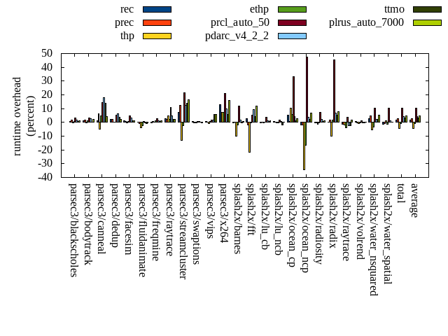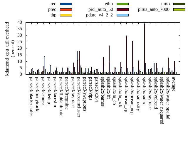 ======= Summary ======= runtime orig rec (overhead) prec (overhead) thp (overhead) ethp (overhead) prcl_auto_50 (overhead) pdarc_v4_2_2 (overhead) ttmo (overhead) plrus_auto_7000 (overhead) parsec3/blackscholes 139.108 140.207 (0.79) 141.553 (1.76) 138.952 (-0.11) 139.827 (0.52) 143.759 (3.34) 141.658 (1.83) 140.196 (0.78) 140.591 (1.07) parsec3/bodytrack 126.095 127.715 (1.28) 128.043 (1.54) 125.931 (-0.13) 127.457 (1.08) 130.068 (3.15) 129.468 (2.67) 126.109 (0.01) 128.940 (2.26) parsec3/canneal 210.330 212.324 (0.95) 223.627 (6.32) 200.242 (-4.80) 220.406 (4.79) 241.147 (14.65) 248.194 (18.00) 240.015 (14.11) 219.604 (4.41) parsec3/dedup 17.966 18.355 (2.17) 18.318 (1.96) 17.992 (0.14) 18.030 (0.36) 18.882 (5.10) 19.126 (6.46) 18.633 (3.72) 18.405 (2.44) parsec3/facesim 346.076 350.598 (1.31) 347.542 (0.42) 344.417 (-0.48) 348.501 (0.70) 362.302 (4.69) 357.433 (3.28) 350.064 (1.15) 350.751 (1.35) parsec3/fluidanimate 338.335 338.751 (0.12) 335.749 (-0.76) 325.201 (-3.88) 330.606 (-2.28) 340.269 (0.57) 337.947 (-0.11) 335.534 (-0.83) 337.933 (-0.12) parsec3/freqmine 435.136 434.464 (-0.15) 438.660 (0.81) 436.479 (0.31) 439.840 (1.08) 445.907 (2.48) 440.263 (1.18) 437.985 (0.65) 439.629 (1.03) parsec3/raytrace 180.818 186.107 (2.93) 185.044 (2.34) 189.577 (4.84) 185.159 (2.40) 200.186 (10.71) 188.967 (4.51) 184.491 (2.03) 184.727 (2.16) parsec3/streamcluster 634.194 680.843 (7.36) 712.878 (12.41) 549.879 (-13.29) 618.486 (-2.48) 770.345 (21.47) 713.820 (12.56) 722.270 (13.89) 737.681 (16.32) parsec3/swaptions 222.044 223.461 (0.64) 220.954 (-0.49) 221.428 (-0.28) 221.477 (-0.26) 223.453 (0.63) 223.063 (0.46) 222.727 (0.31) 221.055 (-0.45) parsec3/vips 88.770 89.507 (0.83) 89.051 (0.32) 87.899 (-0.98) 89.166 (0.45) 90.327 (1.75) 90.343 (1.77) 93.749 (5.61) 93.992 (5.88) parsec3/x264 110.450 124.463 (12.69) 116.239 (5.24) 118.307 (7.11) 118.738 (7.50) 133.716 (21.06) 121.142 (9.68) 117.059 (5.98) 128.151 (16.03) splash2x/barnes 131.740 131.330 (-0.31) 132.222 (0.37) 118.494 (-10.05) 129.169 (-1.95) 147.421 (11.90) 133.750 (1.53) 130.968 (-0.59) 132.960 (0.93) splash2x/fft 62.557 64.179 (2.59) 61.399 (-1.85) 49.069 (-21.56) 62.497 (-0.10) 65.749 (5.10) 68.433 (9.39) 65.118 (4.09) 70.062 (12.00) splash2x/lu_cb 133.339 132.875 (-0.35) 133.496 (0.12) 132.921 (-0.31) 133.733 (0.30) 138.211 (3.65) 134.952 (1.21) 133.904 (0.42) 134.745 (1.05) splash2x/lu_ncb 153.633 154.504 (0.57) 153.975 (0.22) 153.457 (-0.11) 152.902 (-0.48) 156.108 (1.61) 155.023 (0.90) 150.442 (-2.08) 154.280 (0.42) splash2x/ocean_cp 81.764 86.206 (5.43) 82.497 (0.90) 90.216 (10.34) 86.456 (5.74) 109.108 (33.44) 85.403 (4.45) 82.788 (1.25) 83.960 (2.69) splash2x/ocean_ncp 172.231 169.356 (-1.67) 169.182 (-1.77) 113.026 (-34.38) 143.570 (-16.64) 253.808 (47.36) 178.826 (3.83) 175.898 (2.13) 183.637 (6.62) splash2x/radiosity 142.990 142.572 (-0.29) 142.484 (-0.35) 140.886 (-1.47) 142.353 (-0.45) 153.513 (7.36) 146.008 (2.11) 144.310 (0.92) 145.012 (1.41) splash2x/radix 51.396 51.551 (0.30) 52.204 (1.57) 46.212 (-10.09) 52.198 (1.56) 74.760 (45.46) 54.861 (6.74) 54.216 (5.49) 55.520 (8.02) splash2x/raytrace 139.392 137.322 (-1.49) 137.534 (-1.33) 137.008 (-1.71) 134.178 (-3.74) 144.247 (3.48) 136.418 (-2.13) 135.792 (-2.58) 141.784 (1.72) splash2x/volrend 120.834 121.598 (0.63) 120.473 (-0.30) 119.741 (-0.90) 120.145 (-0.57) 122.341 (1.25) 120.399 (-0.36) 120.702 (-0.11) 120.885 (0.04) splash2x/water_nsquared 375.136 385.218 (2.69) 392.648 (4.67) 355.136 (-5.33) 361.487 (-3.64) 413.793 (10.30) 382.816 (2.05) 384.077 (2.38) 394.899 (5.27) splash2x/water_spatial 137.047 135.483 (-1.14) 135.907 (-0.83) 138.764 (1.25) 134.879 (-1.58) 150.889 (10.10) 138.832 (1.30) 137.270 (0.16) 136.981 (-0.05) total 4551.380 4638.990 (1.92) 4671.660 (2.64) 4351.250 (-4.40) 4511.280 (-0.88) 5030.330 (10.52) 4747.130 (4.30) 4704.330 (3.36) 4756.170 (4.50) average 189.641 193.291 (1.58) 194.653 (1.39) 181.302 (-3.58) 187.970 (-0.32) 209.597 (11.28) 197.797 (3.89) 196.014 (2.46) 198.174 (3.85) kdamond_cpu_util orig rec (overhead) prec (overhead) thp (overhead) ethp (overhead) prcl_auto_50 (overhead) pdarc_v4_2_2 (overhead) ttmo (overhead) plrus_auto_7000 (overhead) parsec3/blackscholes 0.000 1.747 (1.75) 0.885 (0.89) 0.000 (0.00) 1.528 (1.53) 3.861 (3.86) 4.562 (4.56) 0.000 (0.00) 2.249 (2.25) parsec3/bodytrack 0.000 2.075 (2.07) 0.950 (0.95) 0.000 (0.00) 1.828 (1.83) 3.437 (3.44) 4.010 (4.01) 0.000 (0.00) 2.013 (2.01) parsec3/canneal 0.000 2.132 (2.13) 2.786 (2.79) 0.000 (0.00) 2.172 (2.17) 6.013 (6.01) 13.715 (13.72) 0.000 (0.00) 4.110 (4.11) parsec3/dedup 0.000 1.951 (1.95) 0.827 (0.83) 0.000 (0.00) 1.764 (1.76) 1.742 (1.74) 7.090 (7.09) 0.000 (0.00) 0.873 (0.87) parsec3/facesim 0.000 1.819 (1.82) 0.865 (0.87) 0.000 (0.00) 2.375 (2.38) 2.970 (2.97) 5.187 (5.19) 0.000 (0.00) 2.458 (2.46) parsec3/fluidanimate 0.000 1.695 (1.70) 0.902 (0.90) 0.000 (0.00) 1.424 (1.42) 1.623 (1.62) 5.139 (5.14) 0.000 (0.00) 1.775 (1.77) parsec3/freqmine 0.000 1.533 (1.53) 0.907 (0.91) 0.000 (0.00) 1.872 (1.87) 5.146 (5.15) 4.873 (4.87) 0.000 (0.00) 2.473 (2.47) parsec3/raytrace 0.000 1.583 (1.58) 0.915 (0.91) 0.000 (0.00) 1.669 (1.67) 9.021 (9.02) 5.652 (5.65) 0.000 (0.00) 2.128 (2.13) parsec3/streamcluster 0.000 17.744 (17.74) 10.850 (10.85) 0.000 (0.00) 1.716 (1.72) 17.949 (17.95) 6.671 (6.67) 0.000 (0.00) 5.202 (5.20) parsec3/swaptions 0.000 1.536 (1.54) 0.940 (0.94) 0.000 (0.00) 1.420 (1.42) 1.861 (1.86) 5.067 (5.07) 0.000 (0.00) 1.798 (1.80) parsec3/vips 0.000 4.471 (4.47) 0.852 (0.85) 0.000 (0.00) 2.684 (2.68) 5.653 (5.65) 5.818 (5.82) 0.000 (0.00) 1.793 (1.79) parsec3/x264 0.000 3.473 (3.47) 0.887 (0.89) 0.000 (0.00) 3.880 (3.88) 4.241 (4.24) 4.318 (4.32) 0.000 (0.00) 1.995 (1.99) splash2x/barnes 0.000 1.569 (1.57) 0.966 (0.97) 0.000 (0.00) 1.723 (1.72) 13.556 (13.56) 7.227 (7.23) 0.000 (0.00) 1.839 (1.84) splash2x/fft 0.000 1.917 (1.92) 0.995 (1.00) 0.000 (0.00) 1.839 (1.84) 22.044 (22.04) 8.779 (8.78) 0.000 (0.00) 1.887 (1.89) splash2x/lu_cb 0.000 1.626 (1.63) 