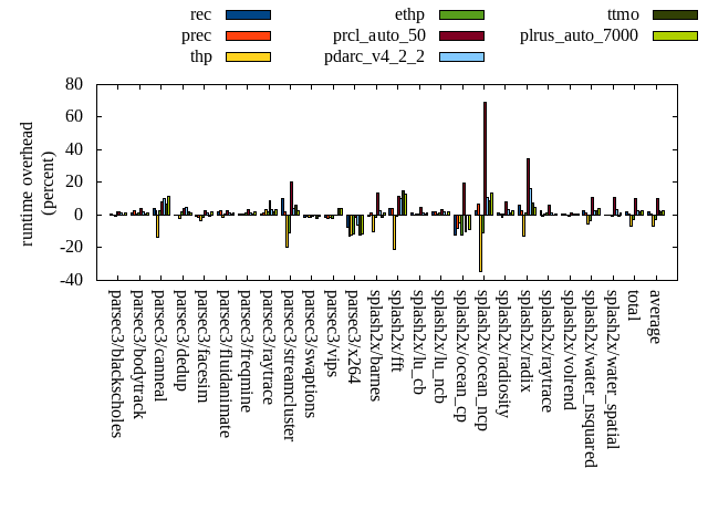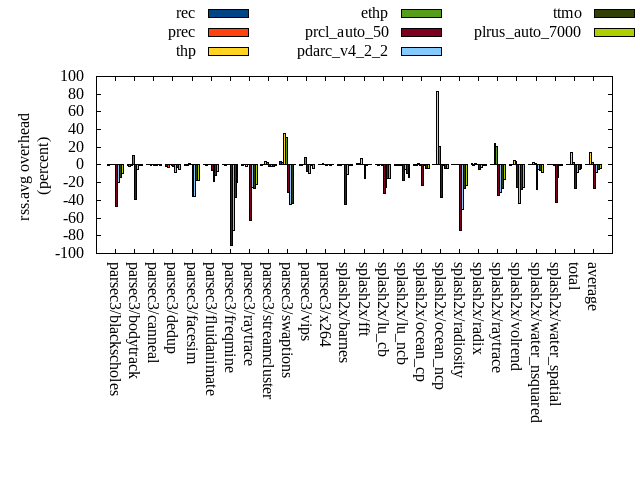======= Summary ======= runtime orig rec (overhead) prec (overhead) thp (overhead) ethp (overhead) prcl_auto_50 (overhead) pdarc_v4_2_2 (overhead) ttmo (overhead) plrus_auto_7000 (overhead) parsec3/blackscholes 139.305 139.851 (0.39) 139.589 (0.20) 138.763 (-0.39) 141.688 (1.71) 142.407 (2.23) 140.904 (1.15) 139.751 (0.32) 140.829 (1.09) parsec3/bodytrack 125.637 126.981 (1.07) 129.435 (3.02) 126.510 (0.69) 127.161 (1.21) 130.575 (3.93) 128.261 (2.09) 126.482 (0.67) 127.207 (1.25) parsec3/canneal 211.726 220.793 (4.28) 216.901 (2.44) 182.514 (-13.80) 216.868 (2.43) 229.606 (8.45) 233.743 (10.40) 226.796 (7.12) 236.084 (11.50) parsec3/dedup 18.205 18.173 (-0.17) 18.263 (0.32) 17.837 (-2.02) 18.517 (1.71) 18.952 (4.10) 19.109 (4.97) 18.554 (1.92) 18.478 (1.50) parsec3/facesim 351.354 349.857 (-0.43) 346.336 (-1.43) 338.607 (-3.63) 347.422 (-1.12) 361.234 (2.81) 355.624 (1.22) 348.400 (-0.84) 358.240 (1.96) parsec3/fluidanimate 330.995 337.466 (1.96) 339.438 (2.55) 325.912 (-1.54) 333.534 (0.77) 340.126 (2.76) 335.015 (1.21) 334.333 (1.01) 334.876 (1.17) parsec3/freqmine 433.586 435.693 (0.49) 437.363 (0.87) 435.416 (0.42) 438.529 (1.14) 448.199 (3.37) 440.608 (1.62) 437.006 (0.79) 441.718 (1.88) parsec3/raytrace 181.643 182.414 (0.42) 184.482 (1.56) 188.160 (3.59) 185.253 (1.99) 198.028 (9.02) 187.507 (3.23) 184.725 (1.70) 187.616 (3.29) parsec3/streamcluster 671.115 741.083 (10.43) 684.390 (1.98) 541.316 (-19.34) 596.526 (-11.11) 806.495 (20.17) 696.904 (3.84) 714.121 (6.41) 691.093 (2.98) parsec3/swaptions 224.495 221.983 (-1.12) 222.778 (-0.76) 222.009 (-1.11) 221.717 (-1.24) 223.044 (-0.65) 224.979 (0.22) 220.099 (-1.96) 222.653 (-0.82) parsec3/vips 90.346 89.361 (-1.09) 88.485 (-2.06) 89.027 (-1.46) 88.788 (-1.72) 90.147 (-0.22) 90.512 (0.18) 93.721 (3.74) 94.092 (4.15) parsec3/x264 126.178 116.713 (-7.50) 110.288 (-12.59) 110.913 (-12.10) 111.229 (-11.85) 124.591 (-1.26) 118.137 (-6.37) 111.145 (-11.91) 111.945 (-11.28) splash2x/barnes 131.145 130.545 (-0.46) 132.897 (1.34) 117.911 (-10.09) 129.118 (-1.55) 148.550 (13.27) 134.624 (2.65) 129.741 (-1.07) 132.829 (1.28) splash2x/fft 61.844 64.487 (4.27) 64.277 (3.93) 48.708 (-21.24) 61.302 (-0.88) 69.001 (11.57) 68.036 (10.01) 70.958 (14.74) 69.638 (12.60) splash2x/lu_cb 132.797 134.499 (1.28) 133.175 (0.28) 133.347 (0.41) 133.996 (0.90) 138.809 (4.53) 134.842 (1.54) 133.779 (0.74) 134.776 (1.49) splash2x/lu_ncb 151.279 154.082 (1.85) 153.986 (1.79) 152.036 (0.50) 153.325 (1.35) 156.045 (3.15) 154.086 (1.86) 151.148 (-0.09) 153.959 (1.77) splash2x/ocean_cp 91.616 80.715 (-11.90) 84.116 (-8.19) 87.358 (-4.65) 80.327 (-12.32) 109.516 (19.54) 82.078 (-10.41) 91.495 (-0.13) 83.283 (-9.10) splash2x/ocean_ncp 159.445 163.560 (2.58) 170.528 (6.95) 103.846 (-34.87) 142.084 (-10.89) 269.578 (69.07) 176.480 (10.68) 173.944 (9.09) 181.417 (13.78) splash2x/radiosity 142.419 144.288 (1.31) 143.674 (0.88) 140.009 (-1.69) 143.757 (0.94) 154.078 (8.19) 146.854 (3.11) 144.788 (1.66) 146.366 (2.77) splash2x/radix 50.700 53.650 (5.82) 52.106 (2.77) 44.177 (-12.87) 51.404 (1.39) 68.083 (34.29) 58.793 (15.96) 54.439 (7.38) 53.061 (4.66) splash2x/raytrace 136.329 140.227 (2.86) 135.433 (-0.66) 137.185 (0.63) 137.728 (1.03) 144.260 (5.82) 138.321 (1.46) 136.494 (0.12) 137.712 (1.01) splash2x/volrend 120.347 121.504 (0.96) 121.130 (0.65) 120.582 (0.20) 119.535 (-0.68) 121.929 (1.31) 120.964 (0.51) 121.410 (0.88) 121.538 (0.99) splash2x/water_nsquared 376.038 385.956 (2.64) 381.996 (1.58) 355.048 (-5.58) 363.648 (-3.29) 417.155 (10.93) 385.351 (2.48) 385.453 (2.50) 390.372 (3.81) splash2x/water_spatial 136.179 135.959 (-0.16) 136.243 (0.05) 136.129 (-0.04) 135.409 (-0.57) 151.008 (10.89) 140.446 (3.13) 135.663 (-0.38) 138.186 (1.47) total 4594.750 4689.830 (2.07) 4627.310 (0.71) 4293.350 (-6.56) 4478.880 (-2.52) 5061.440 (10.16) 4712.180 (2.56) 4684.440 (1.95) 4707.980 (2.46) average 191.448 195.410 (0.82) 192.805 (0.31) 178.890 (-5.83) 186.620 (-1.69) 210.893 (10.30) 196.341 (2.78) 195.185 (1.85) 196.166 (2.30) kdamond_cpu_util orig rec (overhead) prec (overhead) thp (overhead) ethp (overhead) prcl_auto_50 (overhead) pdarc_v4_2_2 (overhead) ttmo (overhead) plrus_auto_7000 (overhead) parsec3/blackscholes 0.000 1.619 (1.62) 0.891 (0.89) 0.000 (0.00) 1.530 (1.53) 3.684 (3.68) 3.290 (3.29) 0.000 (0.00) 2.091 (2.09) parsec3/bodytrack 0.000 1.883 (1.88) 0.841 (0.84) 0.000 (0.00) 1.975 (1.97) 3.288 (3.29) 4.831 (4.83) 0.000 (0.00) 2.063 (2.06) parsec3/canneal 0.000 2.262 (2.26) 3.836 (3.84) 0.000 (0.00) 1.970 (1.97) 4.996 (5.00) 7.365 (7.37) 0.000 (0.00) 2.586 (2.59) parsec3/dedup 0.000 1.568 (1.57) 0.885 (0.89) 0.000 (0.00) 1.481 (1.48) 1.748 (1.75) 5.694 (5.69) 0.000 (0.00) 0.743 (0.74) parsec3/facesim 0.000 1.640 (1.64) 0.885 (0.88) 0.000 (0.00) 2.347 (2.35) 3.685 (3.69) 5.173 (5.17) 0.000 (0.00) 1.777 (1.78) parsec3/fluidanimate 0.000 1.403 (1.40) 0.901 (0.90) 0.000 (0.00) 1.438 (1.44) 1.559 (1.56) 5.217 (5.22) 0.000 (0.00) 2.428 (2.43) parsec3/freqmine 0.000 1.503 (1.50) 0.888 (0.89) 0.000 (0.00) 1.689 (1.69) 4.997 (5.00) 4.772 (4.77) 0.000 (0.00) 2.350 (2.35) parsec3/raytrace 0.000 1.668 (1.67) 0.907 (0.91) 0.000 (0.00) 1.554 (1.55) 8.955 (8.96) 4.584 (4.58) 0.000 (0.00) 1.930 (1.93) parsec3/streamcluster 0.000 17.400 (17.40) 12.003 (12.00) 0.000 (0.00) 1.638 (1.64) 17.426 (17.43) 6.923 (6.92) 0.000 (0.00) 4.133 (4.13) parsec3/swaptions 0.000 1.206 (1.21) 0.894 (0.89) 0.000 (0.00) 1.537 (1.54) 1.776 (1.78) 5.111 (5.11) 0.000 (0.00) 2.085 (2.09) parsec3/vips 0.000 4.432 (4.43) 0.828 (0.83) 0.000 (0.00) 2.863 (2.86) 5.708 (5.71) 4.836 (4.84) 0.000 (0.00) 1.778 (1.78) parsec3/x264 0.000 3.328 (3.33) 0.880 (0.88) 0.000 (0.00) 3.969 (3.97) 3.228 (3.23) 5.036 (5.04) 0.000 (0.00) 1.964 (1.96) splash2x/barnes 0.000 1.422 (1.42) 1.027 (1.03) 0.000 (0.00) 1.576 (1.58) 13.988 (13.99) 6.332 (6.33) 0.000 (0.00) 1.948 (1.95) splash2x/fft 0.000 1.839 (1.84) 0.994 (0.99) 0.000 (0.00) 1.859 (1.86) 21.305 (21.30) 8.982 (8.98) 0.000 (0.00) 1.900 (1.90) splash2x/lu_cb 0.000 1.673 