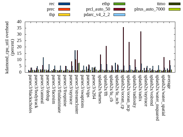 ======= Summary ======= runtime orig rec (overhead) prec (overhead) thp (overhead) ethp (overhead) prcl_auto_50 (overhead) pdarc_v4_2_2 (overhead) ttmo (overhead) plrus_auto_7000 (overhead) parsec3/blackscholes 139.510 142.014 (1.79) 139.812 (0.22) 138.486 (-0.73) 140.168 (0.47) 142.993 (2.50) 140.483 (0.70) 140.033 (0.37) 140.722 (0.87) parsec3/bodytrack 125.645 129.862 (3.36) 127.238 (1.27) 125.533 (-0.09) 128.896 (2.59) 129.821 (3.32) 128.731 (2.46) 126.069 (0.34) 128.130 (1.98) parsec3/canneal 225.731 218.991 (-2.99) 238.148 (5.50) 193.449 (-14.30) 225.213 (-0.23) 242.452 (7.41) 228.076 (1.04) 230.379 (2.06) 228.647 (1.29) parsec3/dedup 18.316 18.278 (-0.21) 18.368 (0.28) 17.981 (-1.83) 18.403 (0.47) 18.210 (-0.58) 18.739 (2.30) 18.328 (0.06) 18.261 (-0.31) parsec3/facesim 347.820 351.956 (1.19) 354.227 (1.84) 345.281 (-0.73) 351.732 (1.12) 363.302 (4.45) 359.930 (3.48) 346.401 (-0.41) 355.940 (2.33) parsec3/fluidanimate 339.355 335.438 (-1.15) 334.836 (-1.33) 330.410 (-2.64) 338.449 (-0.27) 341.067 (0.50) 335.999 (-0.99) 332.342 (-2.07) 338.559 (-0.23) parsec3/freqmine 436.712 437.852 (0.26) 438.984 (0.52) 437.511 (0.18) 437.052 (0.08) 448.676 (2.74) 440.166 (0.79) 435.966 (-0.17) 438.488 (0.41) parsec3/raytrace 182.131 186.242 (2.26) 188.428 (3.46) 191.409 (5.09) 186.950 (2.65) 197.636 (8.51) 189.284 (3.93) 188.106 (3.28) 185.443 (1.82) parsec3/streamcluster 659.754 735.712 (11.51) 625.592 (-5.18) 569.812 (-13.63) 590.906 (-10.44) 751.718 (13.94) 679.575 (3.00) 719.729 (9.09) 710.671 (7.72) parsec3/swaptions 219.965 225.864 (2.68) 228.195 (3.74) 223.331 (1.53) 222.506 (1.15) 224.150 (1.90) 222.433 (1.12) 221.133 (0.53) 222.797 (1.29) parsec3/vips 88.150 88.526 (0.43) 88.749 (0.68) 88.059 (-0.10) 88.620 (0.53) 90.973 (3.20) 89.402 (1.42) 94.057 (6.70) 93.491 (6.06) parsec3/x264 118.302 123.618 (4.49) 125.894 (6.42) 122.831 (3.83) 107.368 (-9.24) 107.684 (-8.98) 116.730 (-1.33) 110.477 (-6.61) 126.565 (6.98) splash2x/barnes 129.691 131.319 (1.26) 131.728 (1.57) 119.418 (-7.92) 128.032 (-1.28) 149.527 (15.30) 134.887 (4.01) 135.029 (4.12) 135.759 (4.68) splash2x/fft 61.781 61.564 (-0.35) 62.056 (0.45) 46.414 (-24.87) 61.290 (-0.79) 68.807 (11.37) 66.777 (8.09) 65.301 (5.70) 68.319 (10.58) splash2x/lu_cb 132.290 133.130 (0.63) 133.237 (0.72) 133.314 (0.77) 133.606 (0.99) 138.634 (4.80) 134.935 (2.00) 133.131 (0.64) 134.295 (1.52) splash2x/lu_ncb 151.943 153.080 (0.75) 153.737 (1.18) 151.825 (-0.08) 151.583 (-0.24) 156.001 (2.67) 152.565 (0.41) 151.993 (0.03) 153.253 (0.86) splash2x/ocean_cp 81.523 85.259 (4.58) 80.518 (-1.23) 87.015 (6.74) 81.942 (0.51) 120.409 (47.70) 86.021 (5.52) 90.843 (11.43) 89.381 (9.64) splash2x/ocean_ncp 164.841 168.185 (2.03) 174.449 (5.83) 105.146 (-36.21) 152.070 (-7.75) 250.818 (52.16) 174.575 (5.90) 177.113 (7.44) 183.384 (11.25) splash2x/radiosity 143.513 143.590 (0.05) 142.201 (-0.91) 141.188 (-1.62) 142.086 (-0.99) 152.751 (6.44) 146.100 (1.80) 145.144 (1.14) 144.360 (0.59) splash2x/radix 51.148 51.859 (1.39) 51.240 (0.18) 44.562 (-12.88) 49.857 (-2.53) 69.191 (35.28) 57.019 (11.48) 54.775 (7.09) 58.135 (13.66) splash2x/raytrace 137.056 137.072 (0.01) 136.111 (-0.69) 133.445 (-2.63) 134.263 (-2.04) 143.294 (4.55) 136.810 (-0.18) 139.975 (2.13) 139.164 (1.54) splash2x/volrend 119.401 120.746 (1.13) 120.347 (0.79) 119.171 (-0.19) 119.976 (0.48) 120.982 (1.32) 120.840 (1.20) 120.504 (0.92) 120.584 (0.99) splash2x/water_nsquared 376.387 384.232 (2.08) 383.355 (1.85) 355.472 (-5.56) 361.990 (-3.82) 417.360 (10.89) 381.221 (1.28) 387.206 (2.87) 389.130 (3.39) splash2x/water_spatial 136.104 135.497 (-0.45) 136.545 (0.32) 135.581 (-0.38) 135.396 (-0.52) 152.023 (11.70) 138.520 (1.78) 136.176 (0.05) 137.982 (1.38) total 4587.050 4699.890 (2.46) 4613.990 (0.59) 4356.630 (-5.02) 4488.370 (-2.15) 4998.480 (8.97) 4679.810 (2.02) 4700.210 (2.47) 4741.460 (3.37) average 191.127 195.829 (1.53) 192.250 (1.14) 181.526 (-4.51) 187.015 (-1.21) 208.270 (10.13) 194.992 (2.55) 195.842 (2.36) 197.561 (3.76) kdamond_cpu_util orig rec (overhead) prec (overhead) thp (overhead) ethp (overhead) prcl_auto_50 (overhead) pdarc_v4_2_2 (overhead) ttmo (overhead) plrus_auto_7000 (overhead) parsec3/blackscholes 0.000 1.804 (1.80) 0.886 (0.89) 0.000 (0.00) 1.467 (1.47) 3.572 (3.57) 3.560 (3.56) 0.000 (0.00) 1.910 (1.91) parsec3/bodytrack 0.000 1.883 (1.88) 0.854 (0.85) 0.000 (0.00) 1.711 (1.71) 3.296 (3.30) 4.687 (4.69) 0.000 (0.00) 2.074 (2.07) parsec3/canneal 0.000 2.171 (2.17) 1.426 (1.43) 0.000 (0.00) 2.153 (2.15) 5.560 (5.56) 11.829 (11.83) 0.000 (0.00) 2.023 (2.02) parsec3/dedup 0.000 1.996 (2.00) 0.869 (0.87) 0.000 (0.00) 1.657 (1.66) 1.944 (1.94) 6.277 (6.28) 0.000 (0.00) 0.874 (0.87) parsec3/facesim 0.000 1.580 (1.58) 0.899 (0.90) 0.000 (0.00) 2.326 (2.33) 2.578 (2.58) 5.200 (5.20) 0.000 (0.00) 1.867 (1.87) parsec3/fluidanimate 0.000 1.683 (1.68) 0.894 (0.89) 0.000 (0.00) 1.576 (1.58) 1.633 (1.63) 5.101 (5.10) 0.000 (0.00) 1.805 (1.81) parsec3/freqmine 0.000 1.461 (1.46) 0.888 (0.89) 0.000 (0.00) 1.658 (1.66) 5.064 (5.06) 4.828 (4.83) 0.000 (0.00) 2.328 (2.33) parsec3/raytrace 0.000 1.714 (1.71) 0.890 (0.89) 0.000 (0.00) 1.573 (1.57) 8.686 (8.69) 4.918 (4.92) 0.000 (0.00) 1.846 (1.85) parsec3/streamcluster 0.000 17.359 (17.36) 10.082 (10.08) 0.000 (0.00) 1.550 (1.55) 17.385 (17.38) 7.008 (7.01) 0.000 (0.00) 7.513 (7.51) parsec3/swaptions 0.000 1.306 (1.31) 0.879 (0.88) 0.000 (0.00) 1.914 (1.91) 1.410 (1.41) 5.159 (5.16) 0.000 (0.00) 1.747 (1.75) parsec3/vips 0.000 4.426 (4.43) 0.848 (0.85) 0.000 (0.00) 2.719 (2.72) 6.077 (6.08) 5.326 (5.33) 0.000 (0.00) 1.878 (1.88) parsec3/x264 0.000 3.801 (3.80) 0.866 (0.87) 0.000 (0.00) 3.671 (3.67) 3.677 (3.68) 4.308 (4.31) 0.000 (0.00) 2.054 (2.05) splash2x/barnes 0.000 1.456 (1.46) 0.938 (0.94) 0.000 (0.00) 1.788 (1.79) 13.991 (13.99) 6.226 (6.23) 0.000 (0.00) 1.951 (1.95) splash2x/fft 0.000 1.829 (1.83) 0.978 (0.98) 0.000 (0.00) 1.826 (1.83) 20.858 (20.86) 6.269 (6.27) 0.000 (0.00) 1.873 (1.87) splash2x/lu_cb 0.000 1.679 (1.68) 0.881 (0.88