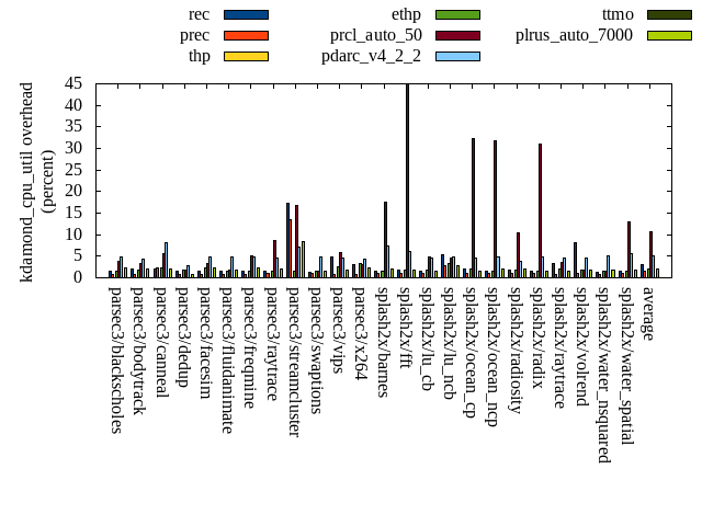 ======= Summary ======= runtime orig rec (overhead) prec (overhead) thp (overhead) ethp (overhead) prcl_auto_50 (overhead) pdarc_v4_2_2 (overhead) ttmo (overhead) plrus_auto_7000 (overhead) parsec3/blackscholes 139.376 141.805 (1.74) 140.472 (0.79) 138.605 (-0.55) 138.991 (-0.28) 143.889 (3.24) 140.612 (0.89) 139.755 (0.27) 140.965 (1.14) parsec3/bodytrack 125.574 127.748 (1.73) 126.509 (0.74) 125.816 (0.19) 126.105 (0.42) 130.330 (3.79) 128.182 (2.08) 125.923 (0.28) 127.823 (1.79) parsec3/canneal 203.900 235.522 (15.51) 240.538 (17.97) 184.057 (-9.73) 222.161 (8.96) 240.843 (18.12) 240.650 (18.02) 229.952 (12.78) 231.860 (13.71) parsec3/dedup 18.272 18.288 (0.09) 18.251 (-0.11) 17.894 (-2.07) 18.528 (1.40) 18.409 (0.75) 18.406 (0.73) 18.458 (1.02) 18.441 (0.93) parsec3/facesim 351.137 353.694 (0.73) 349.577 (-0.44) 348.369 (-0.79) 342.952 (-2.33) 365.381 (4.06) 355.668 (1.29) 352.595 (0.42) 352.754 (0.46) parsec3/fluidanimate 333.213 341.097 (2.37) 334.036 (0.25) 325.151 (-2.42) 330.825 (-0.72) 343.607 (3.12) 340.189 (2.09) 334.466 (0.38) 337.260 (1.21) parsec3/freqmine 435.730 437.210 (0.34) 437.560 (0.42) 435.024 (-0.16) 437.756 (0.46) 445.456 (2.23) 439.831 (0.94) 435.765 (0.01) 441.996 (1.44) parsec3/raytrace 182.061 191.424 (5.14) 184.537 (1.36) 189.683 (4.19) 185.240 (1.75) 198.497 (9.03) 188.003 (3.26) 183.618 (0.86) 185.685 (1.99) parsec3/streamcluster 671.739 755.763 (12.51) 668.032 (-0.55) 601.440 (-10.47) 581.530 (-13.43) 784.193 (16.74) 693.222 (3.20) 666.876 (-0.72) 719.733 (7.14) parsec3/swaptions 220.469 223.574 (1.41) 225.054 (2.08) 220.412 (-0.03) 221.711 (0.56) 221.812 (0.61) 221.991 (0.69) 221.656 (0.54) 222.709 (1.02) parsec3/vips 87.880 88.697 (0.93) 88.844 (1.10) 87.744 (-0.16) 88.607 (0.83) 89.983 (2.39) 90.974 (3.52) 94.376 (7.39) 94.535 (7.57) parsec3/x264 118.640 120.324 (1.42) 110.260 (-7.06) 115.497 (-2.65) 117.783 (-0.72) 131.511 (10.85) 108.991 (-8.13) 128.981 (8.72) 110.631 (-6.75) splash2x/barnes 130.586 132.432 (1.41) 130.700 (0.09) 117.826 (-9.77) 130.181 (-0.31) 152.714 (16.95) 135.730 (3.94) 131.534 (0.73) 134.262 (2.82) splash2x/fft 63.599 64.700 (1.73) 61.836 (-2.77) 46.843 (-26.35) 60.318 (-5.16) 78.216 (22.98) 67.587 (6.27) 69.768 (9.70) 71.431 (12.31) splash2x/lu_cb 133.530 133.663 (0.10) 133.361 (-0.13) 133.435 (-0.07) 133.418 (-0.08) 138.387 (3.64) 134.352 (0.62) 133.424 (-0.08) 135.183 (1.24) splash2x/lu_ncb 153.262 153.821 (0.36) 150.836 (-1.58) 152.145 (-0.73) 151.862 (-0.91) 155.239 (1.29) 153.413 (0.10) 153.545 (0.18) 155.670 (1.57) splash2x/ocean_cp 85.145 83.590 (-1.83) 80.564 (-5.38) 84.634 (-0.60) 82.432 (-3.19) 112.265 (31.85) 85.890 (0.87) 87.527 (2.80) 87.529 (2.80) splash2x/ocean_ncp 163.821 164.671 (0.52) 164.892 (0.65) 106.771 (-34.82) 149.397 (-8.80) 281.416 (71.78) 180.593 (10.24) 173.128 (5.68) 179.646 (9.66) splash2x/radiosity 143.185 143.277 (0.06) 142.788 (-0.28) 140.251 (-2.05) 142.630 (-0.39) 155.587 (8.66) 145.862 (1.87) 145.133 (1.36) 146.139 (2.06) splash2x/radix 53.112 51.597 (-2.85) 51.251 (-3.50) 44.616 (-16.00) 48.694 (-8.32) 69.089 (30.08) 56.133 (5.69) 53.202 (0.17) 56.076 (5.58) splash2x/raytrace 136.156 137.728 (1.15) 138.003 (1.36) 135.428 (-0.53) 135.331 (-0.61) 143.724 (5.56) 139.289 (2.30) 138.960 (2.06) 136.890 (0.54) splash2x/volrend 120.495 122.155 (1.38) 120.197 (-0.25) 119.349 (-0.95) 120.385 (-0.09) 121.450 (0.79) 121.557 (0.88) 120.359 (-0.11) 120.992 (0.41) splash2x/water_nsquared 375.149 385.291 (2.70) 379.123 (1.06) 355.049 (-5.36) 365.450 (-2.59) 421.460 (12.34) 380.362 (1.39) 388.323 (3.51) 394.682 (5.21) splash2x/water_spatial 135.789 136.555 (0.56) 135.729 (-0.04) 136.335 (0.40) 136.137 (0.26) 152.638 (12.41) 143.629 (5.77) 138.497 (2.00) 137.663 (1.38) total 4581.830 4744.620 (3.55) 4612.940 (0.68) 4362.360 (-4.79) 4468.430 (-2.47) 5096.100 (11.22) 4711.100 (2.82) 4665.830 (1.83) 4740.540 (3.46) average 190.910 197.692 (2.05) 192.206 (0.24) 181.765 (-5.06) 186.185 (-1.39) 212.338 (12.22) 196.296 (2.86) 194.410 (2.50) 197.523 (3.22) kdamond_cpu_util orig rec (overhead) prec (overhead) thp (overhead) ethp (overhead) prcl_auto_50 (overhead) pdarc_v4_2_2 (overhead) ttmo (overhead) plrus_auto_7000 (overhead) parsec3/blackscholes 0.000 1.632 (1.63) 0.881 (0.88) 0.000 (0.00) 1.452 (1.45) 3.746 (3.75) 4.878 (4.88) 0.000 (0.00) 2.239 (2.24) parsec3/bodytrack 0.000 1.916 (1.92) 0.851 (0.85) 0.000 (0.00) 1.837 (1.84) 3.323 (3.32) 4.440 (4.44) 0.000 (0.00) 2.041 (2.04) parsec3/canneal 0.000 2.119 (2.12) 2.289 (2.29) 0.000 (0.00) 2.217 (2.22) 5.468 (5.47) 8.067 (8.07) 0.000 (0.00) 2.128 (2.13) parsec3/dedup 0.000 1.428 (1.43) 0.876 (0.88) 0.000 (0.00) 1.808 (1.81) 1.871 (1.87) 2.771 (2.77) 0.000 (0.00) 0.759 (0.76) parsec3/facesim 0.000 1.568 (1.57) 0.881 (0.88) 0.000 (0.00) 2.257 (2.26) 3.357 (3.36) 4.910 (4.91) 0.000 (0.00) 2.191 (2.19) parsec3/fluidanimate 0.000 1.488 (1.49) 0.876 (0.88) 0.000 (0.00) 1.483 (1.48) 1.816 (1.82) 4.945 (4.94) 0.000 (0.00) 1.813 (1.81) parsec3/freqmine 0.000 1.444 (1.44) 0.888 (0.89) 0.000 (0.00) 1.633 (1.63) 4.983 (4.98) 4.764 (4.76) 0.000 (0.00) 2.292 (2.29) parsec3/raytrace 0.000 1.455 (1.45) 0.895 (0.90) 0.000 (0.00) 1.557 (1.56) 8.743 (8.74) 4.478 (4.48) 0.000 (0.00) 2.130 (2.13) parsec3/streamcluster 0.000 17.337 (17.34) 13.536 (13.54) 0.000 (0.00) 1.575 (1.58) 16.713 (16.71) 7.118 (7.12) 0.000 (0.00) 8.384 (8.38) parsec3/swaptions 0.000 1.325 (1.32) 0.901 (0.90) 0.000 (0.00) 1.588 (1.59) 1.481 (1.48) 4.845 (4.85) 0.000 (0.00) 1.587 (1.59) parsec3/vips 0.000 4.780 (4.78) 0.850 (0.85) 0.000 (0.00) 2.626 (2.63) 5.957 (5.96) 4.476 (4.48) 0.000 (0.00) 1.787 (1.79) parsec3/x264 0.000 3.046 (3.05) 0.886 (0.89) 0.000 (0.00) 3.387 (3.39) 3.129 (3.13) 4.304 (4.30) 0.000 (0.00) 2.176 (2.18) splash2x/barnes 0.000 1.409 (1.41) 0.940 (0.94) 0.000 (0.00) 1.599 (1.60) 17.614 (17.61) 7.335 (7.34) 0.000 (0.00) 1.922 (1.92) splash2x/fft 0.000 1.802 (1.80) 0.975 (0.98) 0.000 (0.00) 1.823 (1.82) 44.906 (44.91) 6.217 (6.22) 0.000 (0.00) 1.843 (1.84) splash2x/lu_cb 0.000 1.564 (1.56) 0.890
