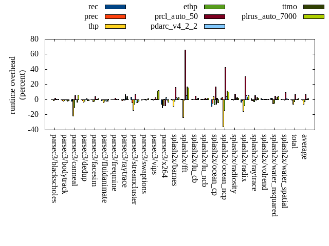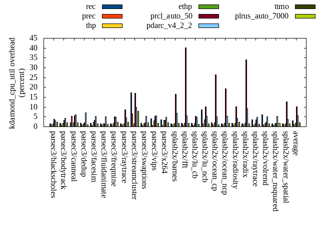 ======= Summary ======= runtime orig rec (overhead) prec (overhead) thp (overhead) ethp (overhead) prcl_auto_50 (overhead) pdarc_v4_2_2 (overhead) ttmo (overhead) plrus_auto_7000 (overhead) parsec3/blackscholes 140.156 140.425 (0.19) 139.805 (-0.25) 138.330 (-1.30) 140.079 (-0.06) 142.904 (1.96) 140.738 (0.41) 139.885 (-0.19) 140.642 (0.35) parsec3/bodytrack 126.624 126.530 (-0.07) 125.218 (-1.11) 124.344 (-1.80) 125.146 (-1.17) 126.349 (-0.22) 126.195 (-0.34) 124.133 (-1.97) 125.173 (-1.15) parsec3/canneal 218.703 213.758 (-2.26) 219.477 (0.35) 171.604 (-21.54) 196.437 (-10.18) 230.753 (5.51) 218.887 (0.08) 211.703 (-3.20) 232.222 (6.18) parsec3/dedup 18.538 18.495 (-0.23) 18.324 (-1.16) 17.911 (-3.38) 18.194 (-1.85) 18.585 (0.26) 18.788 (1.35) 18.292 (-1.33) 18.279 (-1.40) parsec3/facesim 348.112 347.941 (-0.05) 348.522 (0.12) 337.886 (-2.94) 340.829 (-2.09) 361.427 (3.82) 349.778 (0.48) 350.161 (0.59) 352.277 (1.20) parsec3/fluidanimate 338.787 334.046 (-1.40) 336.561 (-0.66) 324.275 (-4.28) 331.467 (-2.16) 337.248 (-0.45) 332.259 (-1.93) 332.412 (-1.88) 340.378 (0.47) parsec3/freqmine 437.814 438.730 (0.21) 438.967 (0.26) 437.474 (-0.08) 438.777 (0.22) 446.629 (2.01) 441.439 (0.83) 439.138 (0.30) 439.902 (0.48) parsec3/raytrace 184.648 183.764 (-0.48) 181.733 (-1.58) 185.717 (0.58) 182.809 (-1.00) 197.391 (6.90) 188.884 (2.29) 191.707 (3.82) 185.186 (0.29) parsec3/streamcluster 652.121 674.183 (3.38) 626.741 (-3.89) 558.996 (-14.28) 613.629 (-5.90) 696.452 (6.80) 629.932 (-3.40) 625.849 (-4.03) 640.593 (-1.77) parsec3/swaptions 222.419 221.143 (-0.57) 222.187 (-0.10) 221.867 (-0.25) 223.007 (0.26) 224.264 (0.83) 221.562 (-0.39) 221.844 (-0.26) 224.715 (1.03) parsec3/vips 88.432 88.820 (0.44) 89.257 (0.93) 88.085 (-0.39) 88.930 (0.56) 90.822 (2.70) 89.055 (0.70) 98.704 (11.61) 99.191 (12.17) parsec3/x264 122.184 114.959 (-5.91) 108.709 (-11.03) 112.963 (-7.55) 123.203 (0.83) 112.056 (-8.29) 125.523 (2.73) 121.237 (-0.77) 118.033 (-3.40) splash2x/barnes 130.662 131.269 (0.47) 130.155 (-0.39) 118.770 (-9.10) 128.251 (-1.84) 152.179 (16.47) 134.418 (2.87) 132.631 (1.51) 134.178 (2.69) splash2x/fft 60.880 61.201 (0.53) 61.423 (0.89) 46.571 (-23.50) 60.386 (-0.81) 100.925 (65.78) 64.366 (5.73) 71.136 (16.85) 70.549 (15.88) splash2x/lu_cb 132.672 133.075 (0.30) 133.217 (0.41) 132.614 (-0.04) 133.004 (0.25) 138.889 (4.69) 133.781 (0.84) 134.602 (1.45) 135.502 (2.13) splash2x/lu_ncb 150.659 151.443 (0.52) 151.188 (0.35) 150.688 (0.02) 152.096 (0.95) 153.532 (1.91) 151.590 (0.62) 152.877 (1.47) 153.801 (2.09) splash2x/ocean_cp 84.235 77.091 (-8.48) 80.201 (-4.79) 87.440 (3.80) 78.628 (-6.66) 98.643 (17.10) 79.164 (-6.02) 85.694 (1.73) 81.006 (-3.83) splash2x/ocean_ncp 158.067 159.703 (1.04) 162.201 (2.62) 100.848 (-36.20) 135.488 (-14.28) 225.825 (42.87) 164.114 (3.83) 176.197 (11.47) 174.555 (10.43) splash2x/radiosity 142.771 143.407 (0.45) 143.355 (0.41) 141.886 (-0.62) 142.538 (-0.16) 153.615 (7.59) 144.628 (1.30) 146.798 (2.82) 145.803 (2.12) splash2x/radix 52.589 50.747 (-3.50) 52.003 (-1.11) 44.324 (-15.72) 48.303 (-8.15) 68.756 (30.74) 55.547 (5.62) 53.976 (2.64) 55.452 (5.44) splash2x/raytrace 136.325 138.123 (1.32) 134.631 (-1.24) 134.379 (-1.43) 132.211 (-3.02) 143.878 (5.54) 135.065 (-0.92) 140.277 (2.90) 138.844 (1.85) splash2x/volrend 120.492 121.857 (1.13) 121.287 (0.66) 120.329 (-0.13) 121.075 (0.48) 121.168 (0.56) 121.091 (0.50) 120.426 (-0.05) 121.146 (0.54) splash2x/water_nsquared 378.022 386.466 (2.23) 381.890 (1.02) 358.041 (-5.29) 360.849 (-4.54) 396.589 (4.91) 381.742 (0.98) 391.250 (3.50) 392.469 (3.82) splash2x/water_spatial 134.514 135.184 (0.50) 134.335 (-0.13) 134.092 (-0.31) 133.855 (-0.49) 147.682 (9.79) 137.602 (2.30) 134.713 (0.15) 135.236 (0.54) total 4580.410 4592.350 (0.26) 4541.410 (-0.85) 4289.430 (-6.35) 4449.200 (-2.86) 4886.550 (6.68) 4586.140 (0.13) 4615.660 (0.77) 4655.130 (1.63) average 190.850 191.348 (-0.43) 189.225 (-0.81) 178.726 (-6.07) 185.383 (-2.53) 203.606 (9.57) 191.089 (0.85) 192.319 (2.05) 193.964 (2.42) kdamond_cpu_util orig rec (overhead) prec (overhead) thp (overhead) ethp (overhead) prcl_auto_50 (overhead) pdarc_v4_2_2 (overhead) ttmo (overhead) plrus_auto_7000 (overhead) parsec3/blackscholes 0.000 1.471 (1.47) 0.895 (0.90) 0.000 (0.00) 1.646 (1.65) 3.728 (3.73) 3.016 (3.02) 0.000 (0.00) 2.327 (2.33) parsec3/bodytrack 0.000 1.905 (1.91) 1.051 (1.05) 0.000 (0.00) 1.682 (1.68) 3.315 (3.32) 4.312 (4.31) 0.000 (0.00) 2.077 (2.08) parsec3/canneal 0.000 2.104 (2.10) 5.332 (5.33) 0.000 (0.00) 1.978 (1.98) 5.511 (5.51) 6.036 (6.04) 0.000 (0.00) 1.935 (1.93) parsec3/dedup 0.000 1.845 (1.85) 0.939 (0.94) 0.000 (0.00) 1.504 (1.50) 1.993 (1.99) 7.143 (7.14) 0.000 (0.00) 0.934 (0.93) parsec3/facesim 0.000 1.699 (1.70) 0.878 (0.88) 0.000 (0.00) 2.296 (2.30) 3.178 (3.18) 5.246 (5.25) 0.000 (0.00) 1.434 (1.43) parsec3/fluidanimate 0.000 1.456 (1.46) 0.907 (0.91) 0.000 (0.00) 1.470 (1.47) 1.604 (1.60) 5.160 (5.16) 0.000 (0.00) 1.180 (1.18) parsec3/freqmine 0.000 1.546 (1.55) 0.892 (0.89) 0.000 (0.00) 1.671 (1.67) 4.980 (4.98) 4.917 (4.92) 0.000 (0.00) 2.259 (2.26) parsec3/raytrace 0.000 1.589 (1.59) 0.898 (0.90) 0.000 (0.00) 1.608 (1.61) 8.537 (8.54) 4.457 (4.46) 0.000 (0.00) 2.185 (2.19) parsec3/streamcluster 0.000 17.332 (17.33) 6.626 (6.63) 0.000 (0.00) 1.555 (1.55) 17.077 (17.08) 9.918 (9.92) 0.000 (0.00) 7.926 (7.93) parsec3/swaptions 0.000 1.695 (1.69) 0.855 (0.85) 0.000 (0.00) 1.469 (1.47) 2.090 (2.09) 5.213 (5.21) 0.000 (0.00) 2.123 (2.12) parsec3/vips 0.000 4.187 (4.19) 0.861 (0.86) 0.000 (0.00) 2.925 (2.93) 5.381 (5.38) 5.509 (5.51) 0.000 (0.00) 1.902 (1.90) parsec3/x264 0.000 3.509 (3.51) 0.862 (0.86) 0.000 (0.00) 3.257 (3.26) 3.332 (3.33) 4.786 (4.79) 0.000 (0.00) 1.998 (2.00) splash2x/barnes 0.000 1.437 (1.44) 0.953 (0.95) 0.000 (0.00) 1.594 (1.59) 16.636 (16.64) 6.863 (6.86) 0.000 (0.00) 1.722 (1.72) splash2x/fft 0.000 1.810 (1.81) 0.959 (0.96) 0.000 (0.00) 1.793 (1.79) 40.253 (40.25) 5.690 (5.69) 0.000 (0.00) 1.862 (1.86) splash2x/lu_cb 0