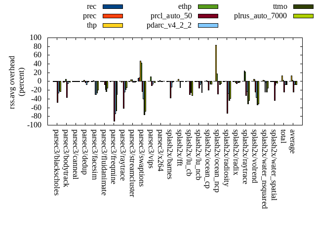 ======= Summary ======= runtime orig rec (overhead) prec (overhead) thp (overhead) ethp (overhead) prcl_auto_50 (overhead) pdarc_v4_2_2 (overhead) ttmo (overhead) plrus_auto_7000 (overhead) parsec3/blackscholes 139.417 140.900 (1.06) 140.279 (0.62) 138.944 (-0.34) 140.949 (1.10) 143.102 (2.64) 141.558 (1.54) 140.706 (0.92) 141.610 (1.57) parsec3/bodytrack 126.258 126.657 (0.32) 126.105 (-0.12) 124.645 (-1.28) 126.284 (0.02) 126.850 (0.47) 125.007 (-0.99) 124.263 (-1.58) 126.680 (0.33) parsec3/canneal 206.422 213.556 (3.46) 213.692 (3.52) 175.665 (-14.90) 217.195 (5.22) 226.102 (9.53) 218.658 (5.93) 222.937 (8.00) 222.474 (7.78) parsec3/dedup 18.162 18.302 (0.77) 18.408 (1.35) 17.960 (-1.12) 18.357 (1.07) 18.770 (3.34) 18.656 (2.72) 18.483 (1.76) 18.468 (1.68) parsec3/facesim 346.929 345.605 (-0.38) 349.943 (0.87) 339.605 (-2.11) 342.624 (-1.24) 358.101 (3.22) 353.143 (1.79) 350.200 (0.94) 354.704 (2.24) parsec3/fluidanimate 332.672 334.957 (0.69) 332.624 (-0.01) 325.286 (-2.22) 327.948 (-1.42) 336.829 (1.25) 338.655 (1.80) 334.409 (0.52) 338.894 (1.87) parsec3/freqmine 438.466 439.418 (0.22) 438.172 (-0.07) 437.293 (-0.27) 440.265 (0.41) 449.390 (2.49) 440.344 (0.43) 441.096 (0.60) 439.672 (0.27) parsec3/raytrace 180.847 185.141 (2.37) 182.285 (0.80) 186.294 (3.01) 183.834 (1.65) 195.212 (7.94) 188.495 (4.23) 183.385 (1.40) 186.571 (3.17) parsec3/streamcluster 658.271 677.962 (2.99) 673.507 (2.31) 566.633 (-13.92) 537.330 (-18.37) 695.860 (5.71) 648.207 (-1.53) 648.383 (-1.50) 663.298 (0.76) parsec3/swaptions 219.936 223.149 (1.46) 222.699 (1.26) 222.355 (1.10) 223.343 (1.55) 224.453 (2.05) 222.639 (1.23) 221.754 (0.83) 223.102 (1.44) parsec3/vips 88.293 90.317 (2.29) 88.634 (0.39) 88.845 (0.63) 89.263 (1.10) 90.628 (2.64) 90.074 (2.02) 98.471 (11.53) 99.007 (12.13) parsec3/x264 113.815 108.295 (-4.85) 122.627 (7.74) 117.809 (3.51) 115.704 (1.66) 107.492 (-5.56) 113.079 (-0.65) 114.893 (0.95) 110.363 (-3.03) splash2x/barnes 129.991 131.612 (1.25) 130.501 (0.39) 118.881 (-8.55) 127.877 (-1.63) 145.199 (11.70) 133.673 (2.83) 131.959 (1.51) 133.637 (2.80) splash2x/fft 60.669 62.211 (2.54) 61.741 (1.77) 46.380 (-23.55) 60.365 (-0.50) 243.438 (301.26) 65.160 (7.40) 72.308 (19.18) 69.868 (15.16) splash2x/lu_cb 132.434 134.249 (1.37) 132.876 (0.33) 133.210 (0.59) 133.829 (1.05) 138.492 (4.57) 134.156 (1.30) 134.828 (1.81) 135.529 (2.34) splash2x/lu_ncb 150.661 153.068 (1.60) 151.420 (0.50) 150.754 (0.06) 151.526 (0.57) 154.969 (2.86) 152.305 (1.09) 150.756 (0.06) 154.916 (2.82) splash2x/ocean_cp 81.100 80.489 (-0.75) 81.938 (1.03) 84.396 (4.06) 80.322 (-0.96) 102.088 (25.88) 80.997 (-0.13) 79.848 (-1.54) 81.499 (0.49) splash2x/ocean_ncp 156.742 161.561 (3.07) 171.071 (9.14) 102.448 (-34.64) 143.417 (-8.50) 256.588 (63.70) 171.758 (9.58) 178.840 (14.10) 177.488 (13.24) splash2x/radiosity 144.532 144.121 (-0.28) 142.960 (-1.09) 142.377 (-1.49) 143.684 (-0.59) 152.510 (5.52) 145.219 (0.48) 146.375 (1.27) 147.346 (1.95) splash2x/radix 51.278 51.687 (0.80) 52.101 (1.60) 44.866 (-12.51) 49.185 (-4.08) 67.854 (32.33) 53.801 (4.92) 57.480 (12.09) 57.843 (12.80) splash2x/raytrace 137.181 134.922 (-1.65) 133.647 (-2.58) 131.835 (-3.90) 134.574 (-1.90) 141.614 (3.23) 135.508 (-1.22) 141.299 (3.00) 137.870 (0.50) splash2x/volrend 120.634 121.614 (0.81) 121.566 (0.77) 120.179 (-0.38) 120.601 (-0.03) 121.484 (0.70) 122.074 (1.19) 120.650 (0.01) 122.213 (1.31) splash2x/water_nsquared 378.817 384.651 (1.54) 381.548 (0.72) 354.575 (-6.40) 362.315 (-4.36) 400.375 (5.69) 381.208 (0.63) 390.928 (3.20) 388.932 (2.67) splash2x/water_spatial 134.667 133.977 (-0.51) 134.375 (-0.22) 133.844 (-0.61) 134.520 (-0.11) 147.819 (9.77) 138.084 (2.54) 134.134 (-0.40) 136.486 (1.35) total 4548.200 4598.420 (1.10) 4604.730 (1.24) 4305.080 (-5.35) 4405.300 (-3.14) 5045.210 (10.93) 4612.450 (1.41) 4638.380 (1.98) 4668.480 (2.64) average 189.508 191.601 (0.84) 191.864 (1.29) 179.378 (-4.80) 183.554 (-1.18) 210.217 (20.96) 192.185 (2.05) 193.266 (3.28) 194.520 (3.65) kdamond_cpu_util orig rec (overhead) prec (overhead) thp (overhead) ethp (overhead) prcl_auto_50 (overhead) pdarc_v4_2_2 (overhead) ttmo (overhead) plrus_auto_7000 (overhead) parsec3/blackscholes 0.000 1.499 (1.50) 1.028 (1.03) 0.000 (0.00) 1.533 (1.53) 3.772 (3.77) 4.321 (4.32) 0.000 (0.00) 2.058 (2.06) parsec3/bodytrack 0.000 1.953 (1.95) 0.867 (0.87) 0.000 (0.00) 1.989 (1.99) 3.319 (3.32) 4.410 (4.41) 0.000 (0.00) 2.031 (2.03) parsec3/canneal 0.000 2.165 (2.16) 1.496 (1.50) 0.000 (0.00) 2.004 (2.00) 5.278 (5.28) 5.763 (5.76) 0.000 (0.00) 2.404 (2.40) parsec3/dedup 0.000 1.804 (1.80) 0.915 (0.91) 0.000 (0.00) 1.761 (1.76) 1.858 (1.86) 4.229 (4.23) 0.000 (0.00) 0.831 (0.83) parsec3/facesim 0.000 1.728 (1.73) 0.872 (0.87) 0.000 (0.00) 2.354 (2.35) 2.976 (2.98) 5.127 (5.13) 0.000 (0.00) 1.682 (1.68) parsec3/fluidanimate 0.000 1.713 (1.71) 0.883 (0.88) 0.000 (0.00) 1.486 (1.49) 1.571 (1.57) 4.952 (4.95) 0.000 (0.00) 1.707 (1.71) parsec3/freqmine 0.000 1.570 (1.57) 0.898 (0.90) 0.000 (0.00) 1.648 (1.65) 5.025 (5.03) 4.843 (4.84) 0.000 (0.00) 2.618 (2.62) parsec3/raytrace 0.000 1.656 (1.66) 0.904 (0.90) 0.000 (0.00) 1.558 (1.56) 8.270 (8.27) 4.413 (4.41) 0.000 (0.00) 2.110 (2.11) parsec3/streamcluster 0.000 18.000 (18.00) 6.621 (6.62) 0.000 (0.00) 1.730 (1.73) 17.969 (17.97) 6.973 (6.97) 0.000 (0.00) 7.785 (7.78) parsec3/swaptions 0.000 1.470 (1.47) 0.875 (0.88) 0.000 (0.00) 1.671 (1.67) 2.379 (2.38) 4.858 (4.86) 0.000 (0.00) 1.847 (1.85) parsec3/vips 0.000 4.834 (4.83) 0.871 (0.87) 0.000 (0.00) 2.504 (2.50) 6.131 (6.13) 4.903 (4.90) 0.000 (0.00) 1.834 (1.83) parsec3/x264 0.000 3.496 (3.50) 0.868 (0.87) 0.000 (0.00) 3.652 (3.65) 3.561 (3.56) 4.627 (4.63) 0.000 (0.00) 1.980 (1.98) splash2x/barnes 0.000 1.473 (1.47) 0.921 (0.92) 0.000 (0.00) 1.619 (1.62) 12.507 (12.51) 6.161 (6.16) 0.000 (0.00) 1.883 (1.88) splash2x/fft 0.000 1.867 (1.87) 0.950 (0.95) 0.000 (0.00) 1.853 (1.85) 45.228 (45.23) 4.984 (4.98) 0.000 (0.00) 1.810 (1.81) splash2x/lu_cb 0.000 1.730 (1.73) 0.889 (0.89)