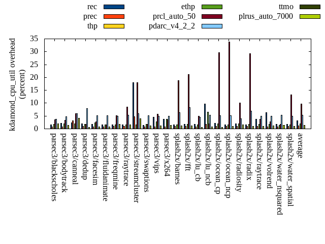 ======= Summary ======= runtime orig rec (overhead) prec (overhead) thp (overhead) ethp (overhead) prcl_auto_50 (overhead) pdarc_v4_2_2 (overhead) ttmo (overhead) plrus_auto_7000 (overhead) parsec3/blackscholes 138.646 140.509 (1.34) 139.809 (0.84) 139.982 (0.96) 141.283 (1.90) 142.922 (3.08) 140.817 (1.57) 140.428 (1.29) 141.319 (1.93) parsec3/bodytrack 126.576 126.162 (-0.33) 125.737 (-0.66) 125.583 (-0.78) 126.135 (-0.35) 126.890 (0.25) 125.268 (-1.03) 124.033 (-2.01) 125.461 (-0.88) parsec3/canneal 202.890 222.645 (9.74) 214.225 (5.59) 182.968 (-9.82) 201.112 (-0.88) 243.642 (20.09) 228.707 (12.72) 220.867 (8.86) 226.499 (11.64) parsec3/dedup 18.019 18.645 (3.47) 18.097 (0.43) 17.671 (-1.93) 18.324 (1.69) 18.306 (1.59) 18.786 (4.26) 18.533 (2.85) 18.364 (1.91) parsec3/facesim 340.572 345.681 (1.50) 349.996 (2.77) 343.246 (0.79) 347.202 (1.95) 358.854 (5.37) 353.607 (3.83) 347.772 (2.11) 354.228 (4.01) parsec3/fluidanimate 338.533 334.275 (-1.26) 335.015 (-1.04) 325.059 (-3.98) 330.880 (-2.26) 343.527 (1.48) 335.138 (-1.00) 335.025 (-1.04) 340.028 (0.44) parsec3/freqmine 435.300 439.004 (0.85) 439.997 (1.08) 442.478 (1.65) 439.421 (0.95) 448.866 (3.12) 440.836 (1.27) 439.219 (0.90) 439.415 (0.95) parsec3/raytrace 182.317 183.732 (0.78) 187.238 (2.70) 186.242 (2.15) 186.048 (2.05) 200.014 (9.71) 189.110 (3.73) 185.139 (1.55) 184.379 (1.13) parsec3/streamcluster 652.383 668.732 (2.51) 639.561 (-1.97) 527.779 (-19.10) 577.467 (-11.48) 752.793 (15.39) 637.109 (-2.34) 663.568 (1.71) 675.804 (3.59) parsec3/swaptions 222.853 222.983 (0.06) 223.727 (0.39) 222.193 (-0.30) 223.100 (0.11) 225.395 (1.14) 224.180 (0.60) 222.847 (-0.00) 223.648 (0.36) parsec3/vips 88.072 89.556 (1.69) 90.399 (2.64) 88.182 (0.13) 88.634 (0.64) 90.929 (3.24) 91.266 (3.63) 98.698 (12.07) 99.622 (13.11) parsec3/x264 112.307 116.254 (3.51) 112.048 (-0.23) 116.476 (3.71) 111.336 (-0.87) 125.134 (11.42) 117.081 (4.25) 113.130 (0.73) 109.478 (-2.52) splash2x/barnes 130.287 130.961 (0.52) 130.672 (0.30) 118.204 (-9.27) 128.194 (-1.61) 155.786 (19.57) 134.329 (3.10) 131.806 (1.17) 133.158 (2.20) splash2x/fft 60.659 64.029 (5.56) 62.649 (3.28) 46.496 (-23.35) 60.643 (-0.03) 66.526 (9.67) 66.554 (9.72) 69.003 (13.76) 68.745 (13.33) splash2x/lu_cb 134.160 133.885 (-0.20) 133.497 (-0.49) 133.175 (-0.73) 132.982 (-0.88) 139.515 (3.99) 134.968 (0.60) 133.455 (-0.53) 134.939 (0.58) splash2x/lu_ncb 150.331 153.261 (1.95) 151.172 (0.56) 151.376 (0.69) 151.959 (1.08) 154.111 (2.51) 153.950 (2.41) 151.465 (0.75) 152.455 (1.41) splash2x/ocean_cp 78.309 78.389 (0.10) 81.229 (3.73) 83.121 (6.15) 79.616 (1.67) 104.948 (34.02) 79.681 (1.75) 87.249 (11.42) 85.531 (9.22) splash2x/ocean_ncp 157.074 174.754 (11.26) 163.692 (4.21) 103.088 (-34.37) 143.908 (-8.38) 266.494 (69.66) 172.180 (9.62) 176.961 (12.66) 178.479 (13.63) splash2x/radiosity 143.633 143.989 (0.25) 143.621 (-0.01) 142.143 (-1.04) 143.764 (0.09) 153.922 (7.16) 145.271 (1.14) 144.897 (0.88) 146.635 (2.09) splash2x/radix 50.495 50.650 (0.31) 53.321 (5.60) 45.661 (-9.57) 48.261 (-4.42) 68.106 (34.88) 54.638 (8.21) 57.993 (14.85) 55.342 (9.60) splash2x/raytrace 135.063 134.990 (-0.05) 137.288 (1.65) 135.097 (0.03) 134.029 (-0.77) 142.530 (5.53) 135.750 (0.51) 139.705 (3.44) 140.288 (3.87) splash2x/volrend 120.864 121.882 (0.84) 121.817 (0.79) 121.003 (0.11) 120.619 (-0.20) 121.798 (0.77) 121.673 (0.67) 121.228 (0.30) 122.049 (0.98) splash2x/water_nsquared 375.691 377.732 (0.54) 382.687 (1.86) 354.958 (-5.52) 363.933 (-3.13) 418.581 (11.42) 383.337 (2.04) 396.339 (5.50) 395.042 (5.15) splash2x/water_spatial 133.842 134.308 (0.35) 134.555 (0.53) 134.163 (0.24) 135.061 (0.91) 149.808 (11.93) 136.674 (2.12) 134.841 (0.75) 136.008 (1.62) total 4528.860 4607.000 (1.73) 4572.070 (0.95) 4286.340 (-5.35) 4433.910 (-2.10) 5019.400 (10.83) 4620.910 (2.03) 4654.210 (2.77) 4686.920 (3.49) average 188.702 191.958 (1.89) 190.503 (1.44) 178.597 (-4.30) 184.746 (-0.93) 209.142 (11.96) 192.538 (3.06) 193.925 (3.91) 195.288 (4.14) kdamond_cpu_util orig rec (overhead) prec (overhead) thp (overhead) ethp (overhead) prcl_auto_50 (overhead) pdarc_v4_2_2 (overhead) ttmo (overhead) plrus_auto_7000 (overhead) parsec3/blackscholes 0.000 1.648 (1.65) 0.876 (0.88) 0.000 (0.00) 1.695 (1.70) 3.647 (3.65) 3.747 (3.75) 0.000 (0.00) 1.996 (2.00) parsec3/bodytrack 0.000 2.149 (2.15) 0.858 (0.86) 0.000 (0.00) 1.956 (1.96) 3.352 (3.35) 4.780 (4.78) 0.000 (0.00) 1.436 (1.44) parsec3/canneal 0.000 2.286 (2.29) 3.237 (3.24) 0.000 (0.00) 1.942 (1.94) 5.918 (5.92) 5.914 (5.91) 0.000 (0.00) 4.213 (4.21) parsec3/dedup 0.000 2.010 (2.01) 0.894 (0.89) 0.000 (0.00) 1.717 (1.72) 1.789 (1.79) 7.971 (7.97) 0.000 (0.00) 0.574 (0.57) parsec3/facesim 0.000 1.706 (1.71) 0.871 (0.87) 0.000 (0.00) 2.350 (2.35) 2.759 (2.76) 5.185 (5.19) 0.000 (0.00) 0.789 (0.79) parsec3/fluidanimate 0.000 1.621 (1.62) 0.883 (0.88) 0.000 (0.00) 1.589 (1.59) 1.668 (1.67) 5.133 (5.13) 0.000 (0.00) 0.745 (0.75) parsec3/freqmine 0.000 1.540 (1.54) 0.894 (0.89) 0.000 (0.00) 1.587 (1.59) 5.043 (5.04) 4.965 (4.97) 0.000 (0.00) 1.702 (1.70) parsec3/raytrace 0.000 1.597 (1.60) 0.906 (0.91) 0.000 (0.00) 1.653 (1.65) 8.564 (8.56) 5.322 (5.32) 0.000 (0.00) 1.499 (1.50) parsec3/streamcluster 0.000 17.976 (17.98) 4.761 (4.76) 0.000 (0.00) 1.610 (1.61) 18.054 (18.05) 5.900 (5.90) 0.000 (0.00) 3.883 (3.88) parsec3/swaptions 0.000 1.394 (1.39) 0.870 (0.87) 0.000 (0.00) 1.737 (1.74) 1.780 (1.78) 5.087 (5.09) 0.000 (0.00) 1.109 (1.11) parsec3/vips 0.000 4.490 (4.49) 0.867 (0.87) 0.000 (0.00) 2.727 (2.73) 5.737 (5.74) 4.905 (4.91) 0.000 (0.00) 1.253 (1.25) parsec3/x264 0.000 3.771 (3.77) 0.876 (0.88) 0.000 (0.00) 3.684 (3.68) 3.544 (3.54) 4.898 (4.90) 0.000 (0.00) 1.304 (1.30) splash2x/barnes 0.000 1.574 (1.57) 0.936 (0.94) 0.000 (0.00) 1.639 (1.64) 18.827 (18.83) 6.314 (6.31) 0.000 (0.00) 1.269 (1.27) splash2x/fft 0.000 1.807 (1.81) 0.971 (0.97) 0.000 (0.00) 1.739 (1.74) 21.097 (21.10) 8.296 (8.30) 0.000 (0.00) 1.240 (1.24) splash2x/lu_cb 0.000 1.768 (1.77) 0.864 (0.86) 0.00