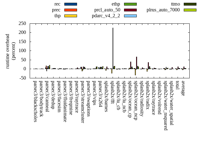 ======= Summary ======= runtime orig rec (overhead) prec (overhead) thp (overhead) ethp (overhead) prcl_auto_50 (overhead) pdarc_v4_2_2 (overhead) ttmo (overhead) plrus_auto_7000 (overhead) parsec3/blackscholes 138.932 139.588 (0.47) 140.501 (1.13) 139.108 (0.13) 140.547 (1.16) 143.358 (3.19) 141.265 (1.68) 140.498 (1.13) 140.822 (1.36) parsec3/bodytrack 124.407 126.338 (1.55) 125.315 (0.73) 124.663 (0.21) 125.712 (1.05) 126.553 (1.72) 126.194 (1.44) 124.697 (0.23) 126.445 (1.64) parsec3/canneal 196.610 210.348 (6.99) 230.275 (17.12) 175.284 (-10.85) 205.754 (4.65) 223.952 (13.91) 227.492 (15.71) 216.765 (10.25) 238.459 (21.29) parsec3/dedup 17.976 18.256 (1.56) 18.149 (0.96) 18.391 (2.31) 18.405 (2.38) 18.827 (4.73) 18.854 (4.88) 18.595 (3.44) 18.375 (2.22) parsec3/facesim 343.957 349.230 (1.53) 345.064 (0.32) 343.772 (-0.05) 347.841 (1.13) 360.481 (4.80) 351.385 (2.16) 352.454 (2.47) 352.087 (2.36) parsec3/fluidanimate 332.476 332.004 (-0.14) 339.564 (2.13) 328.375 (-1.23) 329.290 (-0.96) 339.199 (2.02) 341.767 (2.79) 335.930 (1.04) 340.096 (2.29) parsec3/freqmine 437.046 439.110 (0.47) 441.203 (0.95) 440.744 (0.85) 441.994 (1.13) 449.922 (2.95) 439.266 (0.51) 442.518 (1.25) 442.788 (1.31) parsec3/raytrace 182.526 185.016 (1.36) 183.737 (0.66) 185.972 (1.89) 184.867 (1.28) 197.761 (8.35) 186.698 (2.29) 184.681 (1.18) 187.420 (2.68) parsec3/streamcluster 628.780 697.209 (10.88) 694.666 (10.48) 556.075 (-11.56) 587.254 (-6.60) 705.638 (12.22) 685.035 (8.95) 702.424 (11.71) 657.334 (4.54) parsec3/swaptions 223.349 224.130 (0.35) 224.069 (0.32) 221.979 (-0.61) 224.991 (0.73) 224.169 (0.37) 223.664 (0.14) 223.222 (-0.06) 224.288 (0.42) parsec3/vips 87.582 88.131 (0.63) 90.019 (2.78) 88.884 (1.49) 89.623 (2.33) 90.494 (3.33) 89.911 (2.66) 98.826 (12.84) 98.906 (12.93) parsec3/x264 110.494 121.708 (10.15) 111.653 (1.05) 114.825 (3.92) 123.299 (11.59) 122.962 (11.28) 121.890 (10.31) 117.315 (6.17) 126.214 (14.23) splash2x/barnes 129.300 132.552 (2.52) 131.070 (1.37) 119.468 (-7.60) 128.596 (-0.54) 146.071 (12.97) 132.400 (2.40) 131.377 (1.61) 133.341 (3.13) splash2x/fft 61.043 62.500 (2.39) 62.253 (1.98) 46.881 (-23.20) 61.808 (1.25) 199.590 (226.97) 64.403 (5.50) 70.207 (15.01) 71.049 (16.39) splash2x/lu_cb 134.616 134.412 (-0.15) 133.632 (-0.73) 133.333 (-0.95) 134.663 (0.04) 138.709 (3.04) 134.256 (-0.27) 134.188 (-0.32) 135.290 (0.50) splash2x/lu_ncb 149.789 152.744 (1.97) 151.700 (1.28) 151.256 (0.98) 153.059 (2.18) 153.871 (2.72) 153.504 (2.48) 152.171 (1.59) 154.250 (2.98) splash2x/ocean_cp 79.710 80.695 (1.23) 78.575 (-1.42) 83.921 (5.28) 83.648 (4.94) 111.513 (39.90) 86.449 (8.45) 89.318 (12.05) 84.046 (5.44) splash2x/ocean_ncp 157.151 162.602 (3.47) 164.316 (4.56) 105.466 (-32.89) 154.330 (-1.80) 261.274 (66.26) 175.616 (11.75) 181.932 (15.77) 175.610 (11.75) splash2x/radiosity 142.653 143.584 (0.65) 142.794 (0.10) 141.783 (-0.61) 144.002 (0.95) 152.977 (7.24) 147.385 (3.32) 146.187 (2.48) 147.317 (3.27) splash2x/radix 50.941 52.624 (3.30) 51.704 (1.50) 44.290 (-13.06) 49.983 (-1.88) 69.406 (36.25) 55.539 (9.03) 58.050 (13.96) 54.317 (6.63) splash2x/raytrace 134.422 138.738 (3.21) 134.326 (-0.07) 132.731 (-1.26) 136.266 (1.37) 143.337 (6.63) 138.182 (2.80) 139.985 (4.14) 138.307 (2.89) splash2x/volrend 120.357 121.910 (1.29) 121.016 (0.55) 120.175 (-0.15) 120.680 (0.27) 121.346 (0.82) 121.904 (1.29) 121.553 (0.99) 122.027 (1.39) splash2x/water_nsquared 375.470 388.540 (3.48) 389.064 (3.62) 356.393 (-5.08) 363.398 (-3.22) 414.448 (10.38) 380.037 (1.22) 392.664 (4.58) 397.977 (5.99) splash2x/water_spatial 135.590 133.595 (-1.47) 133.761 (-1.35) 133.473 (-1.56) 134.024 (-1.15) 147.328 (8.66) 136.989 (1.03) 135.698 (0.08) 136.832 (0.92) total 4495.180 4635.550 (3.12) 4638.420 (3.19) 4307.230 (-4.18) 4484.030 (-0.25) 5063.190 (12.64) 4680.090 (4.11) 4711.270 (4.81) 4703.610 (4.64) average 187.299 193.148 (2.40) 193.268 (2.08) 179.468 (-3.90) 186.835 (0.93) 210.966 (20.45) 195.004 (4.27) 196.303 (5.15) 195.984 (5.36) kdamond_cpu_util orig rec (overhead) prec (overhead) thp (overhead) ethp (overhead) prcl_auto_50 (overhead) pdarc_v4_2_2 (overhead) ttmo (overhead) plrus_auto_7000 (overhead) parsec3/blackscholes 0.000 1.601 (1.60) 0.897 (0.90) 0.000 (0.00) 1.851 (1.85) 4.127 (4.13) 4.088 (4.09) 0.000 (0.00) 2.174 (2.17) parsec3/bodytrack 0.000 2.247 (2.25) 0.881 (0.88) 0.000 (0.00) 1.860 (1.86) 3.324 (3.32) 4.677 (4.68) 0.000 (0.00) 2.043 (2.04) parsec3/canneal 0.000 2.263 (2.26) 1.548 (1.55) 0.000 (0.00) 2.149 (2.15) 5.335 (5.34) 6.006 (6.01) 0.000 (0.00) 2.914 (2.91) parsec3/dedup 0.000 1.850 (1.85) 0.906 (0.91) 0.000 (0.00) 1.881 (1.88) 1.953 (1.95) 5.744 (5.74) 0.000 (0.00) 0.894 (0.89) parsec3/facesim 0.000 1.697 (1.70) 0.895 (0.89) 0.000 (0.00) 2.476 (2.48) 3.220 (3.22) 4.991 (4.99) 0.000 (0.00) 2.097 (2.10) parsec3/fluidanimate 0.000 1.522 (1.52) 0.893 (0.89) 0.000 (0.00) 1.527 (1.53) 1.659 (1.66) 5.297 (5.30) 0.000 (0.00) 1.642 (1.64) parsec3/freqmine 0.000 1.539 (1.54) 0.943 (0.94) 0.000 (0.00) 1.625 (1.63) 5.108 (5.11) 4.929 (4.93) 0.000 (0.00) 2.216 (2.22) parsec3/raytrace 0.000 1.577 (1.58) 0.888 (0.89) 0.000 (0.00) 1.602 (1.60) 8.335 (8.34) 4.116 (4.12) 0.000 (0.00) 1.497 (1.50) parsec3/streamcluster 0.000 17.762 (17.76) 11.543 (11.54) 0.000 (0.00) 1.770 (1.77) 17.198 (17.20) 7.919 (7.92) 0.000 (0.00) 3.111 (3.11) parsec3/swaptions 0.000 1.650 (1.65) 0.909 (0.91) 0.000 (0.00) 1.691 (1.69) 1.684 (1.68) 5.055 (5.05) 0.000 (0.00) 1.273 (1.27) parsec3/vips 0.000 4.410 (4.41) 0.865 (0.87) 0.000 (0.00) 2.130 (2.13) 5.789 (5.79) 5.051 (5.05) 0.000 (0.00) 1.281 (1.28) parsec3/x264 0.000 3.342 (3.34) 0.861 (0.86) 0.000 (0.00) 3.619 (3.62) 3.558 (3.56) 4.978 (4.98) 0.000 (0.00) 1.426 (1.43) splash2x/barnes 0.000 1.457 (1.46) 0.967 (0.97) 0.000 (0.00) 1.615 (1.62) 14.543 (14.54) 6.158 (6.16) 0.000 (0.00) 1.157 (1.16) splash2x/fft 0.000 1.891 (1.89) 0.991 (0.99) 0.000 (0.00) 1.795 (1.80) 50.049 (50.05) 4.175 (4.17) 0.000 (0.00) 1.256 (1.26) splash2x/lu_cb 0.000 1.610 (1.61) 0.894 (0.89) 0.00
