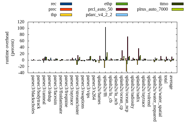 ======= Summary ======= runtime orig rec (overhead) prec (overhead) thp (overhead) ethp (overhead) prcl_auto_50 (overhead) pdarc_v4_2_2 (overhead) ttmo (overhead) plrus_auto_7000 (overhead) parsec3/blackscholes 140.729 141.369 (0.46) 140.280 (-0.32) 139.362 (-0.97) 140.930 (0.14) 144.832 (2.92) 140.725 (-0.00) 141.011 (0.20) 140.789 (0.04) parsec3/bodytrack 126.259 126.444 (0.15) 126.471 (0.17) 124.439 (-1.44) 125.897 (-0.29) 127.611 (1.07) 126.238 (-0.02) 124.830 (-1.13) 126.291 (0.02) parsec3/canneal 205.468 209.919 (2.17) 215.821 (5.04) 190.176 (-7.44) 206.603 (0.55) 221.442 (7.77) 227.902 (10.92) 226.039 (10.01) 225.787 (9.89) parsec3/dedup 18.191 18.633 (2.43) 18.547 (1.96) 17.885 (-1.68) 18.204 (0.07) 18.477 (1.57) 19.450 (6.92) 18.376 (1.02) 18.334 (0.79) parsec3/facesim 341.312 344.206 (0.85) 346.322 (1.47) 335.966 (-1.57) 346.963 (1.66) 358.184 (4.94) 349.207 (2.31) 355.843 (4.26) 354.168 (3.77) parsec3/fluidanimate 332.645 331.393 (-0.38) 331.359 (-0.39) 325.505 (-2.15) 329.190 (-1.04) 341.744 (2.74) 340.456 (2.35) 340.478 (2.35) 337.859 (1.57) parsec3/freqmine 439.866 440.683 (0.19) 438.578 (-0.29) 439.560 (-0.07) 438.492 (-0.31) 447.221 (1.67) 441.858 (0.45) 439.493 (-0.08) 445.500 (1.28) parsec3/raytrace 183.390 184.259 (0.47) 186.130 (1.49) 186.735 (1.82) 184.083 (0.38) 196.807 (7.32) 186.787 (1.85) 185.842 (1.34) 186.222 (1.54) parsec3/streamcluster 634.061 667.161 (5.22) 640.942 (1.09) 548.094 (-13.56) 548.355 (-13.52) 727.821 (14.79) 615.780 (-2.88) 660.161 (4.12) 697.465 (10.00) parsec3/swaptions 227.137 222.472 (-2.05) 222.745 (-1.93) 221.721 (-2.38) 225.797 (-0.59) 225.926 (-0.53) 221.970 (-2.27) 221.184 (-2.62) 226.262 (-0.39) parsec3/vips 88.449 90.271 (2.06) 89.683 (1.39) 88.232 (-0.25) 89.586 (1.29) 90.366 (2.17) 89.842 (1.57) 98.818 (11.72) 99.203 (12.16) parsec3/x264 116.482 119.582 (2.66) 115.551 (-0.80) 112.869 (-3.10) 118.803 (1.99) 118.928 (2.10) 119.625 (2.70) 109.640 (-5.87) 110.803 (-4.88) splash2x/barnes 130.795 131.414 (0.47) 130.995 (0.15) 119.651 (-8.52) 129.753 (-0.80) 148.400 (13.46) 132.283 (1.14) 132.854 (1.57) 132.785 (1.52) splash2x/fft 60.810 62.926 (3.48) 62.092 (2.11) 46.617 (-23.34) 59.391 (-2.33) 124.122 (104.12) 64.813 (6.58) 67.010 (10.20) 75.687 (24.46) splash2x/lu_cb 132.610 133.648 (0.78) 133.264 (0.49) 133.360 (0.57) 133.190 (0.44) 139.779 (5.41) 134.867 (1.70) 134.173 (1.18) 135.194 (1.95) splash2x/lu_ncb 150.708 152.670 (1.30) 150.508 (-0.13) 150.984 (0.18) 153.808 (2.06) 153.236 (1.68) 152.628 (1.27) 154.905 (2.79) 153.459 (1.83) splash2x/ocean_cp 79.768 79.929 (0.20) 79.106 (-0.83) 84.509 (5.94) 79.578 (-0.24) 103.752 (30.07) 80.401 (0.79) 81.549 (2.23) 90.042 (12.88) splash2x/ocean_ncp 159.144 158.732 (-0.26) 169.053 (6.23) 103.263 (-35.11) 140.680 (-11.60) 276.815 (73.94) 170.640 (7.22) 173.942 (9.30) 179.271 (12.65) splash2x/radiosity 143.113 142.895 (-0.15) 144.360 (0.87) 141.899 (-0.85) 143.790 (0.47) 153.189 (7.04) 145.537 (1.69) 147.764 (3.25) 147.432 (3.02) splash2x/radix 50.615 52.016 (2.77) 52.166 (3.06) 43.764 (-13.54) 51.507 (1.76) 69.403 (37.12) 52.850 (4.42) 56.515 (11.66) 58.295 (15.17) splash2x/raytrace 135.006 136.576 (1.16) 135.039 (0.02) 132.352 (-1.97) 135.434 (0.32) 141.253 (4.63) 137.228 (1.65) 140.374 (3.98) 138.299 (2.44) splash2x/volrend 120.420 121.306 (0.74) 121.750 (1.11) 120.566 (0.12) 119.721 (-0.58) 121.058 (0.53) 120.361 (-0.05) 121.317 (0.74) 121.689 (1.05) splash2x/water_nsquared 376.994 381.149 (1.10) 383.752 (1.79) 355.696 (-5.65) 363.231 (-3.65) 405.680 (7.61) 376.978 (-0.00) 390.560 (3.60) 395.086 (4.80) splash2x/water_spatial 133.893 134.338 (0.33) 135.231 (1.00) 135.206 (0.98) 135.257 (1.02) 150.684 (12.54) 138.254 (3.26) 134.999 (0.83) 136.969 (2.30) total 4527.860 4583.990 (1.24) 4569.730 (0.92) 4298.400 (-5.07) 4418.240 (-2.42) 5006.730 (10.58) 4586.680 (1.30) 4657.650 (2.87) 4732.890 (4.53) average 188.661 191.000 (1.09) 190.405 (1.03) 179.100 (-4.75) 184.093 (-0.95) 208.614 (14.44) 191.112 (2.23) 194.069 (3.19) 197.204 (4.99) kdamond_cpu_util orig rec (overhead) prec (overhead) thp (overhead) ethp (overhead) prcl_auto_50 (overhead) pdarc_v4_2_2 (overhead) ttmo (overhead) plrus_auto_7000 (overhead) parsec3/blackscholes 0.000 1.771 (1.77) 0.878 (0.88) 0.000 (0.00) 1.497 (1.50) 4.179 (4.18) 2.882 (2.88) 0.000 (0.00) 2.231 (2.23) parsec3/bodytrack 0.000 2.033 (2.03) 0.841 (0.84) 0.000 (0.00) 2.033 (2.03) 3.423 (3.42) 4.430 (4.43) 0.000 (0.00) 2.068 (2.07) parsec3/canneal 0.000 2.202 (2.20) 2.391 (2.39) 0.000 (0.00) 2.226 (2.23) 5.065 (5.07) 5.942 (5.94) 0.000 (0.00) 1.556 (1.56) parsec3/dedup 0.000 1.780 (1.78) 0.869 (0.87) 0.000 (0.00) 1.568 (1.57) 1.644 (1.64) 8.172 (8.17) 0.000 (0.00) 0.847 (0.85) parsec3/facesim 0.000 1.635 (1.63) 0.894 (0.89) 0.000 (0.00) 2.524 (2.52) 2.765 (2.77) 5.091 (5.09) 0.000 (0.00) 1.781 (1.78) parsec3/fluidanimate 0.000 1.665 (1.66) 0.912 (0.91) 0.000 (0.00) 1.484 (1.48) 1.694 (1.69) 5.063 (5.06) 0.000 (0.00) 1.554 (1.55) parsec3/freqmine 0.000 1.622 (1.62) 0.901 (0.90) 0.000 (0.00) 1.635 (1.63) 5.135 (5.14) 4.766 (4.77) 0.000 (0.00) 2.197 (2.20) parsec3/raytrace 0.000 1.596 (1.60) 0.909 (0.91) 0.000 (0.00) 1.633 (1.63) 8.967 (8.97) 3.962 (3.96) 0.000 (0.00) 2.005 (2.00) parsec3/streamcluster 0.000 14.949 (14.95) 7.760 (7.76) 0.000 (0.00) 1.672 (1.67) 17.952 (17.95) 9.859 (9.86) 0.000 (0.00) 4.750 (4.75) parsec3/swaptions 0.000 1.391 (1.39) 0.868 (0.87) 0.000 (0.00) 3.107 (3.11) 2.249 (2.25) 4.737 (4.74) 0.000 (0.00) 1.877 (1.88) parsec3/vips 0.000 3.849 (3.85) 0.930 (0.93) 0.000 (0.00) 3.193 (3.19) 5.941 (5.94) 4.582 (4.58) 0.000 (0.00) 1.895 (1.89) parsec3/x264 0.000 3.320 (3.32) 0.848 (0.85) 0.000 (0.00) 3.811 (3.81) 3.695 (3.69) 4.585 (4.59) 0.000 (0.00) 1.951 (1.95) splash2x/barnes 0.000 1.401 (1.40) 1.024 (1.02) 0.000 (0.00) 1.597 (1.60) 14.595 (14.59) 5.369 (5.37) 0.000 (0.00) 1.644 (1.64) splash2x/fft 0.000 1.889 (1.89) 0.988 (0.99) 0.000 (0.00) 1.853 (1.85) 42.774 (42.77) 7.653 (7.65) 0.000 (0.00) 1.884 (1.88) splash2x/lu_cb 0.000 1.547 (1.55) 0.883 (