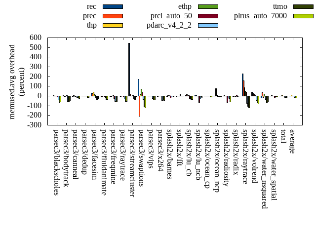 ======= Summary ======= runtime orig rec (overhead) prec (overhead) thp (overhead) ethp (overhead) prcl_auto_50 (overhead) pdarc_v4_2_2 (overhead) ttmo (overhead) plrus_auto_7000 (overhead) parsec3/blackscholes 139.346 140.065 (0.52) 140.986 (1.18) 139.582 (0.17) 141.426 (1.49) 143.278 (2.82) 140.590 (0.89) 140.571 (0.88) 141.390 (1.47) parsec3/bodytrack 123.662 125.067 (1.14) 123.715 (0.04) 122.892 (-0.62) 126.756 (2.50) 126.468 (2.27) 124.605 (0.76) 125.540 (1.52) 124.856 (0.97) parsec3/canneal 193.380 203.889 (5.43) 218.631 (13.06) 165.319 (-14.51) 223.439 (15.54) 220.959 (14.26) 208.866 (8.01) 226.266 (17.01) 235.882 (21.98) parsec3/dedup 17.755 18.065 (1.75) 18.271 (2.91) 17.901 (0.83) 18.303 (3.09) 18.364 (3.43) 18.374 (3.49) 18.418 (3.74) 18.011 (1.44) parsec3/facesim 344.976 344.458 (-0.15) 342.410 (-0.74) 337.203 (-2.25) 340.186 (-1.39) 361.189 (4.70) 353.881 (2.58) 361.618 (4.82) 349.458 (1.30) parsec3/fluidanimate 329.314 337.047 (2.35) 330.474 (0.35) 323.194 (-1.86) 327.108 (-0.67) 340.885 (3.51) 335.402 (1.85) 335.150 (1.77) 336.142 (2.07) parsec3/freqmine 434.943 437.545 (0.60) 437.966 (0.70) 437.666 (0.63) 436.689 (0.40) 449.256 (3.29) 434.098 (-0.19) 439.044 (0.94) 441.339 (1.47) parsec3/raytrace 181.858 183.382 (0.84) 184.032 (1.20) 185.698 (2.11) 187.266 (2.97) 195.487 (7.49) 189.579 (4.25) 189.717 (4.32) 185.905 (2.23) parsec3/streamcluster 600.597 628.600 (4.66) 645.459 (7.47) 543.132 (-9.57) 533.759 (-11.13) 727.825 (21.18) 697.683 (16.16) 566.258 (-5.72) 665.422 (10.79) parsec3/swaptions 219.448 220.960 (0.69) 221.965 (1.15) 221.983 (1.16) 222.242 (1.27) 223.695 (1.94) 221.860 (1.10) 225.308 (2.67) 223.771 (1.97) parsec3/vips 87.516 89.088 (1.80) 89.464 (2.23) 87.966 (0.51) 88.353 (0.96) 89.298 (2.04) 89.345 (2.09) 97.841 (11.80) 98.411 (12.45) parsec3/x264 128.276 113.938 (-11.18) 106.357 (-17.09) 106.468 (-17.00) 113.079 (-11.85) 108.294 (-15.58) 108.549 (-15.38) 125.875 (-1.87) 118.974 (-7.25) splash2x/barnes 129.488 131.817 (1.80) 131.171 (1.30) 119.723 (-7.54) 128.923 (-0.44) 150.703 (16.38) 133.183 (2.85) 130.605 (0.86) 132.285 (2.16) splash2x/fft 59.955 60.956 (1.67) 60.699 (1.24) 46.718 (-22.08) 58.962 (-1.66) 153.731 (156.41) 63.346 (5.66) 70.166 (17.03) 76.403 (27.43) splash2x/lu_cb 132.649 132.767 (0.09) 133.618 (0.73) 133.450 (0.60) 133.623 (0.73) 138.285 (4.25) 133.634 (0.74) 135.255 (1.96) 134.931 (1.72) splash2x/lu_ncb 150.914 152.351 (0.95) 151.405 (0.33) 151.534 (0.41) 151.915 (0.66) 151.152 (0.16) 151.769 (0.57) 150.503 (-0.27) 151.337 (0.28) splash2x/ocean_cp 77.740 75.913 (-2.35) 77.980 (0.31) 82.303 (5.87) 87.297 (12.29) 101.450 (30.50) 78.844 (1.42) 79.897 (2.77) 80.077 (3.01) splash2x/ocean_ncp 152.787 158.158 (3.52) 161.456 (5.67) 102.645 (-32.82) 152.441 (-0.23) 213.558 (39.78) 173.447 (13.52) 169.568 (10.98) 194.134 (27.06) splash2x/radiosity 143.024 145.049 (1.42) 142.588 (-0.31) 141.341 (-1.18) 143.459 (0.30) 150.945 (5.54) 145.281 (1.58) 145.076 (1.43) 146.808 (2.65) splash2x/radix 51.441 51.186 (-0.50) 50.796 (-1.25) 43.714 (-15.02) 49.357 (-4.05) 65.108 (26.57) 53.107 (3.24) 54.497 (5.94) 57.279 (11.35) splash2x/raytrace 134.184 135.542 (1.01) 135.293 (0.83) 131.761 (-1.81) 131.932 (-1.68) 139.237 (3.77) 134.458 (0.20) 139.559 (4.01) 136.190 (1.49) splash2x/volrend 120.696 122.165 (1.22) 121.012 (0.26) 118.980 (-1.42) 119.626 (-0.89) 121.584 (0.74) 121.316 (0.51) 121.886 (0.99) 122.302 (1.33) splash2x/water_nsquared 372.547 381.343 (2.36) 377.466 (1.32) 353.093 (-5.22) 362.260 (-2.76) 390.215 (4.74) 378.302 (1.54) 387.714 (4.07) 388.912 (4.39) splash2x/water_spatial 133.995 133.341 (-0.49) 133.081 (-0.68) 132.783 (-0.90) 133.271 (-0.54) 144.567 (7.89) 138.375 (3.27) 135.761 (1.32) 135.477 (1.11) total 4460.500 4522.690 (1.39) 4536.300 (1.70) 4247.040 (-4.79) 4411.680 (-1.09) 4925.540 (10.43) 4627.900 (3.75) 4572.110 (2.50) 4695.690 (5.27) average 185.854 188.445 (0.80) 189.013 (0.92) 176.960 (-5.06) 183.820 (0.21) 205.231 (14.50) 192.829 (2.53) 190.505 (3.87) 195.654 (5.62) kdamond_cpu_util orig rec (overhead) prec (overhead) thp (overhead) ethp (overhead) prcl_auto_50 (overhead) pdarc_v4_2_2 (overhead) ttmo (overhead) plrus_auto_7000 (overhead) parsec3/blackscholes 0.000 1.632 (1.63) 0.897 (0.90) 0.000 (0.00) 1.682 (1.68) 4.267 (4.27) 4.706 (4.71) 0.000 (0.00) 2.421 (2.42) parsec3/bodytrack 0.000 1.852 (1.85) 0.882 (0.88) 0.000 (0.00) 1.802 (1.80) 3.268 (3.27) 4.645 (4.65) 0.000 (0.00) 2.094 (2.09) parsec3/canneal 0.000 2.215 (2.22) 1.788 (1.79) 0.000 (0.00) 1.997 (2.00) 5.018 (5.02) 6.912 (6.91) 0.000 (0.00) 1.513 (1.51) parsec3/dedup 0.000 1.700 (1.70) 0.900 (0.90) 0.000 (0.00) 1.829 (1.83) 1.765 (1.76) 4.585 (4.58) 0.000 (0.00) 0.907 (0.91) parsec3/facesim 0.000 1.734 (1.73) 0.866 (0.87) 0.000 (0.00) 2.424 (2.42) 2.914 (2.91) 5.125 (5.12) 0.000 (0.00) 2.501 (2.50) parsec3/fluidanimate 0.000 1.525 (1.52) 0.885 (0.89) 0.000 (0.00) 1.711 (1.71) 1.969 (1.97) 5.166 (5.17) 0.000 (0.00) 1.334 (1.33) parsec3/freqmine 0.000 1.510 (1.51) 0.966 (0.97) 0.000 (0.00) 1.604 (1.60) 5.104 (5.10) 4.958 (4.96) 0.000 (0.00) 2.305 (2.31) parsec3/raytrace 0.000 1.618 (1.62) 0.910 (0.91) 0.000 (0.00) 1.611 (1.61) 8.412 (8.41) 5.659 (5.66) 0.000 (0.00) 0.000 (0.00) parsec3/streamcluster 0.000 17.437 (17.44) 2.768 (2.77) 0.000 (0.00) 1.758 (1.76) 17.939 (17.94) 6.383 (6.38) 0.000 (0.00) 0.000 (0.00) parsec3/swaptions 0.000 2.271 (2.27) 0.849 (0.85) 0.000 (0.00) 1.555 (1.55) 1.525 (1.53) 5.019 (5.02) 0.000 (0.00) 0.000 (0.00) parsec3/vips 0.000 4.328 (4.33) 0.840 (0.84) 0.000 (0.00) 3.398 (3.40) 6.312 (6.31) 5.260 (5.26) 0.000 (0.00) 0.000 (0.00) parsec3/x264 0.000 3.069 (3.07) 0.859 (0.86) 0.000 (0.00) 3.576 (3.58) 1.926 (1.93) 4.947 (4.95) 0.000 (0.00) 0.000 (0.00) splash2x/barnes 0.000 1.522 (1.52) 0.897 (0.90) 0.000 (0.00) 1.633 (1.63) 17.019 (17.02) 6.743 (6.74) 0.000 (0.00) 0.000 (0.00) splash2x/fft 0.000 1.847 (1.85) 0.990 (0.99) 0.000 (0.00) 1.853 (1.85) 70.441 (70.44) 6.125 (6.12) 0.000 (0.00) 0.000 (0.00) splash2x/lu_cb 0.000 1.722 (1.72) 0.876 (0