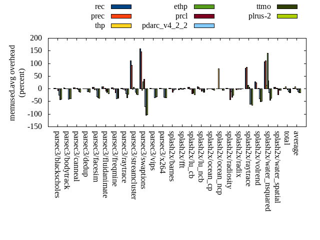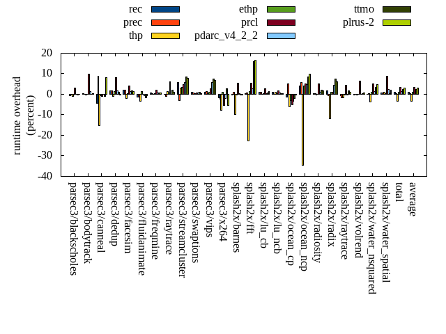 ======= Summary ======= runtime orig rec (overhead) prec (overhead) thp (overhead) ethp (overhead) prcl (overhead) pdarc_v4_2_2 (overhead) ttmo (overhead) plrus-2 (overhead) parsec3/blackscholes 140.265 139.551 (-0.51) 139.949 (-0.22) 139.061 (-0.86) 139.741 (-0.37) 144.556 (3.06) 140.167 (-0.07) 139.610 (-0.47) 140.389 (0.09) parsec3/bodytrack 125.066 125.483 (0.33) 125.166 (0.08) 124.508 (-0.45) 125.170 (0.08) 137.390 (9.85) 126.660 (1.27) 124.958 (-0.09) 125.631 (0.45) parsec3/canneal 221.029 211.074 (-4.50) 240.377 (8.75) 187.687 (-15.08) 219.810 (-0.55) 219.022 (-0.91) 221.248 (0.10) 218.539 (-1.13) 239.295 (8.26) parsec3/dedup 18.222 18.548 (1.79) 18.534 (1.71) 18.033 (-1.04) 18.453 (1.27) 19.696 (8.09) 18.512 (1.59) 18.404 (1.00) 18.185 (-0.20) parsec3/facesim 343.593 351.130 (2.19) 350.486 (2.01) 336.162 (-2.16) 345.138 (0.45) 357.809 (4.14) 348.584 (1.45) 349.508 (1.72) 348.779 (1.51) parsec3/fluidanimate 337.606 332.610 (-1.48) 332.806 (-1.42) 325.619 (-3.55) 342.428 (1.43) 337.172 (-0.13) 335.225 (-0.71) 332.045 (-1.65) 335.737 (-0.55) parsec3/freqmine 434.812 437.522 (0.62) 436.718 (0.44) 434.540 (-0.06) 435.740 (0.21) 443.063 (1.90) 437.992 (0.73) 437.063 (0.52) 438.044 (0.74) parsec3/raytrace 183.574 183.313 (-0.14) 182.010 (-0.85) 185.893 (1.26) 184.701 (0.61) 194.973 (6.21) 183.606 (0.02) 187.076 (1.91) 185.144 (0.86) parsec3/streamcluster 640.761 677.240 (5.69) 621.704 (-2.97) 660.373 (3.06) 661.983 (3.31) 670.313 (4.61) 678.292 (5.86) 695.375 (8.52) 691.526 (7.92) parsec3/swaptions 220.623 223.101 (1.12) 221.994 (0.62) 221.024 (0.18) 221.154 (0.24) 222.489 (0.85) 222.327 (0.77) 222.624 (0.91) 221.472 (0.39) parsec3/vips 87.438 88.376 (1.07) 88.513 (1.23) 87.745 (0.35) 88.473 (1.18) 89.766 (2.66) 92.457 (5.74) 94.033 (7.54) 93.430 (6.85) parsec3/x264 118.229 116.038 (-1.85) 115.523 (-2.29) 109.208 (-7.63) 119.269 (0.88) 111.957 (-5.31) 115.734 (-2.11) 121.450 (2.72) 111.809 (-5.43) splash2x/barnes 131.603 131.210 (-0.30) 132.958 (1.03) 118.693 (-9.81) 131.184 (-0.32) 138.560 (5.29) 131.933 (0.25) 131.041 (-0.43) 131.350 (-0.19) splash2x/fft 60.485 60.653 (0.28) 60.874 (0.64) 46.839 (-22.56) 61.400 (1.51) 63.688 (5.29) 62.225 (2.88) 70.174 (16.02) 70.614 (16.75) splash2x/lu_cb 132.317 133.453 (0.86) 133.524 (0.91) 132.436 (0.09) 132.851 (0.40) 135.934 (2.73) 132.593 (0.21) 133.234 (0.69) 133.925 (1.22) splash2x/lu_ncb 150.851 152.182 (0.88) 150.788 (-0.04) 152.255 (0.93) 151.608 (0.50) 153.270 (1.60) 151.781 (0.62) 151.226 (0.25) 151.573 (0.48) splash2x/ocean_cp 83.288 82.195 (-1.31) 87.613 (5.19) 78.084 (-6.25) 80.841 (-2.94) 78.996 (-5.15) 80.512 (-3.33) 81.705 (-1.90) 83.018 (-0.32) splash2x/ocean_ncp 159.005 165.300 (3.96) 168.352 (5.88) 104.040 (-34.57) 165.615 (4.16) 167.349 (5.25) 166.570 (4.76) 172.435 (8.45) 174.527 (9.76) splash2x/radiosity 142.410 142.730 (0.22) 142.823 (0.29) 141.854 (-0.39) 142.215 (-0.14) 149.467 (4.96) 144.007 (1.12) 145.414 (2.11) 144.908 (1.75) splash2x/radix 51.253 52.150 (1.75) 50.908 (-0.67) 45.143 (-11.92) 51.799 (1.07) 51.719 (0.91) 53.516 (4.42) 55.091 (7.49) 54.416 (6.17) splash2x/raytrace 136.196 135.051 (-0.84) 133.747 (-1.80) 133.809 (-1.75) 135.686 (-0.37) 142.386 (4.54) 135.669 (-0.39) 138.364 (1.59) 137.452 (0.92) splash2x/volrend 120.438 119.973 (-0.39) 120.337 (-0.08) 120.213 (-0.19) 120.469 (0.03) 128.042 (6.31) 120.572 (0.11) 120.859 (0.35) 121.198 (0.63) splash2x/water_nsquared 370.921 371.236 (0.09) 371.649 (0.20) 356.725 (-3.83) 375.111 (1.13) 389.730 (5.07) 375.418 (1.21) 383.236 (3.32) 388.042 (4.62) splash2x/water_spatial 133.744 134.513 (0.57) 134.616 (0.65) 134.967 (0.91) 134.207 (0.35) 145.633 (8.89) 136.837 (2.31) 134.276 (0.40) 136.287 (1.90) total 4543.730 4584.630 (0.90) 4561.960 (0.40) 4394.890 (-3.28) 4585.040 (0.91) 4692.980 (3.28) 4612.450 (1.51) 4657.720 (2.51) 4676.750 (2.93) average 189.322 191.026 (0.42) 190.082 (0.80) 183.120 (-4.80) 191.043 (0.59) 195.541 (3.36) 192.185 (1.20) 194.072 (2.49) 194.865 (2.69) kdamond_cpu_util orig rec (overhead) prec (overhead) thp (overhead) ethp (overhead) prcl (overhead) pdarc_v4_2_2 (overhead) ttmo (overhead) plrus-2 (overhead) parsec3/blackscholes 0.000 0.000 (0.00) 0.000 (0.00) 0.000 (0.00) 0.000 (0.00) 0.000 (0.00) 0.000 (0.00) 0.000 (0.00) 0.000 (0.00) parsec3/bodytrack 0.000 0.000 (0.00) 0.000 (0.00) 0.000 (0.00) 0.000 (0.00) 0.000 (0.00) 0.000 (0.00) 0.000 (0.00) 0.000 (0.00) parsec3/canneal 0.000 0.000 (0.00) 0.000 (0.00) 0.000 (0.00) 0.000 (0.00) 0.000 (0.00) 0.000 (0.00) 0.000 (0.00) 0.000 (0.00) parsec3/dedup 0.000 0.000 (0.00) 0.000 (0.00) 0.000 (0.00) 0.000 (0.00) 0.000 (0.00) 0.000 (0.00) 0.000 (0.00) 0.000 (0.00) parsec3/facesim 0.000 0.000 (0.00) 0.000 (0.00) 0.000 (0.00) 0.000 (0.00) 0.000 (0.00) 0.000 (0.00) 0.000 (0.00) 0.000 (0.00) parsec3/fluidanimate 0.000 0.000 (0.00) 0.000 (0.00) 0.000 (0.00) 0.000 (0.00) 0.000 (0.00) 0.000 (0.00) 0.000 (0.00) 0.000 (0.00) parsec3/freqmine 0.000 0.000 (0.00) 0.000 (0.00) 0.000 (0.00) 0.000 (0.00) 0.000 (0.00) 0.000 (0.00) 0.000 (0.00) 0.000 (0.00) parsec3/raytrace 0.000 0.000 (0.00) 0.000 (0.00) 0.000 (0.00) 0.000 (0.00) 0.000 (0.00) 0.000 (0.00) 0.000 (0.00) 0.000 (0.00) parsec3/streamcluster 0.000 0.000 (0.00) 0.000 (0.00) 0.000 (0.00) 0.000 (0.00) 0.000 (0.00) 0.000 (0.00) 0.000 (0.00) 0.000 (0.00) parsec3/swaptions 0.000 0.000 (0.00) 0.000 (0.00) 0.000 (0.00) 0.000 (0.00) 0.000 (0.00) 0.000 (0.00) 0.000 (0.00) 0.000 (0.00) parsec3/vips 0.000 0.000 (0.00) 0.000 (0.00) 0.000 (0.00) 0.000 (0.00) 0.000 (0.00) 0.000 (0.00) 0.000 (0.00) 0.000 (0.00) parsec3/x264 0.000 0.000 (0.00) 0.000 (0.00) 0.000 (0.00) 0.000 (0.00) 0.000 (0.00) 0.000 (0.00) 0.000 (0.00) 0.000 (0.00) splash2x/barnes 0.000 0.000 (0.00) 0.000 (0.00) 0.000 (0.00) 0.000 (0.00) 0.000 (0.00) 0.000 (0.00) 0.000 (0.00) 0.000 (0.00) splash2x/fft 0.000 0.000 (0.00) 0.000 (0.00) 0.000 (0.00) 0.000 (0.00) 0.000 (0.00) 0.000 (0.00) 0.000 (0.00) 0.000 (0.00) splash2x/lu_cb 0.000 0.000 (0.00) 0.000 (0.00) 0.000 (0.00) 0.000 (0.00) 0.000 (0.00) 0.000 (0.00)