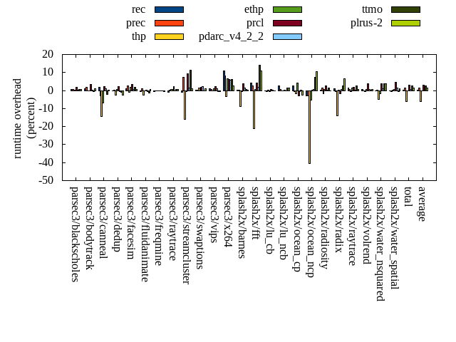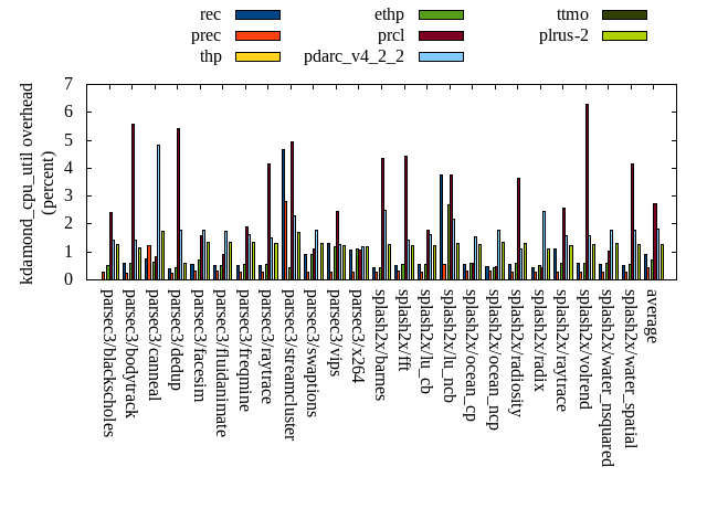 ======= Summary ======= runtime orig rec (overhead) prec (overhead) thp (overhead) ethp (overhead) prcl (overhead) pdarc_v4_2_2 (overhead) ttmo (overhead) plrus-2 (overhead) parsec3/blackscholes 139.384 140.148 (0.55) 140.214 (0.60) 139.670 (0.20) 139.664 (0.20) 142.084 (1.94) 139.790 (0.29) 140.487 (0.79) 140.430 (0.75) parsec3/bodytrack 126.573 127.665 (0.86) 128.956 (1.88) 126.291 (-0.22) 126.364 (-0.17) 130.854 (3.38) 126.688 (0.09) 125.997 (-0.46) 127.732 (0.92) parsec3/canneal 228.113 231.967 (1.69) 221.570 (-2.87) 195.557 (-14.27) 212.751 (-6.73) 232.695 (2.01) 230.506 (1.05) 223.195 (-2.16) 228.798 (0.30) parsec3/dedup 18.859 18.807 (-0.28) 18.892 (0.17) 18.366 (-2.62) 18.949 (0.48) 19.289 (2.28) 18.789 (-0.37) 18.710 (-0.79) 18.413 (-2.36) parsec3/facesim 345.740 349.848 (1.19) 354.053 (2.40) 342.435 (-0.96) 351.847 (1.77) 357.400 (3.37) 347.669 (0.56) 352.126 (1.85) 347.878 (0.62) parsec3/fluidanimate 341.382 339.082 (-0.67) 345.034 (1.07) 332.107 (-2.72) 340.983 (-0.12) 341.923 (0.16) 339.505 (-0.55) 336.895 (-1.31) 343.540 (0.63) parsec3/freqmine 437.652 435.620 (-0.46) 437.603 (-0.01) 437.658 (0.00) 436.463 (-0.27) 437.244 (-0.09) 436.752 (-0.21) 436.962 (-0.16) 435.691 (-0.45) parsec3/raytrace 186.389 184.909 (-0.79) 186.687 (0.16) 187.345 (0.51) 187.185 (0.43) 190.525 (2.22) 186.319 (-0.04) 187.181 (0.43) 187.211 (0.44) parsec3/streamcluster 668.953 663.213 (-0.86) 718.054 (7.34) 562.927 (-15.85) 665.696 (-0.49) 731.527 (9.35) 678.711 (1.46) 745.285 (11.41) 675.847 (1.03) parsec3/swaptions 219.874 220.647 (0.35) 220.452 (0.26) 222.791 (1.33) 222.104 (1.01) 223.544 (1.67) 224.409 (2.06) 219.723 (-0.07) 221.779 (0.87) parsec3/vips 92.306 93.093 (0.85) 92.847 (0.59) 92.242 (-0.07) 93.354 (1.14) 94.261 (2.12) 93.209 (0.98) 91.959 (-0.38) 91.840 (-0.50) parsec3/x264 112.520 124.815 (10.93) 121.895 (8.33) 108.851 (-3.26) 120.075 (6.71) 119.350 (6.07) 119.129 (5.87) 119.590 (6.28) 115.243 (2.42) splash2x/barnes 131.179 131.450 (0.21) 131.527 (0.27) 119.414 (-8.97) 130.465 (-0.54) 136.227 (3.85) 132.876 (1.29) 131.913 (0.56) 131.288 (0.08) splash2x/fft 61.308 63.881 (4.20) 62.858 (2.53) 48.319 (-21.19) 61.614 (0.50) 63.874 (4.18) 62.300 (1.62) 70.016 (14.20) 67.908 (10.76) splash2x/lu_cb 134.206 134.072 (-0.10) 133.300 (-0.67) 134.334 (0.10) 133.624 (-0.43) 134.874 (0.50) 134.281 (0.06) 134.021 (-0.14) 134.092 (-0.08) splash2x/lu_ncb 151.299 155.224 (2.59) 152.248 (0.63) 150.932 (-0.24) 150.872 (-0.28) 151.817 (0.34) 151.147 (-0.10) 153.624 (1.54) 153.419 (1.40) splash2x/ocean_cp 84.180 86.385 (2.62) 83.779 (-0.48) 82.681 (-1.78) 87.605 (4.07) 81.593 (-3.07) 83.609 (-0.68) 84.275 (0.11) 81.876 (-2.74) splash2x/ocean_ncp 172.024 166.836 (-3.02) 167.111 (-2.86) 102.115 (-40.64) 163.133 (-5.17) 172.459 (0.25) 173.026 (0.58) 184.732 (7.39) 189.779 (10.32) splash2x/radiosity 142.721 143.068 (0.24) 144.472 (1.23) 140.372 (-1.65) 143.402 (0.48) 146.270 (2.49) 142.878 (0.11) 144.629 (1.34) 142.610 (-0.08) splash2x/radix 52.499 53.114 (1.17) 52.264 (-0.45) 45.232 (-13.84) 52.664 (0.31) 51.558 (-1.79) 52.909 (0.78) 53.942 (2.75) 55.982 (6.64) splash2x/raytrace 134.935 136.613 (1.24) 135.854 (0.68) 134.173 (-0.56) 136.903 (1.46) 137.325 (1.77) 135.353 (0.31) 138.221 (2.44) 135.884 (0.70) splash2x/volrend 120.154 120.906 (0.63) 119.909 (-0.20) 119.457 (-0.58) 120.946 (0.66) 124.535 (3.65) 120.932 (0.65) 120.407 (0.21) 121.028 (0.73) splash2x/water_nsquared 374.109 374.033 (-0.02) 374.344 (0.06) 355.067 (-5.09) 367.774 (-1.69) 388.702 (3.90) 377.555 (0.92) 388.807 (3.93) 388.692 (3.90) splash2x/water_spatial 135.007 134.556 (-0.33) 134.289 (-0.53) 135.498 (0.36) 135.761 (0.56) 140.971 (4.42) 136.700 (1.25) 134.300 (-0.52) 136.553 (1.15) total 4611.360 4629.940 (0.40) 4678.210 (1.45) 4333.830 (-6.02) 4600.160 (-0.24) 4750.880 (3.03) 4645.050 (0.73) 4736.990 (2.72) 4673.510 (1.35) average 192.140 192.914 (0.95) 194.925 (0.84) 180.576 (-5.50) 191.673 (0.16) 197.953 (2.29) 193.544 (0.75) 197.375 (2.05) 194.730 (1.56) kdamond_cpu_util orig rec (overhead) prec (overhead) thp (overhead) ethp (overhead) prcl (overhead) pdarc_v4_2_2 (overhead) ttmo (overhead) plrus-2 (overhead) parsec3/blackscholes 0.000 0.000 (0.00) 0.284 (0.28) 0.000 (0.00) 0.508 (0.51) 2.403 (2.40) 1.404 (1.40) 0.000 (0.00) 1.262 (1.26) parsec3/bodytrack 0.000 0.578 (0.58) 0.222 (0.22) 0.000 (0.00) 0.593 (0.59) 5.560 (5.56) 1.423 (1.42) 0.000 (0.00) 1.138 (1.14) parsec3/canneal 0.000 0.743 (0.74) 1.218 (1.22) 0.000 (0.00) 0.624 (0.62) 0.821 (0.82) 4.824 (4.82) 0.000 (0.00) 1.737 (1.74) parsec3/dedup 0.000 0.399 (0.40) 0.236 (0.24) 0.000 (0.00) 0.428 (0.43) 5.415 (5.42) 1.767 (1.77) 0.000 (0.00) 0.582 (0.58) parsec3/facesim 0.000 0.566 (0.57) 0.302 (0.30) 0.000 (0.00) 0.700 (0.70) 1.563 (1.56) 1.770 (1.77) 0.000 (0.00) 1.354 (1.35) parsec3/fluidanimate 0.000 0.528 (0.53) 0.298 (0.30) 0.000 (0.00) 0.519 (0.52) 0.899 (0.90) 1.726 (1.73) 0.000 (0.00) 1.346 (1.35) parsec3/freqmine 0.000 0.525 (0.52) 0.287 (0.29) 0.000 (0.00) 0.571 (0.57) 1.894 (1.89) 1.622 (1.62) 0.000 (0.00) 1.335 (1.33) parsec3/raytrace 0.000 0.514 (0.51) 0.291 (0.29) 0.000 (0.00) 0.537 (0.54) 4.143 (4.14) 1.508 (1.51) 0.000 (0.00) 1.288 (1.29) parsec3/streamcluster 0.000 4.678 (4.68) 2.794 (2.79) 0.000 (0.00) 0.440 (0.44) 4.941 (4.94) 2.288 (2.29) 0.000 (0.00) 1.701 (1.70) parsec3/swaptions 0.000 0.903 (0.90) 0.285 (0.28) 0.000 (0.00) 0.908 (0.91) 1.107 (1.11) 1.760 (1.76) 0.000 (0.00) 1.288 (1.29) parsec3/vips 0.000 1.314 (1.31) 0.281 (0.28) 0.000 (0.00) 1.181 (1.18) 2.453 (2.45) 1.269 (1.27) 0.000 (0.00) 1.243 (1.24) parsec3/x264 0.000 1.061 (1.06) 0.277 (0.28) 0.000 (0.00) 1.120 (1.12) 1.081 (1.08) 1.174 (1.17) 0.000 (0.00) 1.174 (1.17) splash2x/barnes 0.000 0.431 (0.43) 0.283 (0.28) 0.000 (0.00) 0.443 (0.44) 4.357 (4.36) 2.493 (2.49) 0.000 (0.00) 1.276 (1.28) splash2x/fft 0.000 0.507 (0.51) 0.303 (0.30) 0.000 (0.00) 0.540 (0.54) 4.438 (4.44) 1.419 (1.42) 0.000 (0.00) 1.243 (1.24) splash2x/lu_cb 0.000 0.540 (0.54) 0.286 (0.29) 0.000 (0.00) 0.535 (0.53) 1.773 (1.77)