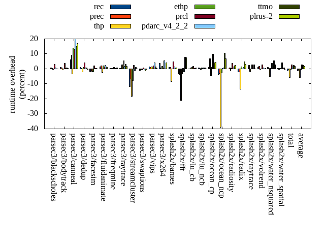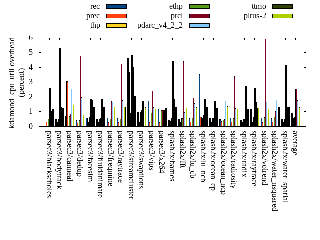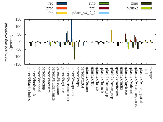 ======= Summary ======= runtime orig rec (overhead) prec (overhead) thp (overhead) ethp (overhead) prcl (overhead) pdarc_v4_2_2 (overhead) ttmo (overhead) plrus-2 (overhead) parsec3/blackscholes 139.626 140.413 (0.56) 140.024 (0.28) 139.263 (-0.26) 139.806 (0.13) 144.060 (3.18) 140.529 (0.65) 139.800 (0.12) 139.769 (0.10) parsec3/bodytrack 126.764 127.945 (0.93) 127.719 (0.75) 126.105 (-0.52) 126.914 (0.12) 131.455 (3.70) 127.064 (0.24) 127.702 (0.74) 127.094 (0.26) parsec3/canneal 200.226 212.608 (6.18) 218.733 (9.24) 193.526 (-3.35) 227.863 (13.80) 226.003 (12.87) 239.968 (19.85) 229.849 (14.79) 233.978 (16.86) parsec3/dedup 18.640 18.804 (0.88) 18.704 (0.34) 18.241 (-2.14) 18.799 (0.85) 19.393 (4.04) 18.783 (0.76) 18.769 (0.69) 18.563 (-0.41) parsec3/facesim 351.218 345.318 (-1.68) 346.591 (-1.32) 345.419 (-1.65) 344.249 (-1.98) 357.798 (1.87) 352.757 (0.44) 352.398 (0.34) 351.280 (0.02) parsec3/fluidanimate 334.046 338.466 (1.32) 340.695 (1.99) 326.282 (-2.32) 341.261 (2.16) 338.486 (1.33) 342.336 (2.48) 338.240 (1.26) 337.817 (1.13) parsec3/freqmine 434.842 435.461 (0.14) 436.144 (0.30) 436.031 (0.27) 434.848 (0.00) 438.626 (0.87) 436.359 (0.35) 436.173 (0.31) 437.295 (0.56) parsec3/raytrace 183.015 183.683 (0.36) 183.646 (0.34) 188.263 (2.87) 184.880 (1.02) 192.983 (5.45) 186.056 (1.66) 188.414 (2.95) 185.883 (1.57) parsec3/streamcluster 710.498 625.629 (-11.94) 663.158 (-6.66) 579.630 (-18.42) 654.558 (-7.87) 728.507 (2.53) 701.309 (-1.29) 716.950 (0.91) 710.777 (0.04) parsec3/swaptions 223.390 221.014 (-1.06) 222.959 (-0.19) 221.833 (-0.70) 221.795 (-0.71) 225.101 (0.77) 221.559 (-0.82) 220.555 (-1.27) 222.889 (-0.22) parsec3/vips 91.508 92.727 (1.33) 92.449 (1.03) 92.630 (1.23) 92.673 (1.27) 93.249 (1.90) 95.195 (4.03) 92.750 (1.36) 91.903 (0.43) parsec3/x264 115.519 119.710 (3.63) 116.321 (0.69) 115.669 (0.13) 117.561 (1.77) 116.438 (0.80) 121.757 (5.40) 115.474 (-0.04) 120.307 (4.14) splash2x/barnes 130.541 131.770 (0.94) 131.981 (1.10) 119.420 (-8.52) 130.336 (-0.16) 136.801 (4.80) 132.138 (1.22) 131.423 (0.68) 131.264 (0.55) splash2x/fft 63.767 61.611 (-3.38) 61.284 (-3.89) 50.379 (-20.99) 61.710 (-3.23) 63.995 (0.36) 62.497 (-1.99) 68.694 (7.73) 68.614 (7.60) splash2x/lu_cb 132.846 132.748 (-0.07) 132.805 (-0.03) 133.586 (0.56) 134.082 (0.93) 135.227 (1.79) 133.406 (0.42) 133.401 (0.42) 133.808 (0.72) splash2x/lu_ncb 151.319 152.289 (0.64) 151.925 (0.40) 150.668 (-0.43) 152.283 (0.64) 151.922 (0.40) 152.141 (0.54) 152.476 (0.76) 151.115 (-0.14) splash2x/ocean_cp 81.431 82.231 (0.98) 86.997 (6.84) 77.490 (-4.84) 82.379 (1.16) 89.305 (9.67) 83.222 (2.20) 84.824 (4.17) 84.942 (4.31) splash2x/ocean_ncp 166.757 160.529 (-3.73) 161.409 (-3.21) 101.570 (-39.09) 162.371 (-2.63) 167.076 (0.19) 167.986 (0.74) 184.324 (10.53) 177.807 (6.63) splash2x/radiosity 142.288 142.376 (0.06) 143.482 (0.84) 140.918 (-0.96) 142.932 (0.45) 147.469 (3.64) 143.102 (0.57) 145.275 (2.10) 145.638 (2.35) splash2x/radix 52.737 51.684 (-2.00) 51.677 (-2.01) 45.668 (-13.40) 53.401 (1.26) 52.809 (0.14) 53.241 (0.96) 55.268 (4.80) 54.285 (2.93) splash2x/raytrace 134.344 135.711 (1.02) 137.310 (2.21) 132.089 (-1.68) 134.202 (-0.11) 138.066 (2.77) 134.120 (-0.17) 137.974 (2.70) 134.448 (0.08) splash2x/volrend 120.463 121.711 (1.04) 122.397 (1.61) 120.004 (-0.38) 120.518 (0.05) 123.891 (2.85) 121.130 (0.55) 120.379 (-0.07) 120.670 (0.17) splash2x/water_nsquared 372.972 376.681 (0.99) 374.685 (0.46) 354.609 (-4.92) 373.710 (0.20) 386.937 (3.74) 374.162 (0.32) 393.190 (5.42) 383.525 (2.83) splash2x/water_spatial 135.630 136.222 (0.44) 135.243 (-0.29) 135.966 (0.25) 135.678 (0.04) 141.104 (4.04) 135.622 (-0.01) 136.418 (0.58) 134.735 (-0.66) total 4614.400 4547.330 (-1.45) 4598.330 (-0.35) 4345.270 (-5.83) 4588.800 (-0.55) 4746.720 (2.87) 4676.460 (1.34) 4720.710 (2.30) 4698.390 (1.82) average 192.267 189.472 (-0.10) 191.597 (0.45) 181.053 (-4.97) 191.200 (0.38) 197.780 (3.07) 194.852 (1.63) 196.696 (2.58) 195.766 (2.16) kdamond_cpu_util orig rec (overhead) prec (overhead) thp (overhead) ethp (overhead) prcl (overhead) pdarc_v4_2_2 (overhead) ttmo (overhead) plrus-2 (overhead) parsec3/blackscholes 0.000 0.000 (0.00) 0.299 (0.30) 0.000 (0.00) 0.523 (0.52) 2.608 (2.61) 1.056 (1.06) 0.000 (0.00) 1.191 (1.19) parsec3/bodytrack 0.000 0.461 (0.46) 0.274 (0.27) 0.000 (0.00) 0.501 (0.50) 5.287 (5.29) 1.275 (1.27) 0.000 (0.00) 1.219 (1.22) parsec3/canneal 0.000 0.727 (0.73) 3.055 (3.05) 0.000 (0.00) 0.681 (0.68) 0.851 (0.85) 2.532 (2.53) 0.000 (0.00) 1.444 (1.44) parsec3/dedup 0.000 0.408 (0.41) 0.235 (0.24) 0.000 (0.00) 0.405 (0.41) 4.795 (4.79) 1.958 (1.96) 0.000 (0.00) 0.779 (0.78) parsec3/facesim 0.000 0.571 (0.57) 0.287 (0.29) 0.000 (0.00) 0.661 (0.66) 1.865 (1.86) 1.783 (1.78) 0.000 (0.00) 1.333 (1.33) parsec3/fluidanimate 0.000 0.520 (0.52) 0.294 (0.29) 0.000 (0.00) 0.518 (0.52) 0.535 (0.53) 1.823 (1.82) 0.000 (0.00) 1.336 (1.34) parsec3/freqmine 0.000 0.582 (0.58) 0.285 (0.29) 0.000 (0.00) 0.497 (0.50) 1.678 (1.68) 1.668 (1.67) 0.000 (0.00) 1.336 (1.34) parsec3/raytrace 0.000 0.553 (0.55) 0.286 (0.29) 0.000 (0.00) 0.513 (0.51) 4.222 (4.22) 1.746 (1.75) 0.000 (0.00) 1.311 (1.31) parsec3/streamcluster 0.000 4.610 (4.61) 3.674 (3.67) 0.000 (0.00) 0.915 (0.91) 4.845 (4.84) 4.050 (4.05) 0.000 (0.00) 2.057 (2.06) parsec3/swaptions 0.000 0.984 (0.98) 0.282 (0.28) 0.000 (0.00) 0.943 (0.94) 1.130 (1.13) 1.710 (1.71) 0.000 (0.00) 1.304 (1.30) parsec3/vips 0.000 1.740 (1.74) 0.277 (0.28) 0.000 (0.00) 0.917 (0.92) 2.404 (2.40) 1.273 (1.27) 0.000 (0.00) 1.202 (1.20) parsec3/x264 0.000 1.190 (1.19) 0.280 (0.28) 0.000 (0.00) 1.096 (1.10) 1.111 (1.11) 1.094 (1.09) 0.000 (0.00) 1.237 (1.24) splash2x/barnes 0.000 0.454 (0.45) 0.335 (0.33) 0.000 (0.00) 0.573 (0.57) 4.406 (4.41) 1.834 (1.83) 0.000 (0.00) 1.273 (1.27) splash2x/fft 0.000 0.518 (0.52) 0.318 (0.32) 0.000 (0.00) 0.535 (0.54) 4.396 (4.40) 0.948 (0.95) 0.000 (0.00) 1.244 (1.24) splash2x/lu_cb 0.000 0.552 (0.55) 0.290 (0.29) 0.000 (0.00) 0.567 (0.57) 1.920 (1.92) 1.561 (1.56)
