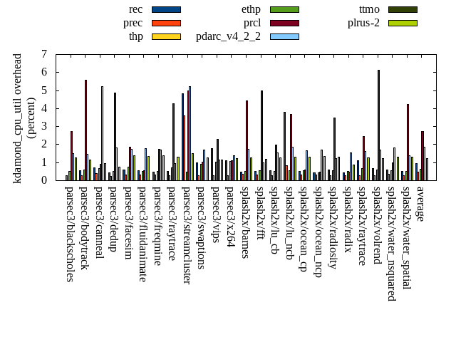 ======= Summary ======= runtime orig rec (overhead) prec (overhead) thp (overhead) ethp (overhead) prcl (overhead) pdarc_v4_2_2 (overhead) ttmo (overhead) plrus-2 (overhead) parsec3/blackscholes 139.671 139.955 (0.20) 139.864 (0.14) 139.662 (-0.01) 138.483 (-0.85) 143.195 (2.52) 139.980 (0.22) 140.035 (0.26) 140.336 (0.48) parsec3/bodytrack 127.190 126.663 (-0.41) 127.459 (0.21) 126.294 (-0.70) 126.755 (-0.34) 132.021 (3.80) 126.894 (-0.23) 126.950 (-0.19) 126.197 (-0.78) parsec3/canneal 214.702 219.578 (2.27) 230.577 (7.39) 182.067 (-15.20) 223.391 (4.05) 227.735 (6.07) 222.405 (3.59) 226.569 (5.53) 238.902 (11.27) parsec3/dedup 18.729 18.810 (0.44) 18.676 (-0.28) 18.226 (-2.68) 18.586 (-0.76) 19.461 (3.91) 18.696 (-0.18) 18.802 (0.39) 18.617 (-0.60) parsec3/facesim 348.958 348.011 (-0.27) 349.991 (0.30) 340.527 (-2.42) 348.157 (-0.23) 353.758 (1.38) 349.680 (0.21) 353.057 (1.17) 351.054 (0.60) parsec3/fluidanimate 336.714 339.073 (0.70) 343.363 (1.97) 333.066 (-1.08) 337.909 (0.35) 345.157 (2.51) 334.588 (-0.63) 348.018 (3.36) 339.310 (0.77) parsec3/freqmine 435.069 435.309 (0.06) 437.152 (0.48) 436.221 (0.26) 436.096 (0.24) 439.950 (1.12) 437.978 (0.67) 435.825 (0.17) 437.056 (0.46) parsec3/raytrace 182.495 183.593 (0.60) 186.017 (1.93) 187.914 (2.97) 136.630 (-25.13) 188.994 (3.56) 186.480 (2.18) 186.800 (2.36) 188.020 (3.03) parsec3/streamcluster 657.266 656.305 (-0.15) 711.303 (8.22) 589.298 (-10.34) 638.500 (-2.86) 725.749 (10.42) 655.060 (-0.34) 731.618 (11.31) 703.332 (7.01) parsec3/swaptions 220.840 224.185 (1.51) 219.926 (-0.41) 220.051 (-0.36) 220.703 (-0.06) 223.477 (1.19) 220.567 (-0.12) 219.994 (-0.38) 221.510 (0.30) parsec3/vips 92.822 93.208 (0.42) 92.089 (-0.79) 92.737 (-0.09) 91.997 (-0.89) 93.605 (0.84) 94.349 (1.65) 92.300 (-0.56) 93.499 (0.73) parsec3/x264 115.693 116.926 (1.07) 116.554 (0.74) 121.901 (5.37) 123.385 (6.65) 118.070 (2.05) 120.530 (4.18) 119.123 (2.96) 122.650 (6.01) splash2x/barnes 131.078 131.790 (0.54) 131.534 (0.35) 120.447 (-8.11) 130.721 (-0.27) 136.453 (4.10) 131.457 (0.29) 130.916 (-0.12) 132.283 (0.92) splash2x/fft 61.095 61.117 (0.04) 63.157 (3.37) 48.188 (-21.13) 62.305 (1.98) 65.463 (7.15) 63.238 (3.51) 67.088 (9.81) 70.203 (14.91) splash2x/lu_cb 134.357 134.758 (0.30) 133.061 (-0.96) 133.184 (-0.87) 134.242 (-0.09) 135.234 (0.65) 133.270 (-0.81) 132.940 (-1.06) 134.564 (0.15) splash2x/lu_ncb 153.550 154.270 (0.47) 152.737 (-0.53) 151.043 (-1.63) 151.117 (-1.58) 153.069 (-0.31) 151.282 (-1.48) 153.345 (-0.13) 150.715 (-1.85) splash2x/ocean_cp 83.449 86.058 (3.13) 84.251 (0.96) 79.297 (-4.98) 88.813 (6.43) 81.984 (-1.76) 81.854 (-1.91) 86.989 (4.24) 85.297 (2.21) splash2x/ocean_ncp 167.744 170.259 (1.50) 170.661 (1.74) 113.147 (-32.55) 163.487 (-2.54) 171.711 (2.36) 165.611 (-1.27) 178.884 (6.64) 181.784 (8.37) splash2x/radiosity 142.415 142.636 (0.16) 143.101 (0.48) 141.226 (-0.84) 142.340 (-0.05) 147.587 (3.63) 143.903 (1.04) 144.297 (1.32) 143.570 (0.81) splash2x/radix 51.422 50.967 (-0.89) 51.937 (1.00) 45.919 (-10.70) 52.047 (1.22) 51.500 (0.15) 53.378 (3.80) 54.097 (5.20) 54.654 (6.29) splash2x/raytrace 136.980 135.075 (-1.39) 135.780 (-0.88) 133.608 (-2.46) 135.689 (-0.94) 141.365 (3.20) 136.142 (-0.61) 136.267 (-0.52) 135.923 (-0.77) splash2x/volrend 120.862 120.915 (0.04) 121.668 (0.67) 120.571 (-0.24) 120.808 (-0.04) 123.661 (2.32) 121.362 (0.41) 120.926 (0.05) 121.111 (0.21) splash2x/water_nsquared 372.532 374.763 (0.60) 374.706 (0.58) 355.724 (-4.51) 373.867 (0.36) 389.097 (4.45) 377.599 (1.36) 388.190 (4.20) 385.325 (3.43) splash2x/water_spatial 133.582 135.192 (1.21) 134.989 (1.05) 135.167 (1.19) 135.492 (1.43) 140.441 (5.13) 135.808 (1.67) 135.498 (1.43) 134.218 (0.48) total 4579.210 4599.430 (0.44) 4670.560 (1.99) 4365.490 (-4.67) 4531.530 (-1.04) 4748.730 (3.70) 4602.110 (0.50) 4728.540 (3.26) 4710.120 (2.86) average 190.800 191.643 (0.51) 194.607 (1.16) 181.895 (-4.63) 188.814 (-0.58) 197.864 (2.94) 191.755 (0.72) 197.023 (2.39) 196.255 (2.69) kdamond_cpu_util orig rec (overhead) prec (overhead) thp (overhead) ethp (overhead) prcl (overhead) pdarc_v4_2_2 (overhead) ttmo (overhead) plrus-2 (overhead) parsec3/blackscholes 0.000 0.000 (0.00) 0.277 (0.28) 0.000 (0.00) 0.521 (0.52) 2.721 (2.72) 1.496 (1.50) 0.000 (0.00) 1.271 (1.27) parsec3/bodytrack 0.000 0.563 (0.56) 0.267 (0.27) 0.000 (0.00) 0.612 (0.61) 5.576 (5.58) 1.462 (1.46) 0.000 (0.00) 1.166 (1.17) parsec3/canneal 0.000 0.701 (0.70) 0.388 (0.39) 0.000 (0.00) 0.687 (0.69) 0.926 (0.93) 5.229 (5.23) 0.000 (0.00) 0.948 (0.95) parsec3/dedup 0.000 0.416 (0.42) 0.236 (0.24) 0.000 (0.00) 0.503 (0.50) 4.881 (4.88) 1.810 (1.81) 0.000 (0.00) 0.769 (0.77) parsec3/facesim 0.000 0.582 (0.58) 0.297 (0.30) 0.000 (0.00) 0.734 (0.73) 1.860 (1.86) 1.723 (1.72) 0.000 (0.00) 1.366 (1.37) parsec3/fluidanimate 0.000 0.556 (0.56) 0.298 (0.30) 0.000 (0.00) 0.530 (0.53) 0.573 (0.57) 1.798 (1.80) 0.000 (0.00) 1.340 (1.34) parsec3/freqmine 0.000 0.470 (0.47) 0.302 (0.30) 0.000 (0.00) 0.503 (0.50) 1.757 (1.76) 1.686 (1.69) 0.000 (0.00) 1.381 (1.38) parsec3/raytrace 0.000 0.514 (0.51) 0.288 (0.29) 0.000 (0.00) 0.711 (0.71) 4.273 (4.27) 0.932 (0.93) 0.000 (0.00) 1.290 (1.29) parsec3/streamcluster 0.000 4.814 (4.81) 3.602 (3.60) 0.000 (0.00) 0.475 (0.47) 4.988 (4.99) 5.206 (5.21) 0.000 (0.00) 1.504 (1.50) parsec3/swaptions 0.000 0.981 (0.98) 0.282 (0.28) 0.000 (0.00) 0.918 (0.92) 1.047 (1.05) 1.696 (1.70) 0.000 (0.00) 1.277 (1.28) parsec3/vips 0.000 1.784 (1.78) 0.271 (0.27) 0.000 (0.00) 1.032 (1.03) 2.281 (2.28) 1.155 (1.15) 0.000 (0.00) 1.163 (1.16) parsec3/x264 0.000 1.096 (1.10) 0.284 (0.28) 0.000 (0.00) 1.086 (1.09) 1.110 (1.11) 1.383 (1.38) 0.000 (0.00) 1.245 (1.24) splash2x/barnes 0.000 0.475 (0.48) 0.344 (0.34) 0.000 (0.00) 0.497 (0.50) 4.414 (4.41) 1.735 (1.74) 0.000 (0.00) 1.277 (1.28) splash2x/fft 0.000 0.517 (0.52) 0.310 (0.31) 0.000 (0.00) 0.536 (0.54) 4.992 (4.99) 0.988 (0.99) 0.000 (0.00) 1.188 (1.19) splash2x/lu_cb 0.000 0.546 (0.55) 0.288 (0.29) 0.000 (0.00) 0.523 (0.52) 1.983 (1.98