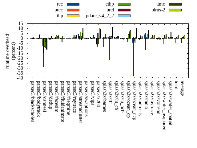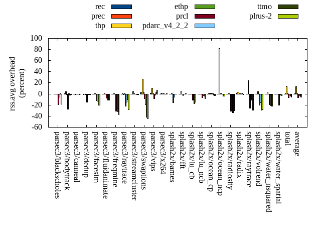======= Summary ======= runtime orig rec (overhead) prec (overhead) thp (overhead) ethp (overhead) prcl (overhead) pdarc_v4_2_2 (overhead) ttmo (overhead) plrus-2 (overhead) parsec3/blackscholes 140.051 139.790 (-0.19) 140.358 (0.22) 139.272 (-0.56) 140.211 (0.11) 142.100 (1.46) 139.862 (-0.14) 140.242 (0.14) 140.059 (0.01) parsec3/bodytrack 126.922 126.870 (-0.04) 127.316 (0.31) 126.390 (-0.42) 126.790 (-0.10) 131.844 (3.88) 127.921 (0.79) 127.551 (0.50) 126.298 (-0.49) parsec3/canneal 244.448 226.911 (-7.17) 209.422 (-14.33) 174.509 (-28.61) 225.077 (-7.92) 221.734 (-9.29) 237.259 (-2.94) 219.256 (-10.31) 216.416 (-11.47) parsec3/dedup 18.686 18.801 (0.61) 18.527 (-0.85) 18.410 (-1.48) 18.656 (-0.16) 19.179 (2.64) 18.703 (0.09) 18.657 (-0.15) 18.731 (0.24) parsec3/facesim 341.442 341.237 (-0.06) 347.498 (1.77) 339.481 (-0.57) 352.182 (3.15) 350.486 (2.65) 342.800 (0.40) 351.609 (2.98) 345.871 (1.30) parsec3/fluidanimate 335.621 334.394 (-0.37) 337.981 (0.70) 324.770 (-3.23) 344.456 (2.63) 337.263 (0.49) 336.328 (0.21) 336.370 (0.22) 350.160 (4.33) parsec3/freqmine 435.609 435.580 (-0.01) 437.437 (0.42) 436.588 (0.22) 435.483 (-0.03) 439.149 (0.81) 436.317 (0.16) 436.623 (0.23) 437.723 (0.49) parsec3/raytrace 181.737 183.279 (0.85) 183.905 (1.19) 188.362 (3.65) 184.305 (1.41) 187.848 (3.36) 183.441 (0.94) 187.662 (3.26) 185.089 (1.84) parsec3/streamcluster 637.572 665.783 (4.42) 651.513 (2.19) 631.337 (-0.98) 680.181 (6.68) 652.233 (2.30) 630.184 (-1.16) 669.990 (5.08) 706.368 (10.79) parsec3/swaptions 221.175 222.506 (0.60) 221.946 (0.35) 220.234 (-0.43) 220.859 (-0.14) 222.383 (0.55) 221.519 (0.16) 220.177 (-0.45) 221.111 (-0.03) parsec3/vips 92.213 93.011 (0.87) 92.000 (-0.23) 92.088 (-0.14) 92.787 (0.62) 93.315 (1.20) 95.186 (3.22) 93.688 (1.60) 92.731 (0.56) parsec3/x264 116.736 110.025 (-5.75) 122.886 (5.27) 107.280 (-8.10) 110.447 (-5.39) 123.355 (5.67) 128.692 (10.24) 122.578 (5.00) 127.473 (9.20) splash2x/barnes 130.409 130.977 (0.44) 132.078 (1.28) 119.355 (-8.48) 132.362 (1.50) 135.863 (4.18) 131.917 (1.16) 130.560 (0.12) 132.719 (1.77) splash2x/fft 61.234 62.086 (1.39) 62.564 (2.17) 47.903 (-21.77) 61.045 (-0.31) 62.584 (2.21) 62.363 (1.84) 68.219 (11.41) 67.400 (10.07) splash2x/lu_cb 132.001 133.152 (0.87) 132.511 (0.39) 133.061 (0.80) 133.415 (1.07) 135.245 (2.46) 133.712 (1.30) 134.663 (2.02) 133.298 (0.98) splash2x/lu_ncb 152.256 151.660 (-0.39) 152.933 (0.44) 153.073 (0.54) 152.002 (-0.17) 152.364 (0.07) 151.080 (-0.77) 152.451 (0.13) 152.820 (0.37) splash2x/ocean_cp 80.774 80.309 (-0.58) 80.460 (-0.39) 78.421 (-2.91) 84.058 (4.07) 86.293 (6.83) 84.275 (4.33) 82.158 (1.71) 87.303 (8.08) splash2x/ocean_ncp 165.949 159.478 (-3.90) 167.735 (1.08) 103.577 (-37.59) 161.589 (-2.63) 159.213 (-4.06) 168.173 (1.34) 179.739 (8.31) 183.515 (10.59) splash2x/radiosity 142.697 142.452 (-0.17) 142.085 (-0.43) 141.107 (-1.11) 142.479 (-0.15) 146.727 (2.82) 142.818 (0.09) 145.648 (2.07) 145.177 (1.74) splash2x/radix 50.862 52.860 (3.93) 53.370 (4.93) 44.931 (-11.66) 51.589 (1.43) 50.572 (-0.57) 53.190 (4.58) 55.215 (8.56) 53.428 (5.04) splash2x/raytrace 134.799 134.738 (-0.05) 134.727 (-0.05) 136.894 (1.55) 135.761 (0.71) 138.911 (3.05) 135.526 (0.54) 137.677 (2.13) 139.329 (3.36) splash2x/volrend 121.696 121.336 (-0.30) 121.608 (-0.07) 120.803 (-0.73) 120.931 (-0.63) 123.334 (1.35) 120.718 (-0.80) 120.816 (-0.72) 121.003 (-0.57) splash2x/water_nsquared 374.492 374.060 (-0.12) 372.813 (-0.45) 353.936 (-5.49) 374.550 (0.02) 387.700 (3.53) 379.618 (1.37) 390.465 (4.27) 384.626 (2.71) splash2x/water_spatial 134.032 135.266 (0.92) 134.798 (0.57) 134.840 (0.60) 135.526 (1.11) 142.428 (6.26) 135.553 (1.13) 134.800 (0.57) 136.220 (1.63) total 4573.420 4576.580 (0.07) 4578.460 (0.11) 4366.610 (-4.52) 4616.740 (0.95) 4642.100 (1.50) 4597.160 (0.52) 4656.820 (1.82) 4704.880 (2.87) average 190.559 190.691 (-0.17) 190.769 (0.27) 181.942 (-5.29) 192.364 (0.29) 193.421 (1.83) 191.548 (1.17) 194.034 (2.03) 196.037 (2.61) kdamond_cpu_util orig rec (overhead) prec (overhead) thp (overhead) ethp (overhead) prcl (overhead) pdarc_v4_2_2 (overhead) ttmo (overhead) plrus-2 (overhead) parsec3/blackscholes 0.000 0.000 (0.00) 0.000 (0.00) 0.000 (0.00) 0.000 (0.00) 0.000 (0.00) 0.000 (0.00) 0.000 (0.00) 0.000 (0.00) parsec3/bodytrack 0.000 0.000 (0.00) 0.000 (0.00) 0.000 (0.00) 0.000 (0.00) 0.000 (0.00) 0.000 (0.00) 0.000 (0.00) 0.000 (0.00) parsec3/canneal 0.000 0.000 (0.00) 0.000 (0.00) 0.000 (0.00) 0.000 (0.00) 0.000 (0.00) 0.000 (0.00) 0.000 (0.00) 0.000 (0.00) parsec3/dedup 0.000 0.000 (0.00) 0.000 (0.00) 0.000 (0.00) 0.000 (0.00) 0.000 (0.00) 0.000 (0.00) 0.000 (0.00) 0.000 (0.00) parsec3/facesim 0.000 0.000 (0.00) 0.000 (0.00) 0.000 (0.00) 0.000 (0.00) 0.000 (0.00) 0.000 (0.00) 0.000 (0.00) 0.000 (0.00) parsec3/fluidanimate 0.000 0.000 (0.00) 0.000 (0.00) 0.000 (0.00) 0.000 (0.00) 0.000 (0.00) 0.000 (0.00) 0.000 (0.00) 0.000 (0.00) parsec3/freqmine 0.000 0.000 (0.00) 0.000 (0.00) 0.000 (0.00) 0.000 (0.00) 0.000 (0.00) 0.000 (0.00) 0.000 (0.00) 0.000 (0.00) parsec3/raytrace 0.000 0.000 (0.00) 0.000 (0.00) 0.000 (0.00) 0.000 (0.00) 0.000 (0.00) 0.000 (0.00) 0.000 (0.00) 0.000 (0.00) parsec3/streamcluster 0.000 0.000 (0.00) 0.000 (0.00) 0.000 (0.00) 0.000 (0.00) 0.000 (0.00) 0.000 (0.00) 0.000 (0.00) 0.000 (0.00) parsec3/swaptions 0.000 0.000 (0.00) 0.000 (0.00) 0.000 (0.00) 0.000 (0.00) 0.000 (0.00) 0.000 (0.00) 0.000 (0.00) 0.000 (0.00) parsec3/vips 0.000 0.000 (0.00) 0.000 (0.00) 0.000 (0.00) 0.000 (0.00) 0.000 (0.00) 0.000 (0.00) 0.000 (0.00) 0.000 (0.00) parsec3/x264 0.000 0.000 (0.00) 0.000 (0.00) 0.000 (0.00) 0.000 (0.00) 0.000 (0.00) 0.000 (0.00) 0.000 (0.00) 0.000 (0.00) splash2x/barnes 0.000 0.000 (0.00) 0.000 (0.00) 0.000 (0.00) 0.000 (0.00) 0.000 (0.00) 0.000 (0.00) 0.000 (0.00) 0.000 (0.00) splash2x/fft 0.000 0.000 (0.00) 0.000 (0.00) 0.000 (0.00) 0.000 (0.00) 0.000 (0.00) 0.000 (0.00) 0.000 (0.00) 0.000 (0.00) splash2x/lu_cb 0.000 0.000 (0.00) 0.000 (0.00) 0.000 (0.00) 0.000 (0.00) 0.000 (0.00)