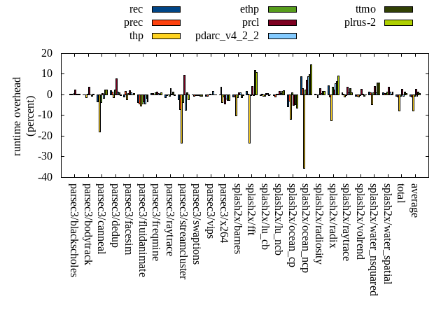 ======= Summary ======= runtime orig rec (overhead) prec (overhead) thp (overhead) ethp (overhead) prcl (overhead) pdarc_v4_2_2 (overhead) ttmo (overhead) plrus-2 (overhead) parsec3/blackscholes 139.541 139.846 (0.22) 140.183 (0.46) 139.493 (-0.03) 140.481 (0.67) 142.768 (2.31) 140.201 (0.47) 140.177 (0.46) 139.883 (0.24) parsec3/bodytrack 127.232 127.393 (0.13) 127.042 (-0.15) 125.486 (-1.37) 127.538 (0.24) 131.974 (3.73) 127.399 (0.13) 126.319 (-0.72) 127.791 (0.44) parsec3/canneal 225.618 217.783 (-3.47) 222.601 (-1.34) 185.232 (-17.90) 217.245 (-3.71) 227.238 (0.72) 221.779 (-1.70) 230.764 (2.28) 231.082 (2.42) parsec3/dedup 18.418 18.790 (2.02) 18.646 (1.24) 18.191 (-1.23) 18.866 (2.43) 19.862 (7.84) 18.684 (1.44) 18.593 (0.95) 18.361 (-0.31) parsec3/facesim 346.041 342.330 (-1.07) 352.308 (1.81) 338.098 (-2.30) 348.633 (0.75) 353.196 (2.07) 350.094 (1.17) 346.189 (0.04) 347.956 (0.55) parsec3/fluidanimate 350.144 337.081 (-3.73) 334.867 (-4.36) 330.787 (-5.53) 334.882 (-4.36) 338.184 (-3.42) 334.526 (-4.46) 344.739 (-1.54) 338.265 (-3.39) parsec3/freqmine 433.840 436.971 (0.72) 436.451 (0.60) 434.388 (0.13) 438.320 (1.03) 439.845 (1.38) 436.527 (0.62) 435.681 (0.42) 438.109 (0.98) parsec3/raytrace 185.463 182.784 (-1.44) 184.642 (-0.44) 185.709 (0.13) 184.178 (-0.69) 191.286 (3.14) 186.258 (0.43) 188.017 (1.38) 185.041 (-0.23) parsec3/streamcluster 703.879 687.216 (-2.37) 652.809 (-7.26) 538.446 (-23.50) 678.666 (-3.58) 769.718 (9.35) 650.548 (-7.58) 712.013 (1.16) 687.644 (-2.31) parsec3/swaptions 222.898 222.865 (-0.01) 221.577 (-0.59) 221.935 (-0.43) 221.862 (-0.46) 222.045 (-0.38) 222.132 (-0.34) 221.172 (-0.77) 221.011 (-0.85) parsec3/vips 93.126 92.616 (-0.55) 92.490 (-0.68) 93.142 (0.02) 93.347 (0.24) 93.260 (0.14) 94.726 (1.72) 93.064 (-0.07) 93.139 (0.01) parsec3/x264 121.447 121.300 (-0.12) 125.791 (3.58) 116.895 (-3.75) 120.389 (-0.87) 115.894 (-4.57) 119.009 (-2.01) 118.304 (-2.59) 118.095 (-2.76) splash2x/barnes 132.126 130.574 (-1.17) 130.794 (-1.01) 118.850 (-10.05) 130.304 (-1.38) 133.307 (0.89) 133.671 (1.17) 130.367 (-1.33) 131.874 (-0.19) splash2x/fft 61.433 62.475 (1.70) 61.626 (0.31) 47.158 (-23.24) 61.319 (-0.19) 63.905 (4.02) 61.288 (-0.24) 68.640 (11.73) 68.140 (10.92) splash2x/lu_cb 133.558 133.037 (-0.39) 134.220 (0.50) 132.559 (-0.75) 132.818 (-0.55) 134.679 (0.84) 134.471 (0.68) 132.918 (-0.48) 133.636 (0.06) splash2x/lu_ncb 151.462 150.746 (-0.47) 149.961 (-0.99) 152.119 (0.43) 151.794 (0.22) 154.096 (1.74) 152.358 (0.59) 153.880 (1.60) 154.298 (1.87) splash2x/ocean_cp 87.059 81.987 (-5.83) 84.345 (-3.12) 76.680 (-11.92) 87.866 (0.93) 82.490 (-5.25) 85.505 (-1.78) 82.938 (-4.73) 81.444 (-6.45) splash2x/ocean_ncp 157.532 171.181 (8.66) 162.533 (3.17) 101.557 (-35.53) 161.239 (2.35) 168.657 (7.06) 171.349 (8.77) 173.260 (9.98) 180.741 (14.73) splash2x/radiosity 142.399 142.955 (0.39) 142.383 (-0.01) 140.643 (-1.23) 142.434 (0.02) 146.822 (3.11) 143.326 (0.65) 144.976 (1.81) 144.836 (1.71) splash2x/radix 50.869 53.143 (4.47) 50.433 (-0.86) 44.502 (-12.52) 52.827 (3.85) 52.045 (2.31) 53.678 (5.52) 54.128 (6.41) 55.570 (9.24) splash2x/raytrace 136.037 137.532 (1.10) 136.384 (0.25) 134.800 (-0.91) 135.485 (-0.41) 140.963 (3.62) 137.534 (1.10) 140.087 (2.98) 137.275 (0.91) splash2x/volrend 121.208 120.373 (-0.69) 120.348 (-0.71) 119.872 (-1.10) 120.733 (-0.39) 124.467 (2.69) 121.521 (0.26) 120.378 (-0.69) 121.041 (-0.14) splash2x/water_nsquared 371.241 376.163 (1.33) 374.916 (0.99) 353.843 (-4.69) 375.586 (1.17) 386.258 (4.05) 375.187 (1.06) 392.860 (5.82) 392.484 (5.72) splash2x/water_spatial 134.675 135.848 (0.87) 135.381 (0.52) 135.389 (0.53) 136.322 (1.22) 139.784 (3.79) 136.334 (1.23) 135.019 (0.26) 136.396 (1.28) total 4647.260 4622.990 (-0.52) 4592.720 (-1.17) 4285.790 (-7.78) 4613.140 (-0.73) 4772.750 (2.70) 4608.120 (-0.84) 4704.490 (1.23) 4684.120 (0.79) average 193.636 192.625 (0.01) 191.363 (-0.34) 178.575 (-6.53) 192.214 (-0.06) 198.865 (2.13) 192.005 (0.37) 196.020 (1.43) 195.172 (1.44) kdamond_cpu_util orig rec (overhead) prec (overhead) thp (overhead) ethp (overhead) prcl (overhead) pdarc_v4_2_2 (overhead) ttmo (overhead) plrus-2 (overhead) parsec3/blackscholes 0.000 0.000 (0.00) 0.000 (0.00) 0.000 (0.00) 0.000 (0.00) 0.000 (0.00) 0.000 (0.00) 0.000 (0.00) 0.000 (0.00) parsec3/bodytrack 0.000 0.000 (0.00) 0.000 (0.00) 0.000 (0.00) 0.000 (0.00) 0.000 (0.00) 0.000 (0.00) 0.000 (0.00) 0.000 (0.00) parsec3/canneal 0.000 0.000 (0.00) 0.000 (0.00) 0.000 (0.00) 0.000 (0.00) 0.000 (0.00) 0.000 (0.00) 0.000 (0.00) 0.000 (0.00) parsec3/dedup 0.000 0.000 (0.00) 0.000 (0.00) 0.000 (0.00) 0.000 (0.00) 0.000 (0.00) 0.000 (0.00) 0.000 (0.00) 0.000 (0.00) parsec3/facesim 0.000 0.000 (0.00) 0.000 (0.00) 0.000 (0.00) 0.000 (0.00) 0.000 (0.00) 0.000 (0.00) 0.000 (0.00) 0.000 (0.00) parsec3/fluidanimate 0.000 0.000 (0.00) 0.000 (0.00) 0.000 (0.00) 0.000 (0.00) 0.000 (0.00) 0.000 (0.00) 0.000 (0.00) 0.000 (0.00) parsec3/freqmine 0.000 0.000 (0.00) 0.000 (0.00) 0.000 (0.00) 0.000 (0.00) 0.000 (0.00) 0.000 (0.00) 0.000 (0.00) 0.000 (0.00) parsec3/raytrace 0.000 0.000 (0.00) 0.000 (0.00) 0.000 (0.00) 0.000 (0.00) 0.000 (0.00) 0.000 (0.00) 0.000 (0.00) 0.000 (0.00) parsec3/streamcluster 0.000 0.000 (0.00) 0.000 (0.00) 0.000 (0.00) 0.000 (0.00) 0.000 (0.00) 0.000 (0.00) 0.000 (0.00) 0.000 (0.00) parsec3/swaptions 0.000 0.000 (0.00) 0.000 (0.00) 0.000 (0.00) 0.000 (0.00) 0.000 (0.00) 0.000 (0.00) 0.000 (0.00) 0.000 (0.00) parsec3/vips 0.000 0.000 (0.00) 0.000 (0.00) 0.000 (0.00) 0.000 (0.00) 0.000 (0.00) 0.000 (0.00) 0.000 (0.00) 0.000 (0.00) parsec3/x264 0.000 0.000 (0.00) 0.000 (0.00) 0.000 (0.00) 0.000 (0.00) 0.000 (0.00) 0.000 (0.00) 0.000 (0.00) 0.000 (0.00) splash2x/barnes 0.000 0.000 (0.00) 0.000 (0.00) 0.000 (0.00) 0.000 (0.00) 0.000 (0.00) 0.000 (0.00) 0.000 (0.00) 0.000 (0.00) splash2x/fft 0.000 0.000 (0.00) 0.000 (0.00) 0.000 (0.00) 0.000 (0.00) 0.000 (0.00) 0.000 (0.00) 0.000 (0.00) 0.000 (0.00) splash2x/lu_cb 0.000 0.000 (0.00) 0.000 (0.00) 0.000 (0.00) 0.00