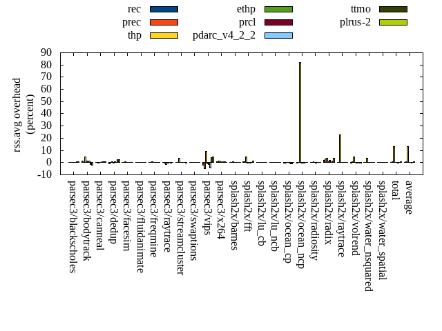 ======= Summary ======= runtime orig rec (overhead) prec (overhead) thp (overhead) ethp (overhead) prcl (overhead) pdarc_v4_2_2 (overhead) ttmo (overhead) plrus-2 (overhead) parsec3/blackscholes 139.831 139.691 (-0.10) 139.997 (0.12) 139.127 (-0.50) 140.336 (0.36) 139.814 (-0.01) 139.897 (0.05) 139.791 (-0.03) 139.184 (-0.46) parsec3/bodytrack 127.888 127.126 (-0.60) 128.167 (0.22) 127.812 (-0.06) 128.538 (0.51) 127.962 (0.06) 127.959 (0.06) 127.734 (-0.12) 128.721 (0.65) parsec3/canneal 205.762 229.458 (11.52) 212.091 (3.08) 182.801 (-11.16) 222.046 (7.91) 211.656 (2.86) 242.700 (17.95) 242.550 (17.88) 245.776 (19.45) parsec3/dedup 18.728 18.675 (-0.28) 18.845 (0.63) 18.358 (-1.98) 18.562 (-0.89) 18.940 (1.13) 18.800 (0.39) 18.670 (-0.31) 18.798 (0.37) parsec3/facesim 355.897 347.015 (-2.50) 363.648 (2.18) 341.565 (-4.03) 352.645 (-0.91) 348.539 (-2.07) 347.409 (-2.39) 348.912 (-1.96) 347.844 (-2.26) parsec3/fluidanimate 335.019 333.881 (-0.34) 331.556 (-1.03) 326.658 (-2.50) 337.246 (0.66) 345.785 (3.21) 342.184 (2.14) 334.844 (-0.05) 333.027 (-0.59) parsec3/freqmine 434.052 436.857 (0.65) 436.407 (0.54) 436.289 (0.52) 436.078 (0.47) 434.396 (0.08) 436.064 (0.46) 434.211 (0.04) 434.120 (0.02) parsec3/raytrace 186.364 183.569 (-1.50) 184.517 (-0.99) 186.793 (0.23) 186.222 (-0.08) 183.529 (-1.52) 186.807 (0.24) 182.685 (-1.97) 182.463 (-2.09) parsec3/streamcluster 645.794 738.791 (14.40) 661.572 (2.44) 660.070 (2.21) 679.002 (5.14) 684.969 (6.07) 643.081 (-0.42) 613.242 (-5.04) 630.102 (-2.43) parsec3/swaptions 231.036 222.389 (-3.74) 220.959 (-4.36) 223.211 (-3.39) 221.839 (-3.98) 222.728 (-3.60) 220.003 (-4.78) 220.323 (-4.64) 220.682 (-4.48) parsec3/vips 94.129 95.728 (1.70) 93.327 (-0.85) 94.684 (0.59) 94.576 (0.47) 95.235 (1.17) 93.158 (-1.03) 88.585 (-5.89) 88.203 (-6.30) parsec3/x264 109.303 119.473 (9.30) 129.260 (18.26) 118.214 (8.15) 134.118 (22.70) 113.550 (3.89) 120.128 (9.90) 125.476 (14.80) 117.776 (7.75) splash2x/barnes 132.013 130.435 (-1.20) 132.466 (0.34) 119.631 (-9.38) 130.884 (-0.86) 131.197 (-0.62) 132.374 (0.27) 133.752 (1.32) 129.515 (-1.89) splash2x/fft 62.380 61.177 (-1.93) 61.669 (-1.14) 46.737 (-25.08) 61.467 (-1.46) 62.192 (-0.30) 61.008 (-2.20) 61.219 (-1.86) 65.436 (4.90) splash2x/lu_cb 134.002 132.492 (-1.13) 132.498 (-1.12) 133.039 (-0.72) 132.975 (-0.77) 133.103 (-0.67) 133.736 (-0.20) 132.943 (-0.79) 132.631 (-1.02) splash2x/lu_ncb 156.868 150.673 (-3.95) 153.570 (-2.10) 152.862 (-2.55) 151.810 (-3.22) 150.158 (-4.28) 153.676 (-2.03) 150.164 (-4.27) 153.871 (-1.91) splash2x/ocean_cp 80.934 81.900 (1.19) 83.157 (2.75) 77.437 (-4.32) 84.417 (4.30) 81.428 (0.61) 80.105 (-1.02) 80.048 (-1.10) 95.526 (18.03) splash2x/ocean_ncp 160.907 167.458 (4.07) 170.251 (5.81) 115.125 (-28.45) 169.775 (5.51) 169.543 (5.37) 162.668 (1.09) 163.540 (1.64) 161.803 (0.56) splash2x/radiosity 142.569 142.352 (-0.15) 143.211 (0.45) 141.721 (-0.59) 143.573 (0.70) 142.569 (0.00) 142.985 (0.29) 141.604 (-0.68) 142.853 (0.20) splash2x/radix 50.639 52.340 (3.36) 52.163 (3.01) 45.061 (-11.02) 51.942 (2.57) 52.452 (3.58) 51.659 (2.01) 53.238 (5.13) 54.078 (6.79) splash2x/raytrace 136.960 137.072 (0.08) 134.544 (-1.76) 135.065 (-1.38) 136.367 (-0.43) 134.671 (-1.67) 135.998 (-0.70) 133.958 (-2.19) 135.594 (-1.00) splash2x/volrend 120.595 120.901 (0.25) 120.462 (-0.11) 119.797 (-0.66) 120.837 (0.20) 120.999 (0.34) 121.202 (0.50) 120.152 (-0.37) 121.437 (0.70) splash2x/water_nsquared 372.199 377.613 (1.45) 376.160 (1.06) 354.999 (-4.62) 375.179 (0.80) 379.710 (2.02) 375.148 (0.79) 375.476 (0.88) 374.455 (0.61) splash2x/water_spatial 135.614 135.055 (-0.41) 134.903 (-0.52) 136.374 (0.56) 135.653 (0.03) 135.801 (0.14) 138.423 (2.07) 135.034 (-0.43) 136.780 (0.86) total 4569.460 4682.110 (2.47) 4615.410 (1.01) 4433.430 (-2.98) 4646.090 (1.68) 4620.920 (1.13) 4607.170 (0.83) 4558.130 (-0.25) 4590.670 (0.46) average 190.394 195.088 (1.26) 192.309 (1.12) 184.726 (-4.17) 193.587 (1.66) 192.538 (0.66) 191.965 (0.98) 189.922 (0.42) 191.278 (1.52) kdamond_cpu_util orig rec (overhead) prec (overhead) thp (overhead) ethp (overhead) prcl (overhead) pdarc_v4_2_2 (overhead) ttmo (overhead) plrus-2 (overhead) parsec3/blackscholes 0.000 0.000 (0.00) 0.000 (0.00) 0.000 (0.00) 0.000 (0.00) 0.000 (0.00) 0.000 (0.00) 0.000 (0.00) 0.000 (0.00) parsec3/bodytrack 0.000 0.000 (0.00) 0.000 (0.00) 0.000 (0.00) 0.000 (0.00) 0.000 (0.00) 0.000 (0.00) 0.000 (0.00) 0.000 (0.00) parsec3/canneal 0.000 0.000 (0.00) 0.000 (0.00) 0.000 (0.00) 0.000 (0.00) 0.000 (0.00) 0.000 (0.00) 0.000 (0.00) 0.000 (0.00) parsec3/dedup 0.000 0.000 (0.00) 0.000 (0.00) 0.000 (0.00) 0.000 (0.00) 0.000 (0.00) 0.000 (0.00) 0.000 (0.00) 0.000 (0.00) parsec3/facesim 0.000 0.000 (0.00) 0.000 (0.00) 0.000 (0.00) 0.000 (0.00) 0.000 (0.00) 0.000 (0.00) 0.000 (0.00) 0.000 (0.00) parsec3/fluidanimate 0.000 0.000 (0.00) 0.000 (0.00) 0.000 (0.00) 0.000 (0.00) 0.000 (0.00) 0.000 (0.00) 0.000 (0.00) 0.000 (0.00) parsec3/freqmine 0.000 0.000 (0.00) 0.000 (0.00) 0.000 (0.00) 0.000 (0.00) 0.000 (0.00) 0.000 (0.00) 0.000 (0.00) 0.000 (0.00) parsec3/raytrace 0.000 0.000 (0.00) 0.000 (0.00) 0.000 (0.00) 0.000 (0.00) 0.000 (0.00) 0.000 (0.00) 0.000 (0.00) 0.000 (0.00) parsec3/streamcluster 0.000 0.000 (0.00) 0.000 (0.00) 0.000 (0.00) 0.000 (0.00) 0.000 (0.00) 0.000 (0.00) 0.000 (0.00) 0.000 (0.00) parsec3/swaptions 0.000 0.000 (0.00) 0.000 (0.00) 0.000 (0.00) 0.000 (0.00) 0.000 (0.00) 0.000 (0.00) 0.000 (0.00) 0.000 (0.00) parsec3/vips 0.000 0.000 (0.00) 0.000 (0.00) 0.000 (0.00) 0.000 (0.00) 0.000 (0.00) 0.000 (0.00) 0.000 (0.00) 0.000 (0.00) parsec3/x264 0.000 0.000 (0.00) 0.000 (0.00) 0.000 (0.00) 0.000 (0.00) 0.000 (0.00) 0.000 (0.00) 0.000 (0.00) 0.000 (0.00) splash2x/barnes 0.000 0.000 (0.00) 0.000 (0.00) 0.000 (0.00) 0.000 (0.00) 0.000 (0.00) 0.000 (0.00) 0.000 (0.00) 0.000 (0.00) splash2x/fft 0.000 0.000 (0.00) 0.000 (0.00) 0.000 (0.00) 0.000 (0.00) 0.000 (0.00) 0.000 (0.00) 0.000 (0.00) 0.000 (0.00) splash2x/lu_cb 0.000 0.000 (0.00) 0.000 (0.00) 0.000 (0