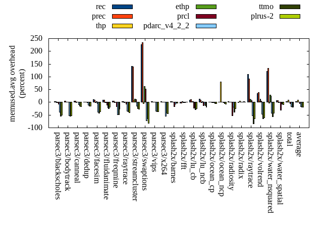======= Summary ======= runtime orig rec (overhead) prec (overhead) thp (overhead) ethp (overhead) prcl (overhead) pdarc_v4_2_2 (overhead) ttmo (overhead) plrus-2 (overhead) parsec3/blackscholes 139.349 140.091 (0.53) 139.443 (0.07) 138.705 (-0.46) 139.658 (0.22) 146.388 (5.05) 140.202 (0.61) 140.253 (0.65) 140.601 (0.90) parsec3/bodytrack 125.468 127.212 (1.39) 125.997 (0.42) 124.766 (-0.56) 125.107 (-0.29) 140.785 (12.21) 126.216 (0.60) 125.581 (0.09) 126.185 (0.57) parsec3/canneal 210.248 218.876 (4.10) 226.737 (7.84) 180.425 (-14.19) 202.715 (-3.58) 216.242 (2.85) 217.378 (3.39) 237.967 (13.18) 222.662 (5.90) parsec3/dedup 18.593 18.587 (-0.03) 18.524 (-0.37) 18.462 (-0.71) 18.487 (-0.57) 20.266 (9.00) 18.599 (0.03) 18.505 (-0.48) 18.467 (-0.68) parsec3/facesim 353.124 345.893 (-2.05) 342.501 (-3.01) 334.610 (-5.24) 342.525 (-3.00) 355.505 (0.67) 349.912 (-0.91) 354.246 (0.32) 359.540 (1.82) parsec3/fluidanimate 334.550 339.885 (1.59) 343.215 (2.59) 336.142 (0.48) 333.057 (-0.45) 333.209 (-0.40) 333.462 (-0.33) 337.057 (0.75) 334.225 (-0.10) parsec3/freqmine 436.102 436.619 (0.12) 436.637 (0.12) 434.545 (-0.36) 436.441 (0.08) 443.471 (1.69) 437.767 (0.38) 437.589 (0.34) 438.277 (0.50) parsec3/raytrace 184.152 182.291 (-1.01) 181.393 (-1.50) 185.332 (0.64) 185.132 (0.53) 195.575 (6.20) 184.368 (0.12) 185.482 (0.72) 190.160 (3.26) parsec3/streamcluster 627.941 663.558 (5.67) 654.140 (4.17) 541.761 (-13.72) 683.037 (8.77) 694.793 (10.65) 687.465 (9.48) 709.478 (12.98) 695.870 (10.82) parsec3/swaptions 221.202 221.841 (0.29) 222.044 (0.38) 221.905 (0.32) 221.574 (0.17) 223.057 (0.84) 221.565 (0.16) 223.078 (0.85) 224.100 (1.31) parsec3/vips 88.010 88.199 (0.22) 88.258 (0.28) 87.225 (-0.89) 88.497 (0.55) 90.388 (2.70) 91.824 (4.33) 94.891 (7.82) 95.862 (8.92) parsec3/x264 107.973 116.079 (7.51) 114.519 (6.06) 121.478 (12.51) 121.185 (12.24) 111.465 (3.23) 122.726 (13.66) 122.210 (13.19) 125.740 (16.46) splash2x/barnes 132.913 130.988 (-1.45) 130.248 (-2.01) 120.040 (-9.69) 131.819 (-0.82) 142.175 (6.97) 132.854 (-0.04) 131.925 (-0.74) 131.856 (-0.80) splash2x/fft 60.876 61.263 (0.63) 60.891 (0.02) 46.402 (-23.78) 60.326 (-0.90) 65.120 (6.97) 61.945 (1.76) 71.669 (17.73) 70.755 (16.23) splash2x/lu_cb 132.439 133.074 (0.48) 132.422 (-0.01) 132.831 (0.30) 133.050 (0.46) 136.683 (3.20) 133.635 (0.90) 134.461 (1.53) 134.606 (1.64) splash2x/lu_ncb 151.266 150.988 (-0.18) 152.130 (0.57) 151.229 (-0.02) 152.583 (0.87) 153.879 (1.73) 151.523 (0.17) 153.051 (1.18) 152.001 (0.49) splash2x/ocean_cp 78.996 88.871 (12.50) 81.849 (3.61) 78.189 (-1.02) 83.406 (5.58) 79.154 (0.20) 82.032 (3.84) 81.442 (3.10) 84.465 (6.92) splash2x/ocean_ncp 160.531 161.883 (0.84) 162.017 (0.93) 97.773 (-39.09) 164.532 (2.49) 163.396 (1.79) 164.204 (2.29) 178.250 (11.04) 183.751 (14.46) splash2x/radiosity 142.913 142.243 (-0.47) 142.783 (-0.09) 142.529 (-0.27) 142.340 (-0.40) 151.432 (5.96) 143.886 (0.68) 144.999 (1.46) 143.852 (0.66) splash2x/radix 49.505 50.296 (1.60) 51.864 (4.76) 45.442 (-8.21) 51.533 (4.10) 51.379 (3.78) 53.457 (7.98) 55.622 (12.35) 54.346 (9.78) splash2x/raytrace 134.763 134.815 (0.04) 134.865 (0.08) 132.448 (-1.72) 135.758 (0.74) 143.558 (6.53) 135.258 (0.37) 140.567 (4.31) 140.254 (4.07) splash2x/volrend 120.602 120.385 (-0.18) 120.809 (0.17) 120.595 (-0.01) 121.112 (0.42) 129.670 (7.52) 120.350 (-0.21) 121.227 (0.52) 120.587 (-0.01) splash2x/water_nsquared 371.758 372.891 (0.30) 371.922 (0.04) 357.198 (-3.92) 372.388 (0.17) 410.027 (10.29) 375.100 (0.90) 391.870 (5.41) 384.949 (3.55) splash2x/water_spatial 133.293 133.788 (0.37) 132.973 (-0.24) 134.305 (0.76) 134.024 (0.55) 148.004 (11.04) 134.993 (1.28) 134.109 (0.61) 134.573 (0.96) total 4516.560 4580.620 (1.42) 4568.170 (1.14) 4284.330 (-5.14) 4580.280 (1.41) 4745.620 (5.07) 4620.720 (2.31) 4725.540 (4.63) 4707.700 (4.23) average 188.190 190.859 (1.37) 190.340 (1.04) 178.514 (-4.54) 190.845 (1.16) 197.734 (5.03) 192.530 (2.14) 196.898 (4.54) 196.154 (4.48) kdamond_cpu_util orig rec (overhead) prec (overhead) thp (overhead) ethp (overhead) prcl (overhead) pdarc_v4_2_2 (overhead) ttmo (overhead) plrus-2 (overhead) parsec3/blackscholes 0.000 0.000 (0.00) 0.000 (0.00) 0.000 (0.00) 0.000 (0.00) 0.000 (0.00) 0.000 (0.00) 0.000 (0.00) 0.000 (0.00) parsec3/bodytrack 0.000 0.000 (0.00) 0.000 (0.00) 0.000 (0.00) 0.000 (0.00) 0.000 (0.00) 0.000 (0.00) 0.000 (0.00) 0.000 (0.00) parsec3/canneal 0.000 0.000 (0.00) 0.000 (0.00) 0.000 (0.00) 0.000 (0.00) 0.000 (0.00) 0.000 (0.00) 0.000 (0.00) 0.000 (0.00) parsec3/dedup 0.000 0.000 (0.00) 0.000 (0.00) 0.000 (0.00) 0.000 (0.00) 0.000 (0.00) 0.000 (0.00) 0.000 (0.00) 0.000 (0.00) parsec3/facesim 0.000 0.000 (0.00) 0.000 (0.00) 0.000 (0.00) 0.000 (0.00) 0.000 (0.00) 0.000 (0.00) 0.000 (0.00) 0.000 (0.00) parsec3/fluidanimate 0.000 0.000 (0.00) 0.000 (0.00) 0.000 (0.00) 0.000 (0.00) 0.000 (0.00) 0.000 (0.00) 0.000 (0.00) 0.000 (0.00) parsec3/freqmine 0.000 0.000 (0.00) 0.000 (0.00) 0.000 (0.00) 0.000 (0.00) 0.000 (0.00) 0.000 (0.00) 0.000 (0.00) 0.000 (0.00) parsec3/raytrace 0.000 0.000 (0.00) 0.000 (0.00) 0.000 (0.00) 0.000 (0.00) 0.000 (0.00) 0.000 (0.00) 0.000 (0.00) 0.000 (0.00) parsec3/streamcluster 0.000 0.000 (0.00) 0.000 (0.00) 0.000 (0.00) 0.000 (0.00) 0.000 (0.00) 0.000 (0.00) 0.000 (0.00) 0.000 (0.00) parsec3/swaptions 0.000 0.000 (0.00) 0.000 (0.00) 0.000 (0.00) 0.000 (0.00) 0.000 (0.00) 0.000 (0.00) 0.000 (0.00) 0.000 (0.00) parsec3/vips 0.000 0.000 (0.00) 0.000 (0.00) 0.000 (0.00) 0.000 (0.00) 0.000 (0.00) 0.000 (0.00) 0.000 (0.00) 0.000 (0.00) parsec3/x264 0.000 0.000 (0.00) 0.000 (0.00) 0.000 (0.00) 0.000 (0.00) 0.000 (0.00) 0.000 (0.00) 0.000 (0.00) 0.000 (0.00) splash2x/barnes 0.000 0.000 (0.00) 0.000 (0.00) 0.000 (0.00) 0.000 (0.00) 0.000 (0.00) 0.000 (0.00) 0.000 (0.00) 0.000 (0.00) splash2x/fft 0.000 0.000 (0.00) 0.000 (0.00) 0.000 (0.00) 0.000 (0.00) 0.000 (0.00) 0.000 (0.00) 0.000 (0.00) 0.000 (0.00) splash2x/lu_cb 0.000 0.000 (0.00) 0.000 (0.00) 0.000 (0.00) 0.000 (0.00) 0.000 (0.00) 0.000 (