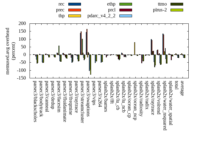 ======= Summary ======= runtime orig rec (overhead) prec (overhead) thp (overhead) ethp (overhead) prcl (overhead) pdarc_v4_2_2 (overhead) ttmo (overhead) plrus-2 (overhead) parsec3/blackscholes 139.221 139.801 (0.42) 139.614 (0.28) 138.134 (-0.78) 139.661 (0.32) 146.949 (5.55) 140.031 (0.58) 139.787 (0.41) 140.537 (0.94) parsec3/bodytrack 126.160 125.367 (-0.63) 125.675 (-0.38) 125.152 (-0.80) 126.120 (-0.03) 140.797 (11.60) 126.283 (0.10) 124.996 (-0.92) 126.135 (-0.02) parsec3/canneal 208.870 228.909 (9.59) 215.377 (3.11) 173.168 (-17.09) 220.538 (5.59) 231.879 (11.02) 216.881 (3.84) 232.079 (11.11) 224.763 (7.61) parsec3/dedup 18.615 18.559 (-0.30) 18.536 (-0.42) 18.422 (-1.04) 18.606 (-0.05) 20.175 (8.38) 18.719 (0.56) 18.422 (-1.04) 18.520 (-0.51) parsec3/facesim 347.686 345.702 (-0.57) 347.773 (0.02) 339.282 (-2.42) 356.775 (2.61) 355.972 (2.38) 353.136 (1.57) 352.674 (1.43) 349.743 (0.59) parsec3/fluidanimate 335.491 341.302 (1.73) 336.570 (0.32) 324.444 (-3.29) 334.760 (-0.22) 336.428 (0.28) 336.448 (0.29) 331.472 (-1.20) 336.947 (0.43) parsec3/freqmine 437.669 436.038 (-0.37) 437.545 (-0.03) 433.523 (-0.95) 435.865 (-0.41) 444.076 (1.46) 438.156 (0.11) 436.539 (-0.26) 438.235 (0.13) parsec3/raytrace 185.449 182.830 (-1.41) 183.079 (-1.28) 185.906 (0.25) 182.036 (-1.84) 198.269 (6.91) 183.667 (-0.96) 185.201 (-0.13) 185.964 (0.28) parsec3/streamcluster 688.231 697.848 (1.40) 677.271 (-1.59) 593.765 (-13.73) 765.476 (11.22) 686.974 (-0.18) 662.299 (-3.77) 681.435 (-0.99) 723.859 (5.18) parsec3/swaptions 220.958 220.661 (-0.13) 224.226 (1.48) 220.750 (-0.09) 222.829 (0.85) 224.246 (1.49) 221.290 (0.15) 221.969 (0.46) 221.493 (0.24) parsec3/vips 88.287 88.612 (0.37) 88.115 (-0.19) 87.408 (-1.00) 88.062 (-0.25) 90.559 (2.57) 92.754 (5.06) 95.632 (8.32) 96.053 (8.80) parsec3/x264 114.869 111.985 (-2.51) 116.931 (1.79) 111.162 (-3.23) 113.891 (-0.85) 112.494 (-2.07) 111.430 (-2.99) 113.657 (-1.06) 123.597 (7.60) splash2x/barnes 129.771 131.517 (1.35) 131.641 (1.44) 118.967 (-8.33) 131.337 (1.21) 143.158 (10.32) 131.229 (1.12) 131.360 (1.22) 131.118 (1.04) splash2x/fft 60.517 61.185 (1.10) 60.539 (0.04) 48.106 (-20.51) 60.390 (-0.21) 63.615 (5.12) 62.048 (2.53) 70.921 (17.19) 68.822 (13.72) splash2x/lu_cb 132.737 132.884 (0.11) 132.698 (-0.03) 132.315 (-0.32) 132.721 (-0.01) 137.163 (3.33) 132.678 (-0.04) 133.828 (0.82) 133.764 (0.77) splash2x/lu_ncb 150.042 153.340 (2.20) 151.139 (0.73) 151.085 (0.70) 152.696 (1.77) 155.122 (3.39) 152.057 (1.34) 150.787 (0.50) 152.247 (1.47) splash2x/ocean_cp 79.190 85.061 (7.41) 79.580 (0.49) 76.520 (-3.37) 85.901 (8.47) 83.356 (5.26) 79.395 (0.26) 80.535 (1.70) 83.885 (5.93) splash2x/ocean_ncp 164.040 168.724 (2.86) 163.499 (-0.33) 99.639 (-39.26) 170.395 (3.87) 168.476 (2.70) 167.344 (2.01) 176.115 (7.36) 173.597 (5.83) splash2x/radiosity 141.920 141.992 (0.05) 142.409 (0.35) 143.172 (0.88) 142.401 (0.34) 150.885 (6.32) 143.541 (1.14) 146.497 (3.23) 146.165 (2.99) splash2x/radix 52.702 50.527 (-4.13) 50.865 (-3.49) 44.636 (-15.30) 52.221 (-0.91) 54.019 (2.50) 53.722 (1.94) 54.486 (3.38) 54.659 (3.71) splash2x/raytrace 133.694 134.272 (0.43) 134.553 (0.64) 132.149 (-1.16) 136.655 (2.21) 141.798 (6.06) 135.810 (1.58) 137.863 (3.12) 137.286 (2.69) splash2x/volrend 120.682 120.283 (-0.33) 120.410 (-0.23) 119.910 (-0.64) 120.554 (-0.11) 128.953 (6.85) 121.383 (0.58) 121.160 (0.40) 121.674 (0.82) splash2x/water_nsquared 368.072 372.269 (1.14) 371.769 (1.00) 351.337 (-4.55) 372.195 (1.12) 403.214 (9.55) 373.246 (1.41) 386.079 (4.89) 389.330 (5.78) splash2x/water_spatial 134.356 134.708 (0.26) 134.969 (0.46) 133.964 (-0.29) 132.945 (-1.05) 148.486 (10.52) 135.519 (0.87) 134.654 (0.22) 136.211 (1.38) total 4579.230 4624.360 (0.99) 4584.790 (0.12) 4302.920 (-6.03) 4695.040 (2.53) 4767.070 (4.10) 4589.070 (0.21) 4658.160 (1.72) 4714.610 (2.96) average 190.801 192.682 (0.83) 191.033 (0.17) 179.288 (-5.68) 195.627 (1.40) 198.628 (5.05) 191.211 (0.80) 194.090 (2.51) 196.442 (3.22) kdamond_cpu_util orig rec (overhead) prec (overhead) thp (overhead) ethp (overhead) prcl (overhead) pdarc_v4_2_2 (overhead) ttmo (overhead) plrus-2 (overhead) parsec3/blackscholes 0.000 0.000 (0.00) 0.000 (0.00) 0.000 (0.00) 0.000 (0.00) 0.000 (0.00) 0.000 (0.00) 0.000 (0.00) 0.000 (0.00) parsec3/bodytrack 0.000 0.000 (0.00) 0.000 (0.00) 0.000 (0.00) 0.000 (0.00) 0.000 (0.00) 0.000 (0.00) 0.000 (0.00) 0.000 (0.00) parsec3/canneal 0.000 0.000 (0.00) 0.000 (0.00) 0.000 (0.00) 0.000 (0.00) 0.000 (0.00) 0.000 (0.00) 0.000 (0.00) 0.000 (0.00) parsec3/dedup 0.000 0.000 (0.00) 0.000 (0.00) 0.000 (0.00) 0.000 (0.00) 0.000 (0.00) 0.000 (0.00) 0.000 (0.00) 0.000 (0.00) parsec3/facesim 0.000 0.000 (0.00) 0.000 (0.00) 0.000 (0.00) 0.000 (0.00) 0.000 (0.00) 0.000 (0.00) 0.000 (0.00) 0.000 (0.00) parsec3/fluidanimate 0.000 0.000 (0.00) 0.000 (0.00) 0.000 (0.00) 0.000 (0.00) 0.000 (0.00) 0.000 (0.00) 0.000 (0.00) 0.000 (0.00) parsec3/freqmine 0.000 0.000 (0.00) 0.000 (0.00) 0.000 (0.00) 0.000 (0.00) 0.000 (0.00) 0.000 (0.00) 0.000 (0.00) 0.000 (0.00) parsec3/raytrace 0.000 0.000 (0.00) 0.000 (0.00) 0.000 (0.00) 0.000 (0.00) 0.000 (0.00) 0.000 (0.00) 0.000 (0.00) 0.000 (0.00) parsec3/streamcluster 0.000 0.000 (0.00) 0.000 (0.00) 0.000 (0.00) 0.000 (0.00) 0.000 (0.00) 0.000 (0.00) 0.000 (0.00) 0.000 (0.00) parsec3/swaptions 0.000 0.000 (0.00) 0.000 (0.00) 0.000 (0.00) 0.000 (0.00) 0.000 (0.00) 0.000 (0.00) 0.000 (0.00) 0.000 (0.00) parsec3/vips 0.000 0.000 (0.00) 0.000 (0.00) 0.000 (0.00) 0.000 (0.00) 0.000 (0.00) 0.000 (0.00) 0.000 (0.00) 0.000 (0.00) parsec3/x264 0.000 0.000 (0.00) 0.000 (0.00) 0.000 (0.00) 0.000 (0.00) 0.000 (0.00) 0.000 (0.00) 0.000 (0.00) 0.000 (0.00) splash2x/barnes 0.000 0.000 (0.00) 0.000 (0.00) 0.000 (0.00) 0.000 (0.00) 0.000 (0.00) 0.000 (0.00) 0.000 (0.00) 0.000 (0.00) splash2x/fft 0.000 0.000 (0.00) 0.000 (0.00) 0.000 (0.00) 0.000 (0.00) 0.000 (0.00) 0.000 (0.00) 0.000 (0.00) 0.000 (0.00) splash2x/lu_cb 0.000 0.000 (0.00) 0.000 (0.00) 0.000 (0.00) 0.000 (0.00) 0.000 (0.00) 