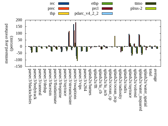 ======= Summary ======= runtime orig rec (overhead) prec (overhead) thp (overhead) ethp (overhead) prcl (overhead) pdarc_v4_2_2 (overhead) ttmo (overhead) plrus-2 (overhead) parsec3/blackscholes 139.418 139.625 (0.15) 139.452 (0.02) 138.460 (-0.69) 139.978 (0.40) 145.528 (4.38) 140.079 (0.47) 139.845 (0.31) 140.165 (0.54) parsec3/bodytrack 125.150 126.177 (0.82) 125.037 (-0.09) 124.641 (-0.41) 125.727 (0.46) 137.881 (10.17) 126.402 (1.00) 125.212 (0.05) 126.096 (0.76) parsec3/canneal 213.315 222.324 (4.22) 229.993 (7.82) 182.590 (-14.40) 220.481 (3.36) 218.131 (2.26) 214.633 (0.62) 229.227 (7.46) 222.579 (4.34) parsec3/dedup 18.849 18.702 (-0.78) 18.409 (-2.33) 18.332 (-2.74) 18.839 (-0.05) 19.892 (5.54) 18.744 (-0.55) 18.627 (-1.17) 18.653 (-1.04) parsec3/facesim 347.891 348.349 (0.13) 344.945 (-0.85) 341.776 (-1.76) 345.883 (-0.58) 359.354 (3.29) 352.990 (1.47) 347.927 (0.01) 347.181 (-0.20) parsec3/fluidanimate 335.889 337.842 (0.58) 336.466 (0.17) 323.036 (-3.83) 331.878 (-1.19) 337.451 (0.47) 331.067 (-1.44) 333.081 (-0.84) 333.779 (-0.63) parsec3/freqmine 435.504 436.383 (0.20) 435.801 (0.07) 436.759 (0.29) 436.726 (0.28) 441.808 (1.45) 437.039 (0.35) 438.267 (0.63) 437.405 (0.44) parsec3/raytrace 181.371 182.624 (0.69) 184.267 (1.60) 184.333 (1.63) 182.523 (0.63) 194.977 (7.50) 183.317 (1.07) 186.949 (3.08) 185.692 (2.38) parsec3/streamcluster 652.723 700.321 (7.29) 680.727 (4.29) 540.656 (-17.17) 695.193 (6.51) 701.293 (7.44) 660.236 (1.15) 685.878 (5.08) 660.670 (1.22) parsec3/swaptions 221.069 221.387 (0.14) 221.187 (0.05) 222.124 (0.48) 222.942 (0.85) 223.671 (1.18) 220.865 (-0.09) 221.304 (0.11) 222.906 (0.83) parsec3/vips 88.045 88.112 (0.08) 88.972 (1.05) 87.533 (-0.58) 88.591 (0.62) 90.149 (2.39) 93.052 (5.69) 94.199 (6.99) 94.494 (7.32) parsec3/x264 116.131 124.466 (7.18) 113.328 (-2.41) 112.767 (-2.90) 115.789 (-0.29) 113.667 (-2.12) 114.188 (-1.67) 122.608 (5.58) 120.235 (3.53) splash2x/barnes 130.631 132.379 (1.34) 130.388 (-0.19) 118.659 (-9.16) 129.894 (-0.56) 141.075 (8.00) 132.147 (1.16) 131.735 (0.85) 132.659 (1.55) splash2x/fft 61.515 61.174 (-0.55) 60.945 (-0.93) 49.055 (-20.26) 61.402 (-0.18) 63.982 (4.01) 61.899 (0.62) 69.452 (12.90) 70.153 (14.04) splash2x/lu_cb 133.701 132.988 (-0.53) 133.008 (-0.52) 132.464 (-0.92) 132.906 (-0.59) 136.314 (1.95) 132.870 (-0.62) 133.723 (0.02) 133.823 (0.09) splash2x/lu_ncb 149.620 151.409 (1.20) 151.324 (1.14) 149.802 (0.12) 152.390 (1.85) 151.644 (1.35) 151.430 (1.21) 152.861 (2.17) 152.751 (2.09) splash2x/ocean_cp 83.155 83.762 (0.73) 78.681 (-5.38) 85.876 (3.27) 79.982 (-3.82) 82.507 (-0.78) 80.087 (-3.69) 81.024 (-2.56) 87.475 (5.19) splash2x/ocean_ncp 162.662 160.863 (-1.11) 166.156 (2.15) 101.081 (-37.86) 161.202 (-0.90) 167.205 (2.79) 169.205 (4.02) 169.565 (4.24) 172.779 (6.22) splash2x/radiosity 142.315 143.096 (0.55) 142.574 (0.18) 142.039 (-0.19) 142.664 (0.25) 149.106 (4.77) 143.884 (1.10) 145.639 (2.34) 145.496 (2.24) splash2x/radix 50.447 51.633 (2.35) 51.713 (2.51) 45.919 (-8.98) 51.066 (1.23) 51.566 (2.22) 52.930 (4.92) 54.860 (8.75) 55.289 (9.60) splash2x/raytrace 135.194 134.919 (-0.20) 137.072 (1.39) 132.534 (-1.97) 136.474 (0.95) 141.329 (4.54) 135.217 (0.02) 137.793 (1.92) 137.248 (1.52) splash2x/volrend 120.576 120.135 (-0.37) 120.989 (0.34) 120.538 (-0.03) 120.396 (-0.15) 127.672 (5.89) 120.953 (0.31) 121.218 (0.53) 121.283 (0.59) splash2x/water_nsquared 369.942 371.505 (0.42) 371.489 (0.42) 352.257 (-4.78) 371.562 (0.44) 398.671 (7.77) 374.614 (1.26) 385.264 (4.14) 386.959 (4.60) splash2x/water_spatial 134.307 133.385 (-0.69) 133.758 (-0.41) 133.957 (-0.26) 134.825 (0.39) 146.084 (8.77) 135.472 (0.87) 134.614 (0.23) 135.969 (1.24) total 4549.410 4623.560 (1.63) 4596.690 (1.04) 4277.180 (-5.98) 4599.300 (1.10) 4740.960 (4.21) 4583.330 (0.75) 4660.860 (2.45) 4641.730 (2.03) average 189.559 192.648 (0.99) 191.529 (0.42) 178.216 (-5.13) 191.638 (0.41) 197.540 (3.97) 190.972 (0.80) 194.202 (2.62) 193.405 (2.85) kdamond_cpu_util orig rec (overhead) prec (overhead) thp (overhead) ethp (overhead) prcl (overhead) pdarc_v4_2_2 (overhead) ttmo (overhead) plrus-2 (overhead) parsec3/blackscholes 0.000 0.000 (0.00) 0.000 (0.00) 0.000 (0.00) 0.000 (0.00) 0.000 (0.00) 0.000 (0.00) 0.000 (0.00) 0.000 (0.00) parsec3/bodytrack 0.000 0.000 (0.00) 0.000 (0.00) 0.000 (0.00) 0.000 (0.00) 0.000 (0.00) 0.000 (0.00) 0.000 (0.00) 0.000 (0.00) parsec3/canneal 0.000 0.000 (0.00) 0.000 (0.00) 0.000 (0.00) 0.000 (0.00) 0.000 (0.00) 0.000 (0.00) 0.000 (0.00) 0.000 (0.00) parsec3/dedup 0.000 0.000 (0.00) 0.000 (0.00) 0.000 (0.00) 0.000 (0.00) 0.000 (0.00) 0.000 (0.00) 0.000 (0.00) 0.000 (0.00) parsec3/facesim 0.000 0.000 (0.00) 0.000 (0.00) 0.000 (0.00) 0.000 (0.00) 0.000 (0.00) 0.000 (0.00) 0.000 (0.00) 0.000 (0.00) parsec3/fluidanimate 0.000 0.000 (0.00) 0.000 (0.00) 0.000 (0.00) 0.000 (0.00) 0.000 (0.00) 0.000 (0.00) 0.000 (0.00) 0.000 (0.00) parsec3/freqmine 0.000 0.000 (0.00) 0.000 (0.00) 0.000 (0.00) 0.000 (0.00) 0.000 (0.00) 0.000 (0.00) 0.000 (0.00) 0.000 (0.00) parsec3/raytrace 0.000 0.000 (0.00) 0.000 (0.00) 0.000 (0.00) 0.000 (0.00) 0.000 (0.00) 0.000 (0.00) 0.000 (0.00) 0.000 (0.00) parsec3/streamcluster 0.000 0.000 (0.00) 0.000 (0.00) 0.000 (0.00) 0.000 (0.00) 0.000 (0.00) 0.000 (0.00) 0.000 (0.00) 0.000 (0.00) parsec3/swaptions 0.000 0.000 (0.00) 0.000 (0.00) 0.000 (0.00) 0.000 (0.00) 0.000 (0.00) 0.000 (0.00) 0.000 (0.00) 0.000 (0.00) parsec3/vips 0.000 0.000 (0.00) 0.000 (0.00) 0.000 (0.00) 0.000 (0.00) 0.000 (0.00) 0.000 (0.00) 0.000 (0.00) 0.000 (0.00) parsec3/x264 0.000 0.000 (0.00) 0.000 (0.00) 0.000 (0.00) 0.000 (0.00) 0.000 (0.00) 0.000 (0.00) 0.000 (0.00) 0.000 (0.00) splash2x/barnes 0.000 0.000 (0.00) 0.000 (0.00) 0.000 (0.00) 0.000 (0.00) 0.000 (0.00) 0.000 (0.00) 0.000 (0.00) 0.000 (0.00) splash2x/fft 0.000 0.000 (0.00) 0.000 (0.00) 0.000 (0.00) 0.000 (0.00) 0.000 (0.00) 0.000 (0.00) 0.000 (0.00) 0.000 (0.00) splash2x/lu_cb 0.000 0.000 (0.00) 0.000 (0.00) 0.000 (0.00) 0.000 (0.00) 0.000 (0.00) 0.000 (0.00) 