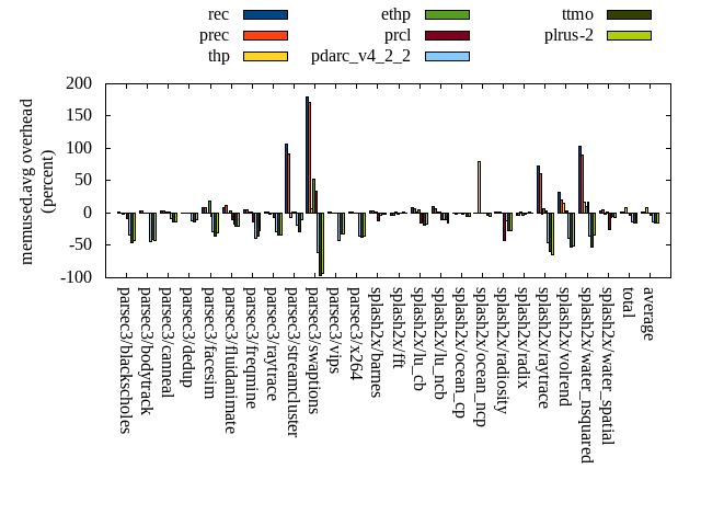 ======= Summary ======= runtime orig rec (overhead) prec (overhead) thp (overhead) ethp (overhead) prcl (overhead) pdarc_v4_2_2 (overhead) ttmo (overhead) plrus-2 (overhead) parsec3/blackscholes 139.485 139.852 (0.26) 139.778 (0.21) 138.826 (-0.47) 140.059 (0.41) 146.028 (4.69) 139.468 (-0.01) 139.718 (0.17) 140.318 (0.60) parsec3/bodytrack 125.084 125.683 (0.48) 125.453 (0.29) 124.125 (-0.77) 125.958 (0.70) 136.187 (8.88) 126.302 (0.97) 125.914 (0.66) 125.780 (0.56) parsec3/canneal 213.000 215.479 (1.16) 218.019 (2.36) 197.183 (-7.43) 220.273 (3.41) 214.155 (0.54) 224.973 (5.62) 227.844 (6.97) 221.166 (3.83) parsec3/dedup 18.549 18.569 (0.11) 18.826 (1.49) 18.335 (-1.15) 18.732 (0.99) 20.000 (7.82) 18.848 (1.61) 18.312 (-1.27) 18.625 (0.41) parsec3/facesim 351.332 345.276 (-1.72) 348.644 (-0.77) 338.273 (-3.72) 345.693 (-1.61) 360.569 (2.63) 344.628 (-1.91) 357.602 (1.78) 353.224 (0.54) parsec3/fluidanimate 337.775 345.780 (2.37) 331.858 (-1.75) 328.369 (-2.78) 338.281 (0.15) 338.795 (0.30) 337.885 (0.03) 334.816 (-0.88) 340.179 (0.71) parsec3/freqmine 435.034 436.030 (0.23) 435.130 (0.02) 436.422 (0.32) 436.955 (0.44) 441.328 (1.45) 437.035 (0.46) 437.240 (0.51) 438.384 (0.77) parsec3/raytrace 182.960 182.703 (-0.14) 183.300 (0.19) 184.879 (1.05) 183.351 (0.21) 195.996 (7.12) 185.127 (1.18) 186.612 (2.00) 189.585 (3.62) parsec3/streamcluster 693.522 703.430 (1.43) 659.745 (-4.87) 573.251 (-17.34) 685.008 (-1.23) 701.252 (1.11) 689.070 (-0.64) 686.607 (-1.00) 717.593 (3.47) parsec3/swaptions 221.296 222.597 (0.59) 221.283 (-0.01) 220.813 (-0.22) 221.351 (0.03) 222.916 (0.73) 221.841 (0.25) 221.900 (0.27) 221.673 (0.17) parsec3/vips 87.609 88.504 (1.02) 88.529 (1.05) 87.789 (0.21) 87.994 (0.44) 90.256 (3.02) 92.283 (5.33) 93.286 (6.48) 93.782 (7.05) parsec3/x264 119.904 113.853 (-5.05) 114.958 (-4.12) 113.267 (-5.54) 116.106 (-3.17) 117.202 (-2.25) 117.237 (-2.22) 112.090 (-6.52) 113.911 (-5.00) splash2x/barnes 130.296 130.715 (0.32) 129.938 (-0.28) 119.848 (-8.02) 130.569 (0.21) 141.020 (8.23) 130.912 (0.47) 131.445 (0.88) 132.171 (1.44) splash2x/fft 60.885 61.772 (1.46) 61.266 (0.63) 46.933 (-22.91) 60.712 (-0.28) 63.698 (4.62) 63.570 (4.41) 67.131 (10.26) 67.313 (10.56) splash2x/lu_cb 132.820 133.545 (0.55) 132.938 (0.09) 133.158 (0.25) 132.771 (-0.04) 137.287 (3.36) 133.224 (0.30) 133.478 (0.50) 133.468 (0.49) splash2x/lu_ncb 150.098 152.021 (1.28) 151.788 (1.13) 150.548 (0.30) 152.430 (1.55) 151.283 (0.79) 151.687 (1.06) 151.666 (1.04) 153.177 (2.05) splash2x/ocean_cp 80.588 82.327 (2.16) 83.818 (4.01) 81.215 (0.78) 81.845 (1.56) 80.802 (0.27) 82.142 (1.93) 84.024 (4.26) 83.194 (3.23) splash2x/ocean_ncp 157.899 166.108 (5.20) 166.253 (5.29) 106.353 (-32.64) 161.946 (2.56) 162.963 (3.21) 168.334 (6.61) 168.634 (6.80) 171.860 (8.84) splash2x/radiosity 142.931 142.802 (-0.09) 143.307 (0.26) 141.735 (-0.84) 141.706 (-0.86) 149.636 (4.69) 143.547 (0.43) 144.287 (0.95) 144.628 (1.19) splash2x/radix 52.246 51.544 (-1.34) 50.356 (-3.62) 44.910 (-14.04) 50.705 (-2.95) 52.923 (1.30) 53.716 (2.81) 55.377 (5.99) 55.804 (6.81) splash2x/raytrace 134.776 136.704 (1.43) 133.811 (-0.72) 132.543 (-1.66) 136.515 (1.29) 142.701 (5.88) 134.386 (-0.29) 138.770 (2.96) 136.444 (1.24) splash2x/volrend 120.918 120.682 (-0.20) 121.538 (0.51) 119.571 (-1.11) 121.111 (0.16) 127.212 (5.20) 121.130 (0.18) 120.321 (-0.49) 120.680 (-0.20) splash2x/water_nsquared 371.284 374.574 (0.89) 369.805 (-0.40) 352.851 (-4.96) 373.954 (0.72) 404.686 (9.00) 372.146 (0.23) 387.594 (4.39) 388.603 (4.66) splash2x/water_spatial 134.278 135.299 (0.76) 134.998 (0.54) 135.183 (0.67) 135.769 (1.11) 144.003 (7.24) 136.467 (1.63) 134.650 (0.28) 135.031 (0.56) total 4594.570 4625.830 (0.68) 4565.360 (-0.64) 4326.380 (-5.84) 4599.790 (0.11) 4742.900 (3.23) 4625.960 (0.68) 4659.320 (1.41) 4696.560 (2.22) average 191.440 192.743 (0.55) 190.223 (0.06) 180.266 (-5.08) 191.658 (0.24) 197.621 (3.74) 192.748 (1.27) 194.138 (1.96) 195.690 (2.40) kdamond_cpu_util orig rec (overhead) prec (overhead) thp (overhead) ethp (overhead) prcl (overhead) pdarc_v4_2_2 (overhead) ttmo (overhead) plrus-2 (overhead) parsec3/blackscholes 0.000 0.000 (0.00) 0.000 (0.00) 0.000 (0.00) 0.000 (0.00) 0.000 (0.00) 0.000 (0.00) 0.000 (0.00) 0.000 (0.00) parsec3/bodytrack 0.000 0.000 (0.00) 0.000 (0.00) 0.000 (0.00) 0.000 (0.00) 0.000 (0.00) 0.000 (0.00) 0.000 (0.00) 0.000 (0.00) parsec3/canneal 0.000 0.000 (0.00) 0.000 (0.00) 0.000 (0.00) 0.000 (0.00) 0.000 (0.00) 0.000 (0.00) 0.000 (0.00) 0.000 (0.00) parsec3/dedup 0.000 0.000 (0.00) 0.000 (0.00) 0.000 (0.00) 0.000 (0.00) 0.000 (0.00) 0.000 (0.00) 0.000 (0.00) 0.000 (0.00) parsec3/facesim 0.000 0.000 (0.00) 0.000 (0.00) 0.000 (0.00) 0.000 (0.00) 0.000 (0.00) 0.000 (0.00) 0.000 (0.00) 0.000 (0.00) parsec3/fluidanimate 0.000 0.000 (0.00) 0.000 (0.00) 0.000 (0.00) 0.000 (0.00) 0.000 (0.00) 0.000 (0.00) 0.000 (0.00) 0.000 (0.00) parsec3/freqmine 0.000 0.000 (0.00) 0.000 (0.00) 0.000 (0.00) 0.000 (0.00) 0.000 (0.00) 0.000 (0.00) 0.000 (0.00) 0.000 (0.00) parsec3/raytrace 0.000 0.000 (0.00) 0.000 (0.00) 0.000 (0.00) 0.000 (0.00) 0.000 (0.00) 0.000 (0.00) 0.000 (0.00) 0.000 (0.00) parsec3/streamcluster 0.000 0.000 (0.00) 0.000 (0.00) 0.000 (0.00) 0.000 (0.00) 0.000 (0.00) 0.000 (0.00) 0.000 (0.00) 0.000 (0.00) parsec3/swaptions 0.000 0.000 (0.00) 0.000 (0.00) 0.000 (0.00) 0.000 (0.00) 0.000 (0.00) 0.000 (0.00) 0.000 (0.00) 0.000 (0.00) parsec3/vips 0.000 0.000 (0.00) 0.000 (0.00) 0.000 (0.00) 0.000 (0.00) 0.000 (0.00) 0.000 (0.00) 0.000 (0.00) 0.000 (0.00) parsec3/x264 0.000 0.000 (0.00) 0.000 (0.00) 0.000 (0.00) 0.000 (0.00) 0.000 (0.00) 0.000 (0.00) 0.000 (0.00) 0.000 (0.00) splash2x/barnes 0.000 0.000 (0.00) 0.000 (0.00) 0.000 (0.00) 0.000 (0.00) 0.000 (0.00) 0.000 (0.00) 0.000 (0.00) 0.000 (0.00) splash2x/fft 0.000 0.000 (0.00) 0.000 (0.00) 0.000 (0.00) 0.000 (0.00) 0.000 (0.00) 0.000 (0.00) 0.000 (0.00) 0.000 (0.00) splash2x/lu_cb 0.000 0.000 (0.00) 0.000 (0.00) 0.000 (0.00) 0.000 (0.00) 0.000 (0.00) 0.000 (0.00) 0.000 (
