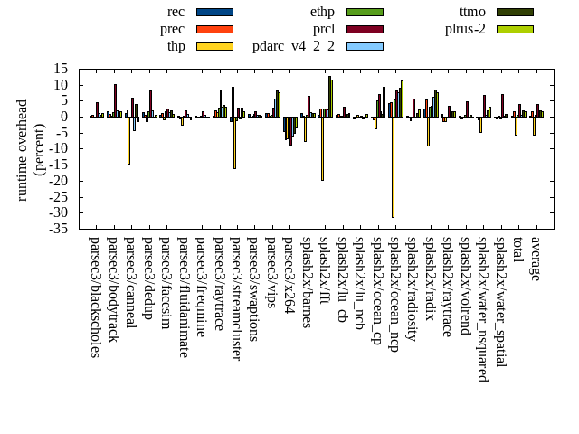 ======= Summary ======= runtime orig rec (overhead) prec (overhead) thp (overhead) ethp (overhead) prcl (overhead) pdarc_v4_2_2 (overhead) ttmo (overhead) plrus-2 (overhead) parsec3/blackscholes 139.253 139.593 (0.24) 140.037 (0.56) 139.188 (-0.05) 138.825 (-0.31) 145.749 (4.66) 140.683 (1.03) 140.225 (0.70) 140.675 (1.02) parsec3/bodytrack 124.339 126.341 (1.61) 125.492 (0.93) 124.860 (0.42) 126.200 (1.50) 136.994 (10.18) 126.979 (2.12) 125.870 (1.23) 126.417 (1.67) parsec3/canneal 219.338 221.850 (1.14) 224.021 (2.13) 187.419 (-14.55) 219.083 (-0.12) 232.587 (6.04) 209.836 (-4.33) 227.987 (3.94) 216.161 (-1.45) parsec3/dedup 18.474 18.715 (1.31) 18.607 (0.72) 18.210 (-1.42) 18.817 (1.86) 19.993 (8.22) 18.865 (2.12) 18.429 (-0.24) 18.571 (0.53) parsec3/facesim 346.117 348.604 (0.72) 349.808 (1.07) 342.938 (-0.92) 352.204 (1.76) 355.220 (2.63) 350.744 (1.34) 352.764 (1.92) 349.467 (0.97) parsec3/fluidanimate 336.439 337.030 (0.18) 334.697 (-0.52) 328.345 (-2.41) 337.570 (0.34) 343.348 (2.05) 339.006 (0.76) 336.188 (-0.07) 333.805 (-0.78) parsec3/freqmine 436.347 437.690 (0.31) 436.261 (-0.02) 434.640 (-0.39) 438.297 (0.45) 444.324 (1.83) 438.805 (0.56) 436.915 (0.13) 436.795 (0.10) parsec3/raytrace 181.251 181.966 (0.39) 184.977 (2.06) 183.904 (1.46) 186.207 (2.73) 196.239 (8.27) 186.718 (3.02) 188.166 (3.82) 186.778 (3.05) parsec3/streamcluster 683.638 674.267 (-1.37) 747.106 (9.28) 572.929 (-16.19) 676.227 (-1.08) 703.303 (2.88) 680.447 (-0.47) 702.933 (2.82) 694.580 (1.60) parsec3/swaptions 220.773 222.590 (0.82) 220.750 (-0.01) 221.441 (0.30) 222.559 (0.81) 224.550 (1.71) 222.279 (0.68) 222.278 (0.68) 221.493 (0.33) parsec3/vips 87.583 88.591 (1.15) 88.711 (1.29) 87.763 (0.21) 88.186 (0.69) 90.103 (2.88) 92.555 (5.68) 94.690 (8.12) 94.194 (7.55) parsec3/x264 122.291 116.785 (-4.50) 113.687 (-7.04) 113.939 (-6.83) 120.476 (-1.48) 111.559 (-8.78) 115.153 (-5.84) 116.013 (-5.13) 118.188 (-3.35) splash2x/barnes 130.362 132.039 (1.29) 130.785 (0.32) 120.380 (-7.66) 131.183 (0.63) 138.919 (6.56) 132.113 (1.34) 131.792 (1.10) 131.853 (1.14) splash2x/fft 60.710 60.984 (0.45) 62.258 (2.55) 48.798 (-19.62) 62.191 (2.44) 62.218 (2.48) 62.082 (2.26) 68.442 (12.73) 67.759 (11.61) splash2x/lu_cb 132.623 133.532 (0.69) 133.819 (0.90) 132.899 (0.21) 133.010 (0.29) 136.784 (3.14) 133.642 (0.77) 133.659 (0.78) 134.087 (1.10) splash2x/lu_ncb 152.033 151.073 (-0.63) 152.262 (0.15) 153.096 (0.70) 151.851 (-0.12) 152.444 (0.27) 151.124 (-0.60) 152.196 (0.11) 153.401 (0.90) splash2x/ocean_cp 81.360 81.179 (-0.22) 80.664 (-0.86) 78.292 (-3.77) 85.442 (5.02) 87.029 (6.97) 82.856 (1.84) 82.135 (0.95) 88.896 (9.26) splash2x/ocean_ncp 158.626 165.255 (4.18) 165.824 (4.54) 108.837 (-31.39) 167.346 (5.50) 171.556 (8.15) 170.784 (7.66) 173.045 (9.09) 176.403 (11.21) splash2x/radiosity 142.825 143.092 (0.19) 142.653 (-0.12) 141.381 (-1.01) 142.977 (0.11) 150.813 (5.59) 142.819 (-0.00) 144.526 (1.19) 146.113 (2.30) splash2x/radix 50.345 51.642 (2.58) 53.105 (5.48) 45.765 (-9.10) 51.957 (3.20) 52.020 (3.33) 53.521 (6.31) 54.600 (8.45) 54.203 (7.66) splash2x/raytrace 135.422 136.516 (0.81) 133.565 (-1.37) 133.662 (-1.30) 135.204 (-0.16) 139.869 (3.28) 136.457 (0.76) 137.764 (1.73) 137.901 (1.83) splash2x/volrend 120.858 121.175 (0.26) 120.084 (-0.64) 120.796 (-0.05) 121.443 (0.48) 126.789 (4.91) 120.774 (-0.07) 121.438 (0.48) 120.851 (-0.01) splash2x/water_nsquared 373.346 373.047 (-0.08) 370.089 (-0.87) 355.244 (-4.85) 373.453 (0.03) 398.899 (6.84) 375.811 (0.66) 380.832 (2.00) 385.023 (3.13) splash2x/water_spatial 134.354 133.992 (-0.27) 133.811 (-0.40) 134.595 (0.18) 133.792 (-0.42) 144.009 (7.19) 134.918 (0.42) 135.410 (0.79) 135.517 (0.87) total 4588.690 4597.550 (0.19) 4663.060 (1.62) 4329.320 (-5.65) 4614.510 (0.56) 4765.310 (3.85) 4618.950 (0.66) 4678.300 (1.95) 4669.120 (1.75) average 191.195 191.565 (0.47) 194.294 (0.84) 180.388 (-4.92) 192.271 (1.01) 198.555 (4.22) 192.456 (1.17) 194.929 (2.39) 194.547 (2.59) kdamond_cpu_util orig rec (overhead) prec (overhead) thp (overhead) ethp (overhead) prcl (overhead) pdarc_v4_2_2 (overhead) ttmo (overhead) plrus-2 (overhead) parsec3/blackscholes 0.000 0.000 (0.00) 0.000 (0.00) 0.000 (0.00) 0.000 (0.00) 0.000 (0.00) 0.000 (0.00) 0.000 (0.00) 0.000 (0.00) parsec3/bodytrack 0.000 0.000 (0.00) 0.000 (0.00) 0.000 (0.00) 0.000 (0.00) 0.000 (0.00) 0.000 (0.00) 0.000 (0.00) 0.000 (0.00) parsec3/canneal 0.000 0.000 (0.00) 0.000 (0.00) 0.000 (0.00) 0.000 (0.00) 0.000 (0.00) 0.000 (0.00) 0.000 (0.00) 0.000 (0.00) parsec3/dedup 0.000 0.000 (0.00) 0.000 (0.00) 0.000 (0.00) 0.000 (0.00) 0.000 (0.00) 0.000 (0.00) 0.000 (0.00) 0.000 (0.00) parsec3/facesim 0.000 0.000 (0.00) 0.000 (0.00) 0.000 (0.00) 0.000 (0.00) 0.000 (0.00) 0.000 (0.00) 0.000 (0.00) 0.000 (0.00) parsec3/fluidanimate 0.000 0.000 (0.00) 0.000 (0.00) 0.000 (0.00) 0.000 (0.00) 0.000 (0.00) 0.000 (0.00) 0.000 (0.00) 0.000 (0.00) parsec3/freqmine 0.000 0.000 (0.00) 0.000 (0.00) 0.000 (0.00) 0.000 (0.00) 0.000 (0.00) 0.000 (0.00) 0.000 (0.00) 0.000 (0.00) parsec3/raytrace 0.000 0.000 (0.00) 0.000 (0.00) 0.000 (0.00) 0.000 (0.00) 0.000 (0.00) 0.000 (0.00) 0.000 (0.00) 0.000 (0.00) parsec3/streamcluster 0.000 0.000 (0.00) 0.000 (0.00) 0.000 (0.00) 0.000 (0.00) 0.000 (0.00) 0.000 (0.00) 0.000 (0.00) 0.000 (0.00) parsec3/swaptions 0.000 0.000 (0.00) 0.000 (0.00) 0.000 (0.00) 0.000 (0.00) 0.000 (0.00) 0.000 (0.00) 0.000 (0.00) 0.000 (0.00) parsec3/vips 0.000 0.000 (0.00) 0.000 (0.00) 0.000 (0.00) 0.000 (0.00) 0.000 (0.00) 0.000 (0.00) 0.000 (0.00) 0.000 (0.00) parsec3/x264 0.000 0.000 (0.00) 0.000 (0.00) 0.000 (0.00) 0.000 (0.00) 0.000 (0.00) 0.000 (0.00) 0.000 (0.00) 0.000 (0.00) splash2x/barnes 0.000 0.000 (0.00) 0.000 (0.00) 0.000 (0.00) 0.000 (0.00) 0.000 (0.00) 0.000 (0.00) 0.000 (0.00) 0.000 (0.00) splash2x/fft 0.000 0.000 (0.00) 0.000 (0.00) 0.000 (0.00) 0.000 (0.00) 0.000 (0.00) 0.000 (0.00) 0.000 (0.00) 0.000 (0.00) splash2x/lu_cb 0.000 0.000 (0.00) 0.000 (0.00) 0.000 (0.00) 0.000 (0.00) 0.000 (0.00) 0.000 (0.00) 0.00